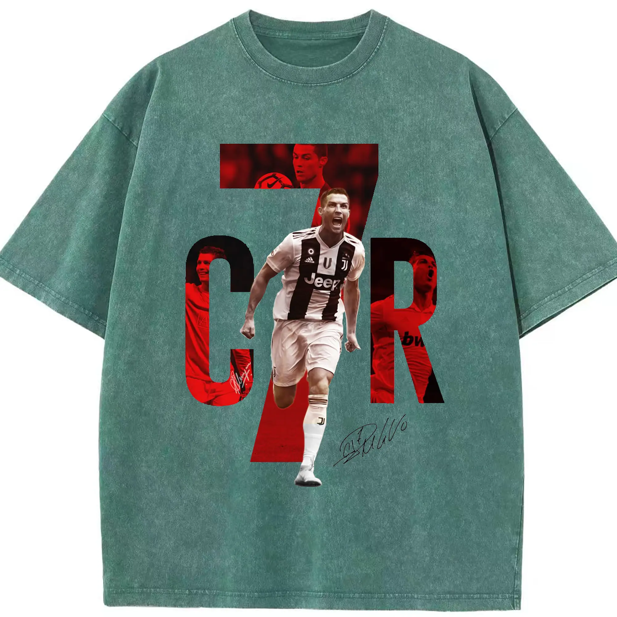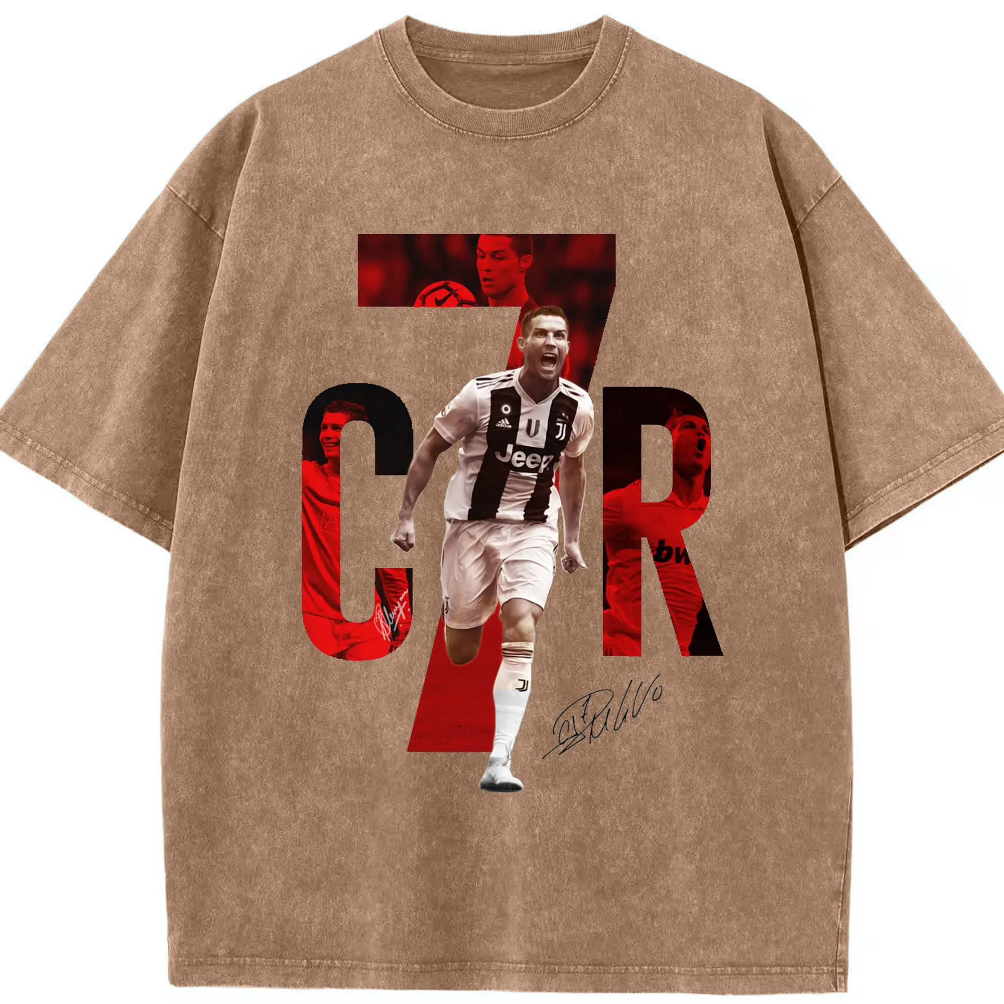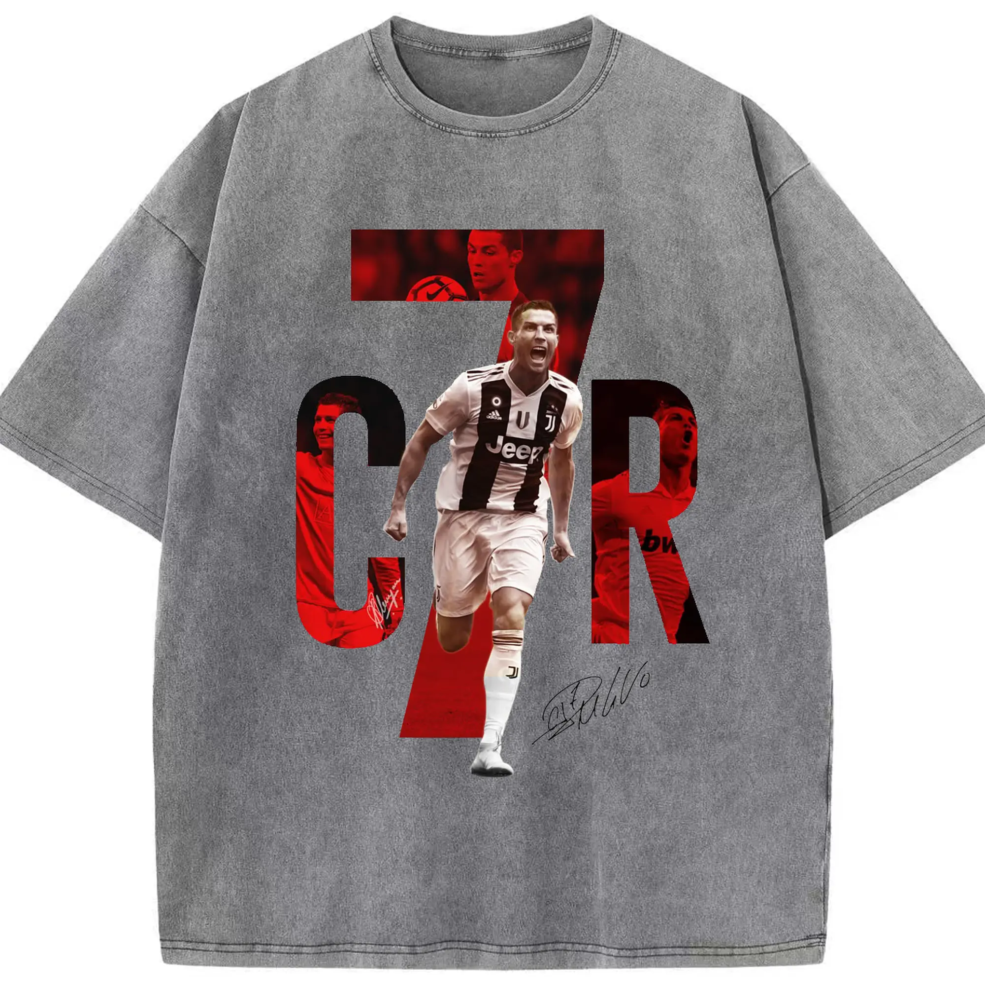 Cristiano Ronaldo CR7 Career Collage DIY Shirt - Washed Vintage Look 230g Cotton Oversized T-Shirt With Front Heat Transfer Print – Soft, Lightweight, Stylish Fit – Comfortable Casual Wear For Sports & Everyday Use