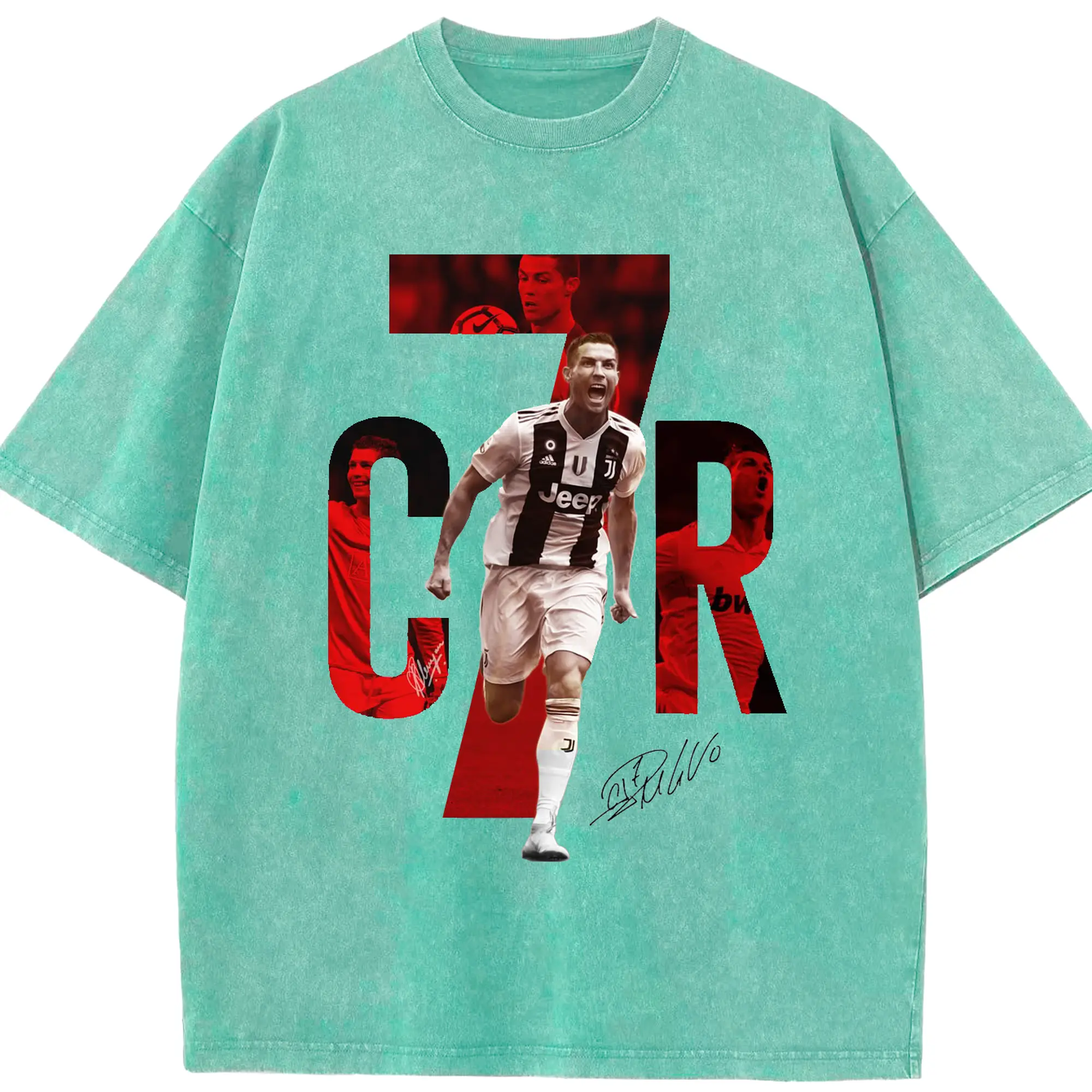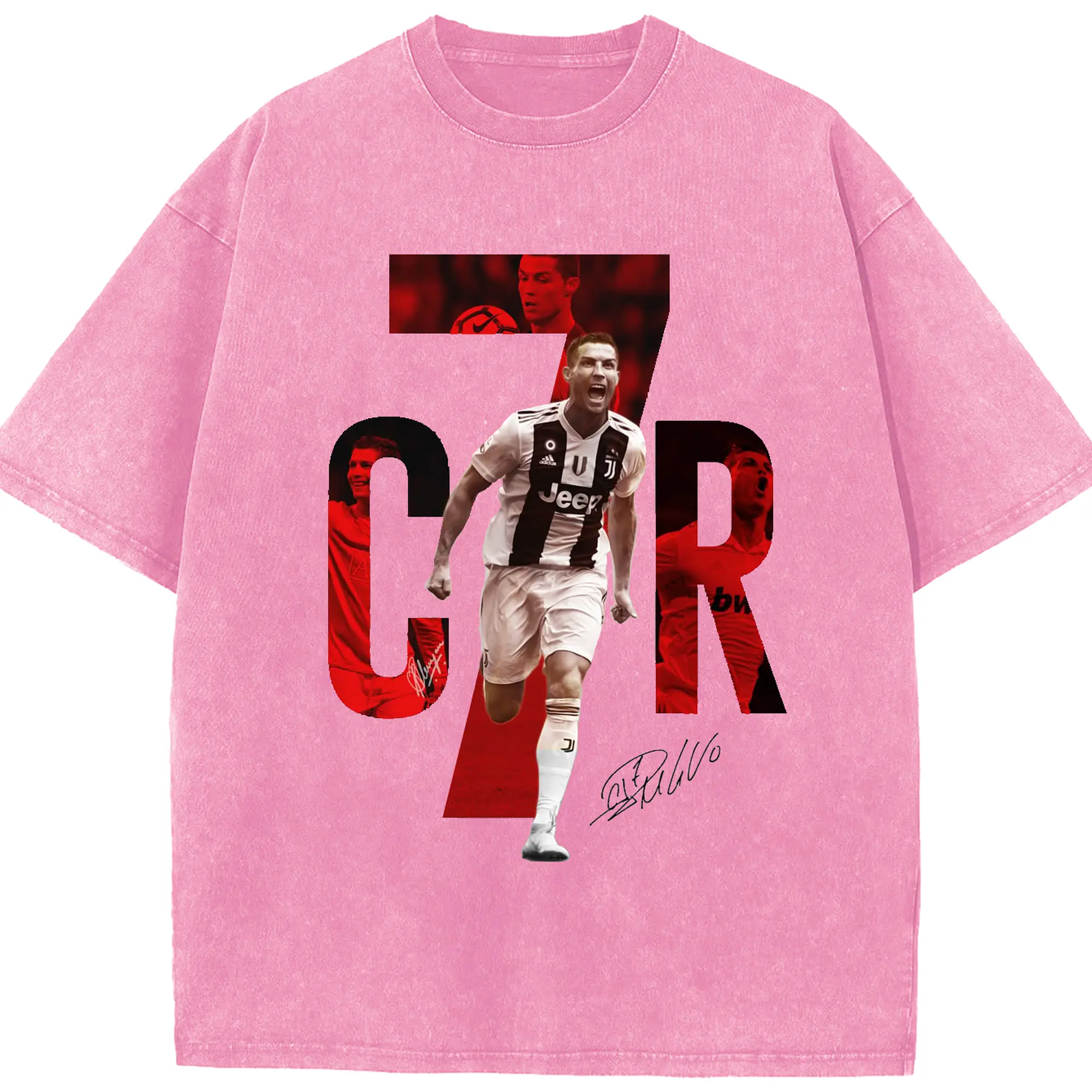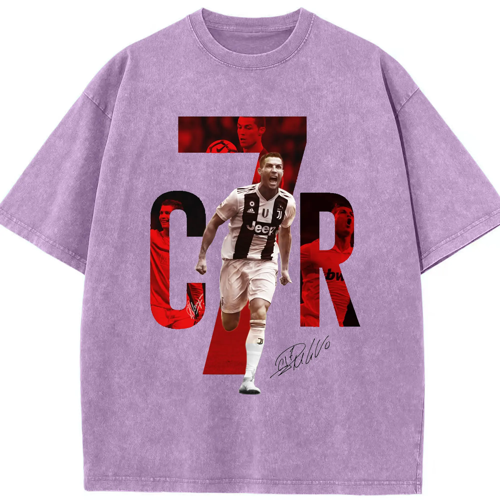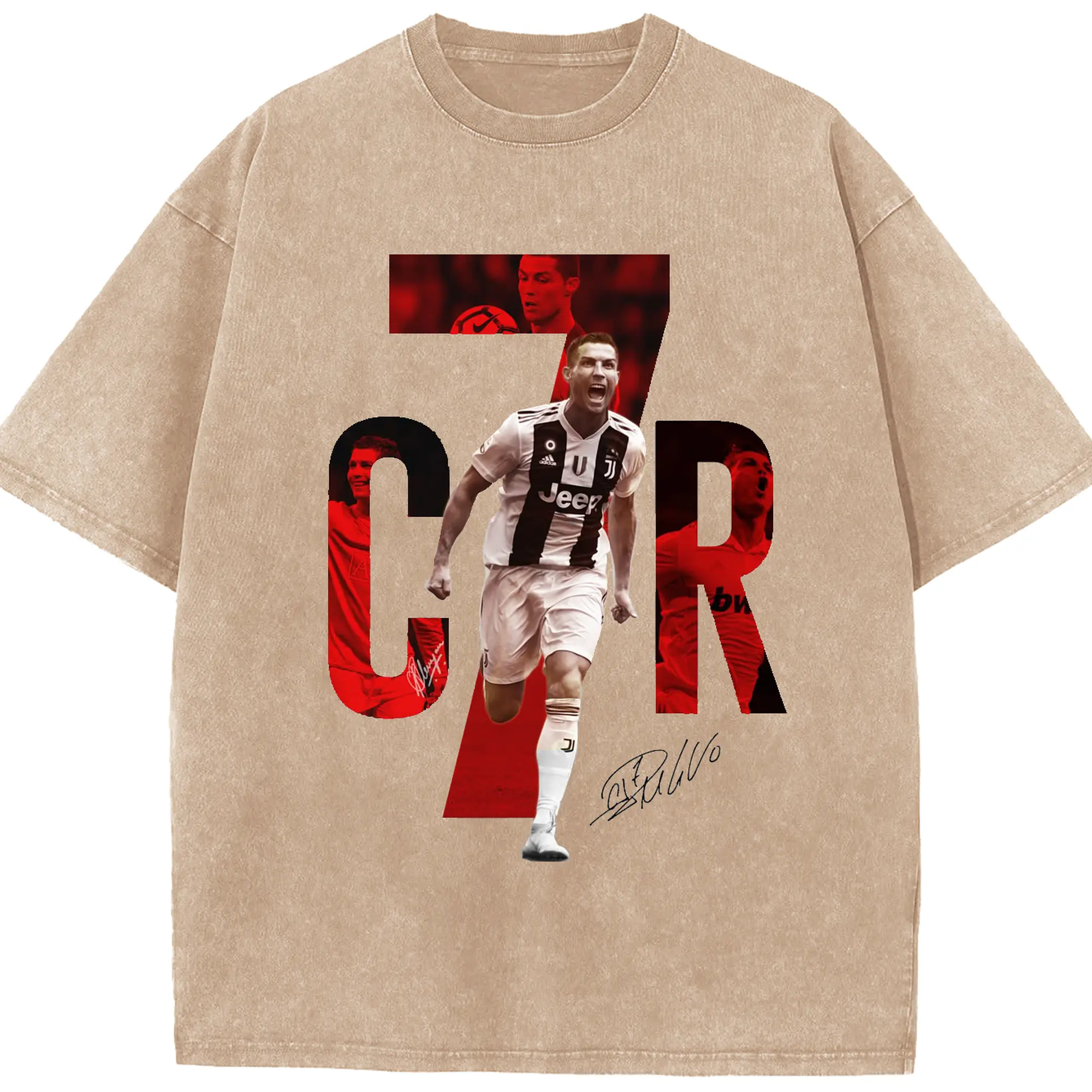 Cristiano Ronaldo CR7 Career Collage DIY Shirt - Washed Vintage Look 230g Cotton Oversized T-Shirt With Front Heat Transfer Print – Soft, Lightweight, Stylish Fit – Comfortable Casual Wear For Sports & Everyday Use