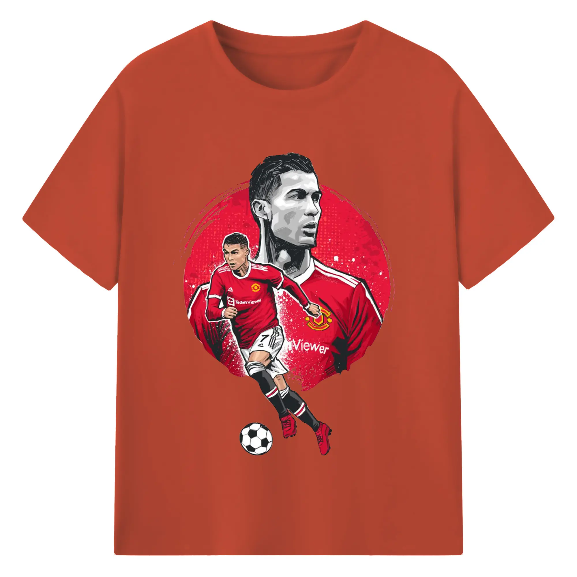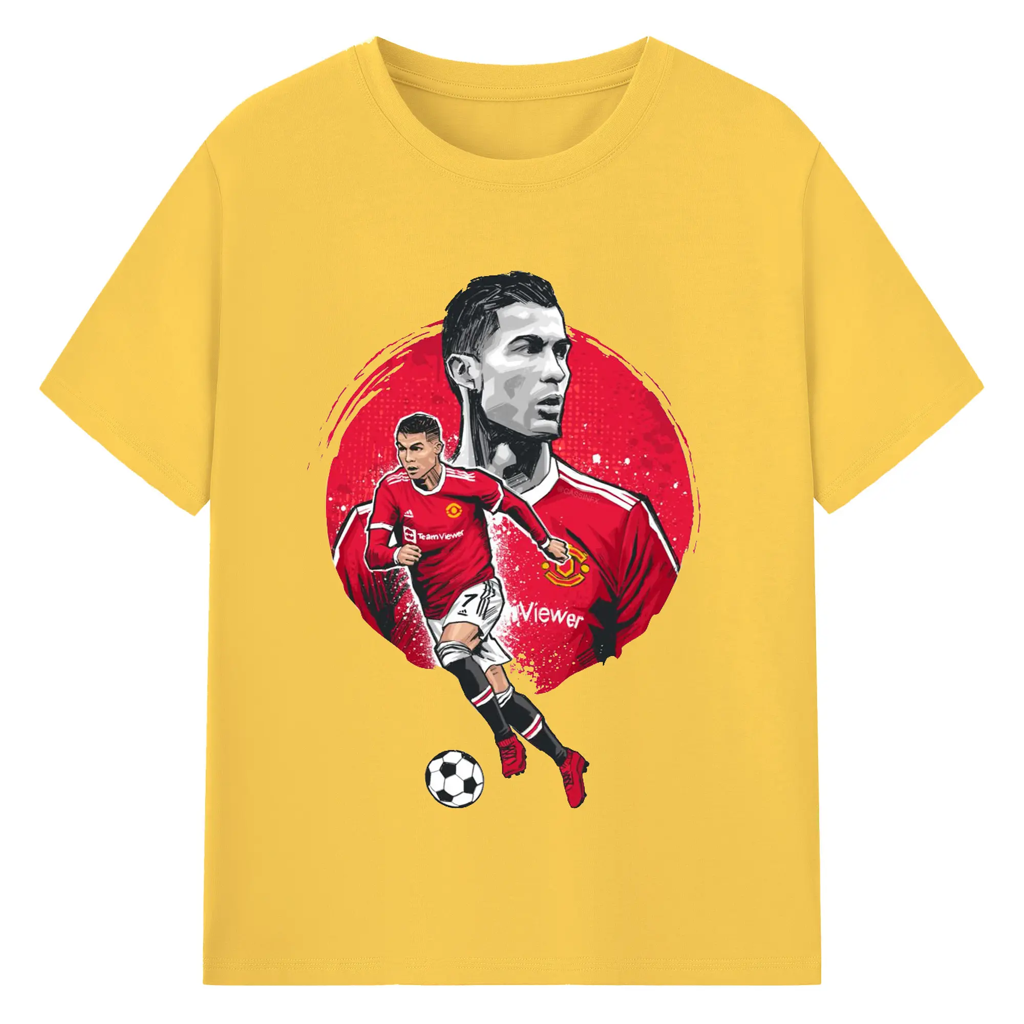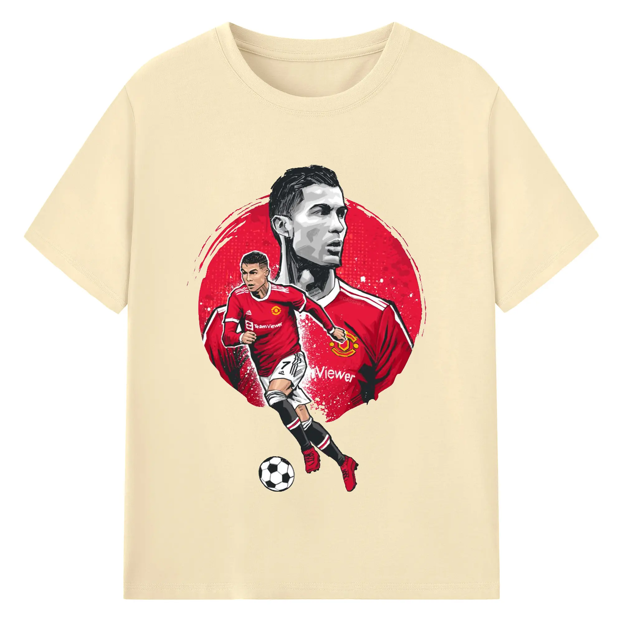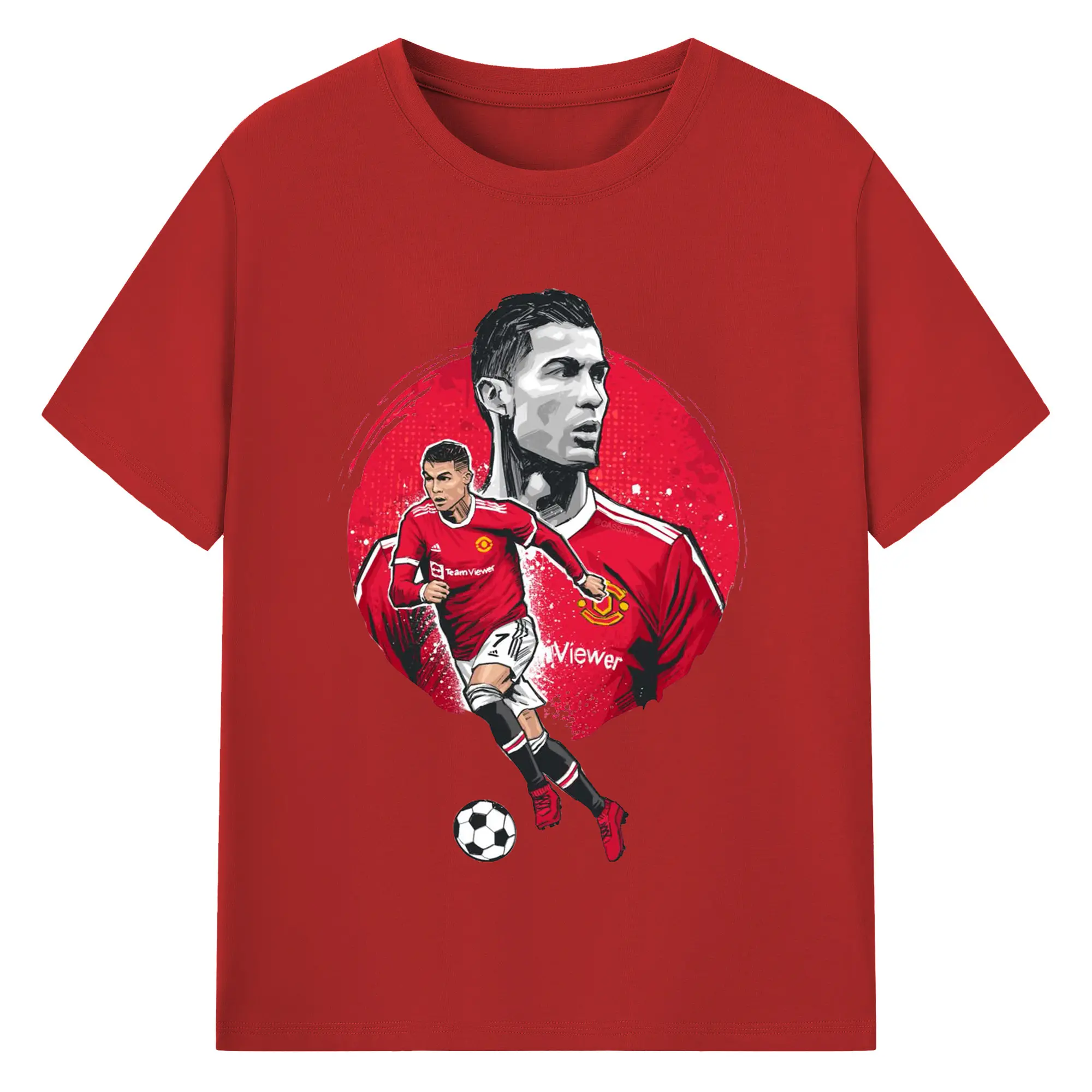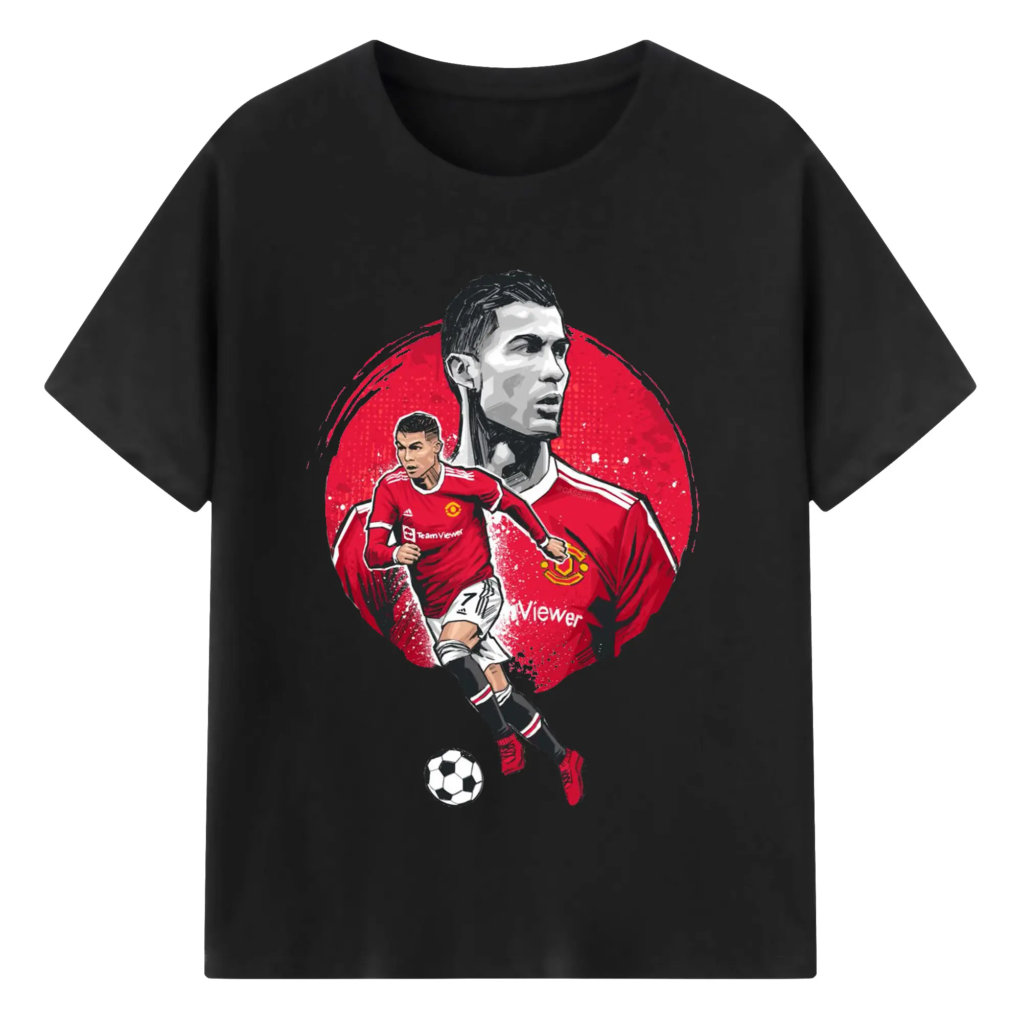 Cristiano Ronaldo Manchester United Soccer Art DIY Shirt - 180g Cotton T-Shirt With Front Heat Transfer Print – Soft, Lightweight, Fitted Design – Comfortable Casual Wear For Sports & Everyday Use