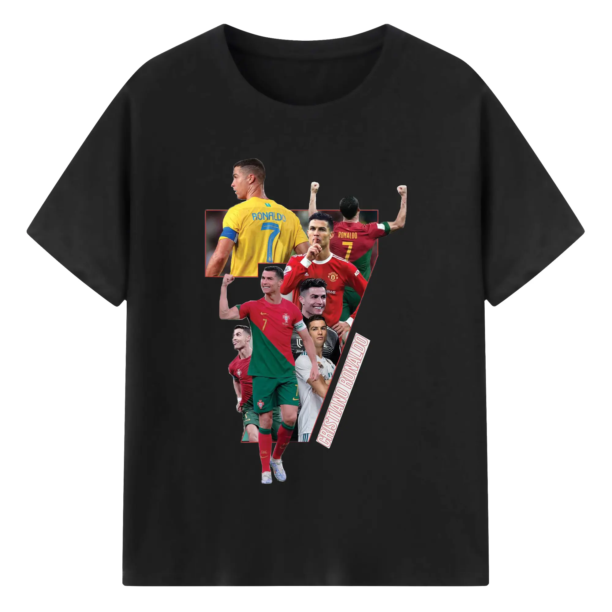 Cristiano Ronaldo Multi-Team Career Collage DIY Shirt - 180g Cotton T-Shirt With Front Heat Transfer Print – Soft, Lightweight, Fitted Design – Comfortable Casual Wear For Sports & Everyday Use