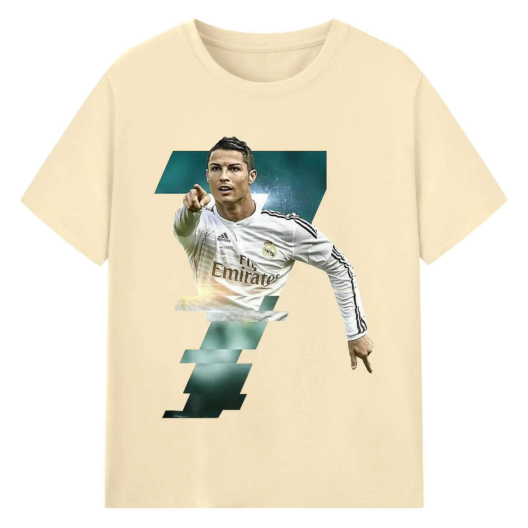 Cristiano Ronaldo Real Madrid Iconic Style DIY Shirt - 180g Cotton T-Shirt With Front Heat Transfer Print – Soft, Lightweight, Fitted Design – Comfortable Casual Wear For Sports & Everyday Use