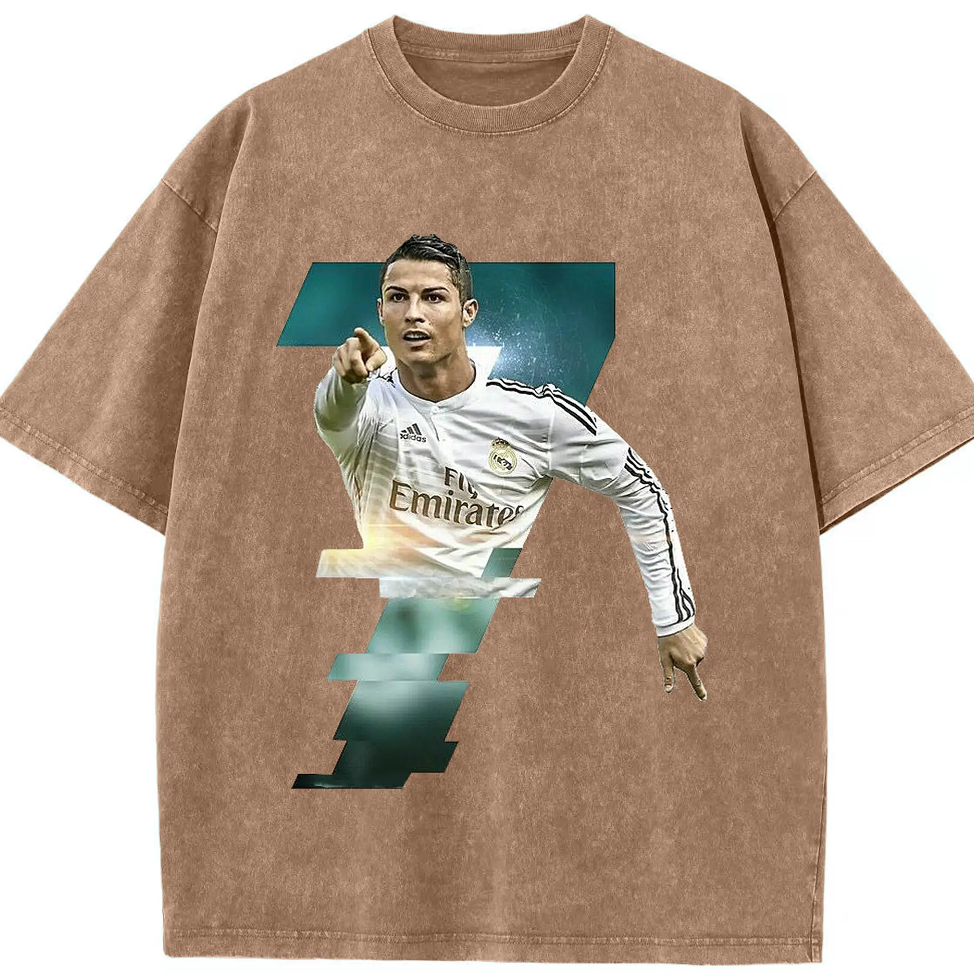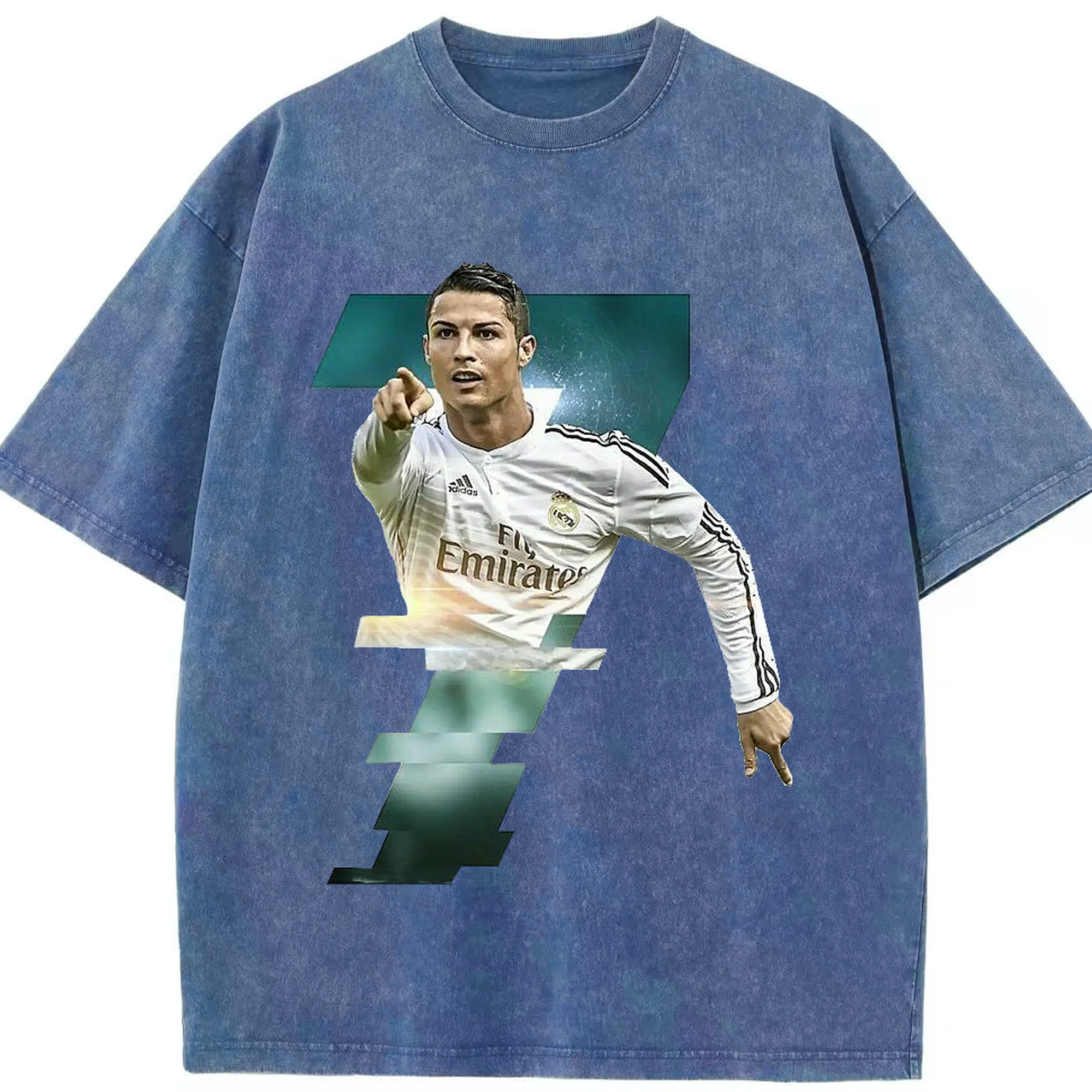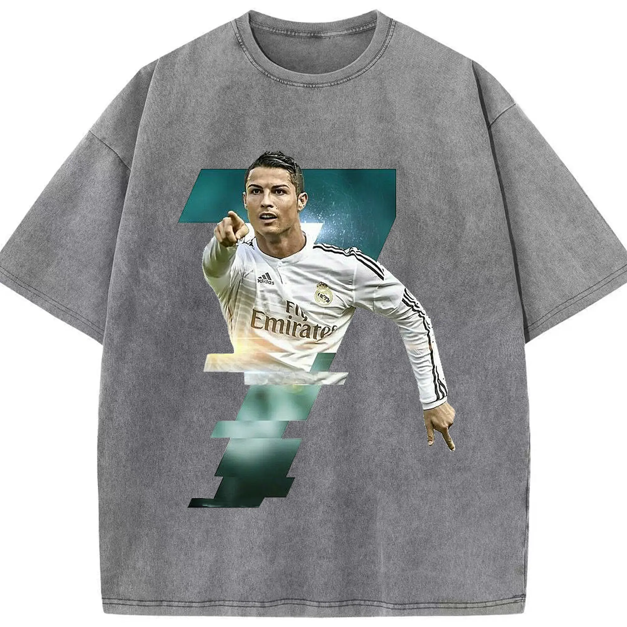 Cristiano Ronaldo Real Madrid Iconic Style DIY Shirt - Washed Vintage Look 230g Cotton Oversized T-Shirt With Front Heat Transfer Print – Soft, Lightweight, Stylish Fit – Comfortable Casual Wear For Sports & Everyday Use