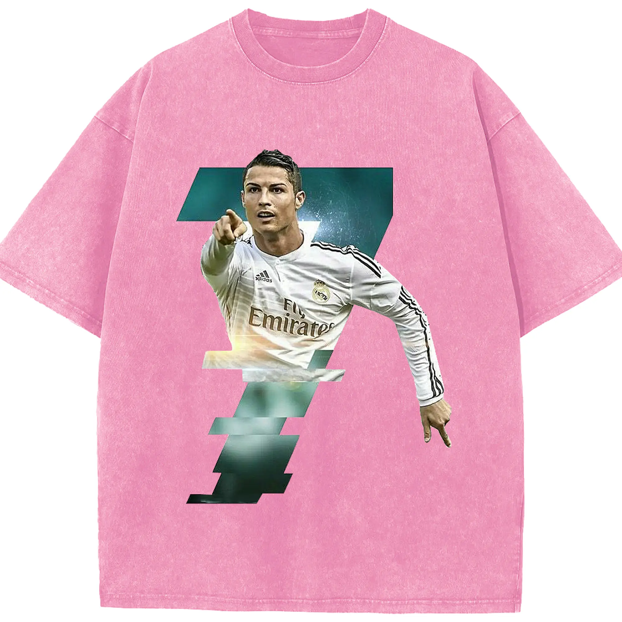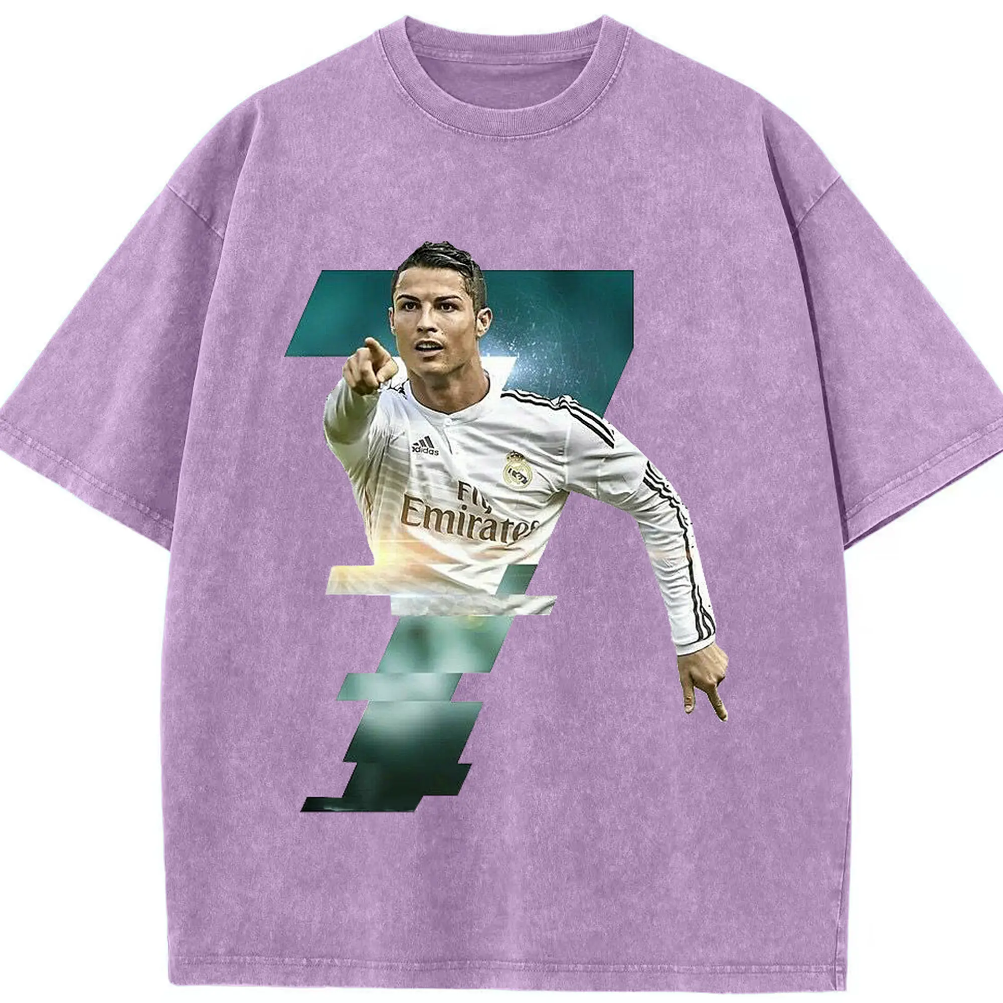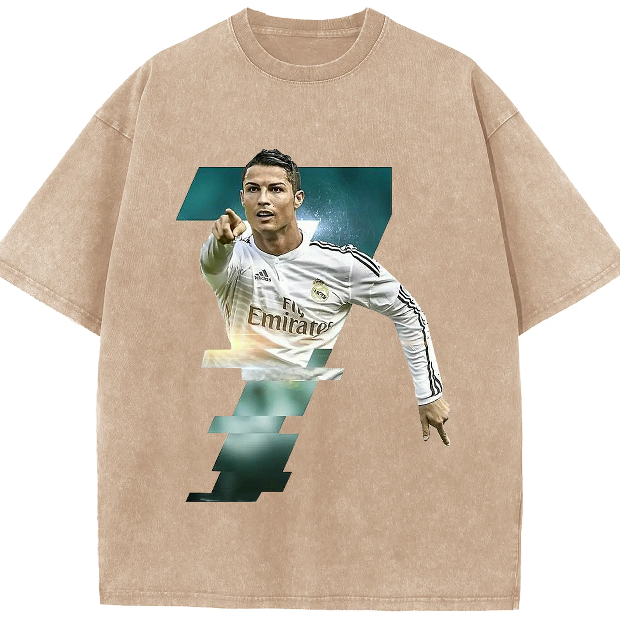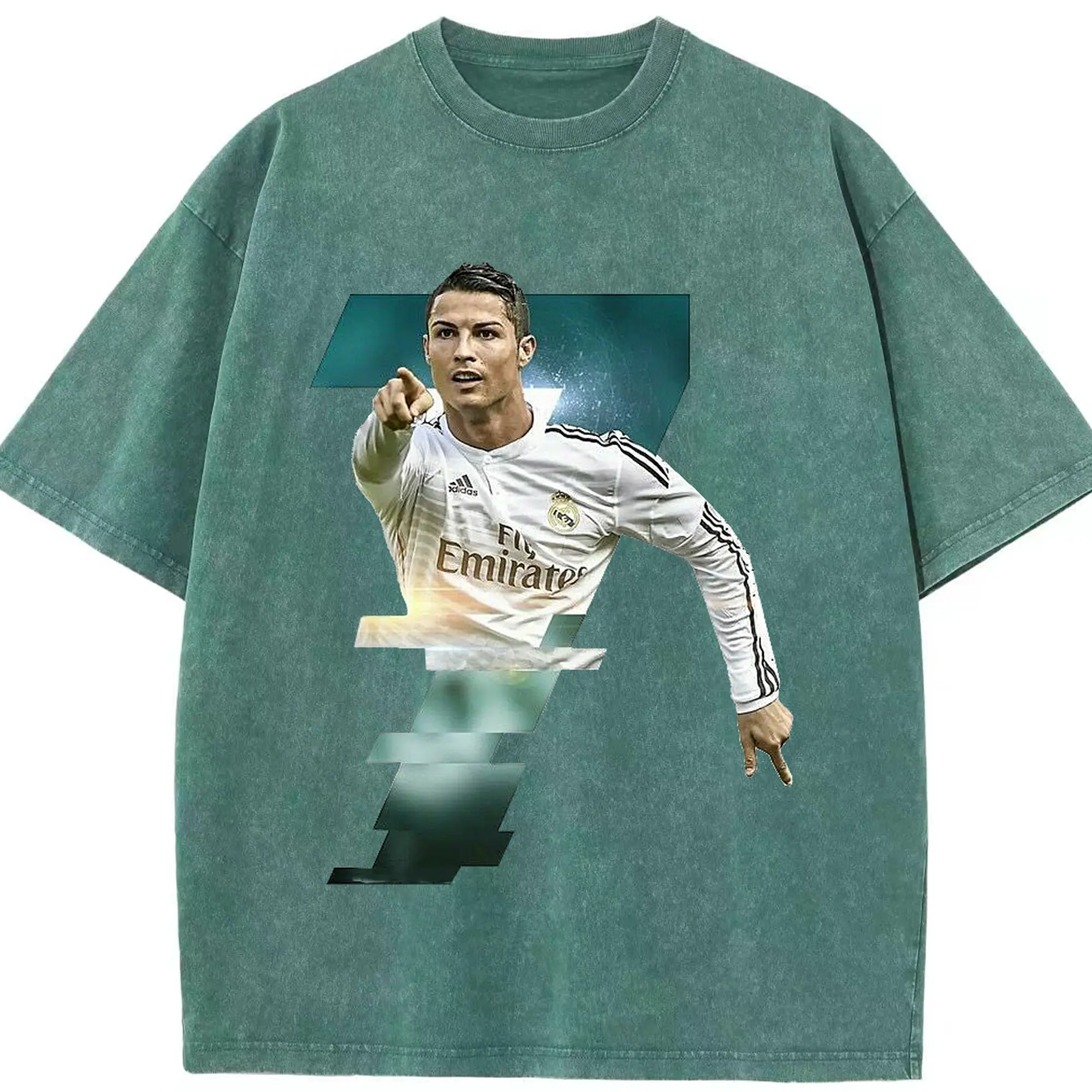 Cristiano Ronaldo Real Madrid Iconic Style DIY Shirt - Washed Vintage Look 230g Cotton Oversized T-Shirt With Front Heat Transfer Print – Soft, Lightweight, Stylish Fit – Comfortable Casual Wear For Sports & Everyday Use