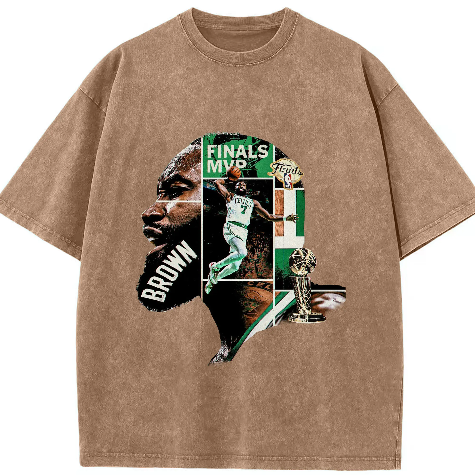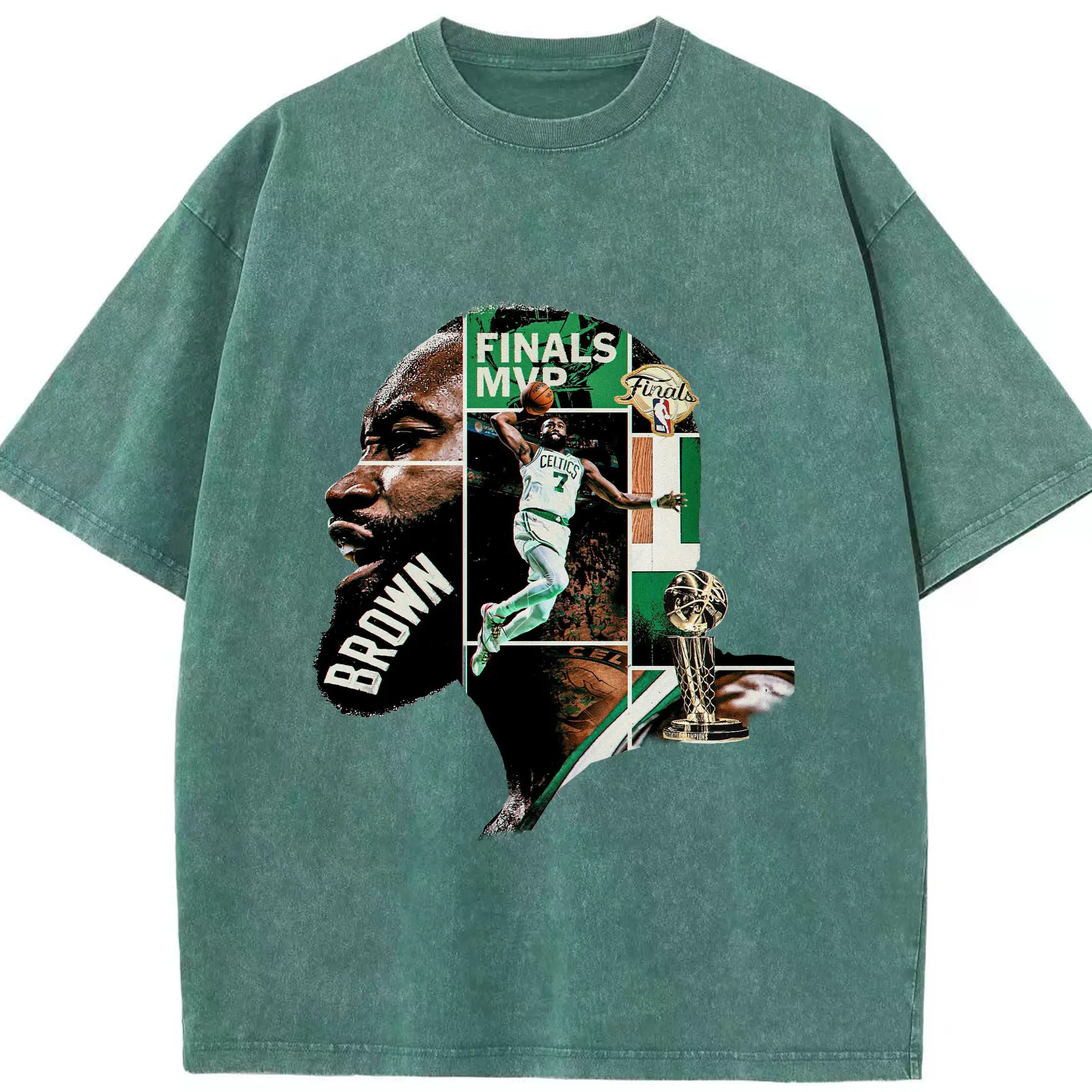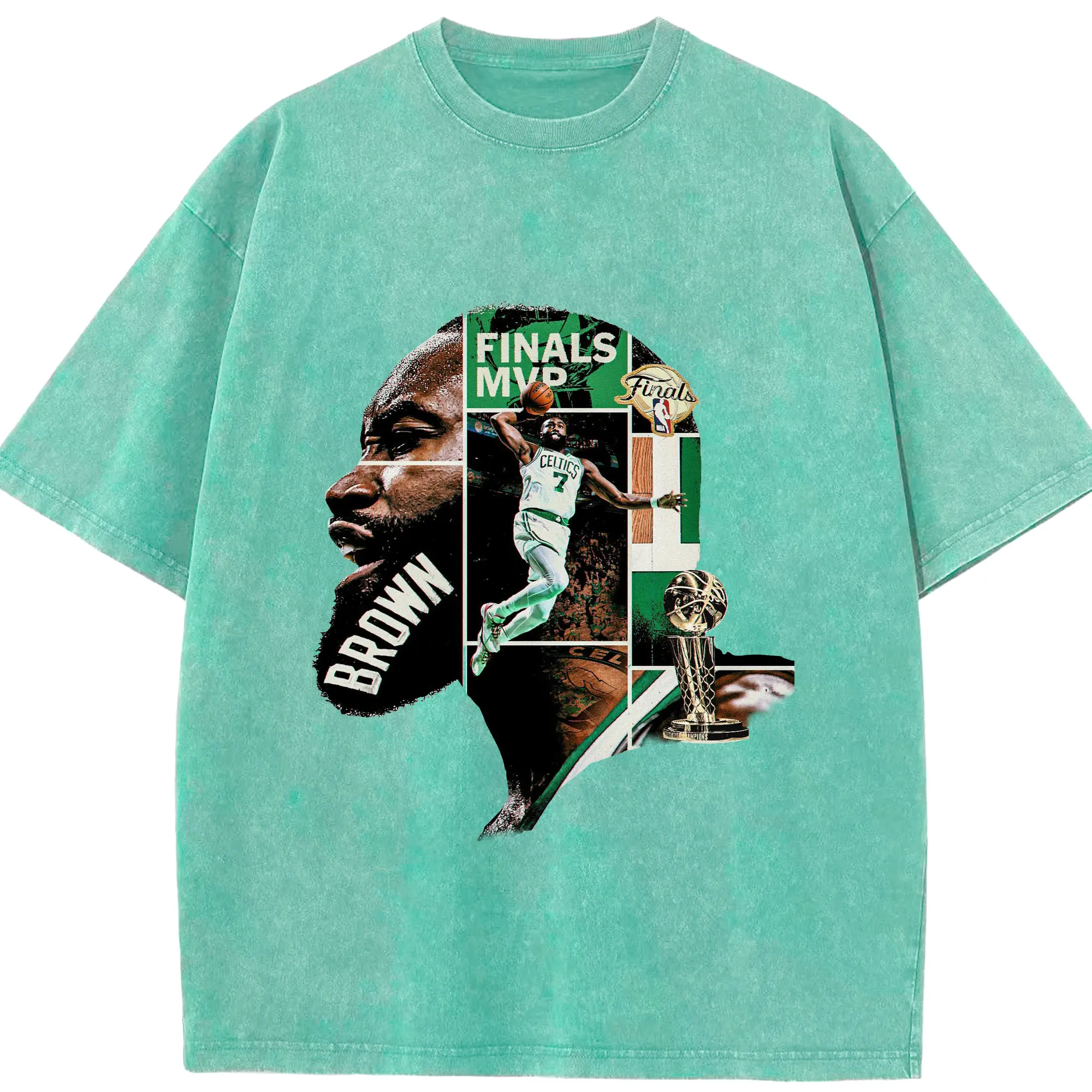 “Crowned in Silence” Jaylen Brown Silhouette FMVP Shirt - Washed Vintage Look 230g Cotton Oversized T-Shirt With Front Heat Transfer Print – Soft, Lightweight, Stylish Fit – Comfortable Casual Wear For Sports & Everyday Use