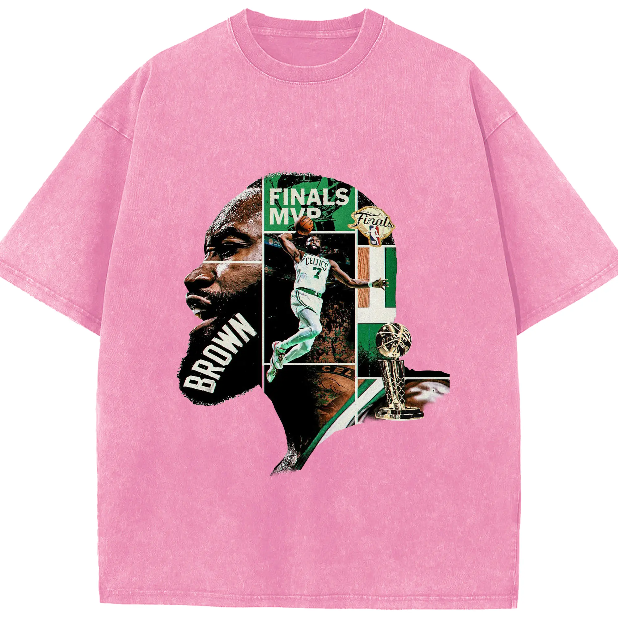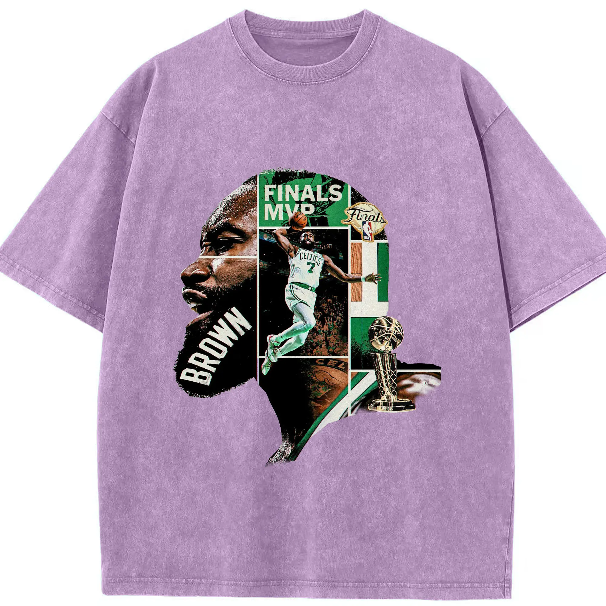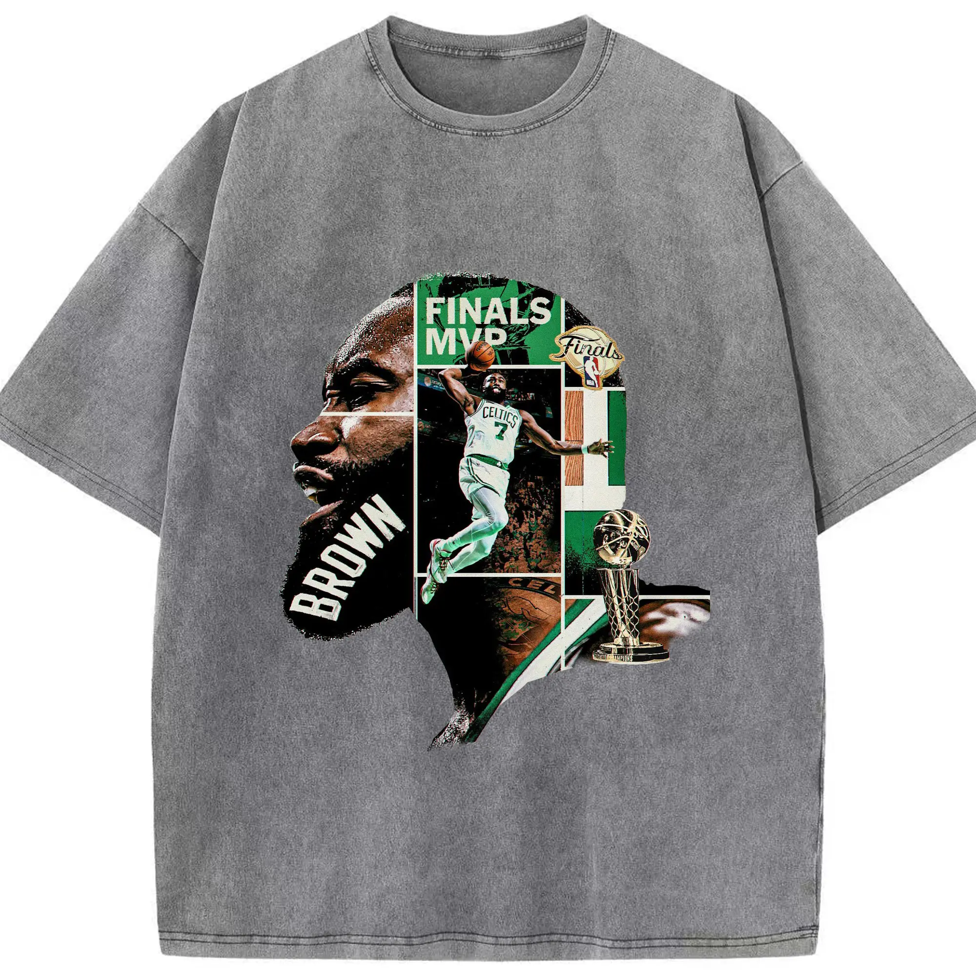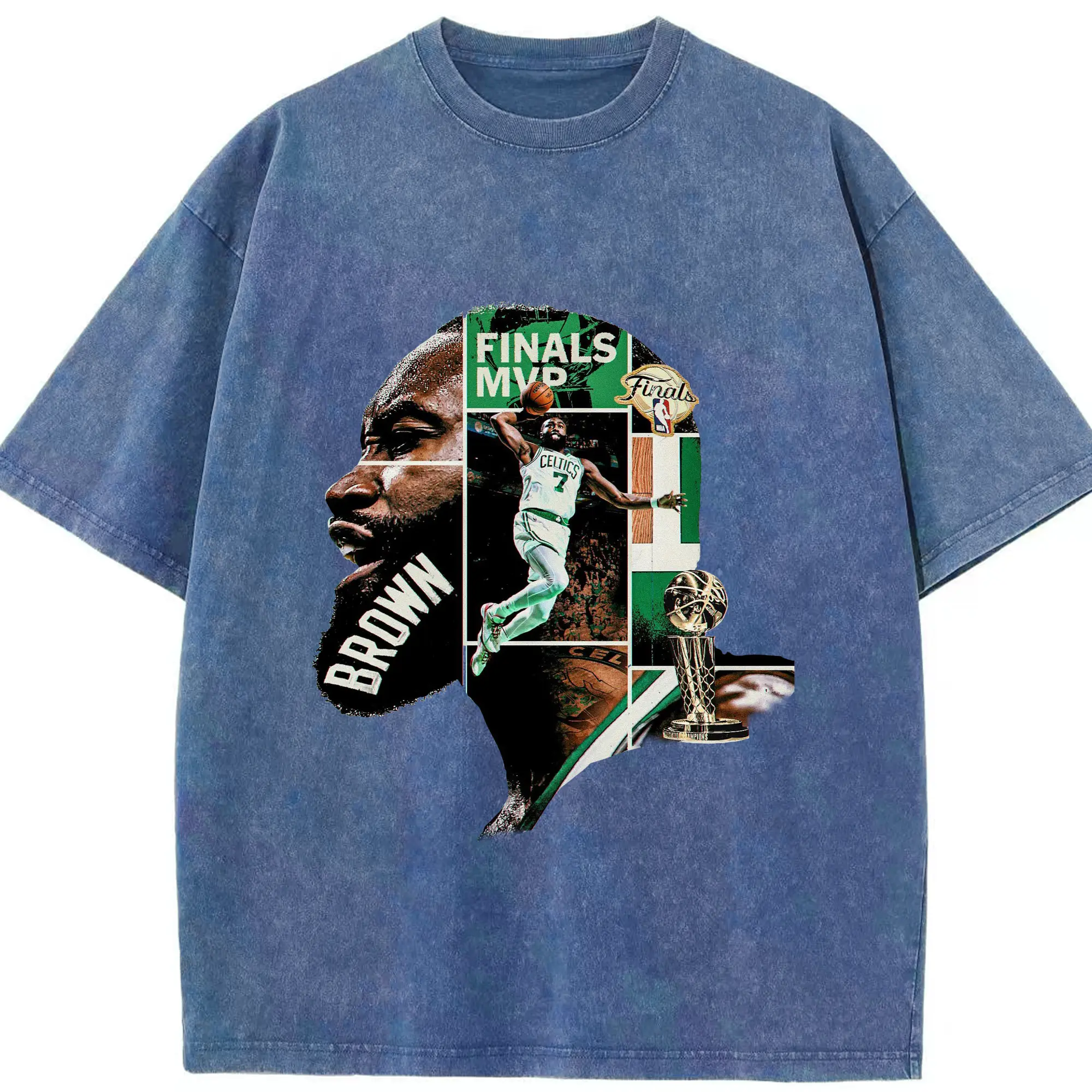 “Crowned in Silence” Jaylen Brown Silhouette FMVP Shirt - Washed Vintage Look 230g Cotton Oversized T-Shirt With Front Heat Transfer Print – Soft, Lightweight, Stylish Fit – Comfortable Casual Wear For Sports & Everyday Use