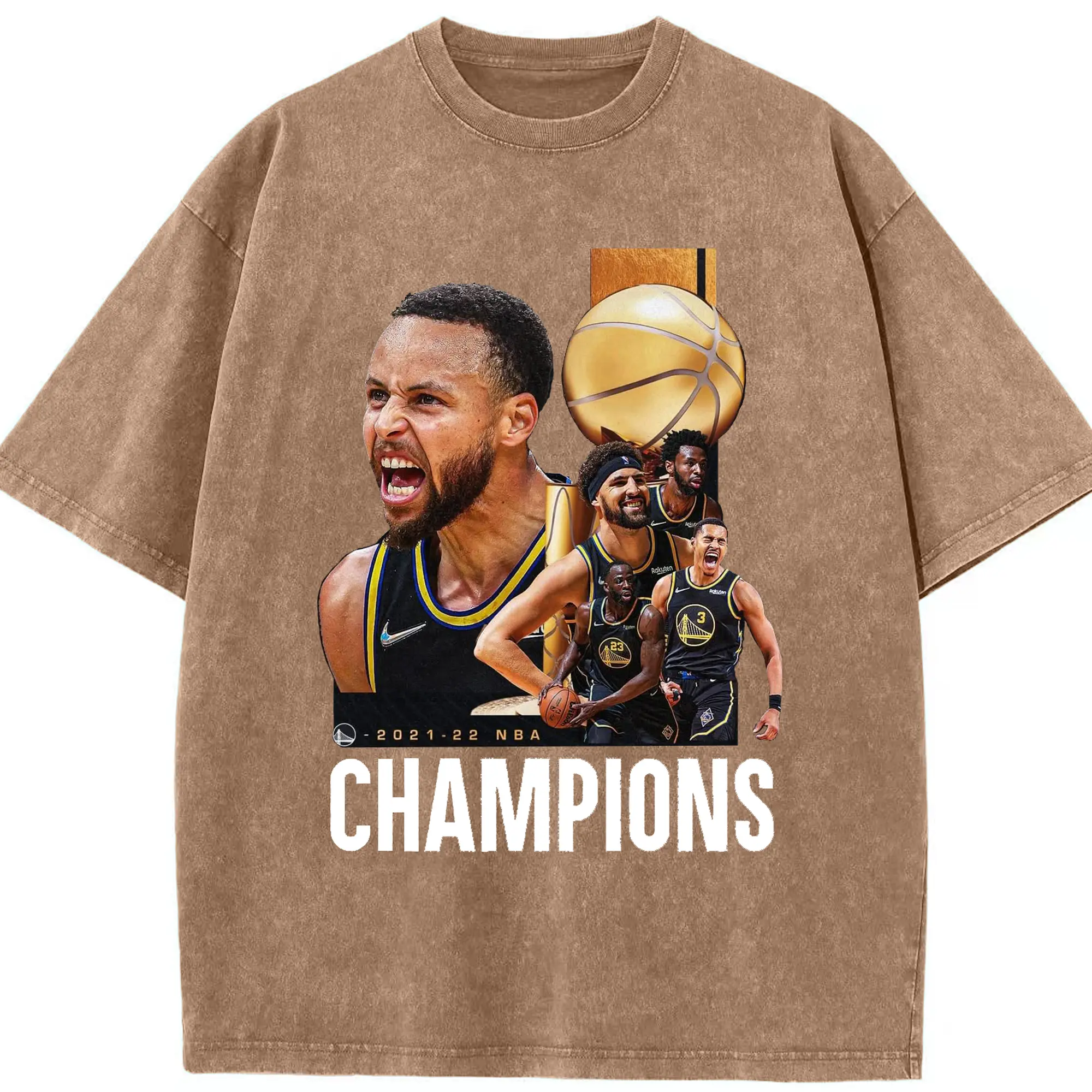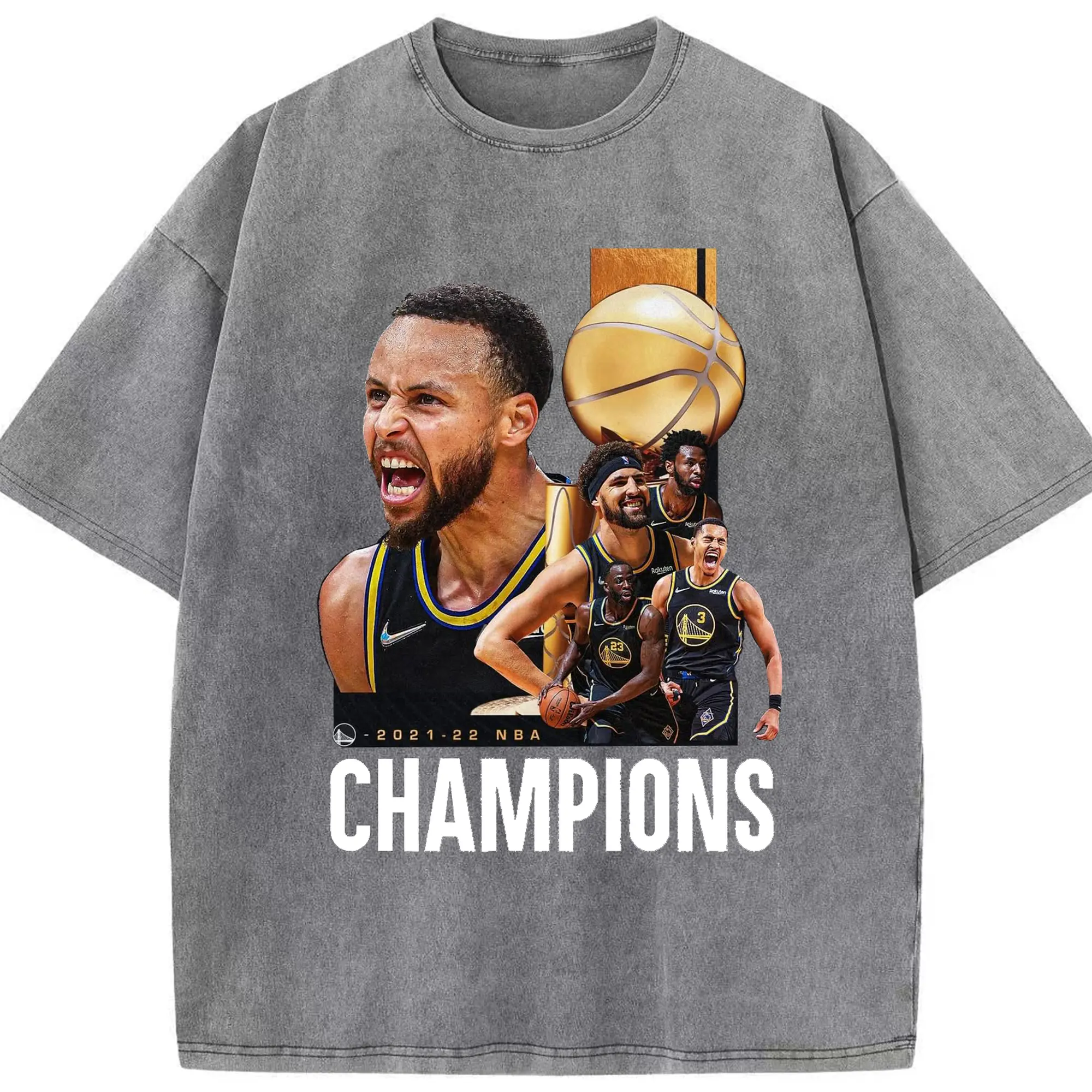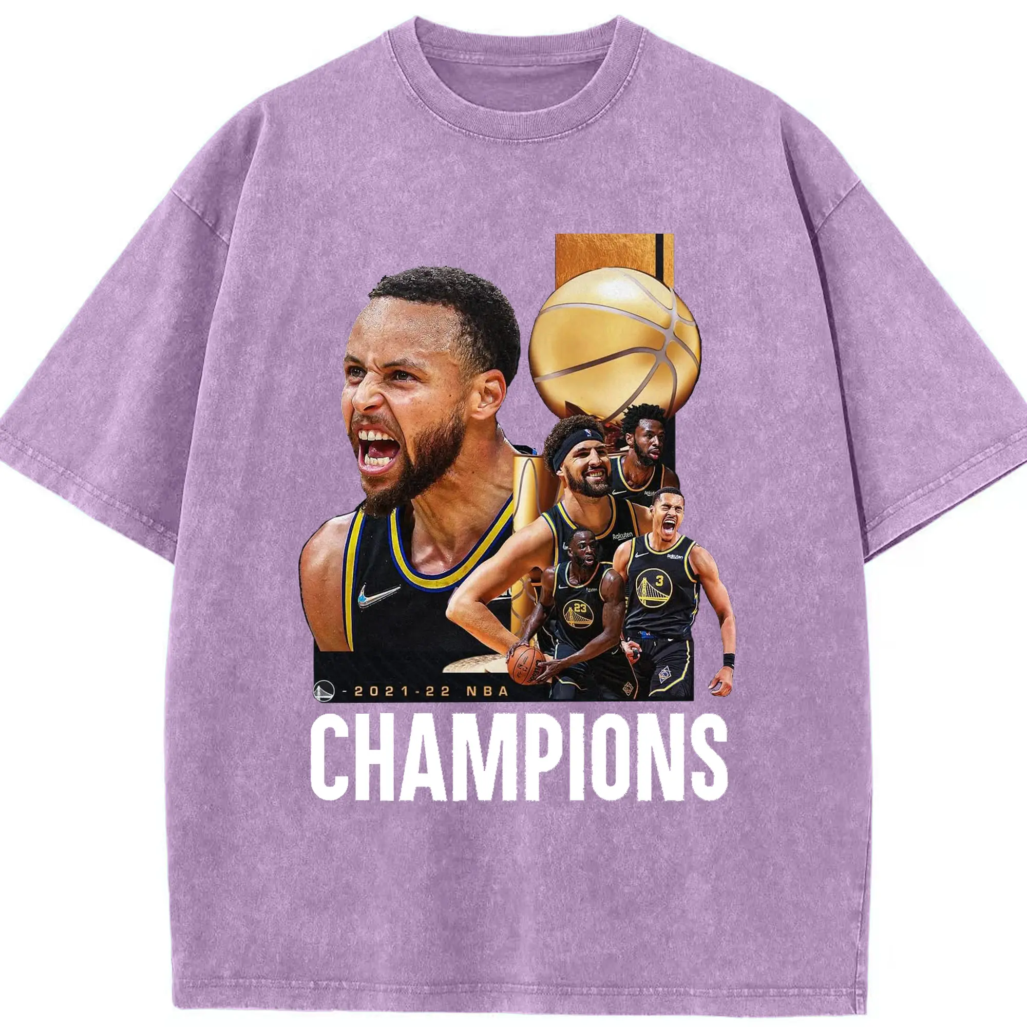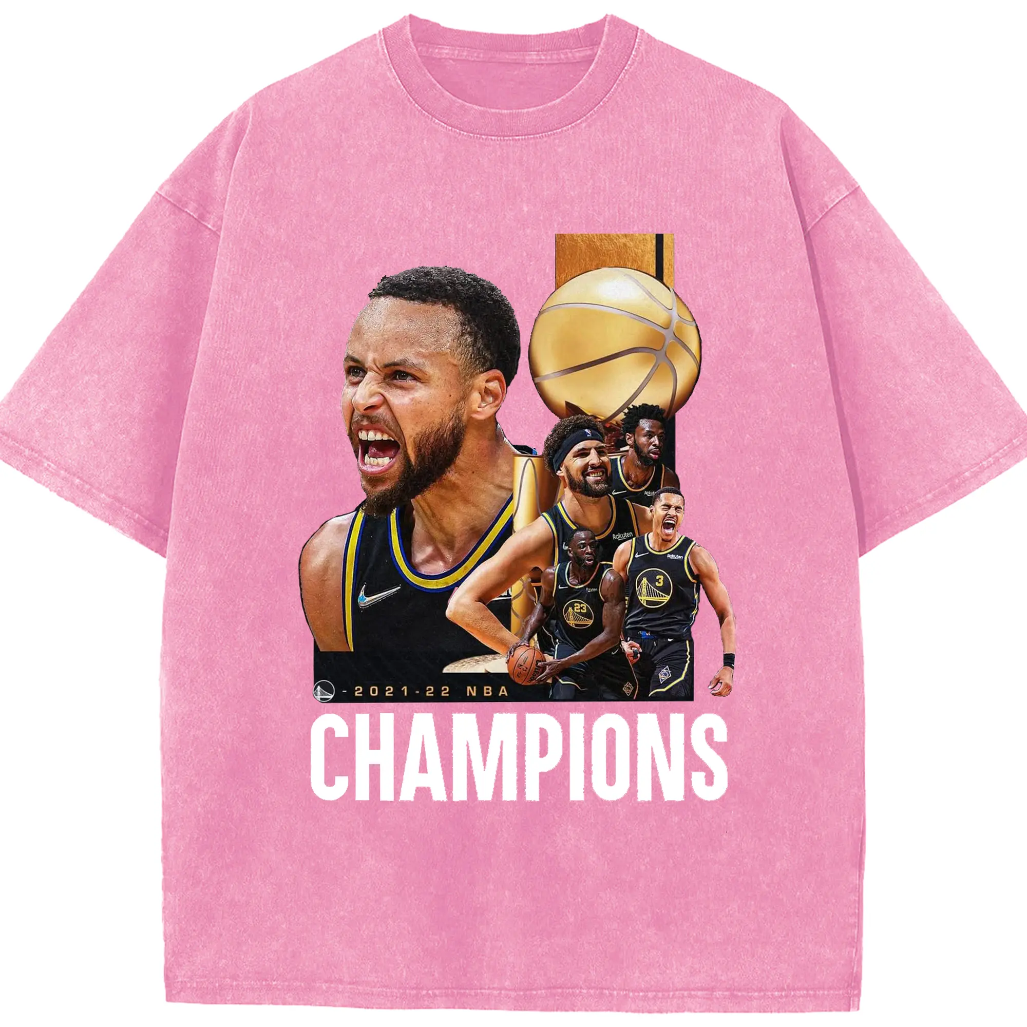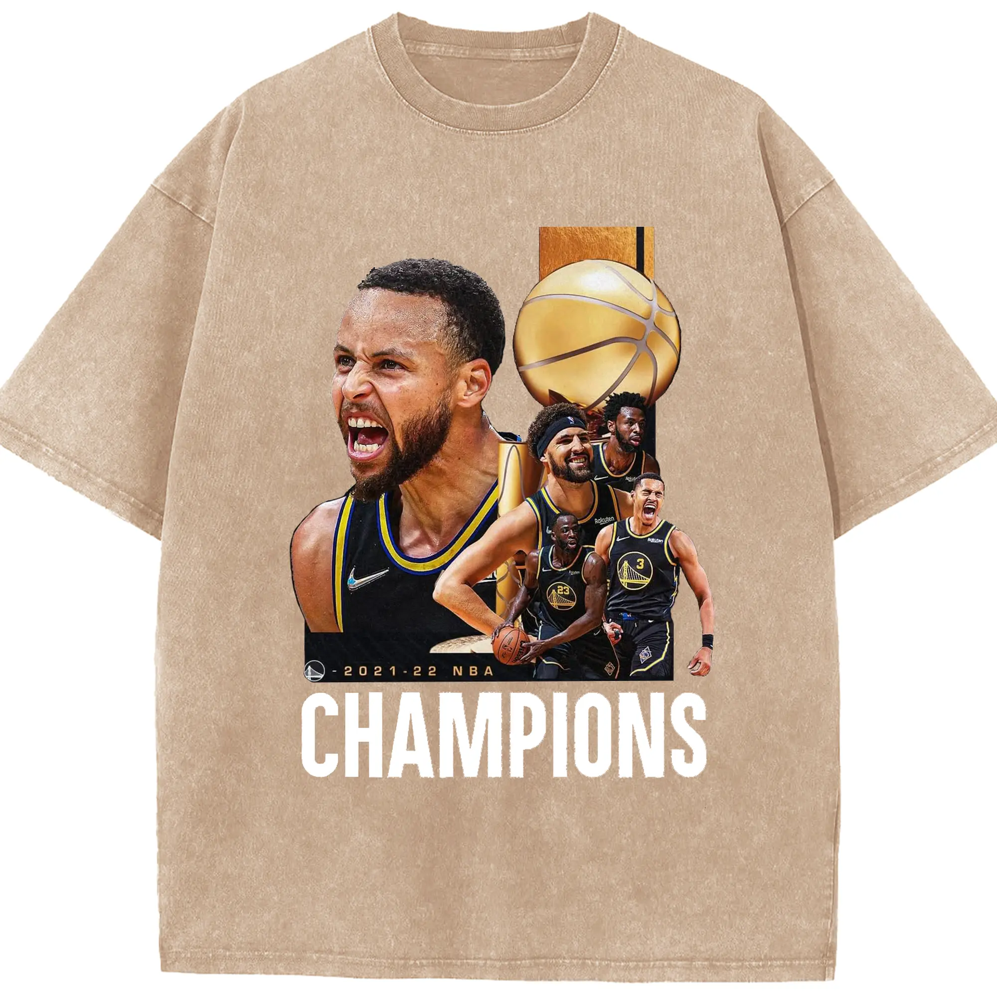 Curry & Warriors Dynasty 2022 Championship Shirt - Washed Vintage Look 230g Cotton Oversized T-Shirt With Front Heat Transfer Print – Soft, Lightweight, Stylish Fit – Comfortable Casual Wear For Sports & Everyday Use