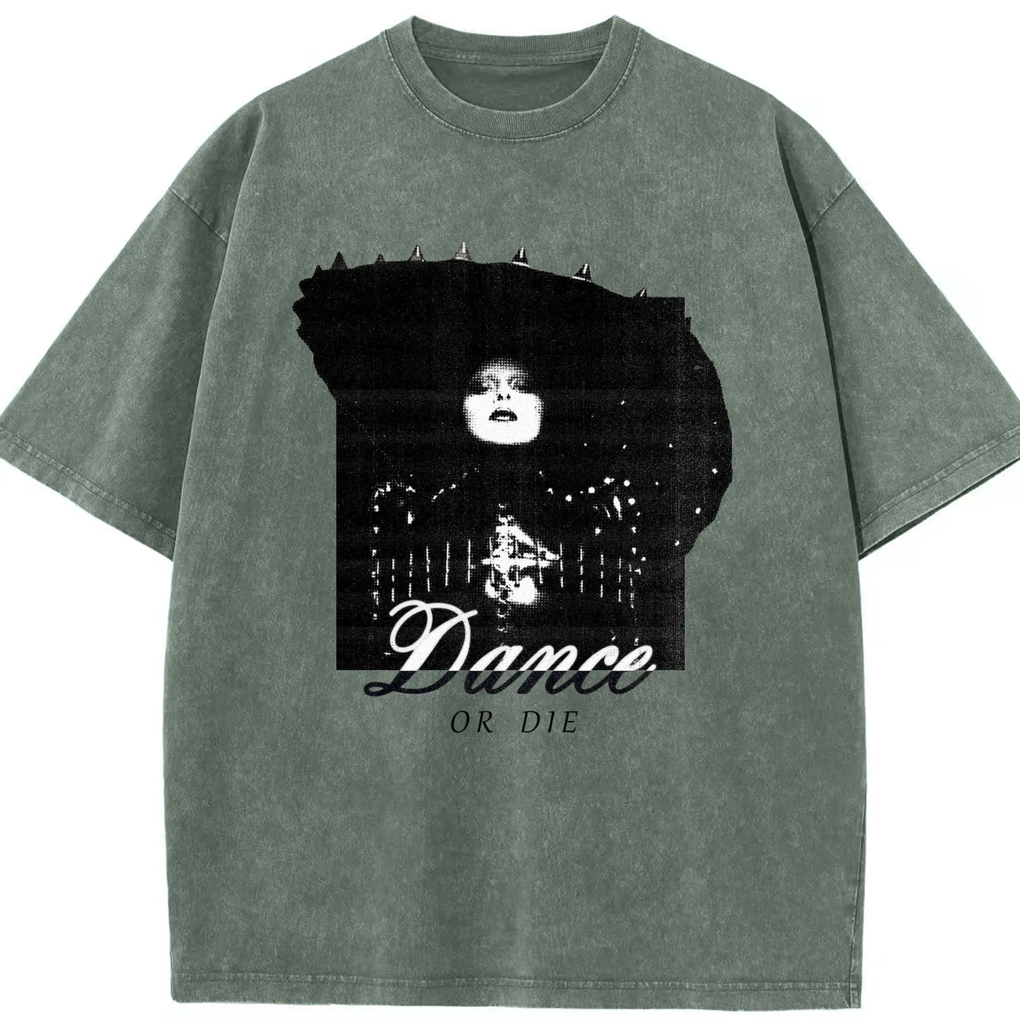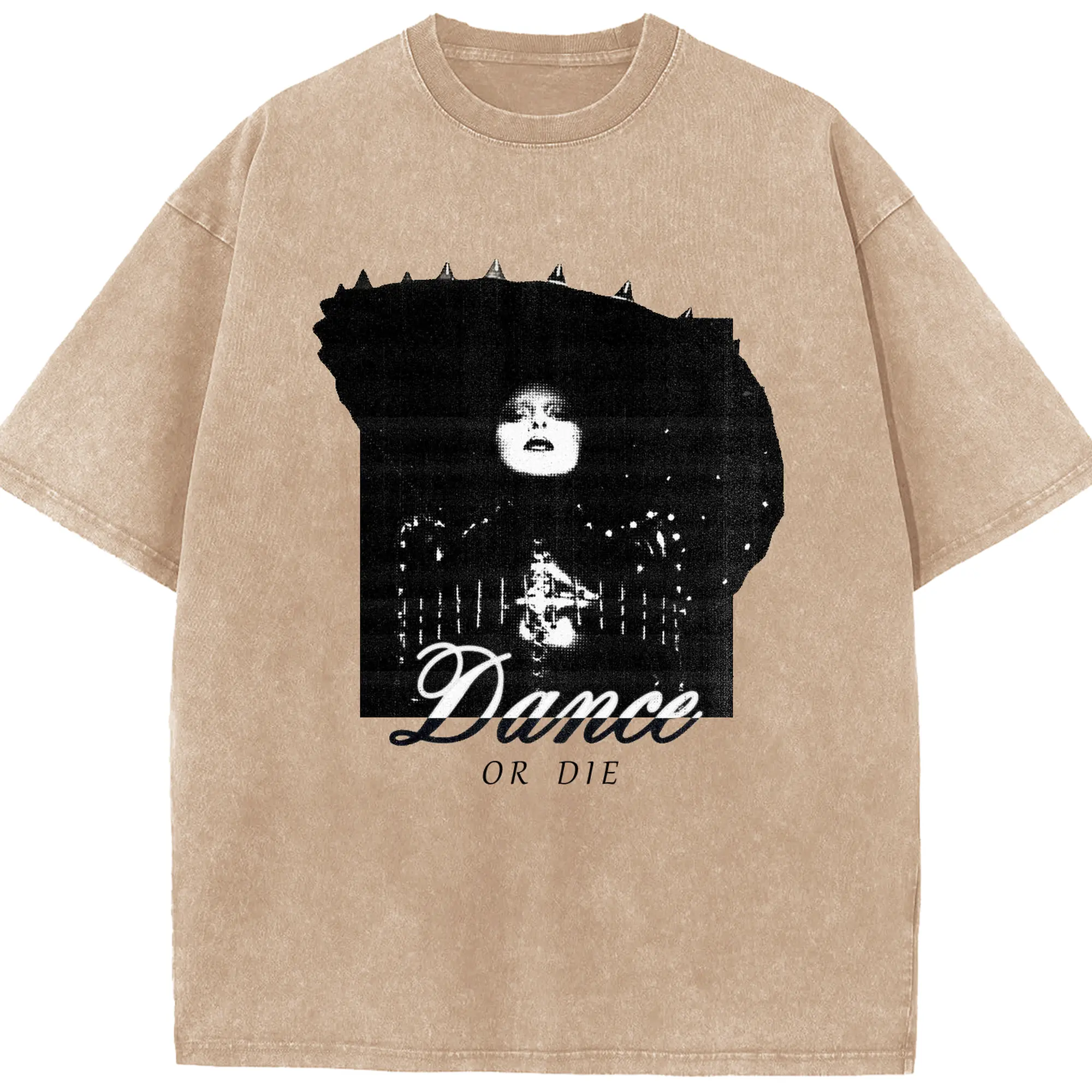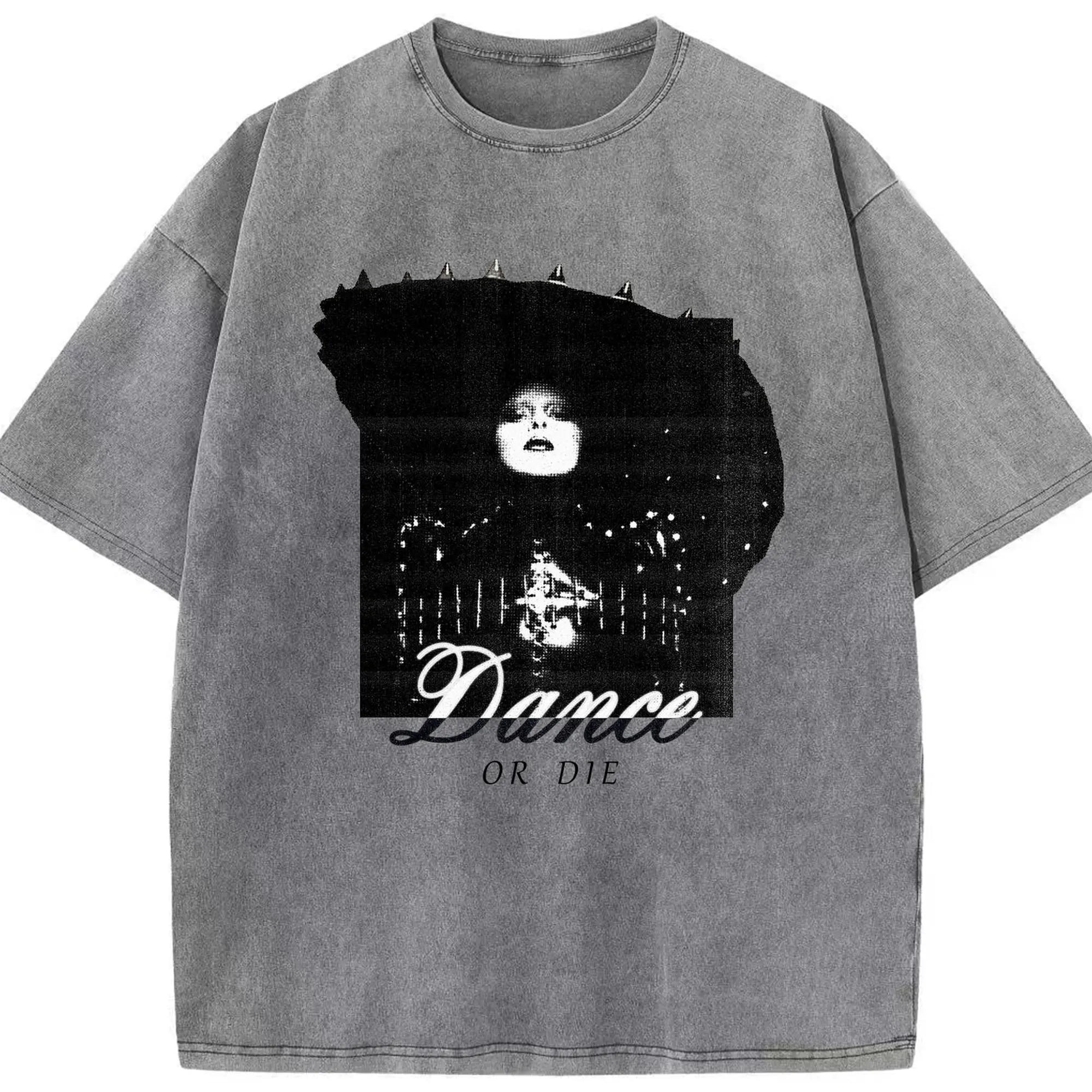 Dark Avant-Garde “Dance OR Die” DIY - Washed Vintage Look 230g Cotton Oversized T-Shirt With Front Heat Transfer Print – Soft, Lightweight, Stylish Fit – Comfortable Casual Wear For Sports & Everyday Use