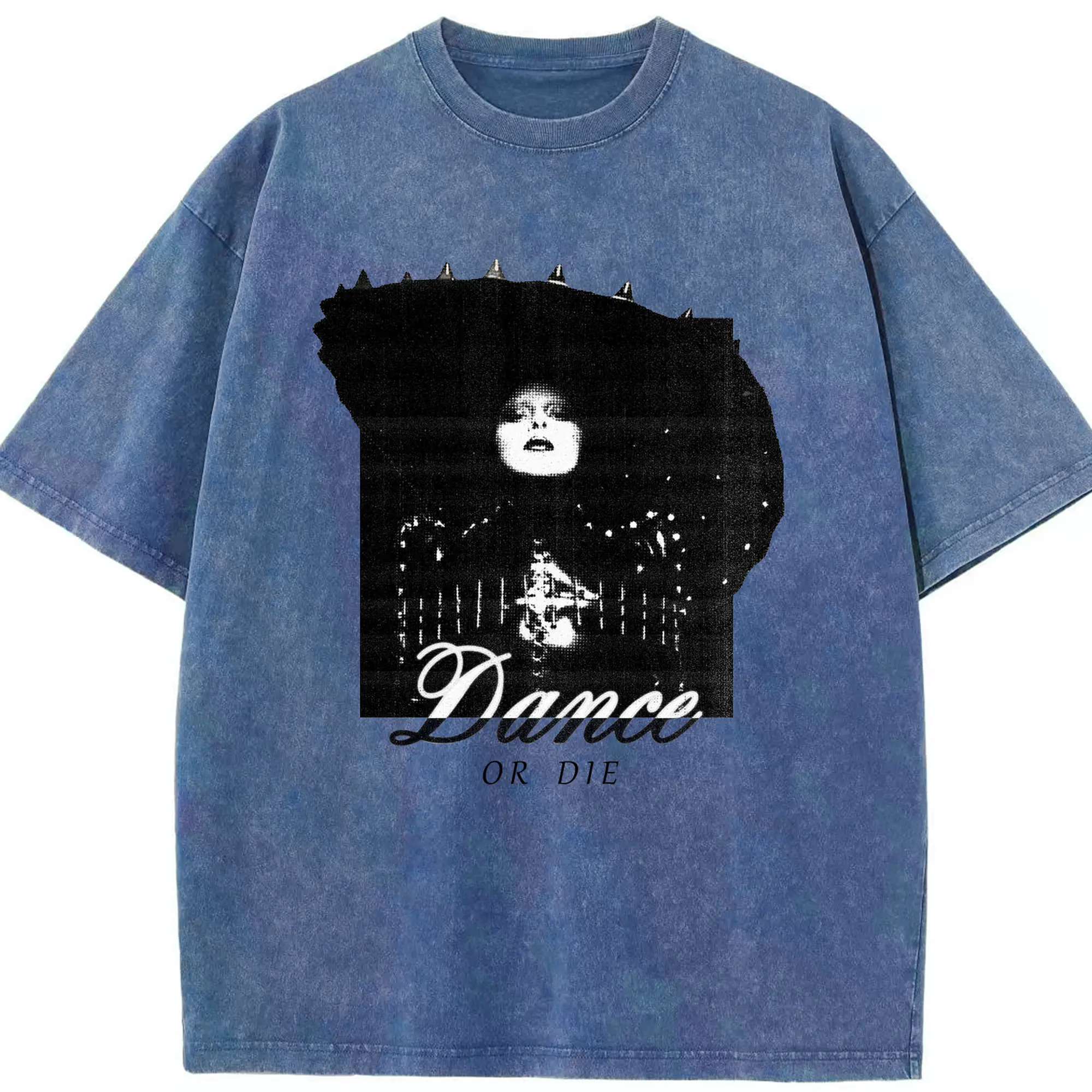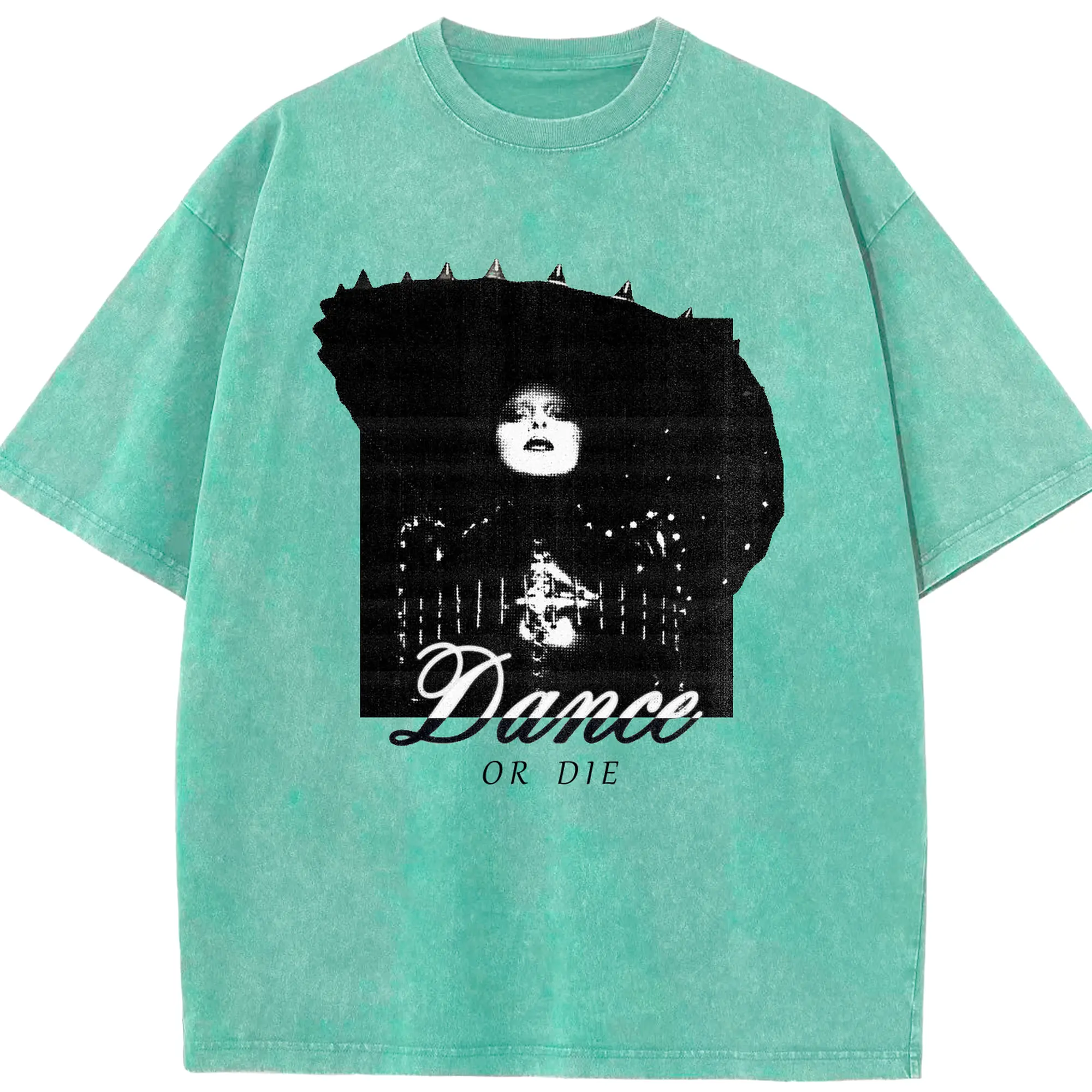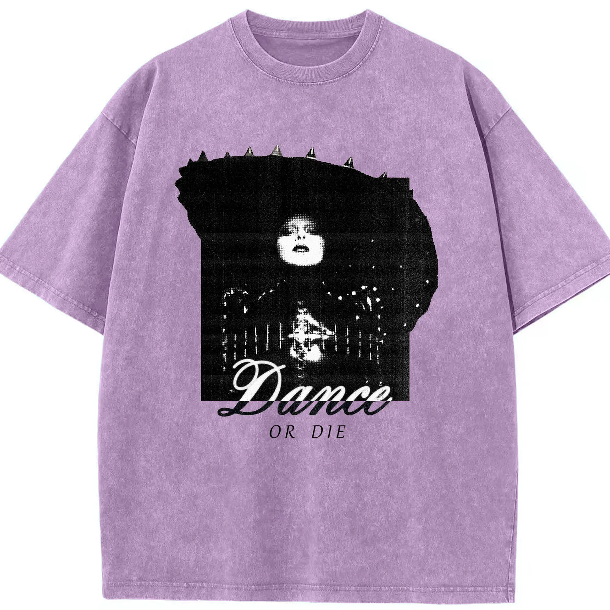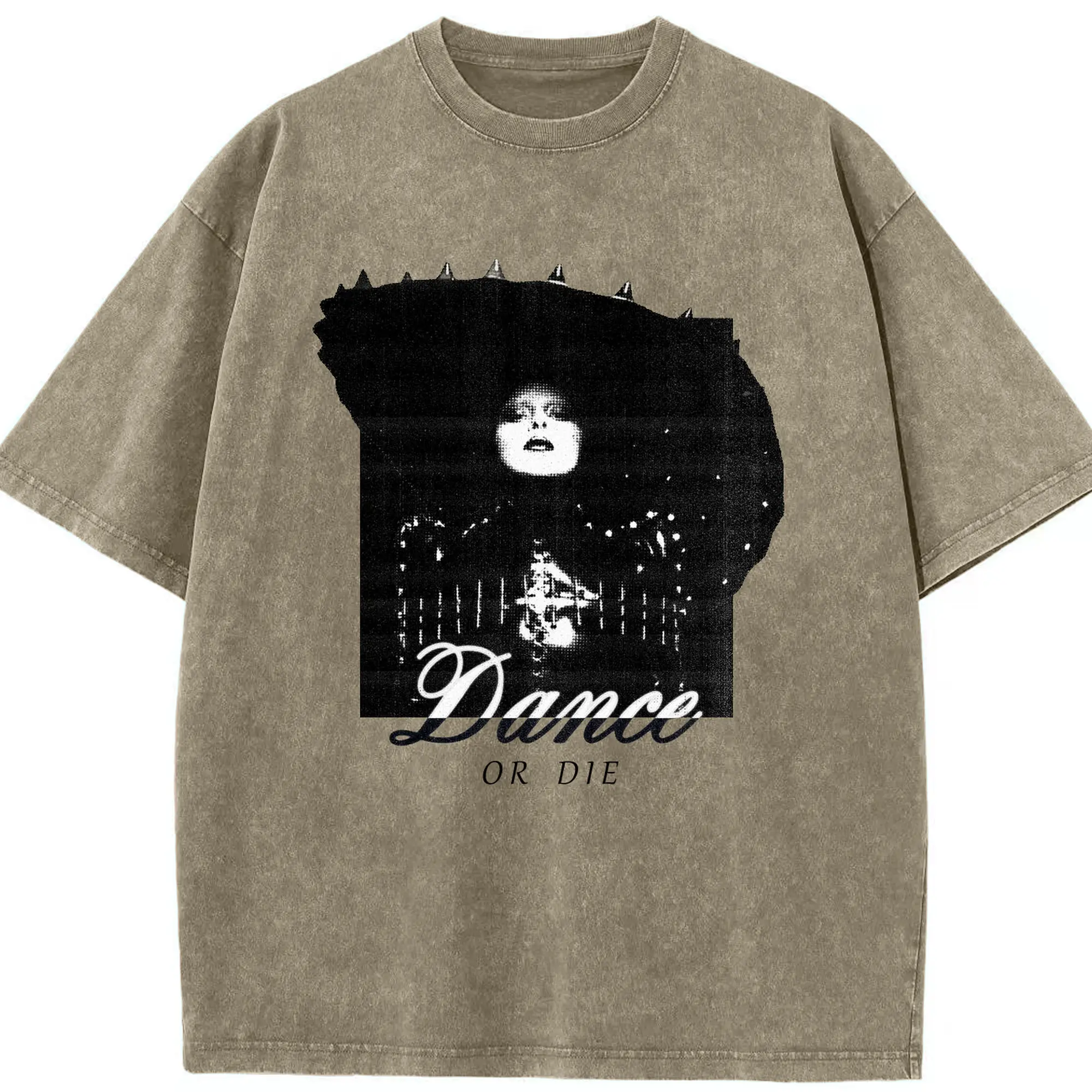 Dark Avant-Garde “Dance OR Die” DIY - Washed Vintage Look 230g Cotton Oversized T-Shirt With Front Heat Transfer Print – Soft, Lightweight, Stylish Fit – Comfortable Casual Wear For Sports & Everyday Use