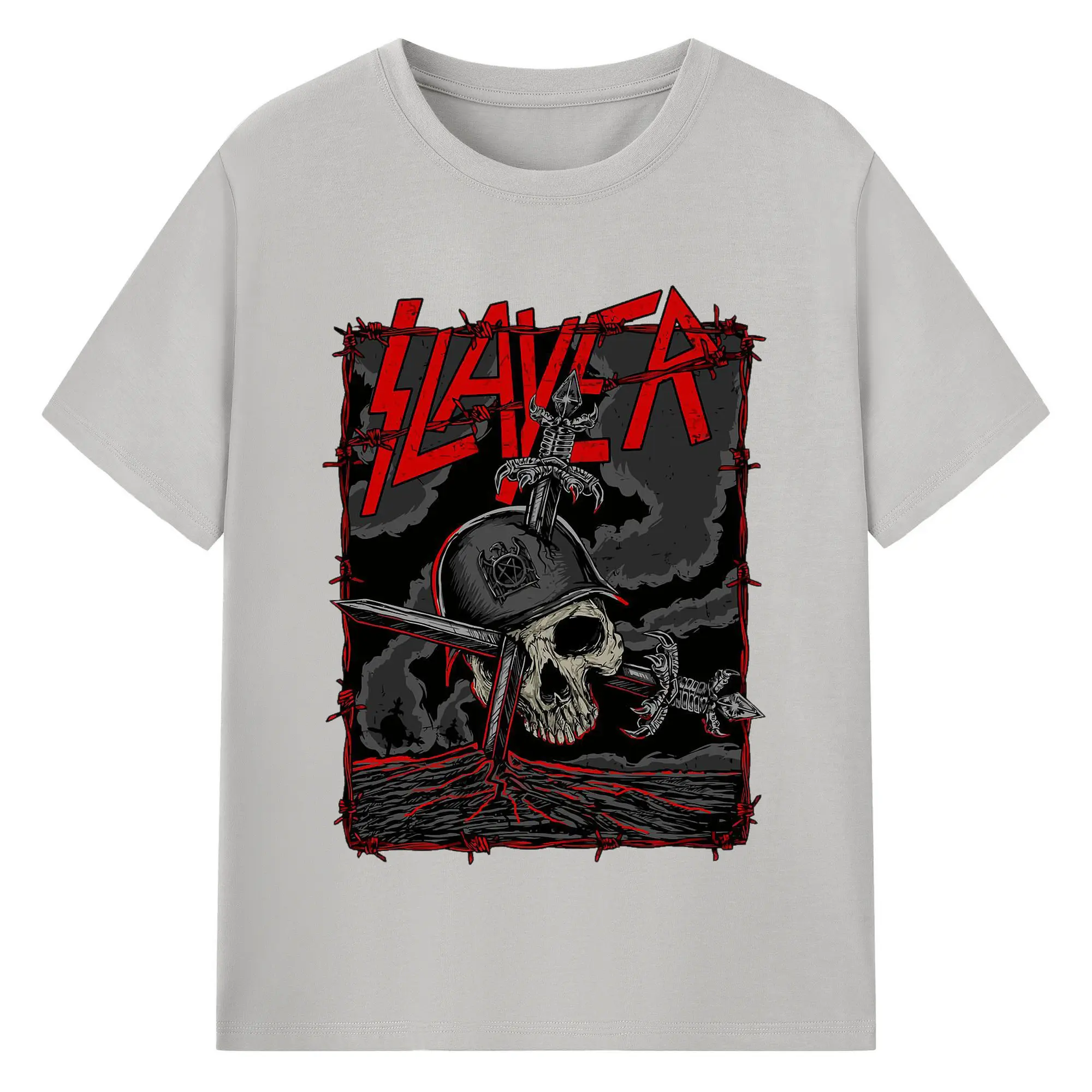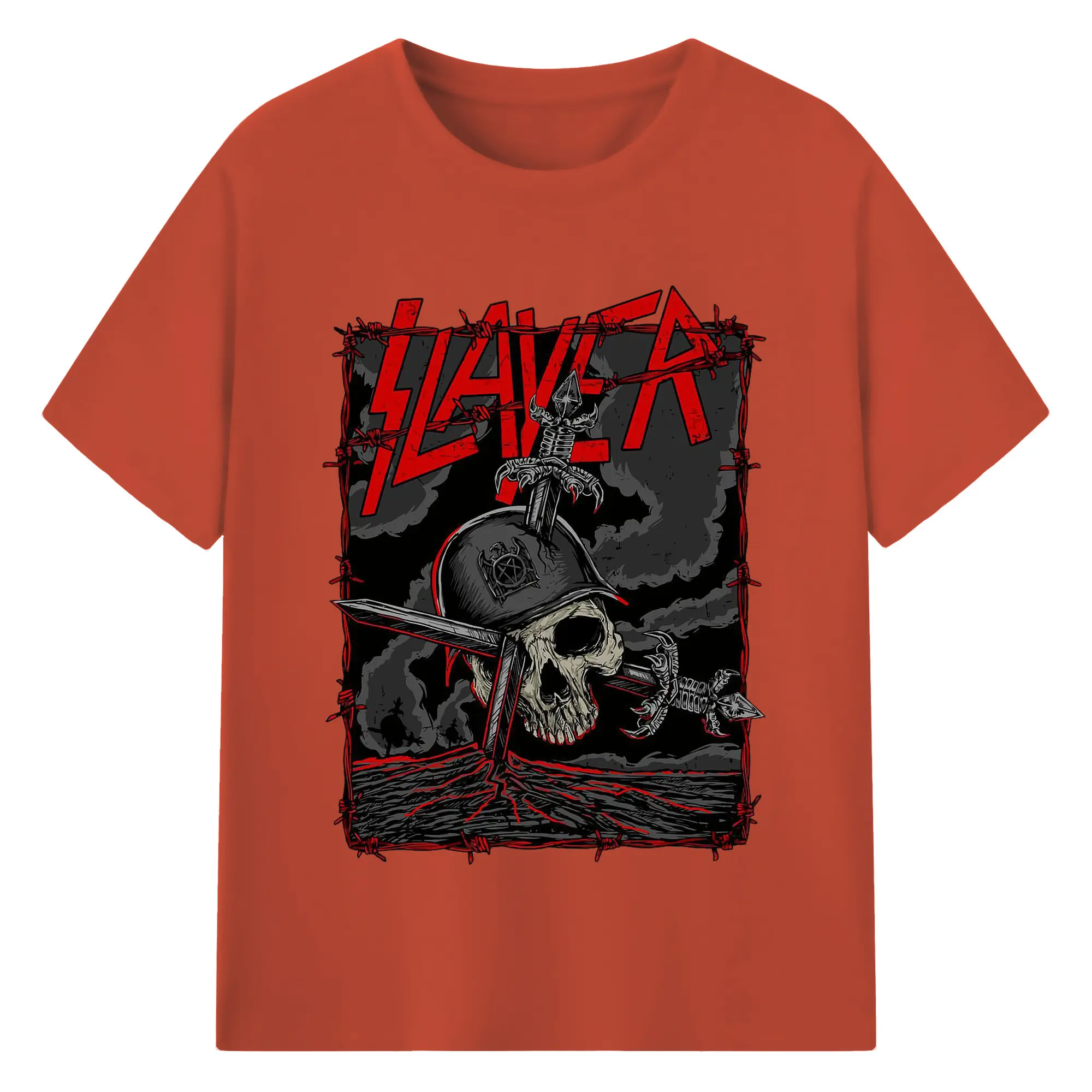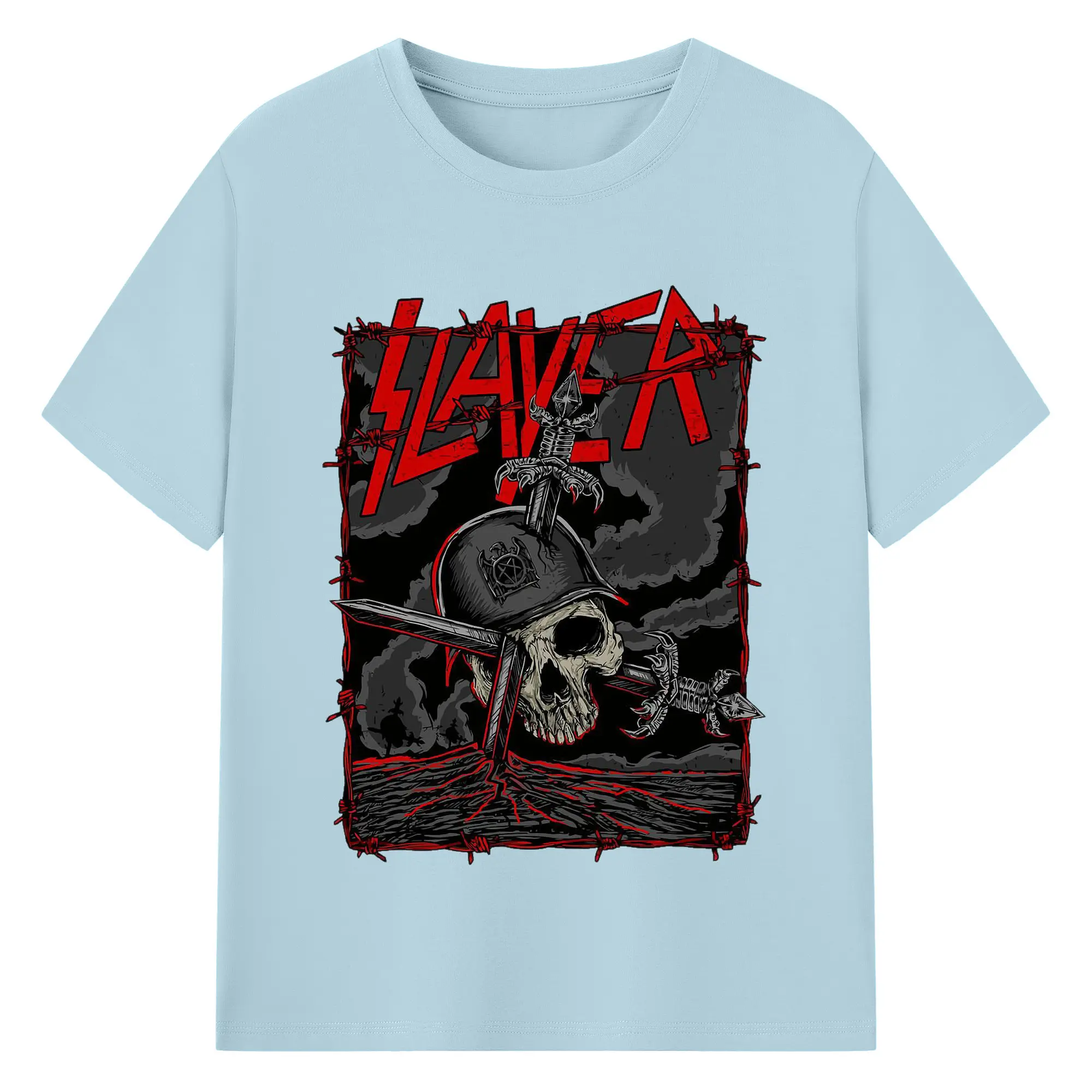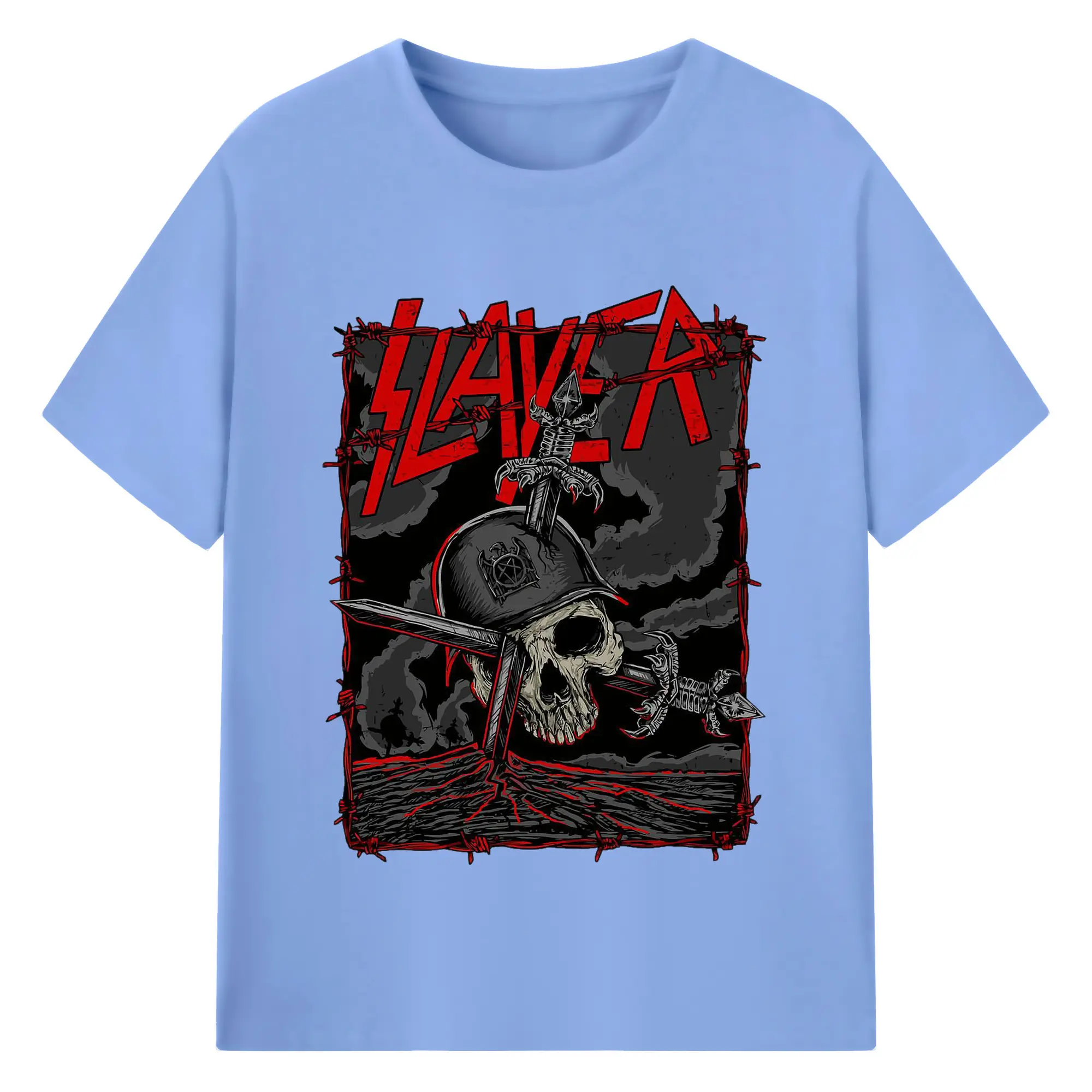 Dark Rock Style Slayer Military Skull DIY Shirt - 180g Cotton T-Shirt With Front Heat Transfer Print – Soft, Lightweight, Fitted Design – Comfortable Casual Wear For Sports & Everyday Use