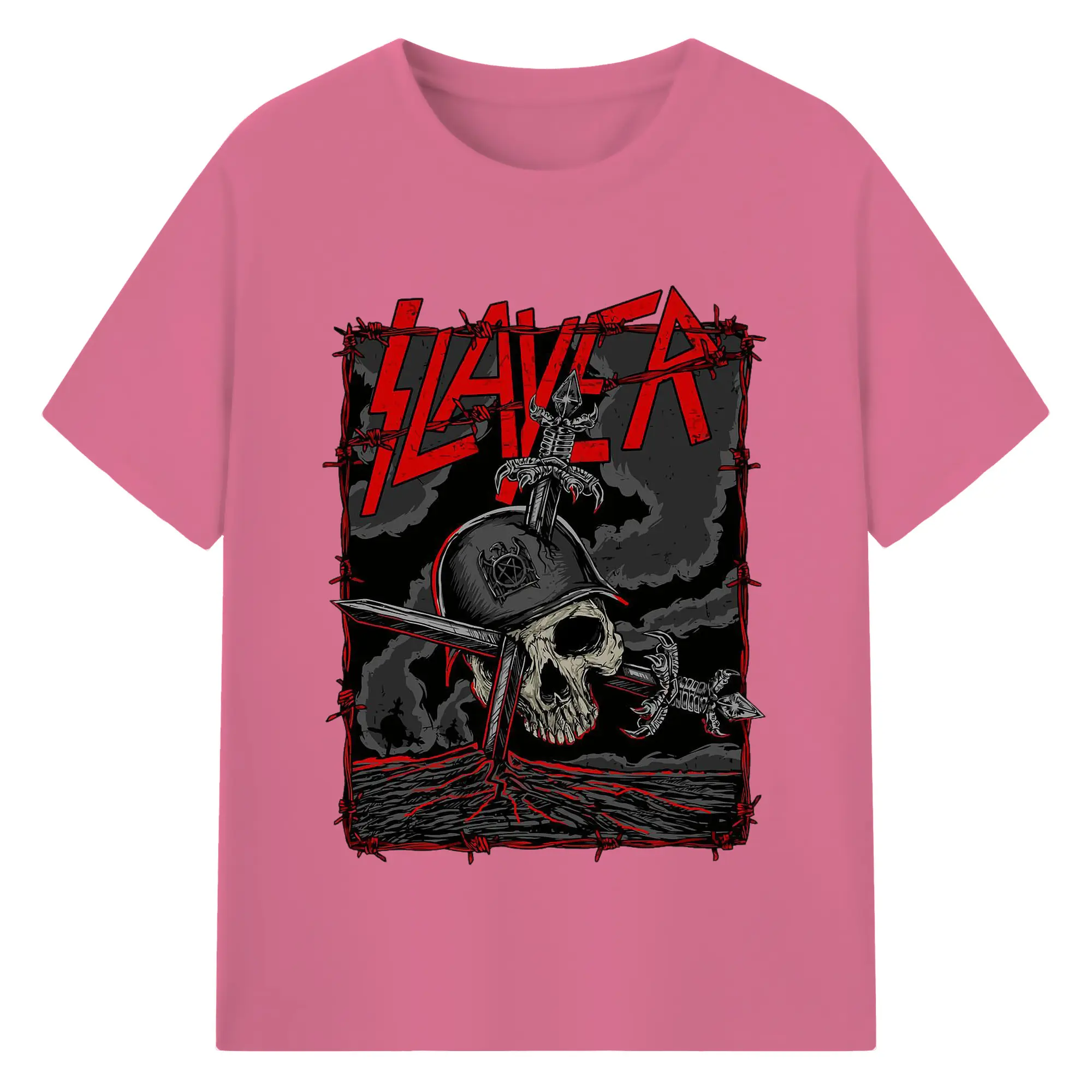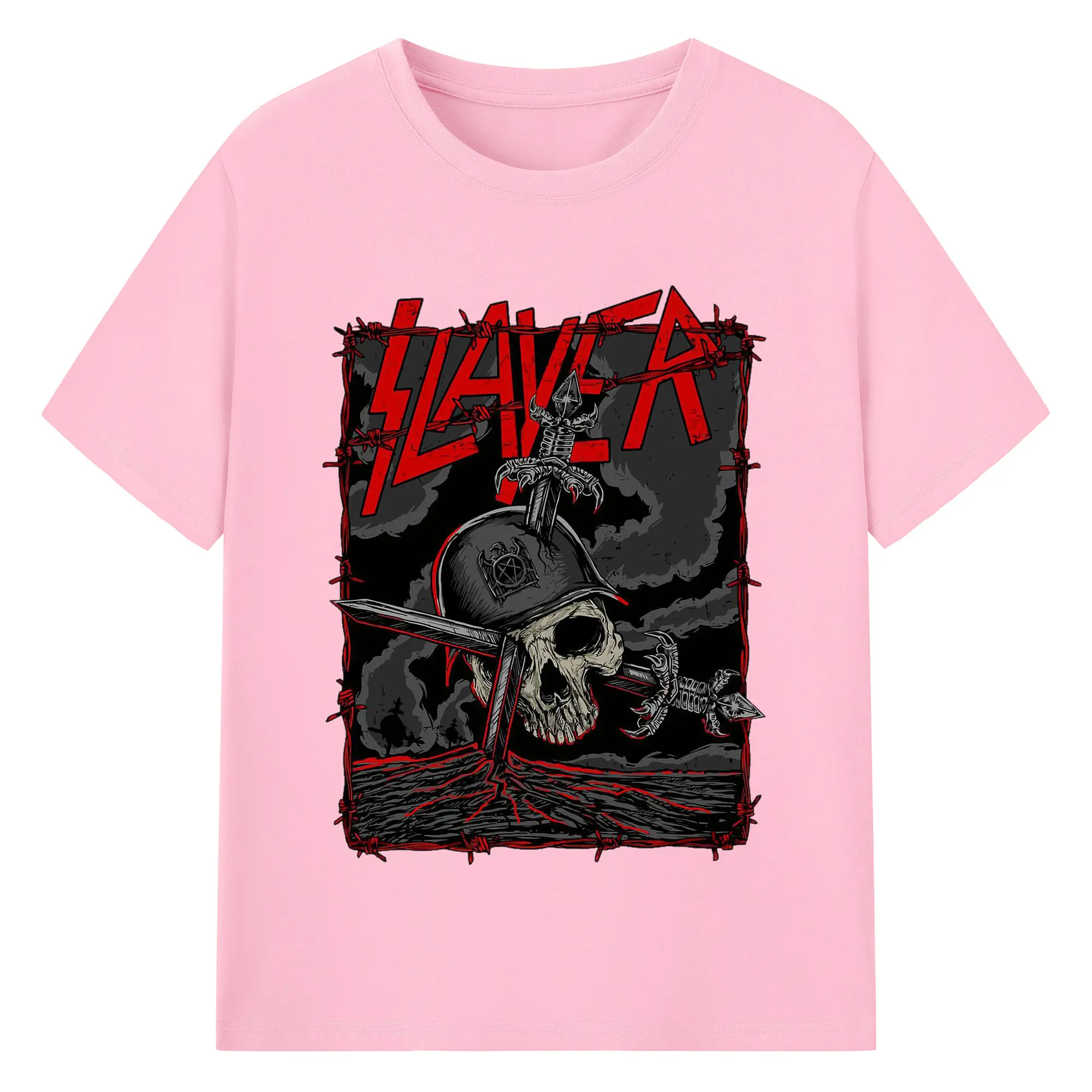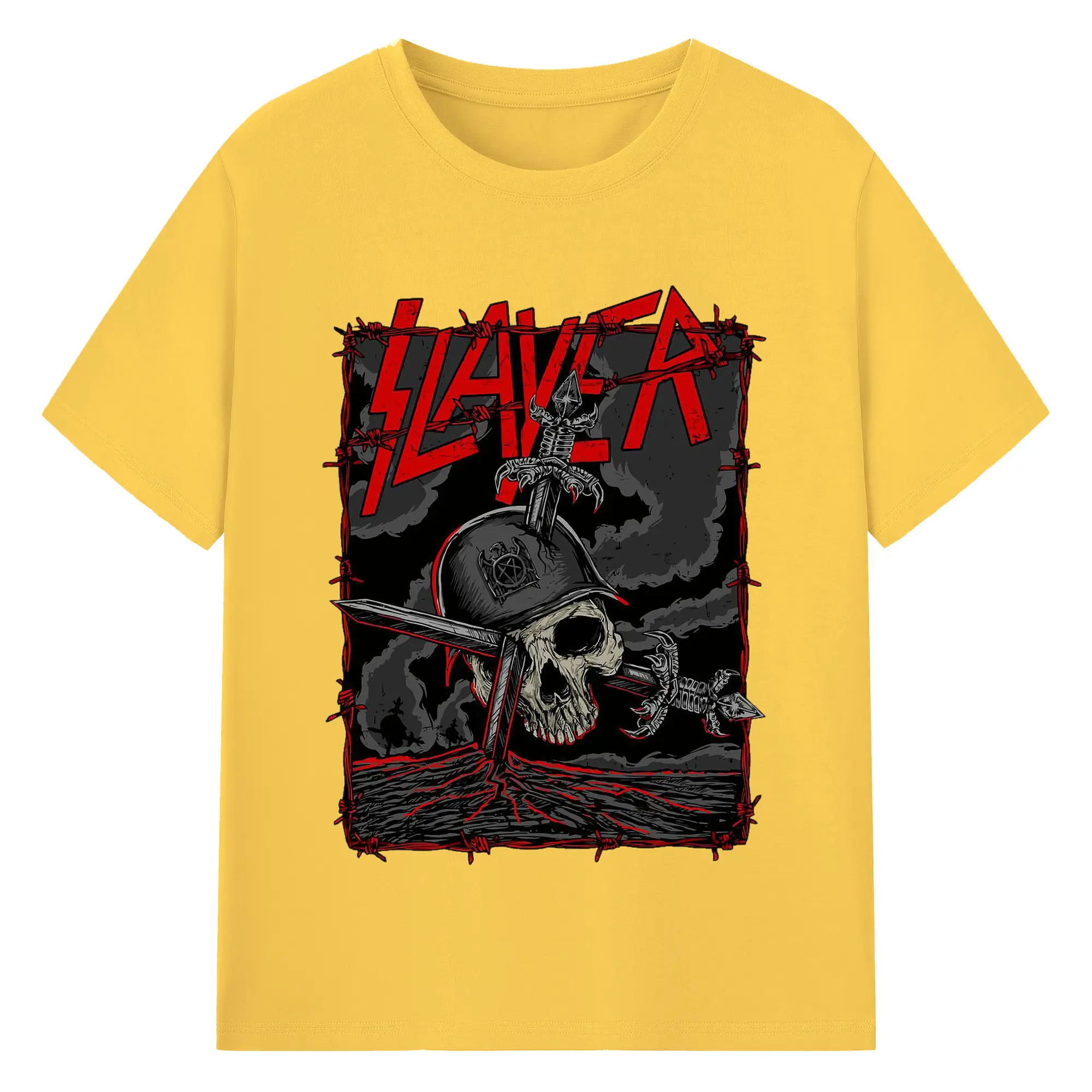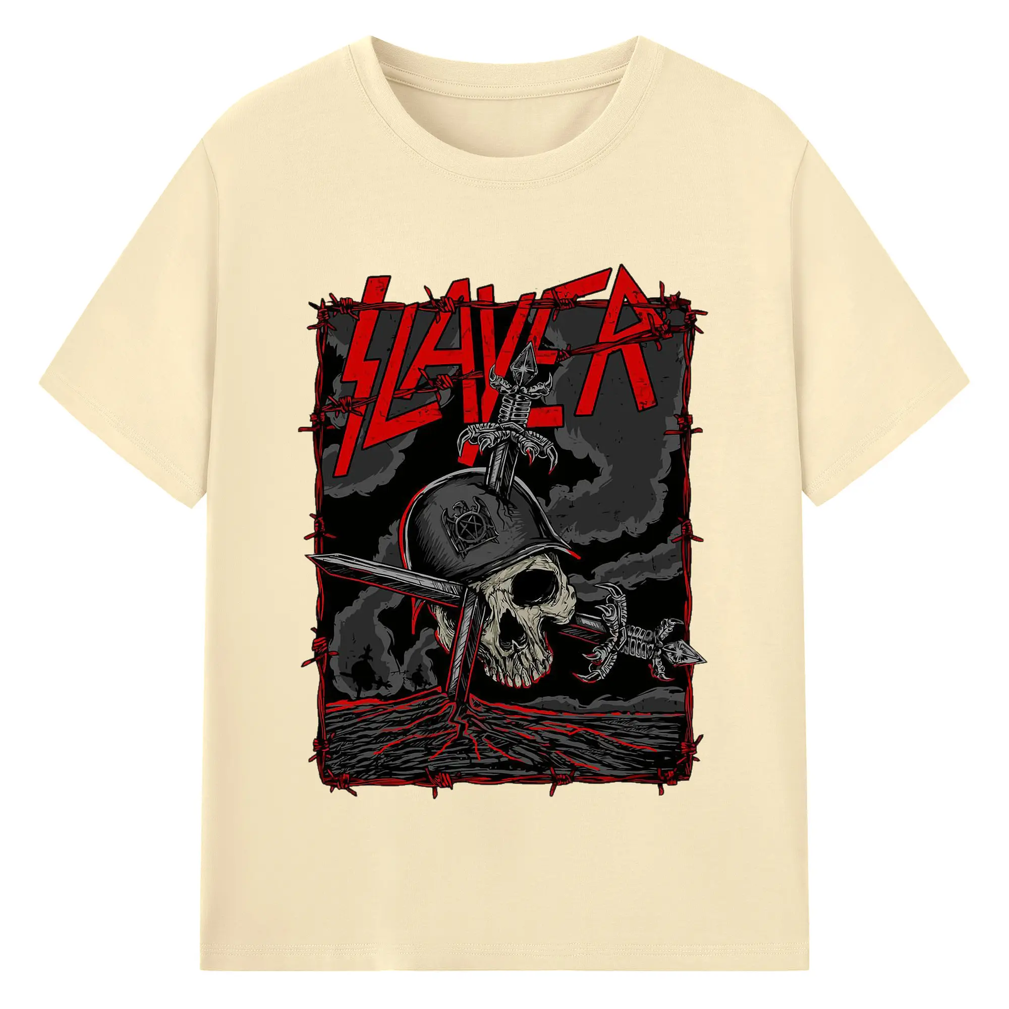 Dark Rock Style Slayer Military Skull DIY Shirt - 180g Cotton T-Shirt With Front Heat Transfer Print – Soft, Lightweight, Fitted Design – Comfortable Casual Wear For Sports & Everyday Use