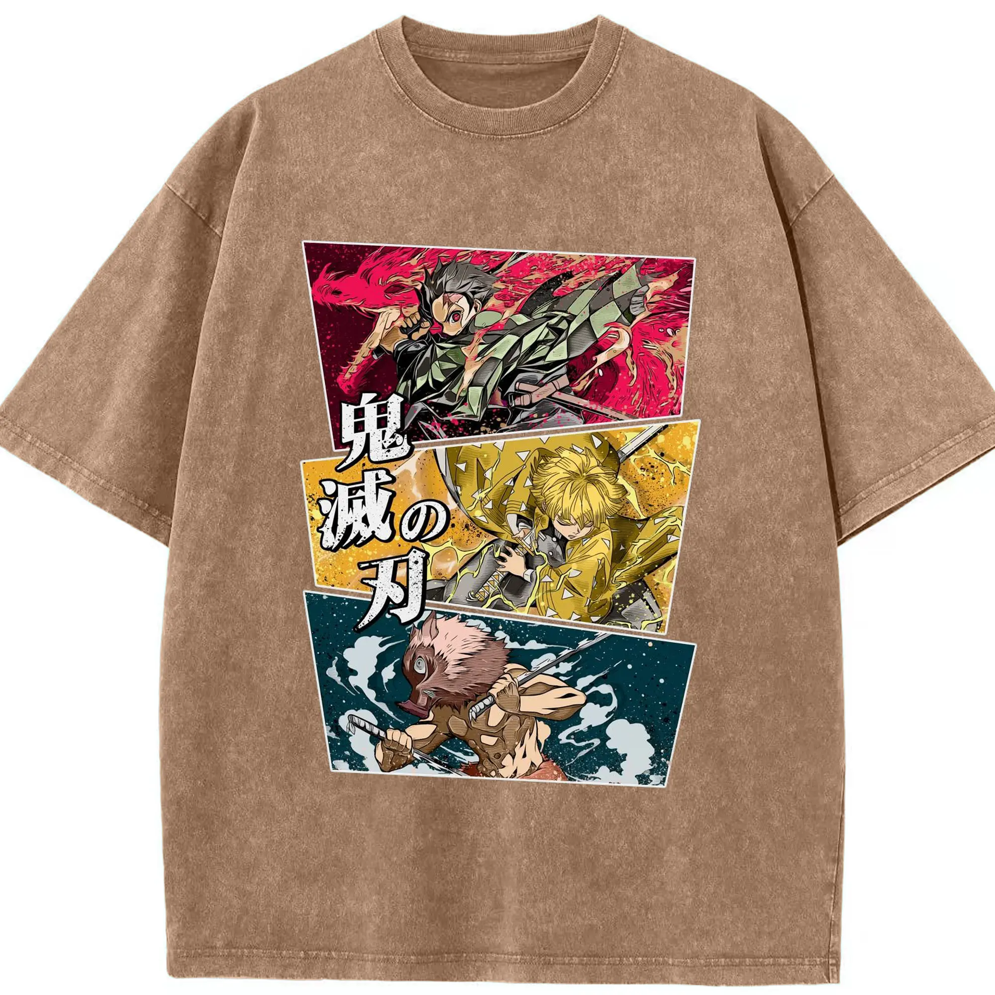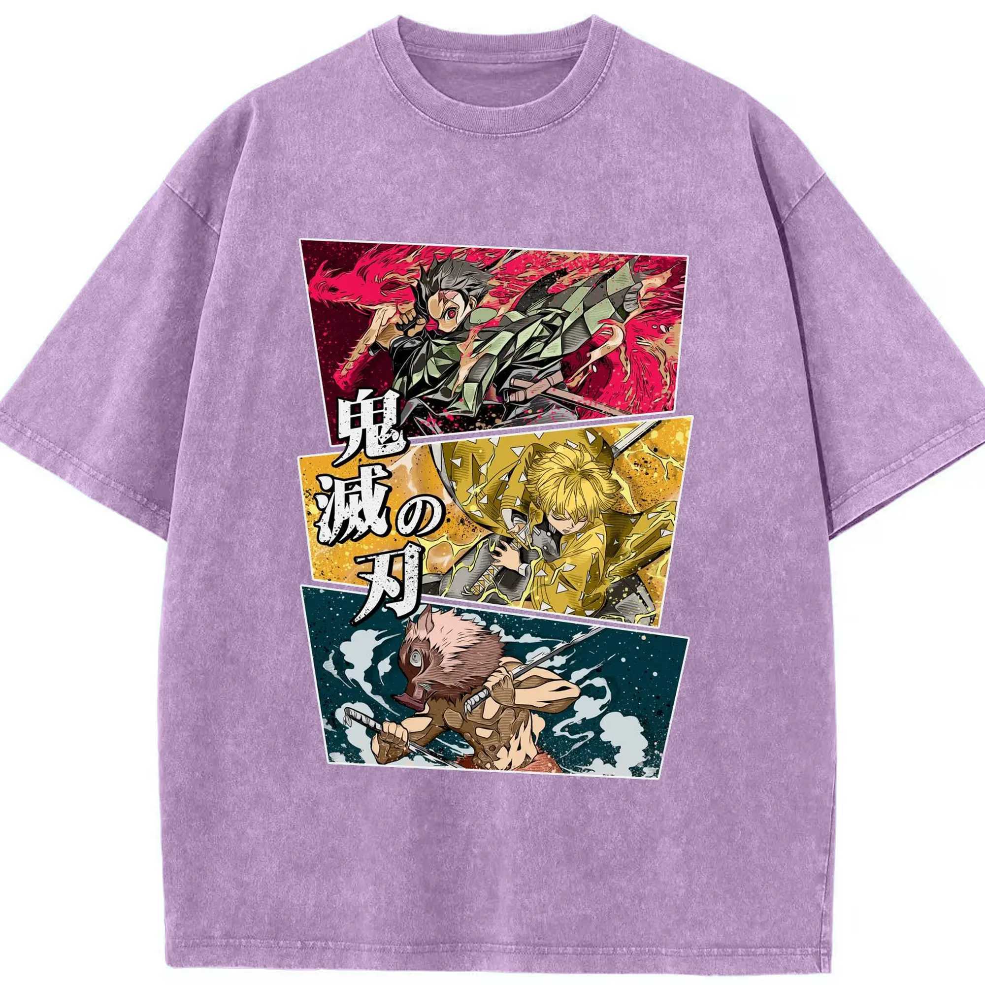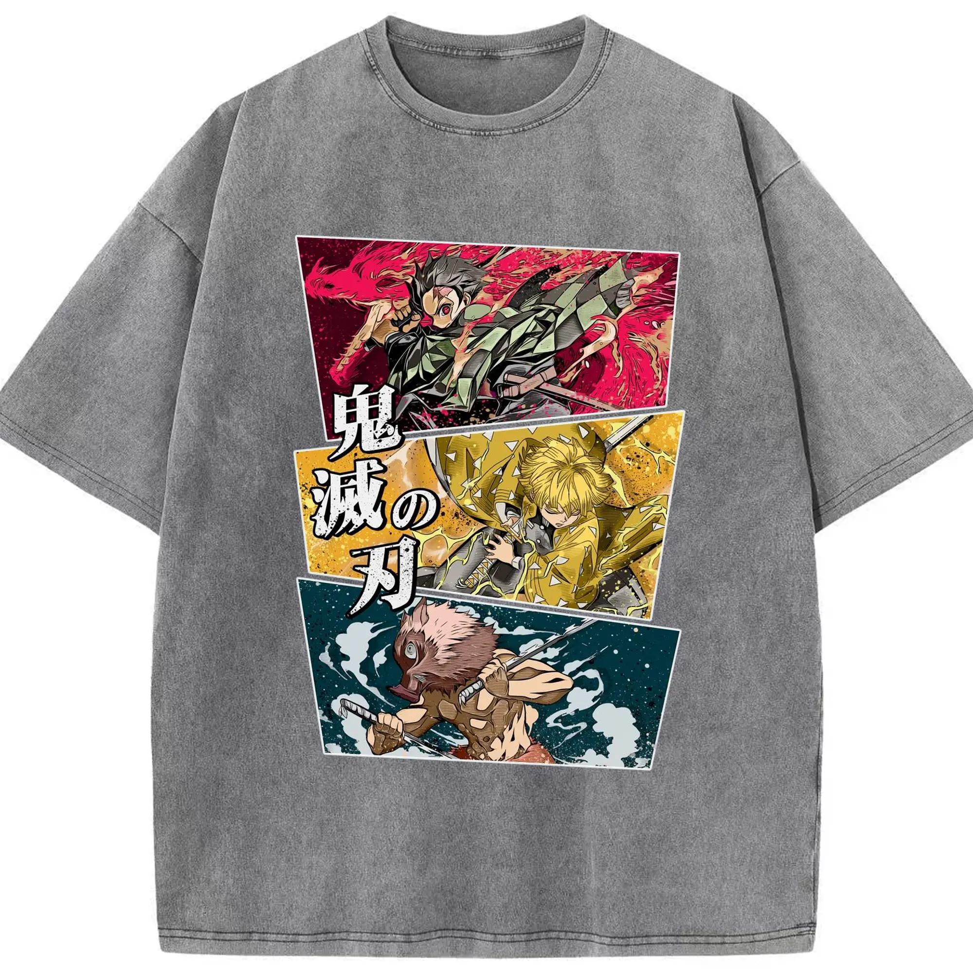 Demon Slayer Comic Style Characters DIY Shirt - Washed Vintage Look 230g Cotton Oversized T-Shirt With Front Heat Transfer Print – Soft, Lightweight, Stylish Fit – Comfortable Casual Wear For Sports & Everyday Use