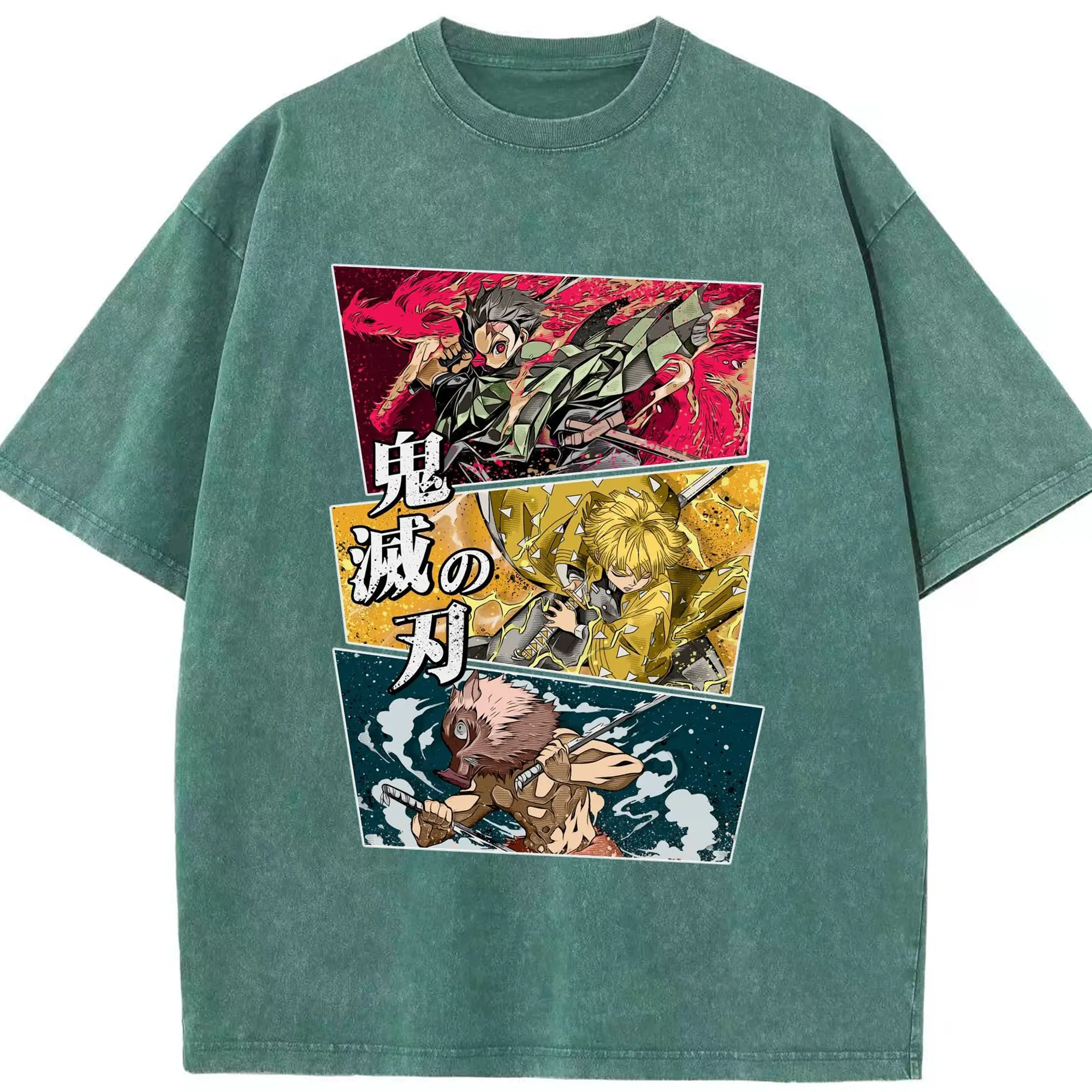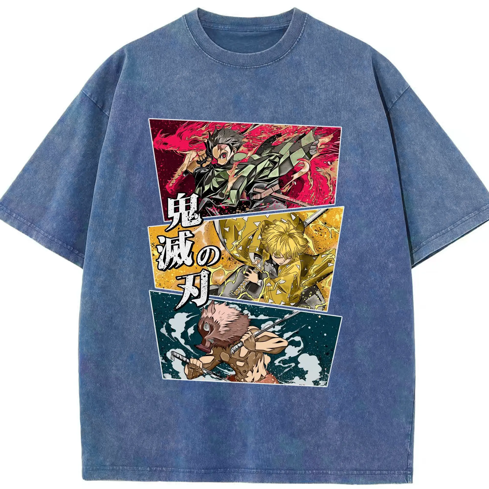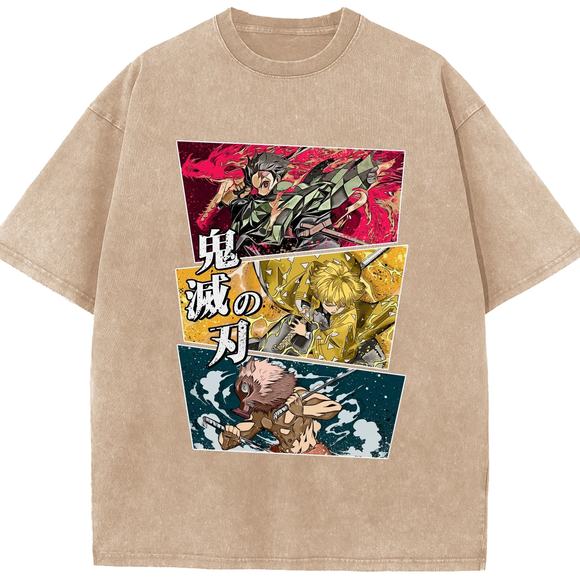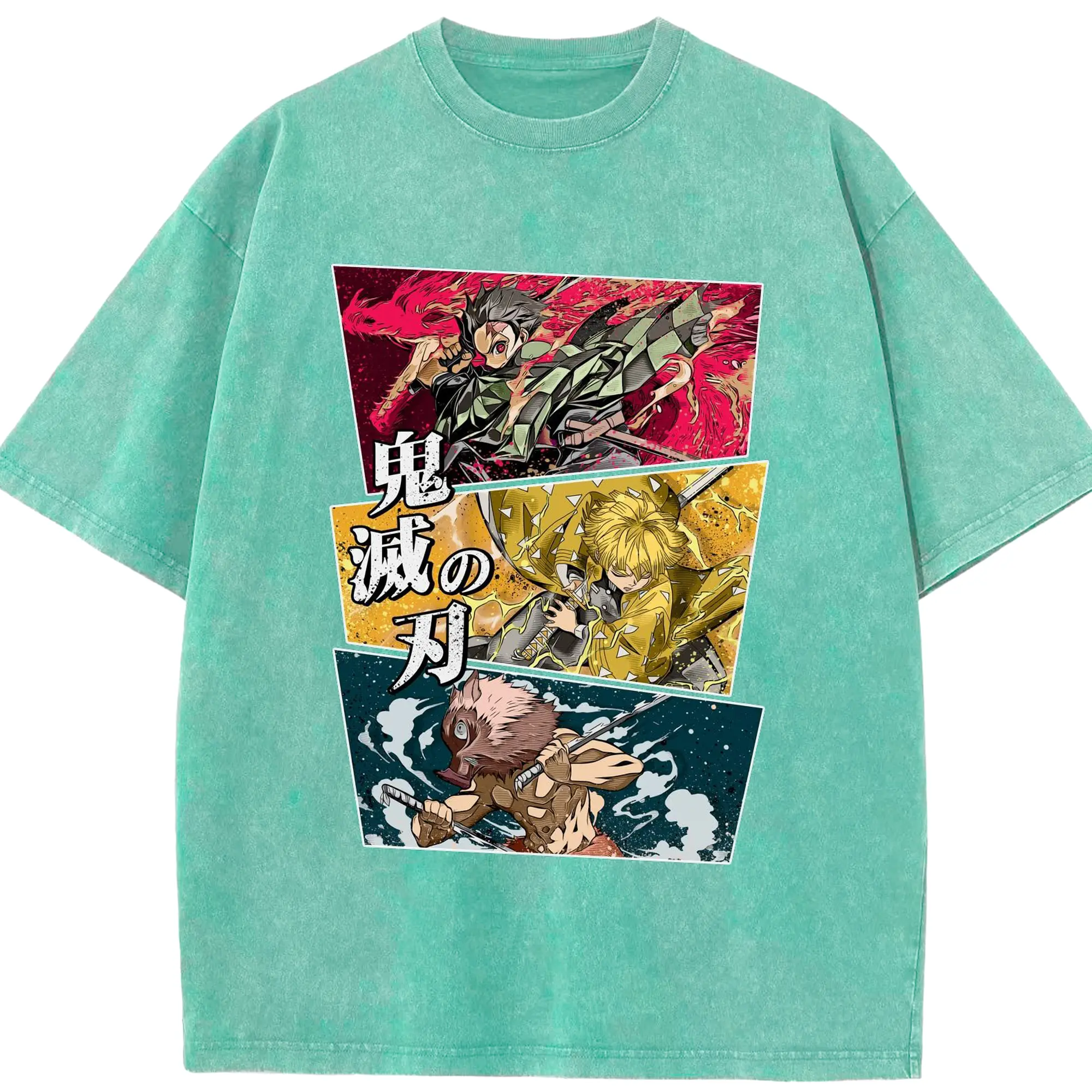 Demon Slayer Comic Style Characters DIY Shirt - Washed Vintage Look 230g Cotton Oversized T-Shirt With Front Heat Transfer Print – Soft, Lightweight, Stylish Fit – Comfortable Casual Wear For Sports & Everyday Use