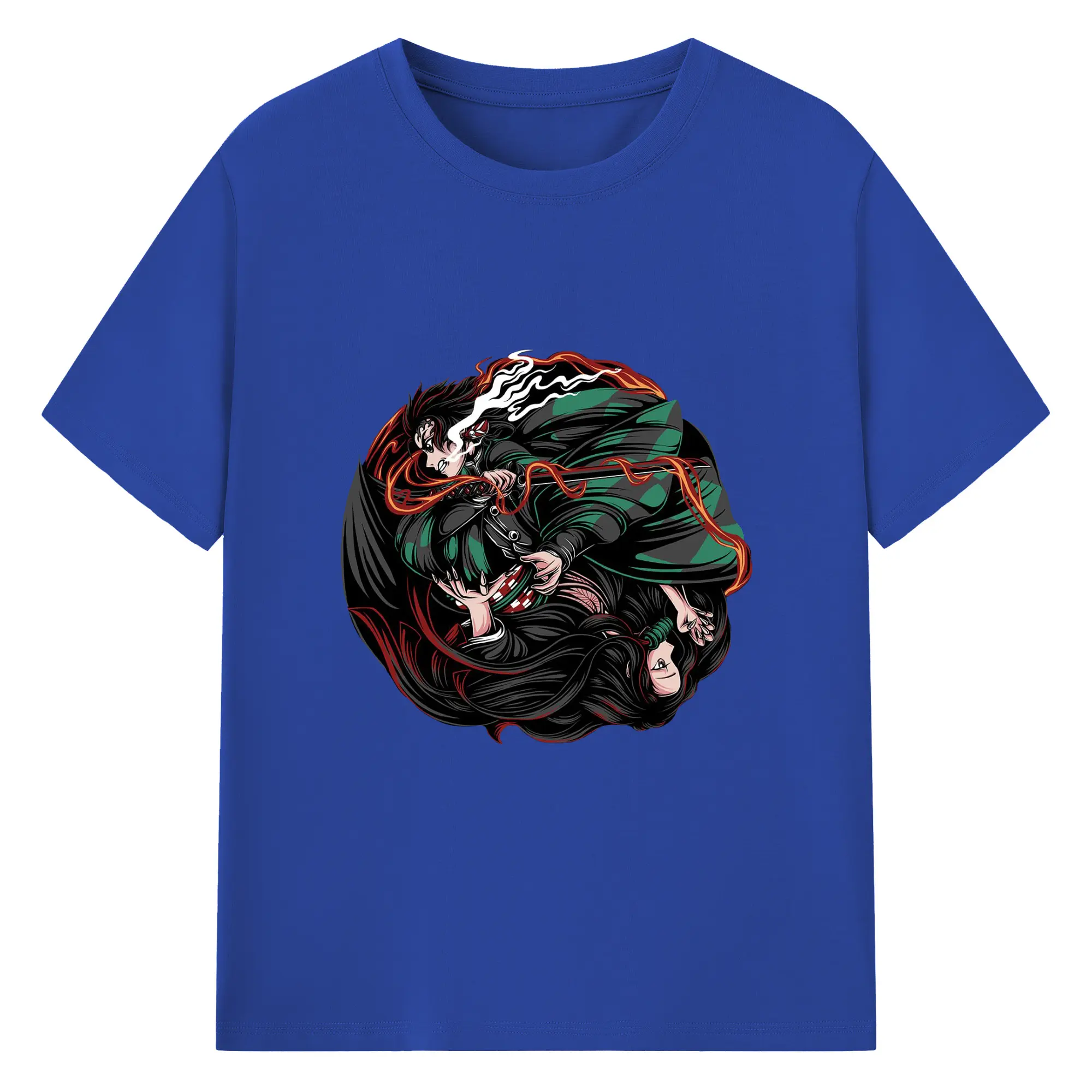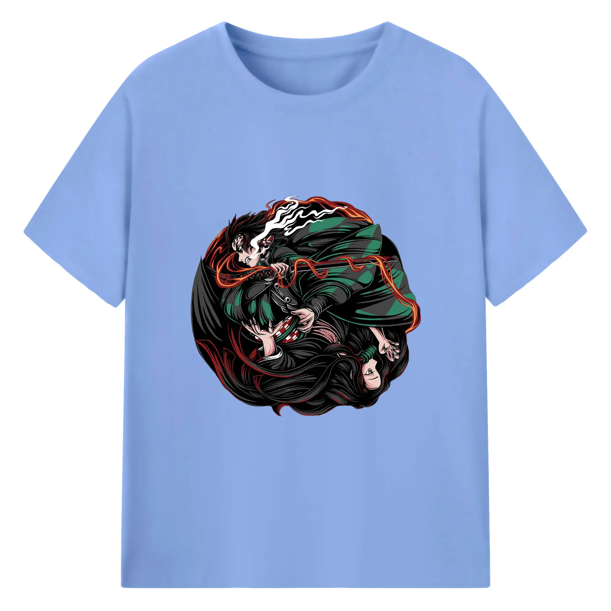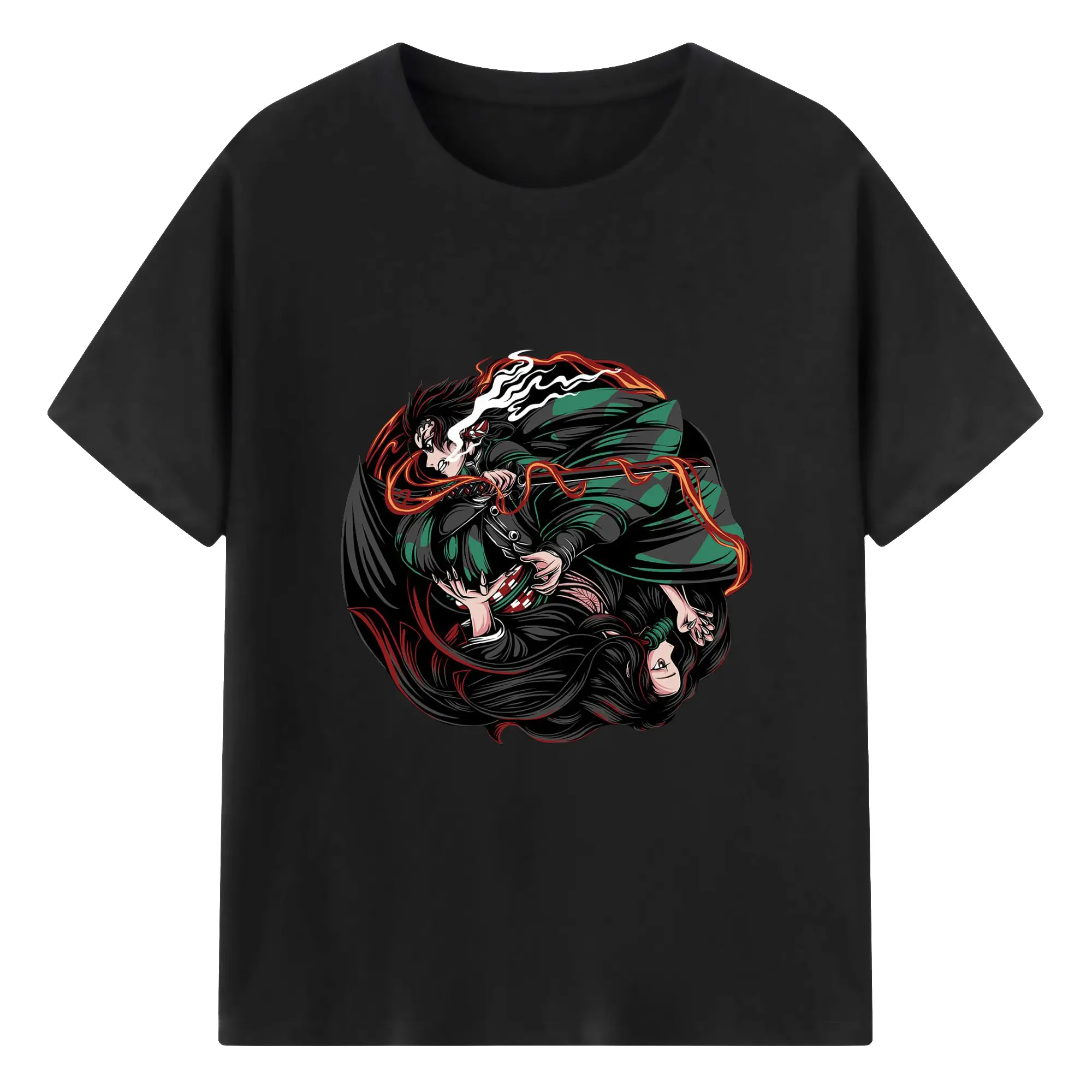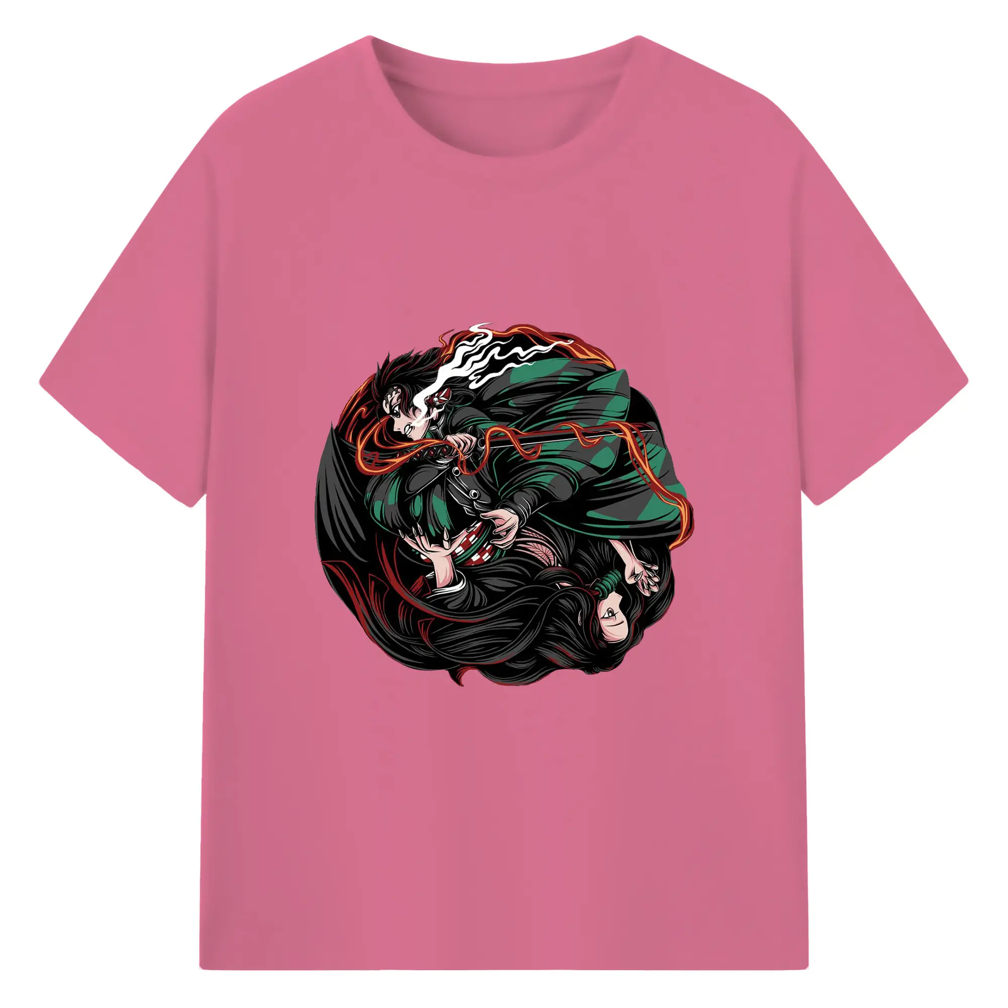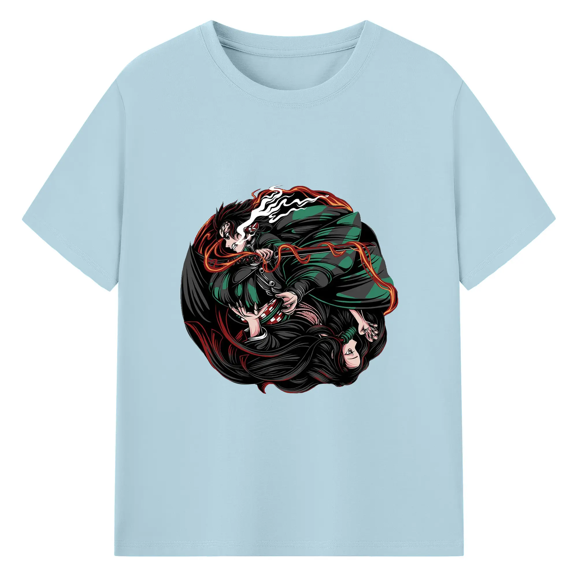 Demon Slayer Tanjiro & Nezuko Sibling Battle DIY Shirt - 180g Cotton T-Shirt With Front Heat Transfer Print – Soft, Lightweight, Fitted Design – Comfortable Casual Wear For Sports & Everyday Use