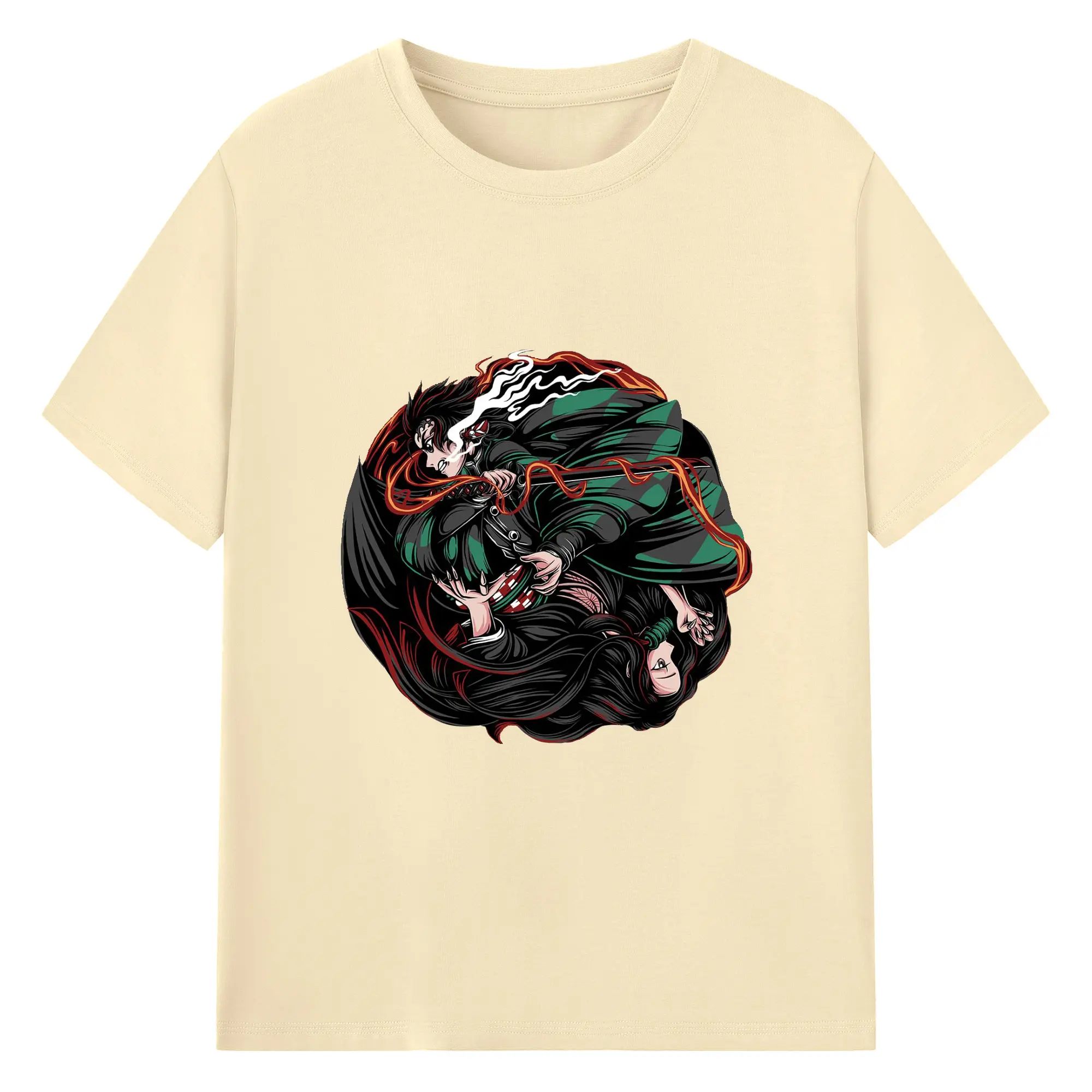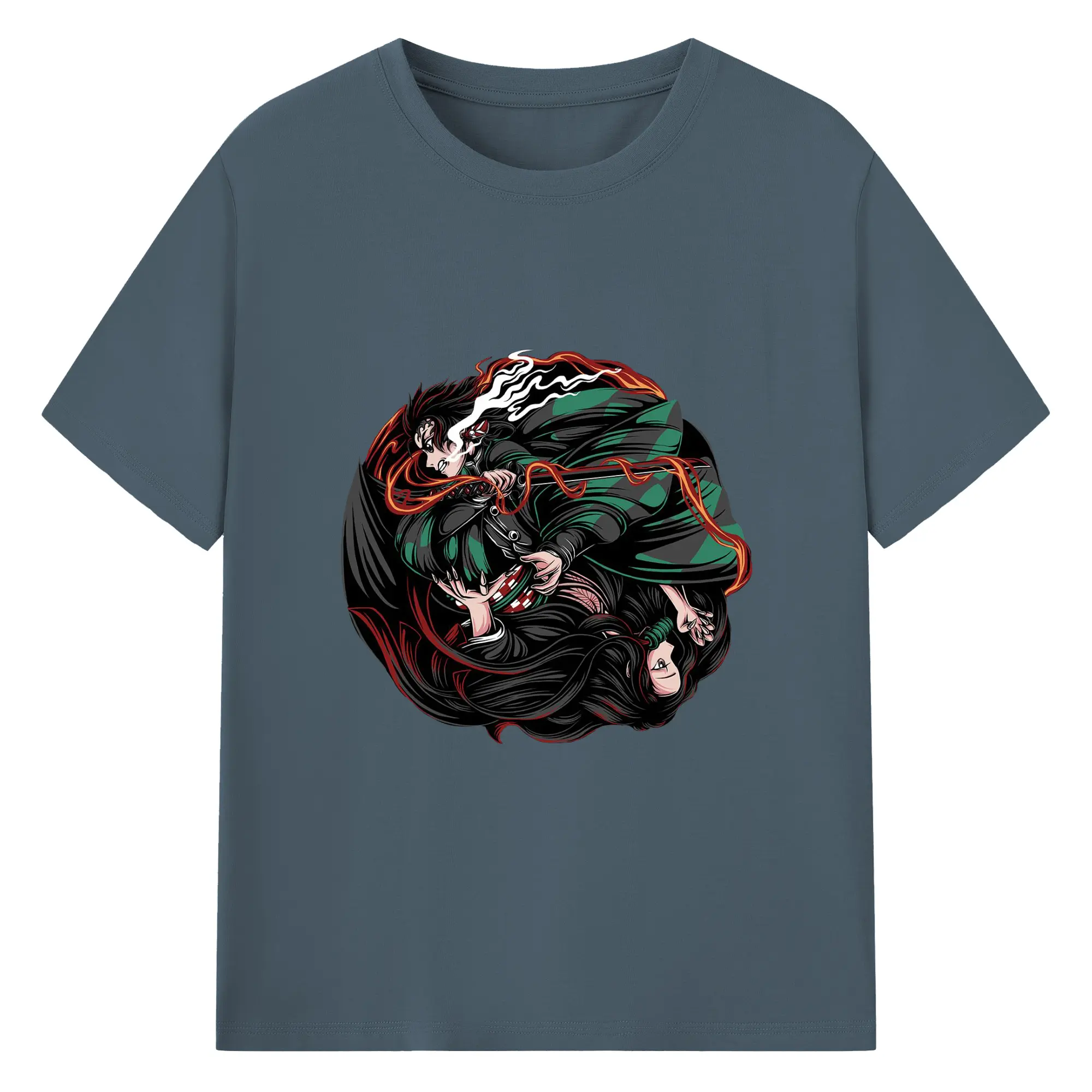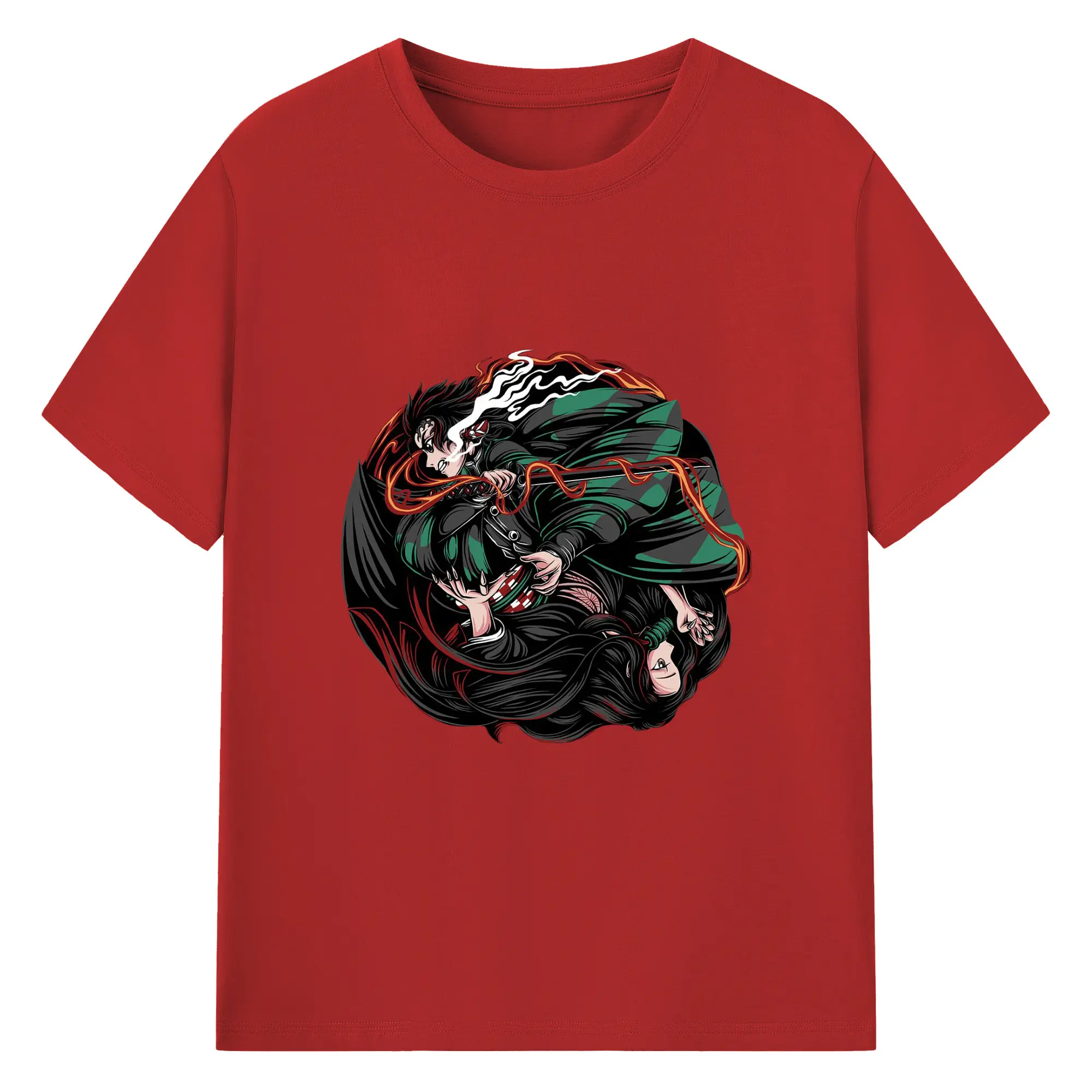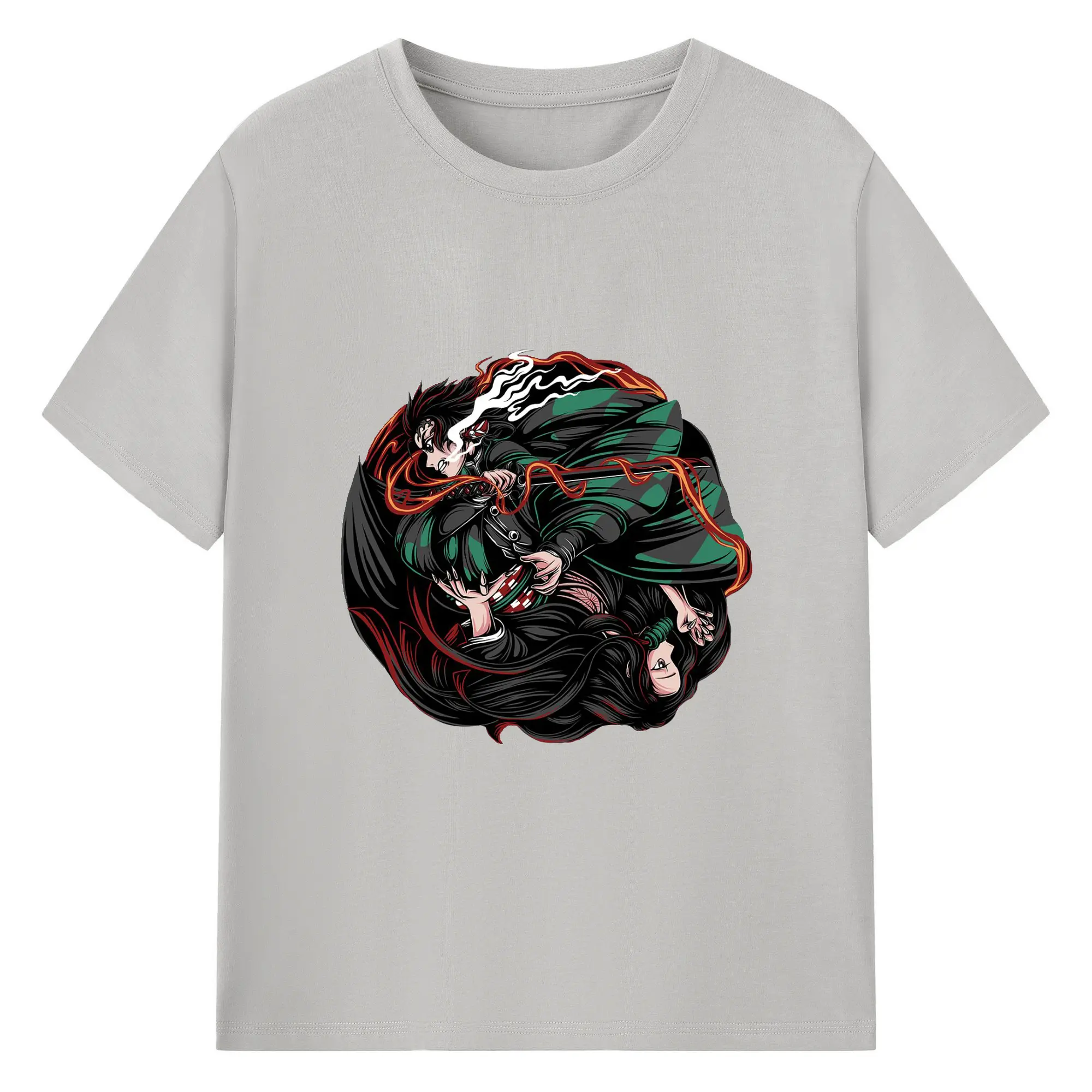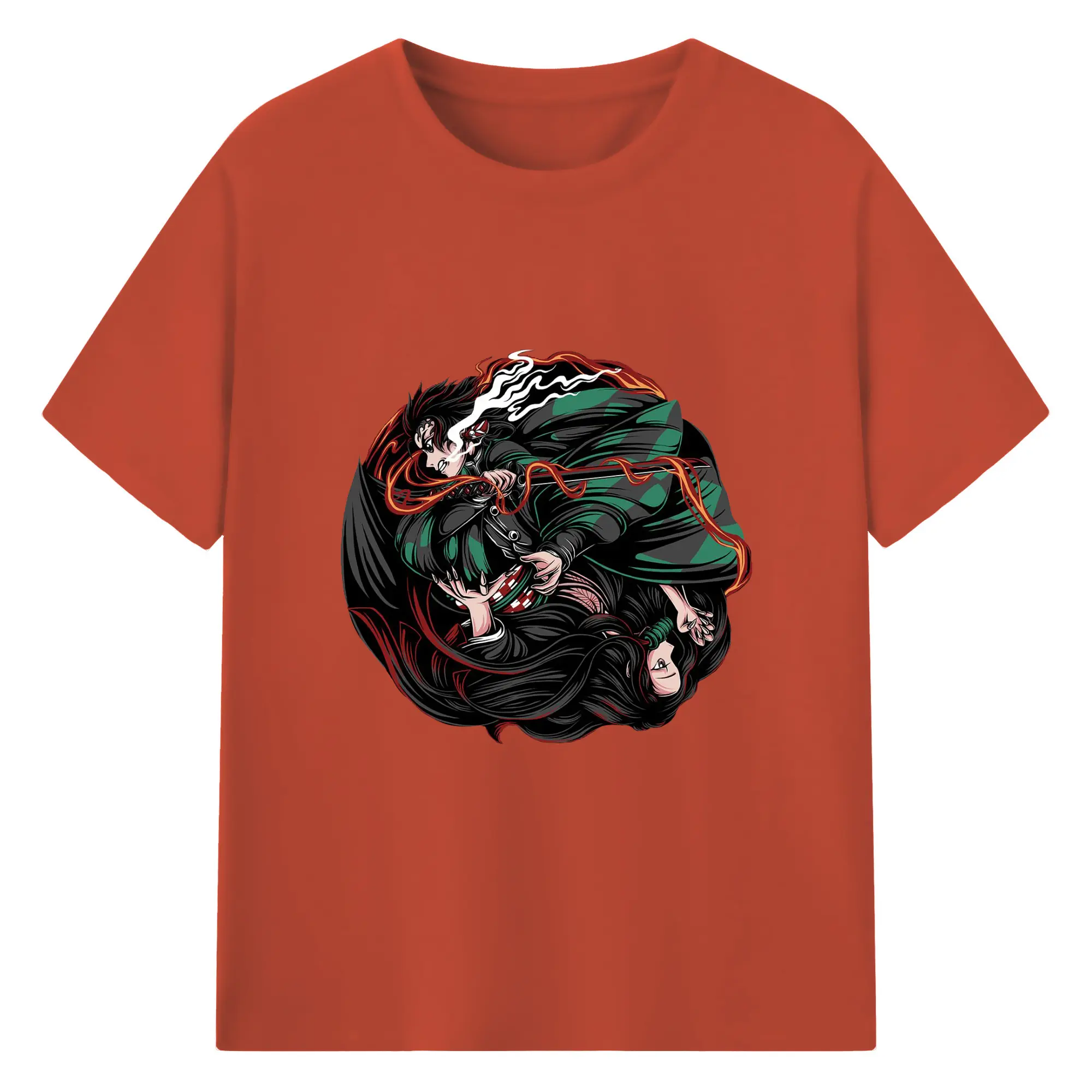Demon Slayer Tanjiro & Nezuko Sibling Battle DIY Shirt - 180g Cotton T-Shirt With Front Heat Transfer Print – Soft, Lightweight, Fitted Design – Comfortable Casual Wear For Sports & Everyday Use
