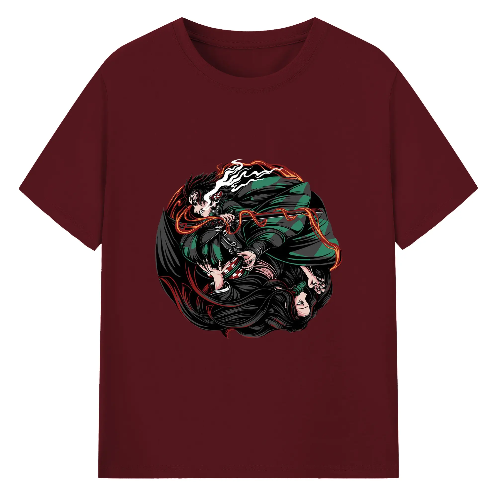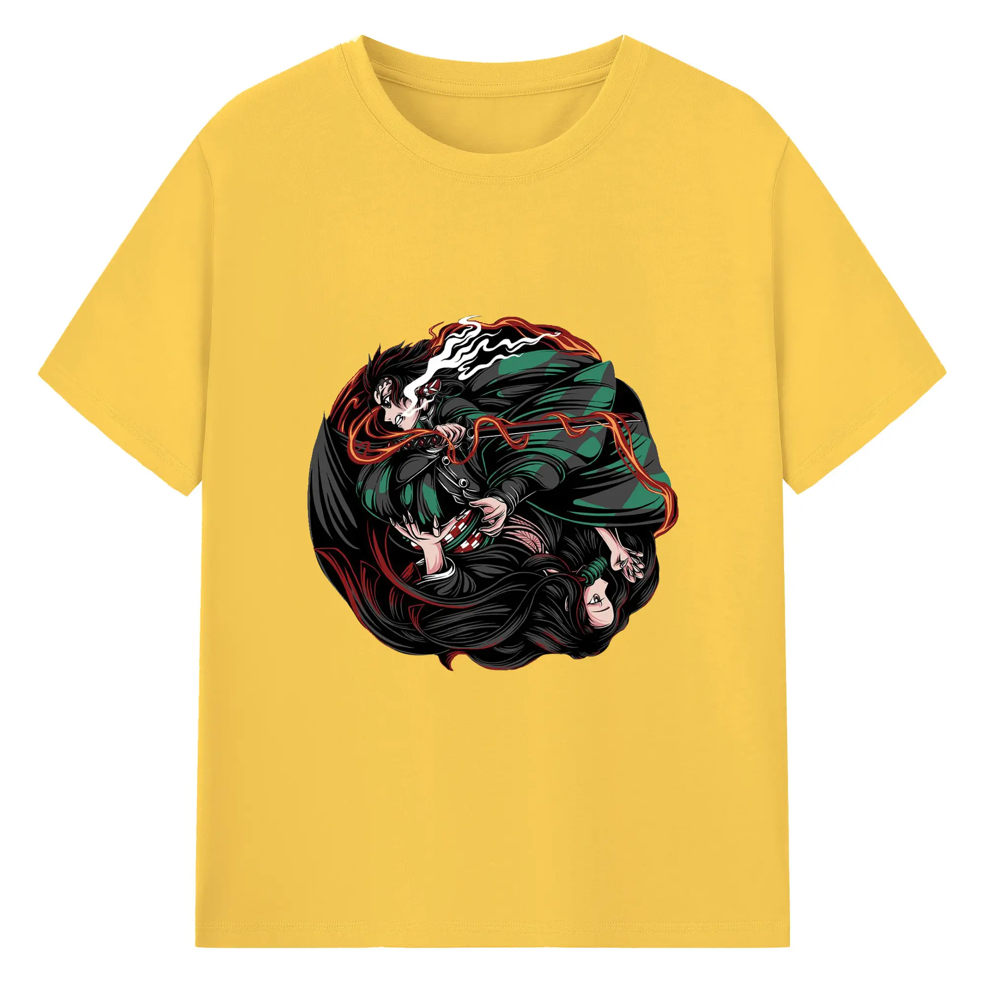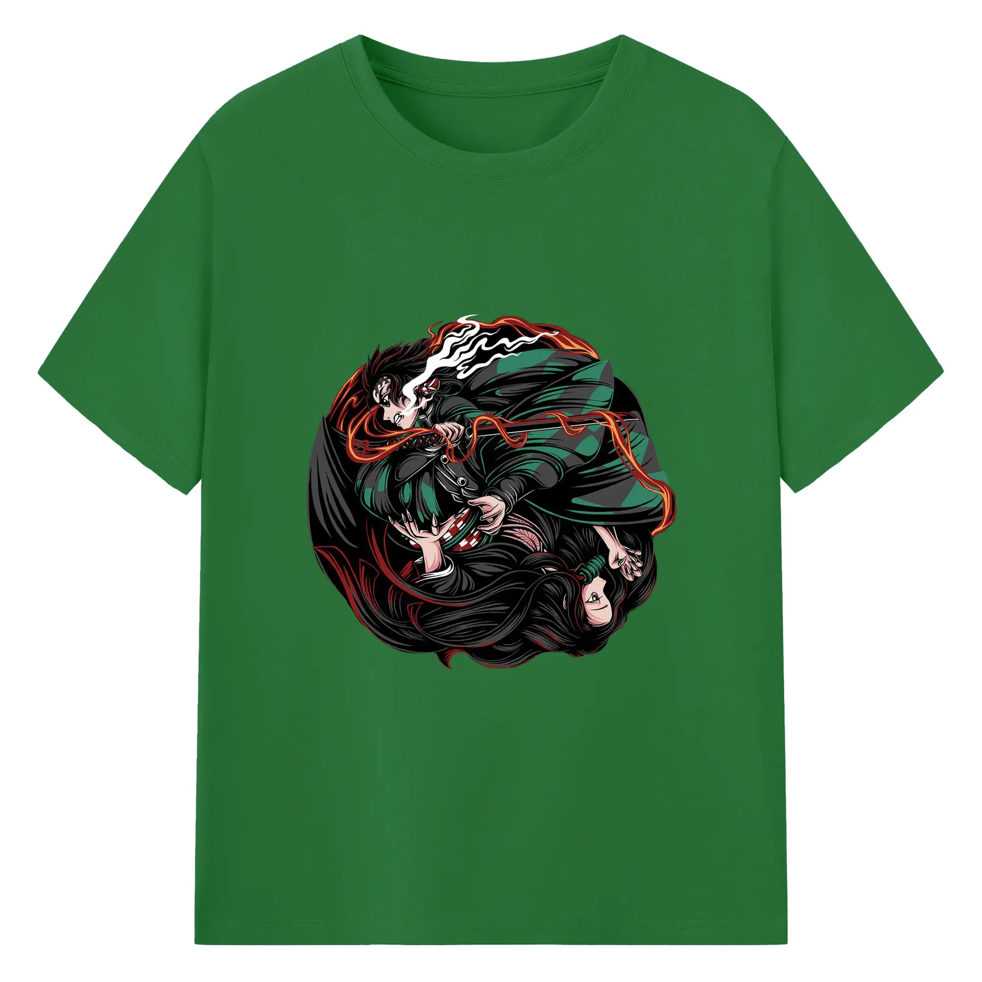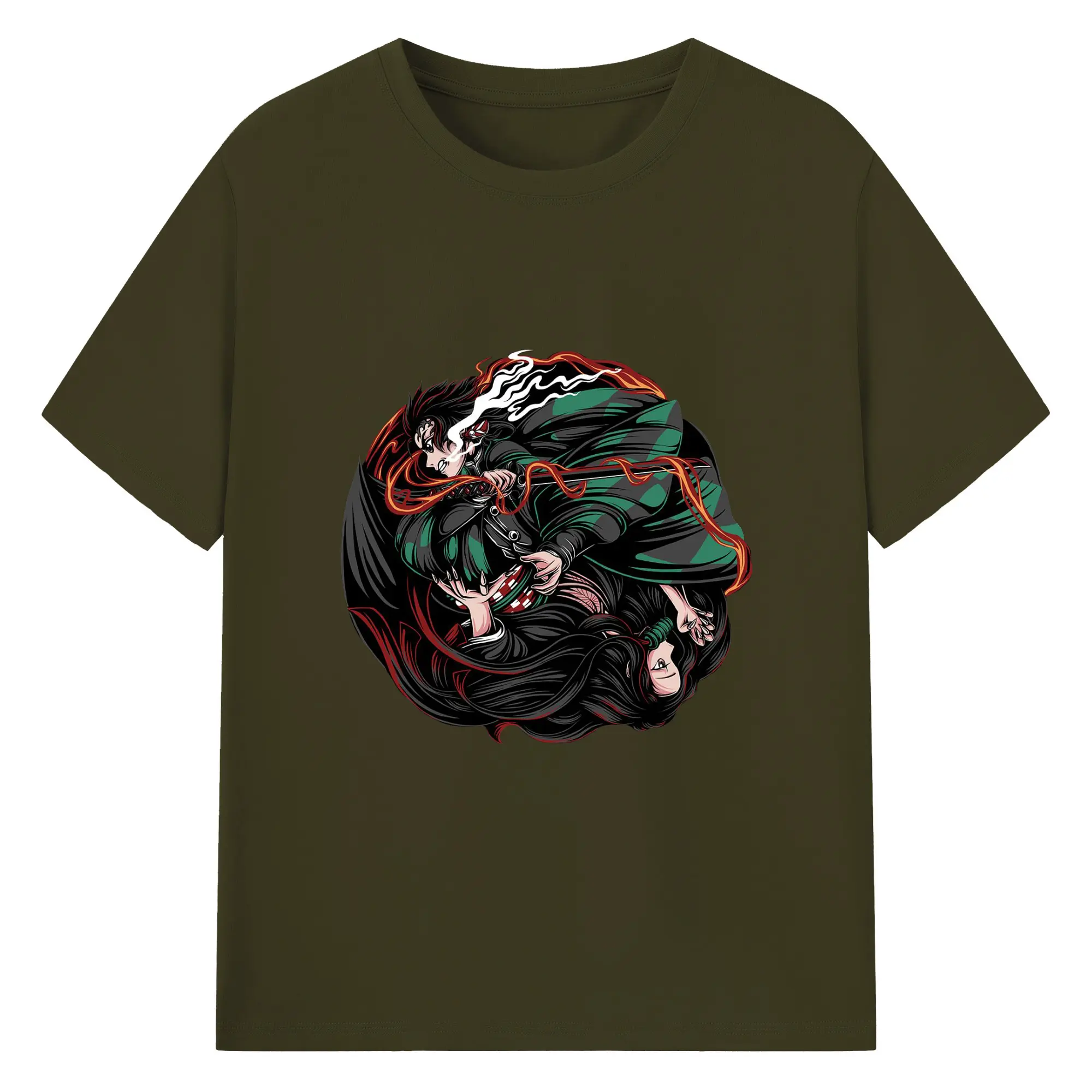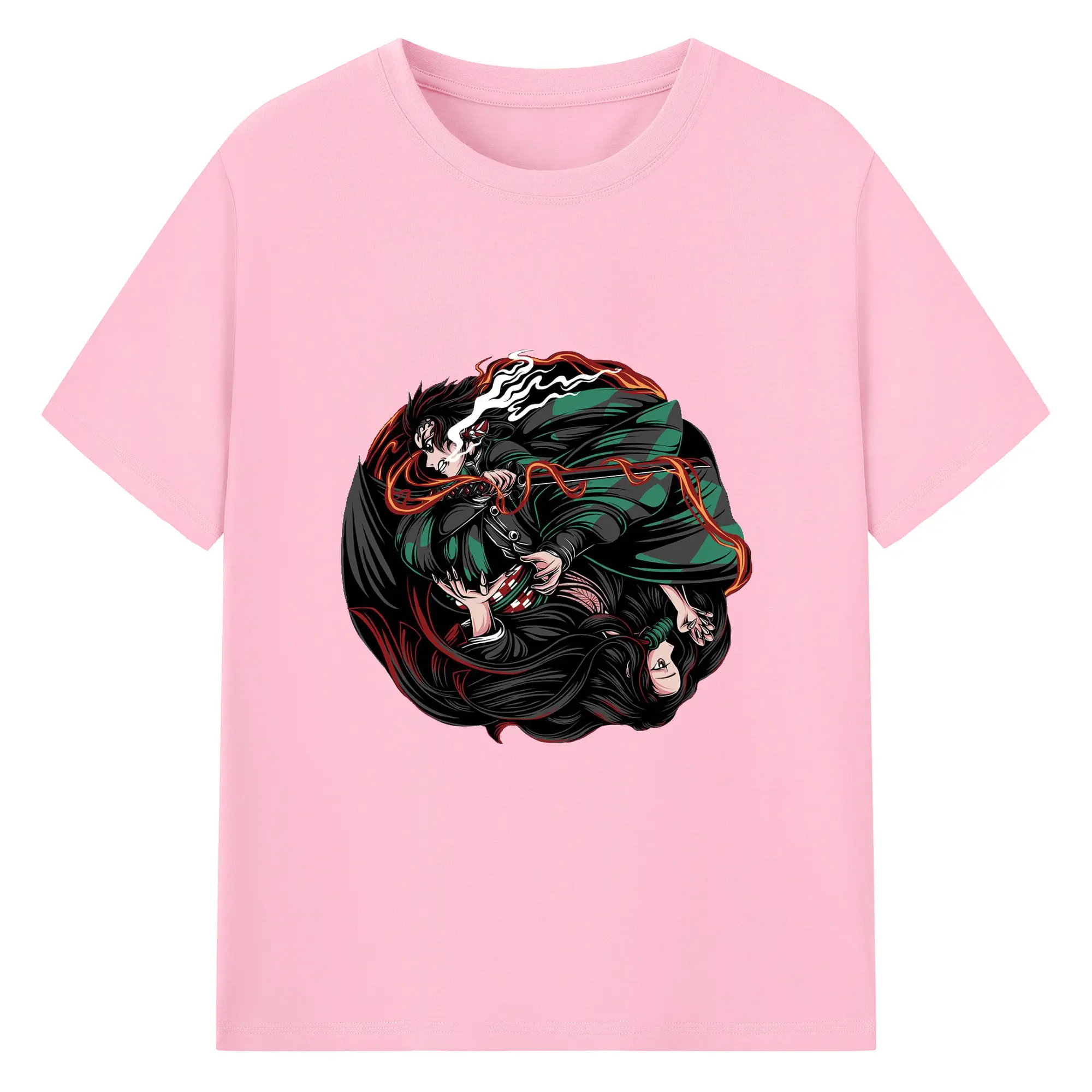 Demon Slayer Tanjiro & Nezuko Sibling Battle DIY Shirt - 180g Cotton T-Shirt With Front Heat Transfer Print – Soft, Lightweight, Fitted Design – Comfortable Casual Wear For Sports & Everyday Use