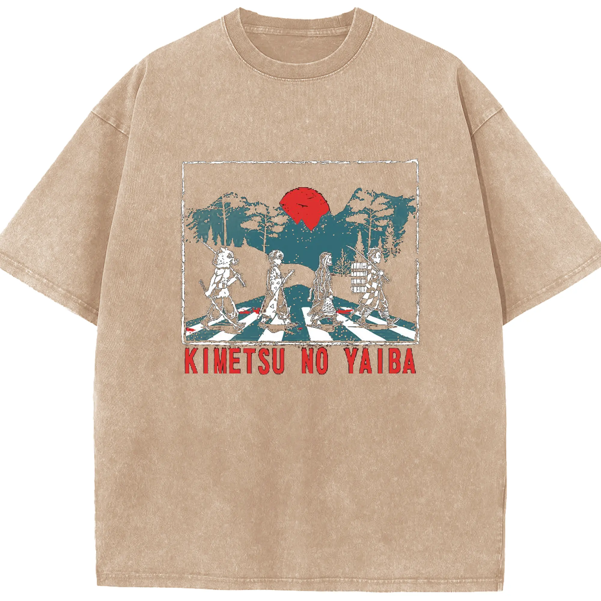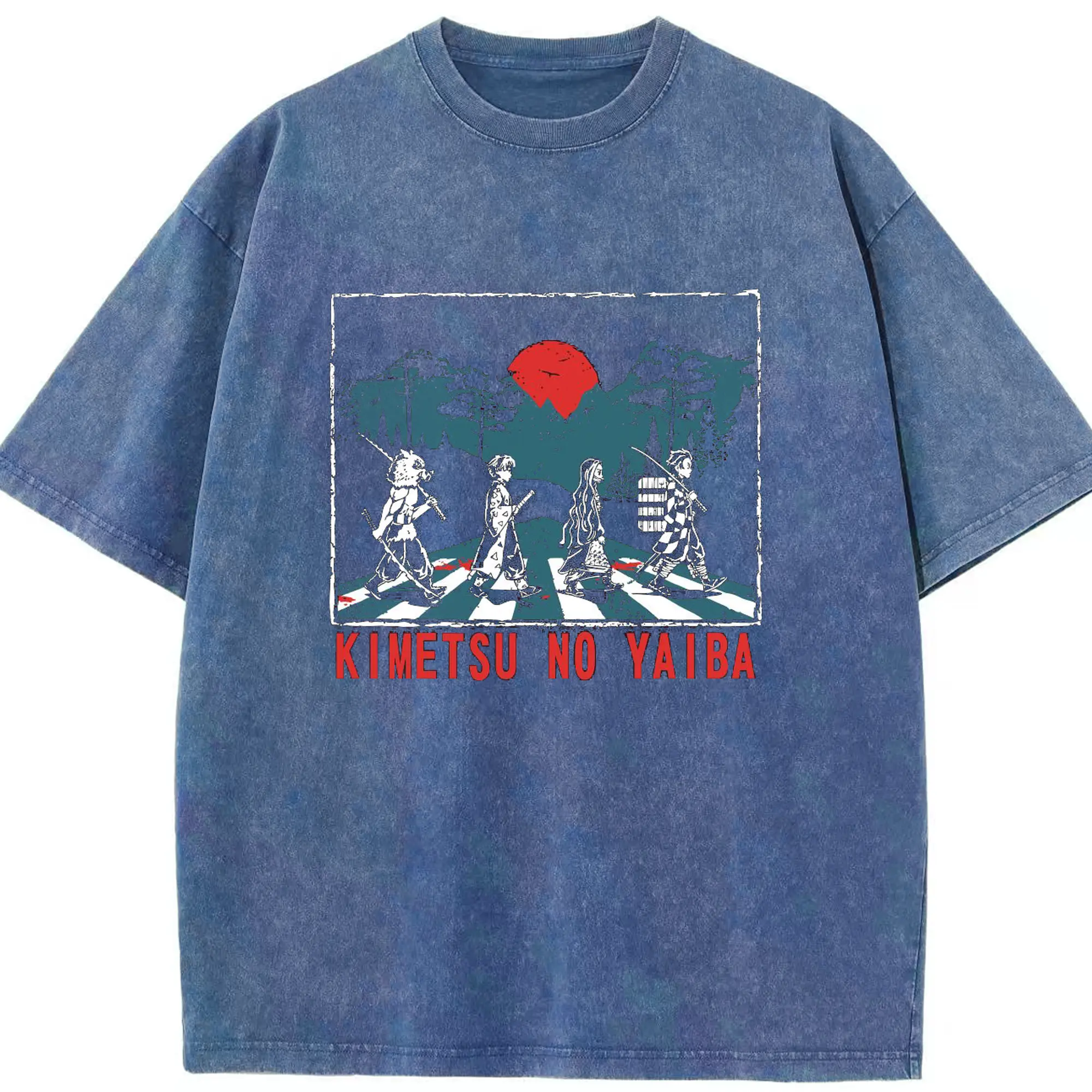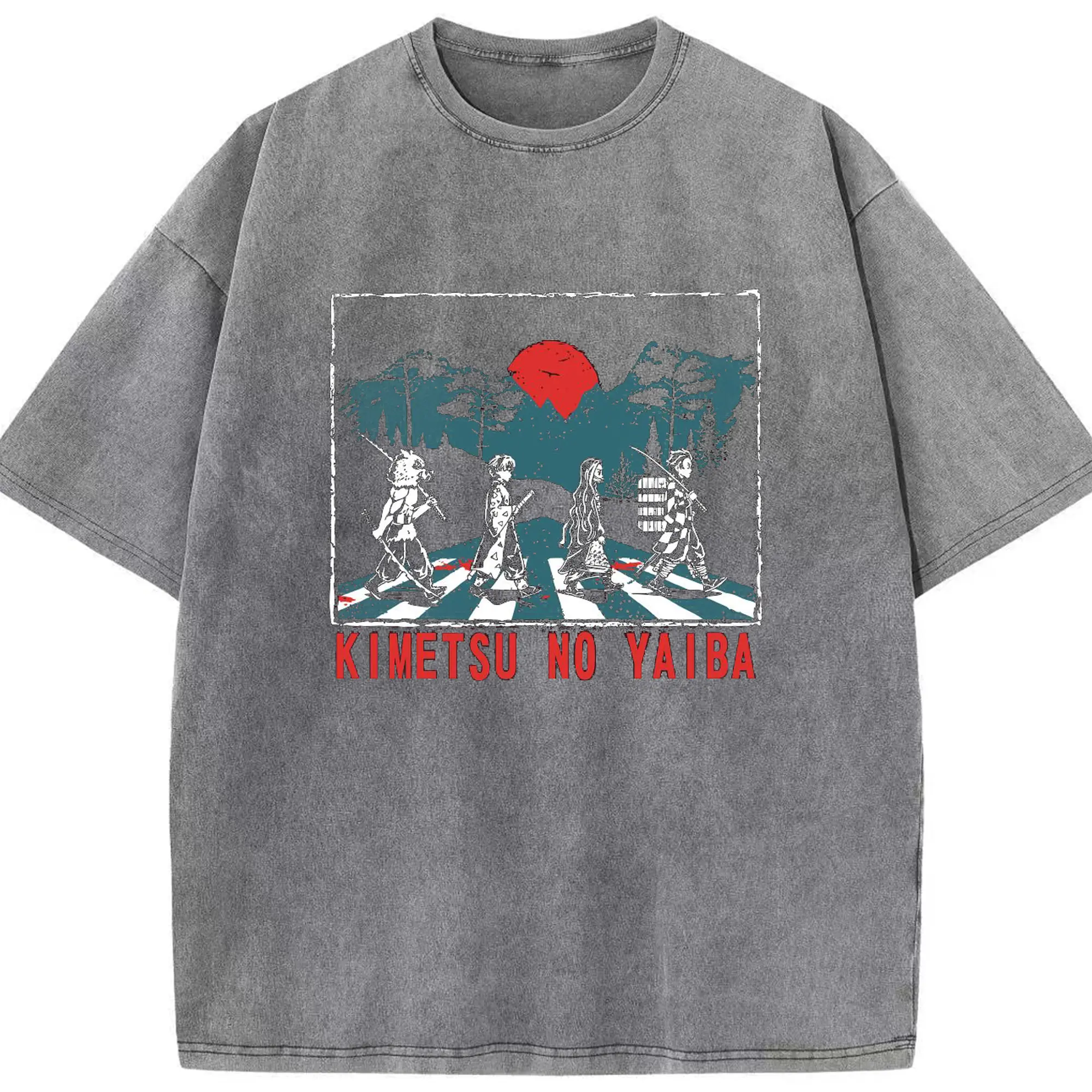 Demon Slayer x Abbey Road Retro DIY Shirt - Washed Vintage Look 230g Cotton Oversized T-Shirt With Front Heat Transfer Print – Soft, Lightweight, Stylish Fit – Comfortable Casual Wear For Sports & Everyday Use