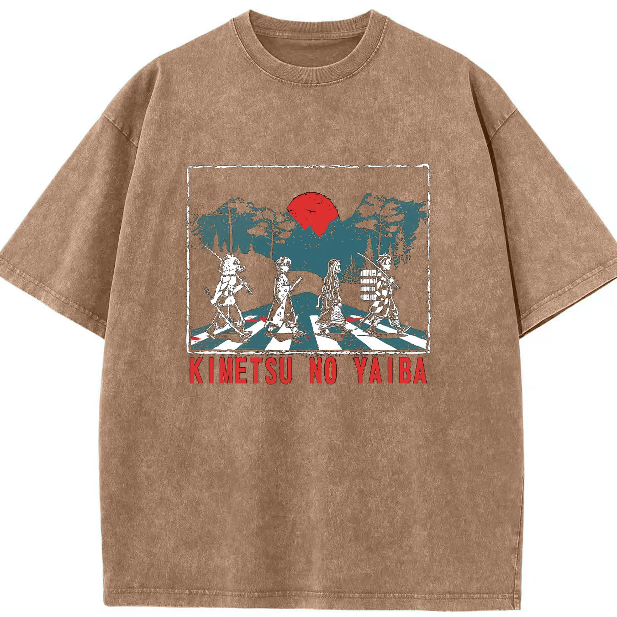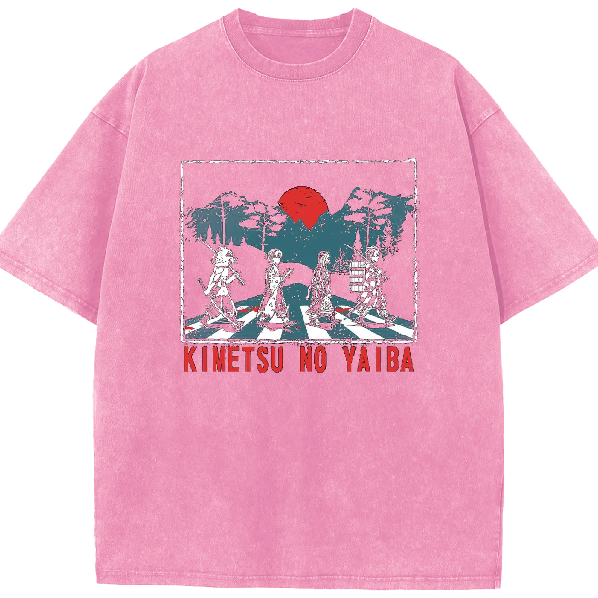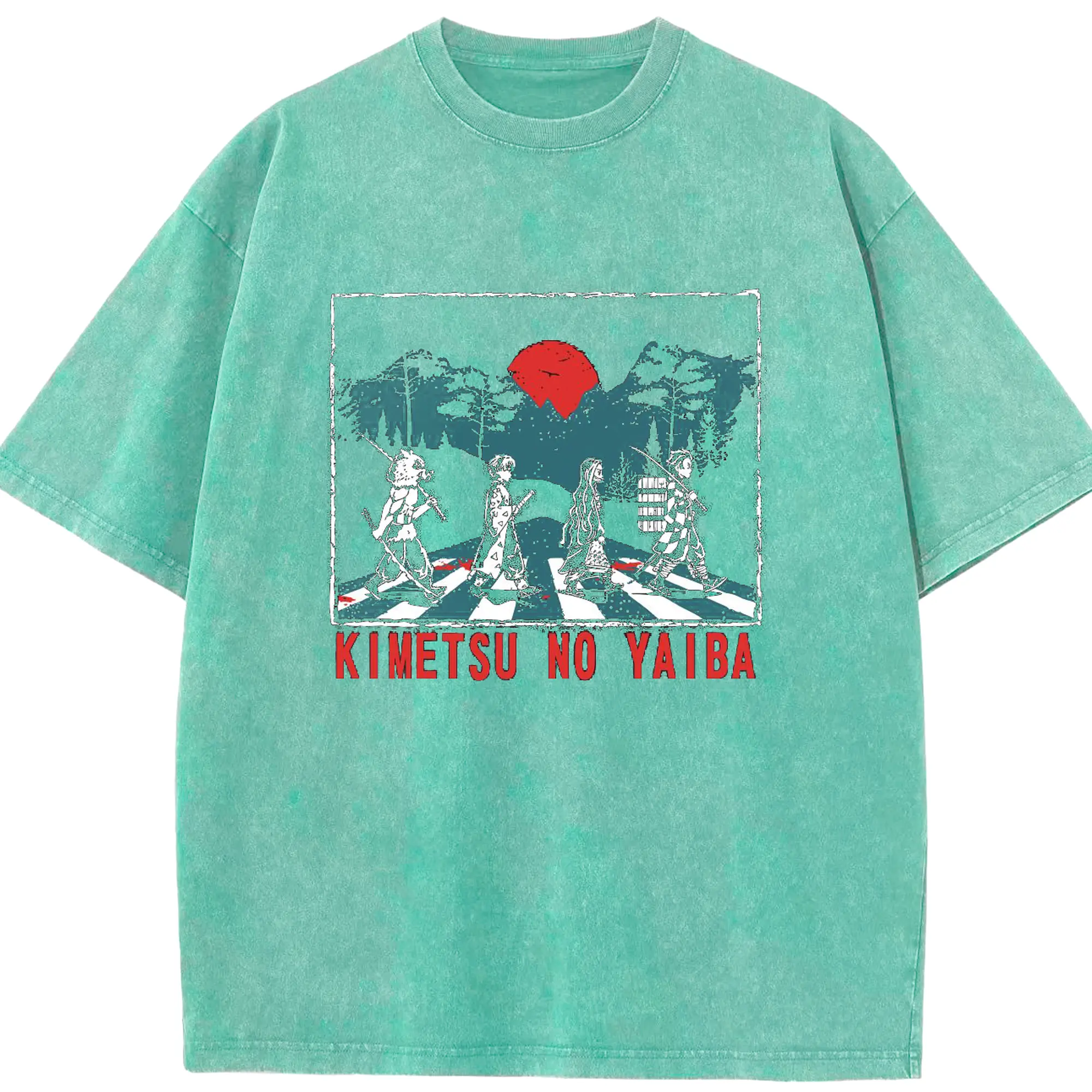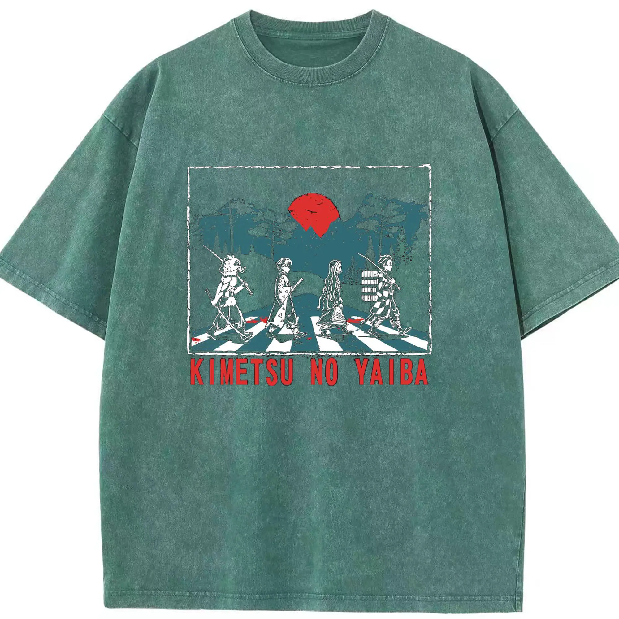 Demon Slayer x Abbey Road Retro DIY Shirt - Washed Vintage Look 230g Cotton Oversized T-Shirt With Front Heat Transfer Print – Soft, Lightweight, Stylish Fit – Comfortable Casual Wear For Sports & Everyday Use
