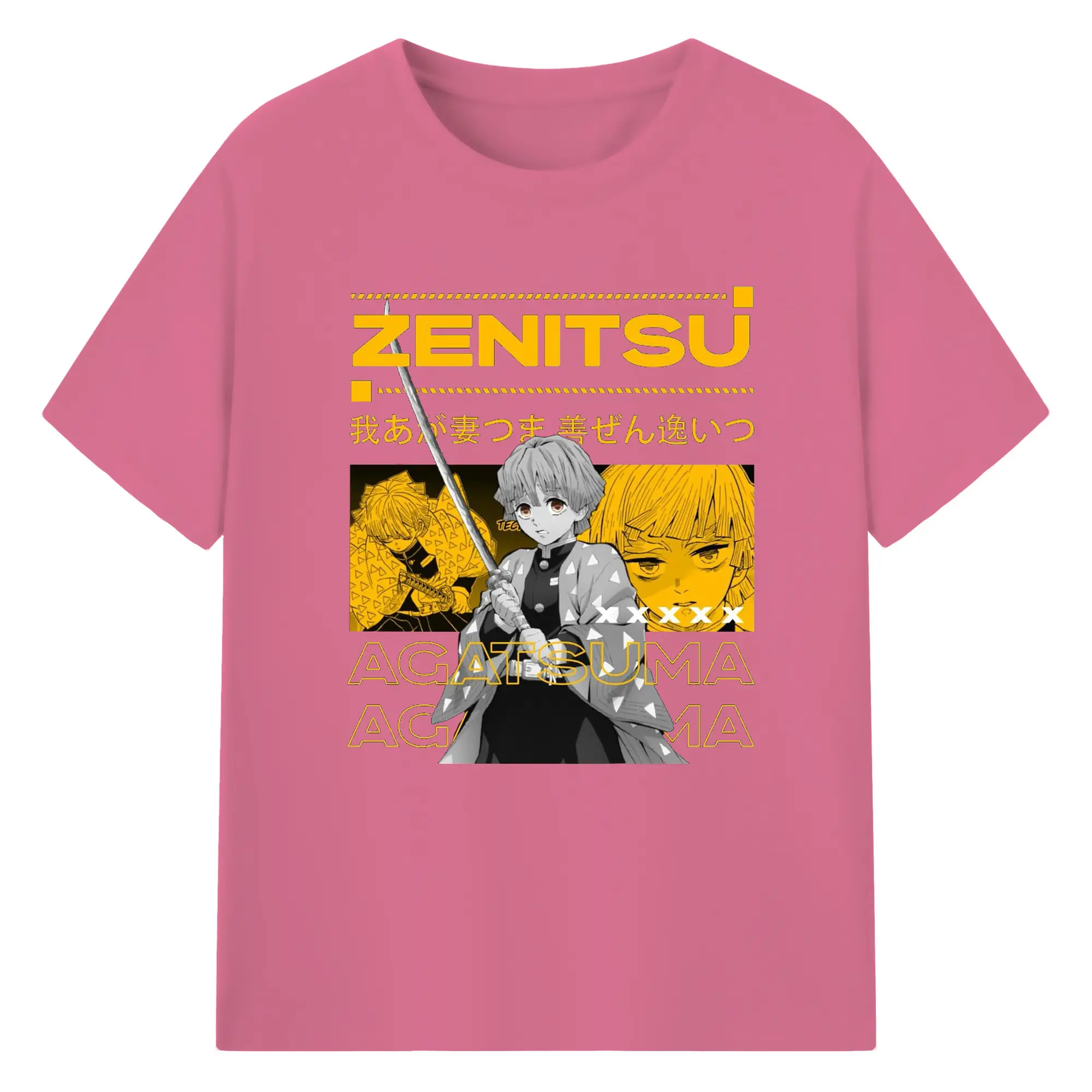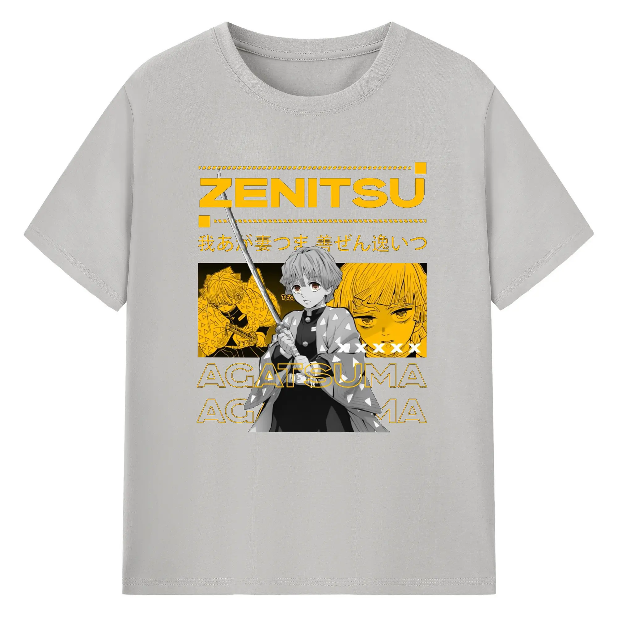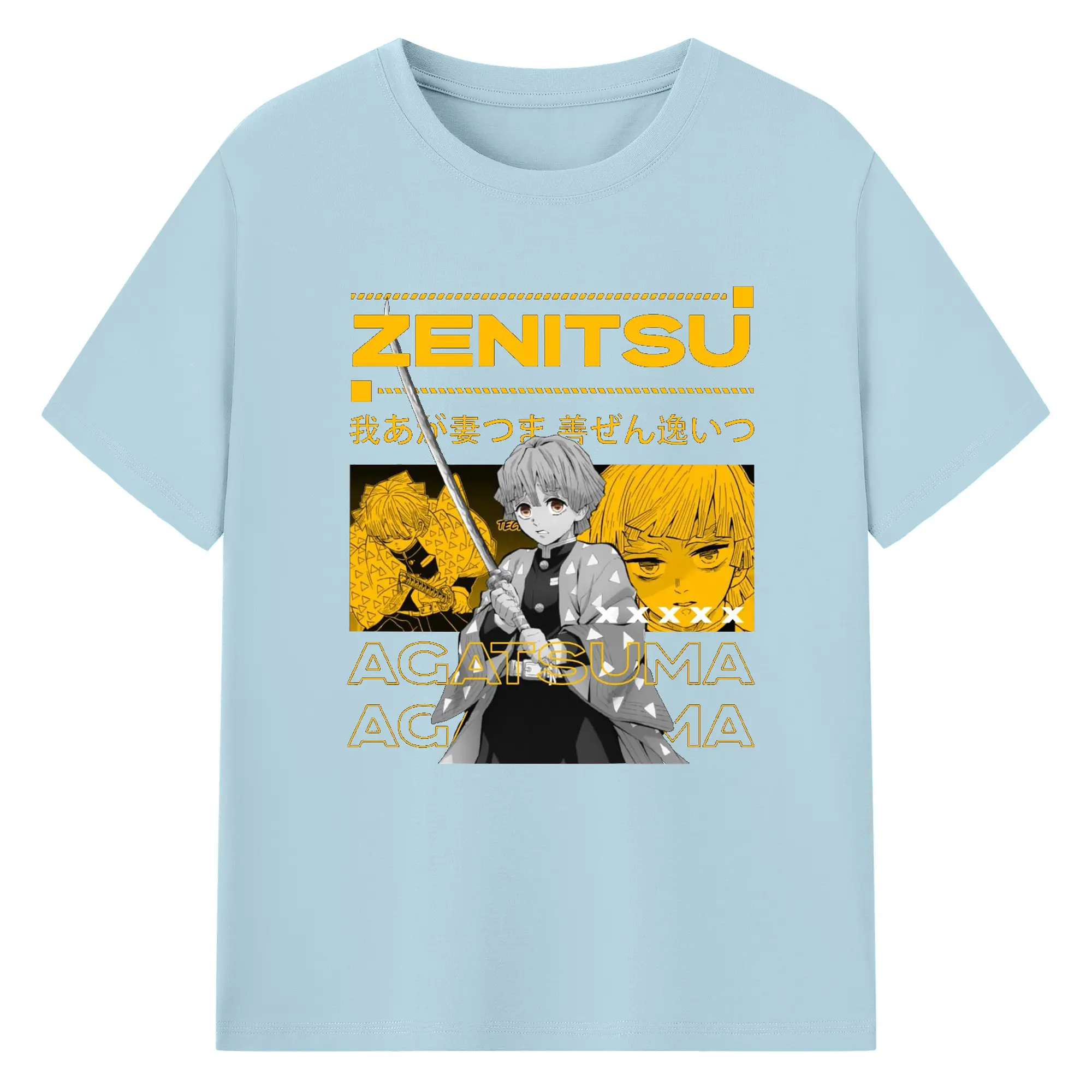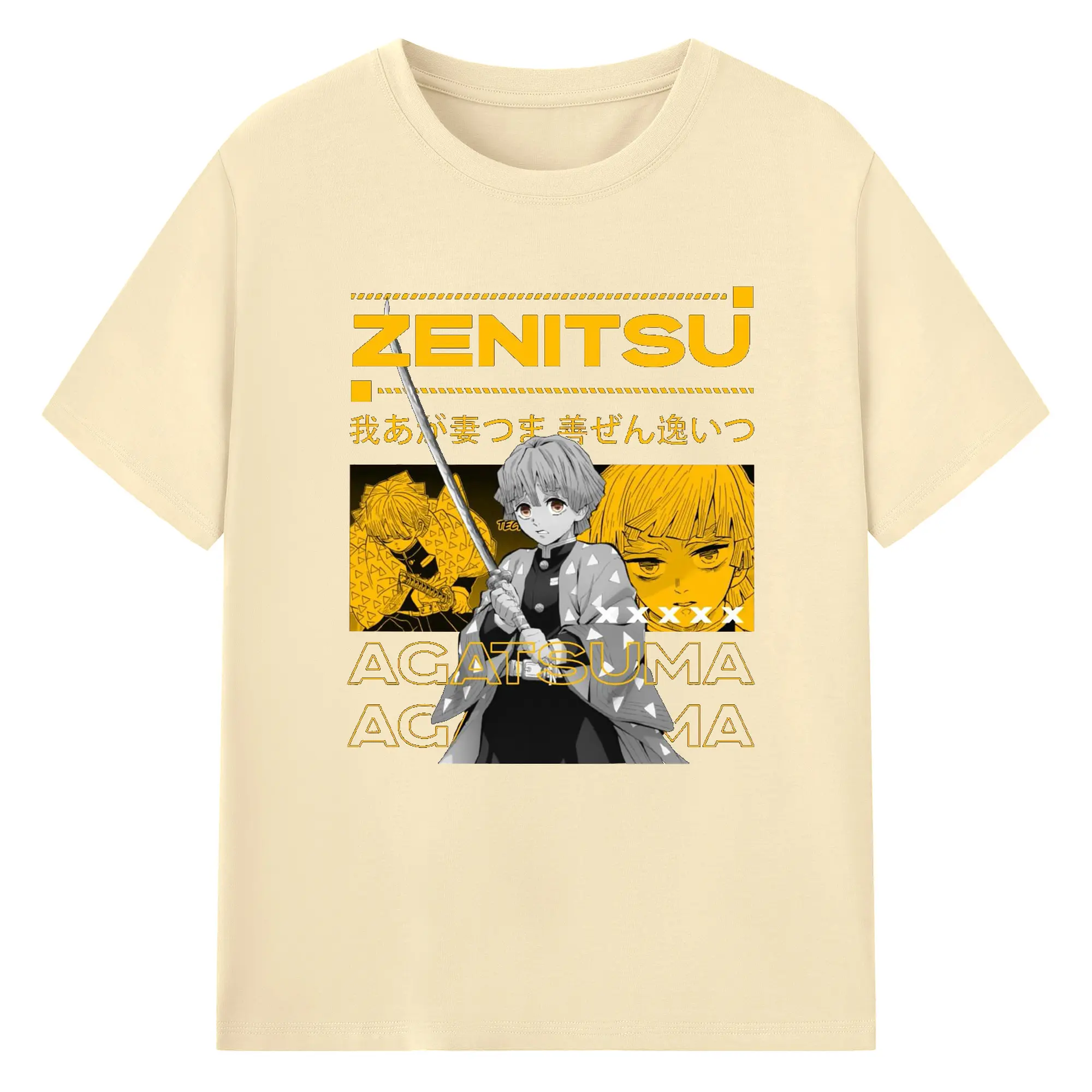 Demon Slayer Zenitsu Agatsuma Trendy Collage DIY Shirt - 180g Cotton T-Shirt With Front Heat Transfer Print – Soft, Lightweight, Fitted Design – Comfortable Casual Wear For Sports & Everyday Use