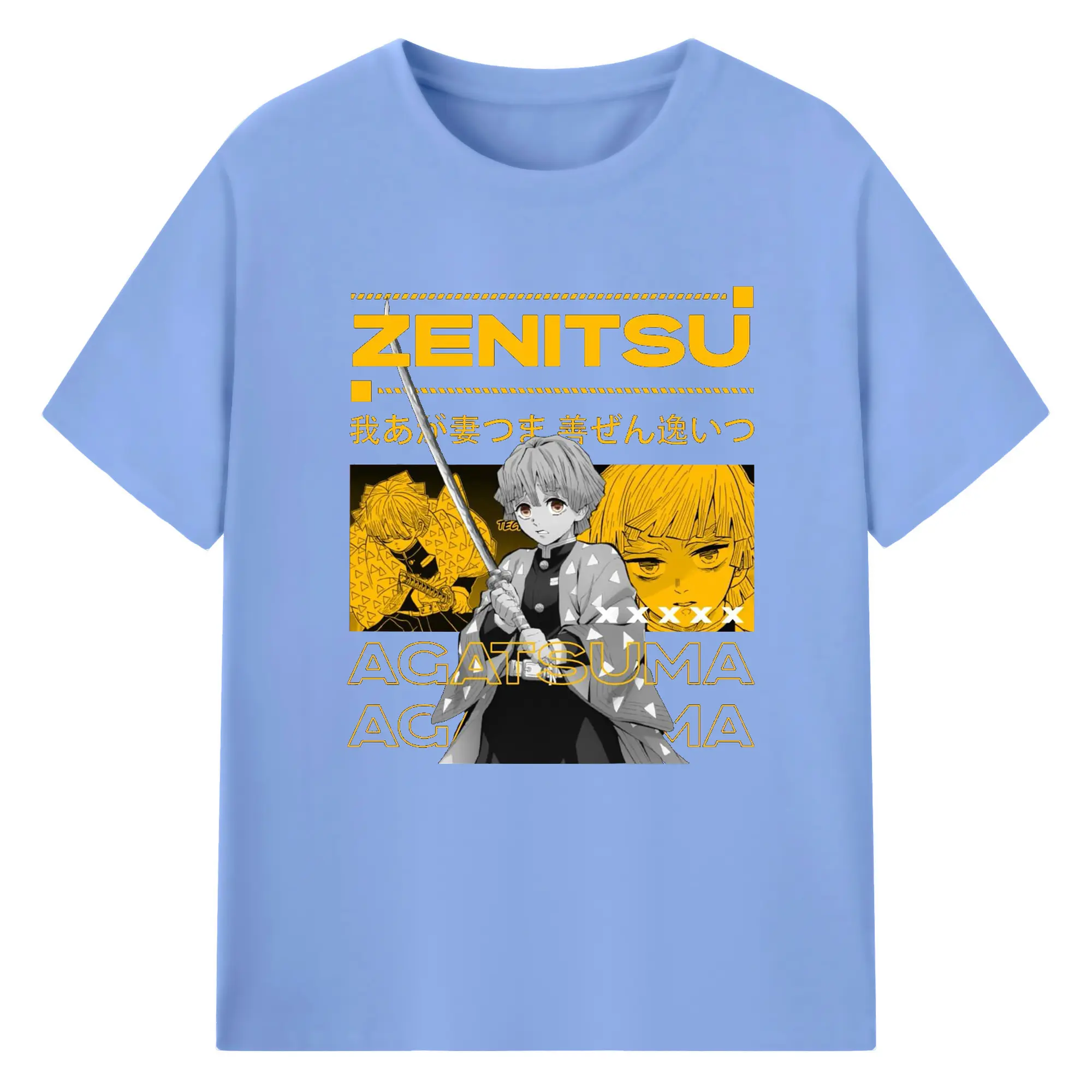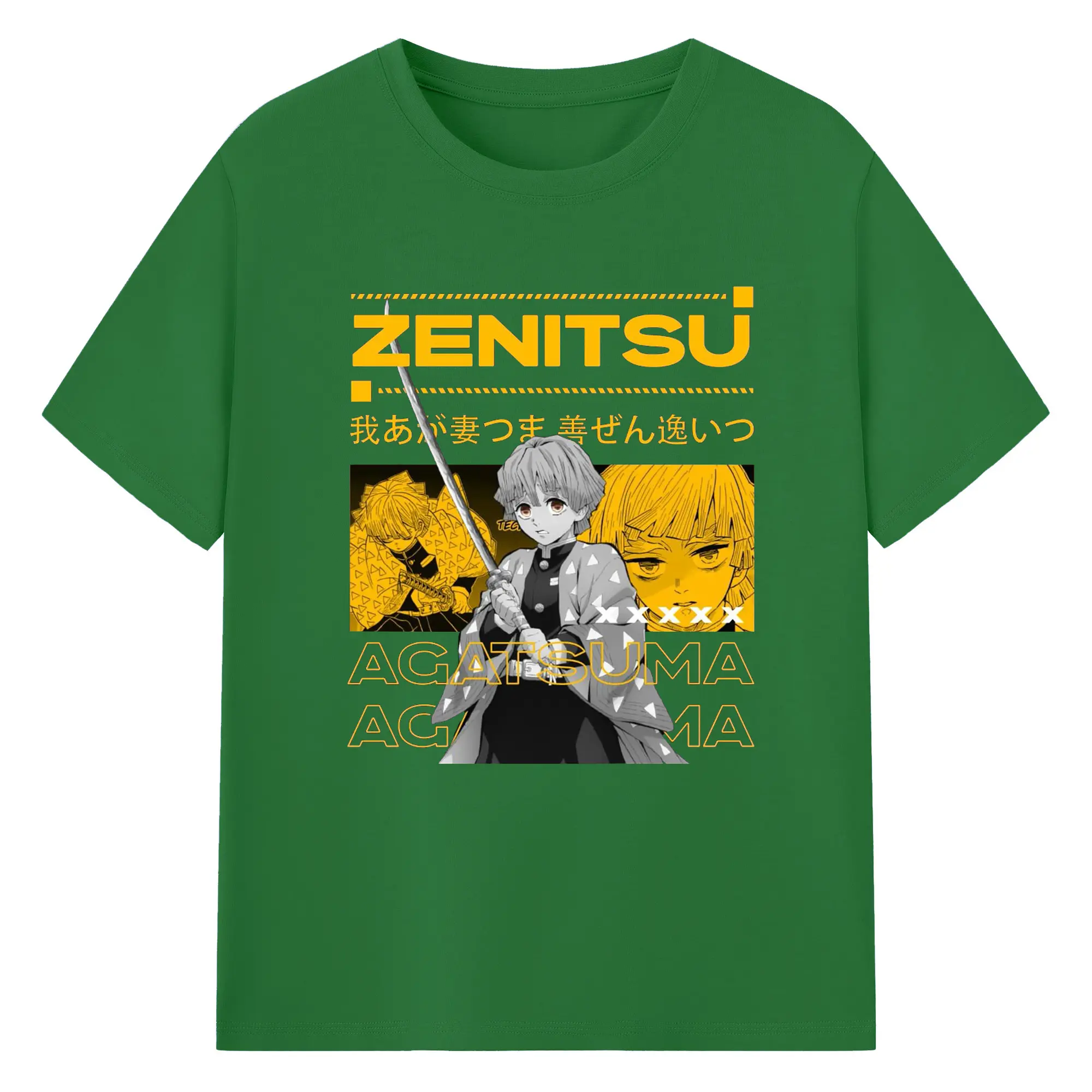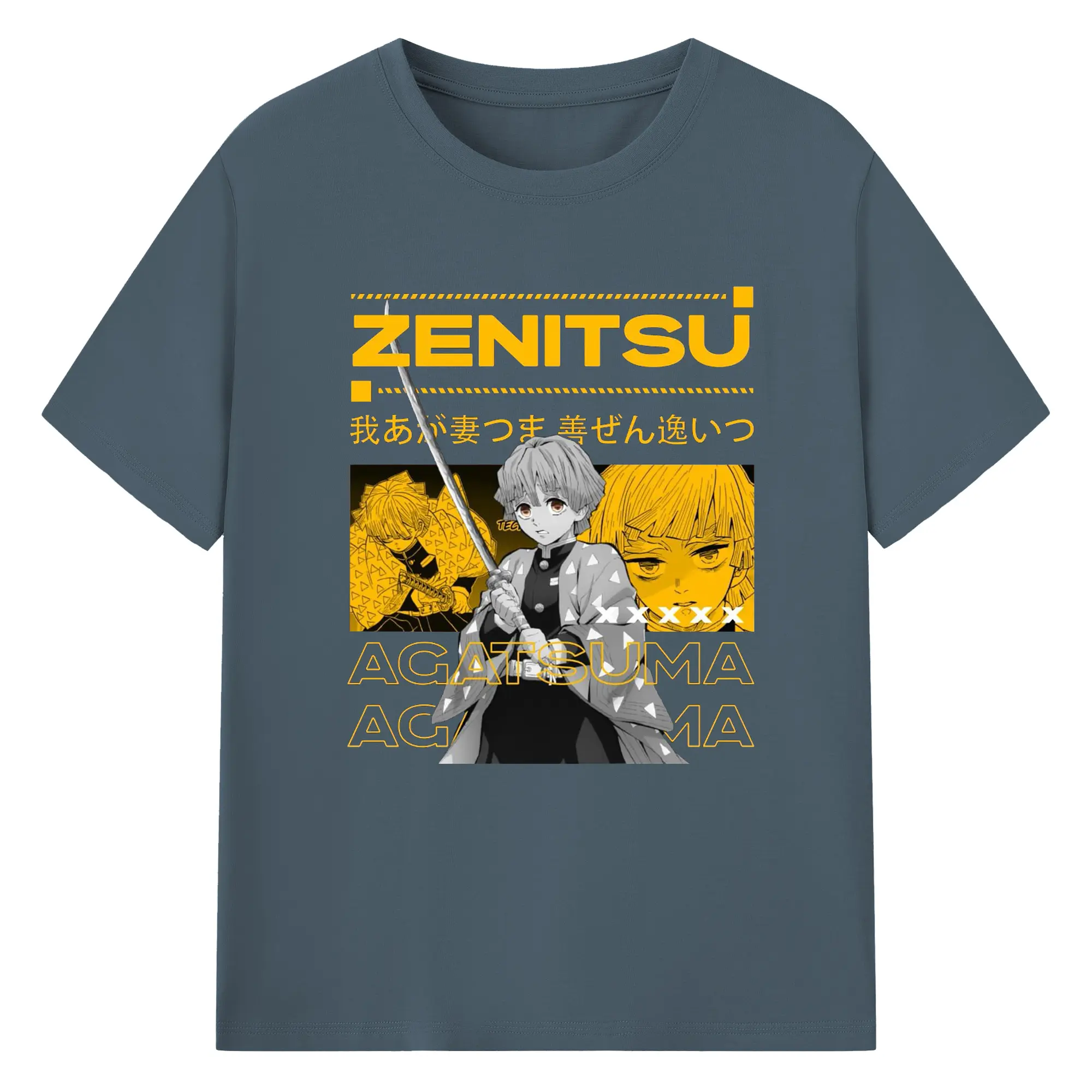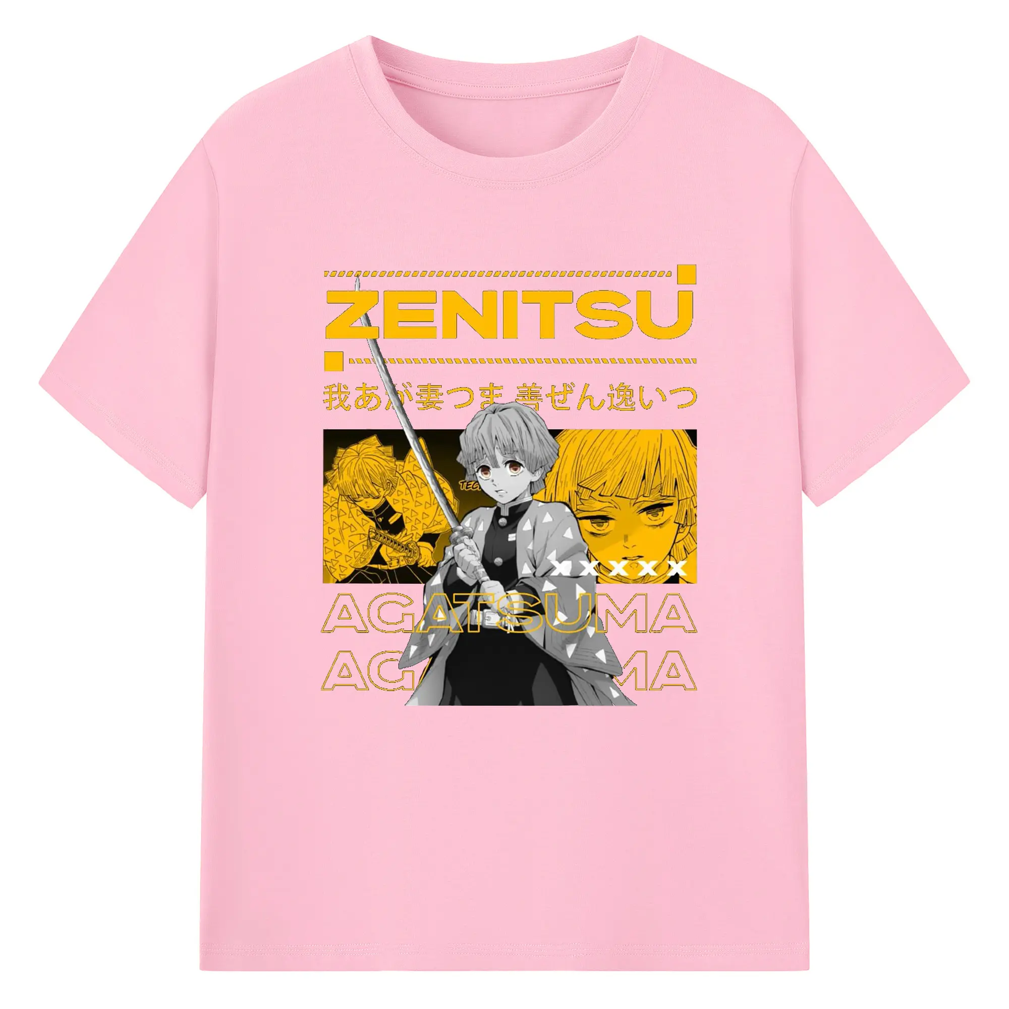 Demon Slayer Zenitsu Agatsuma Trendy Collage DIY Shirt - 180g Cotton T-Shirt With Front Heat Transfer Print – Soft, Lightweight, Fitted Design – Comfortable Casual Wear For Sports & Everyday Use
