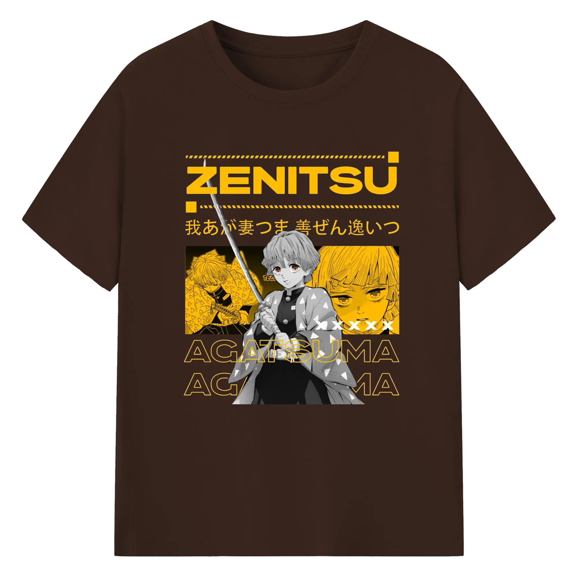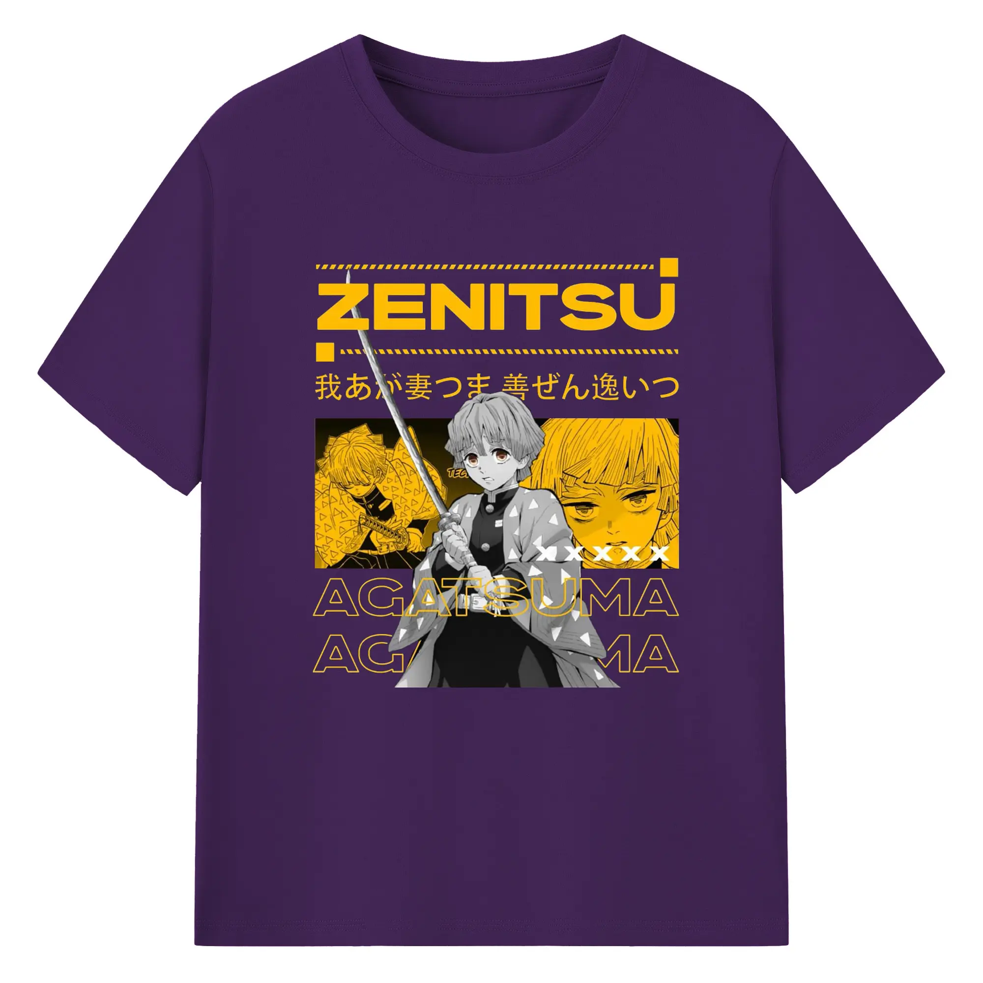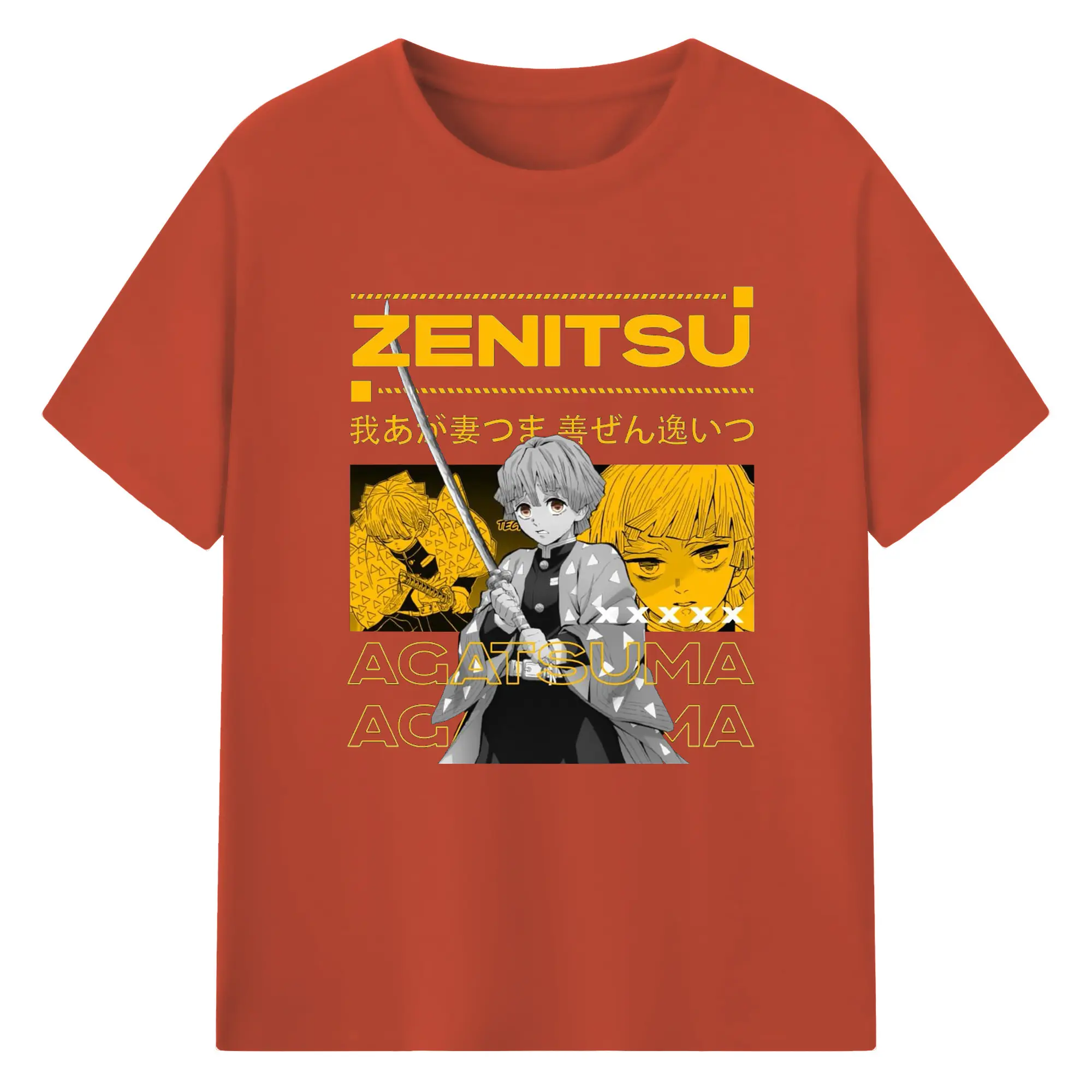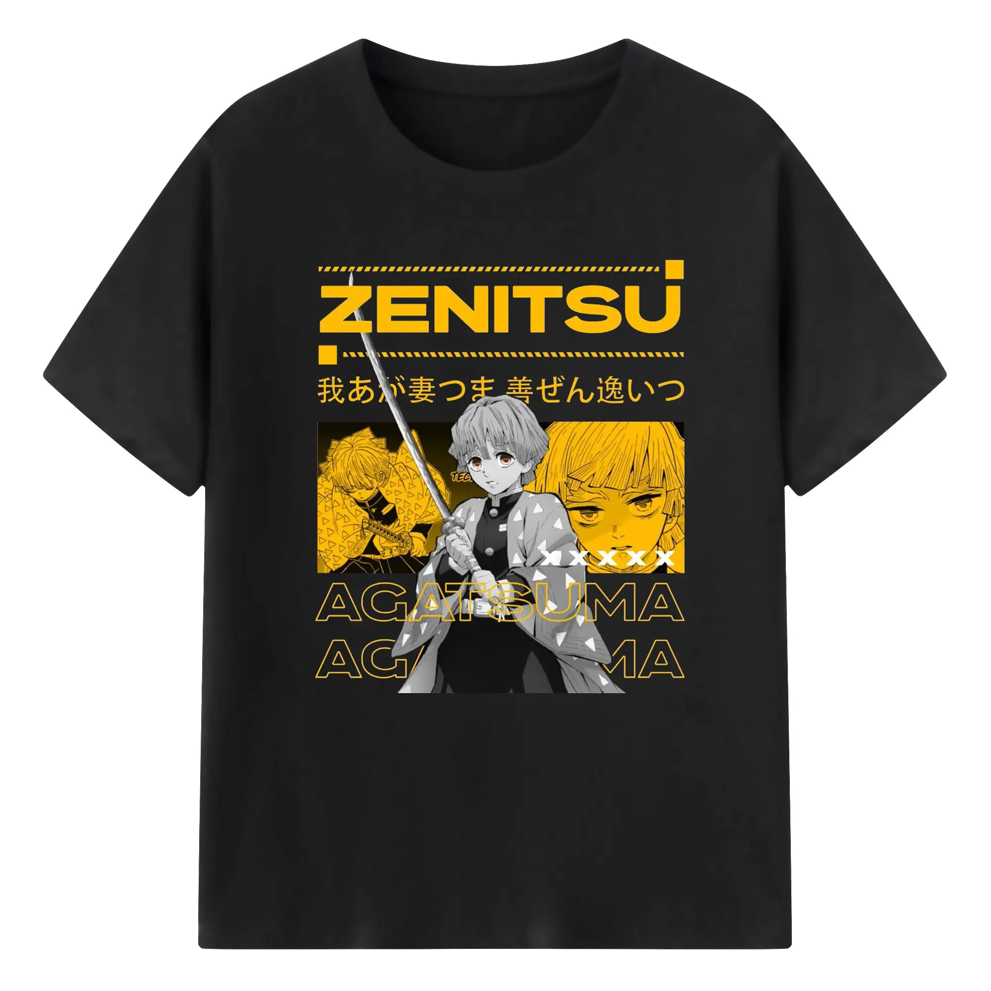 Demon Slayer Zenitsu Agatsuma Trendy Collage DIY Shirt - 180g Cotton T-Shirt With Front Heat Transfer Print – Soft, Lightweight, Fitted Design – Comfortable Casual Wear For Sports & Everyday Use