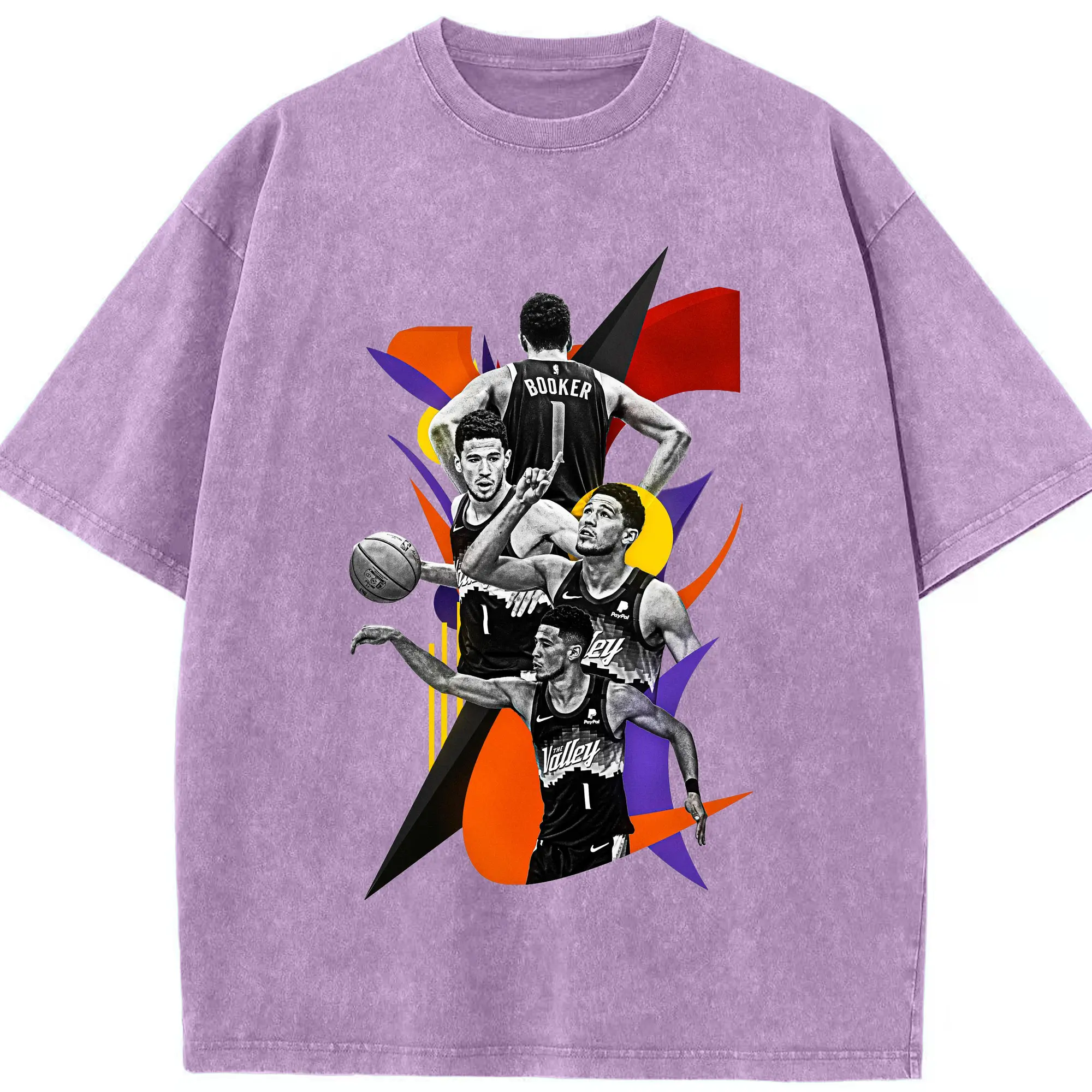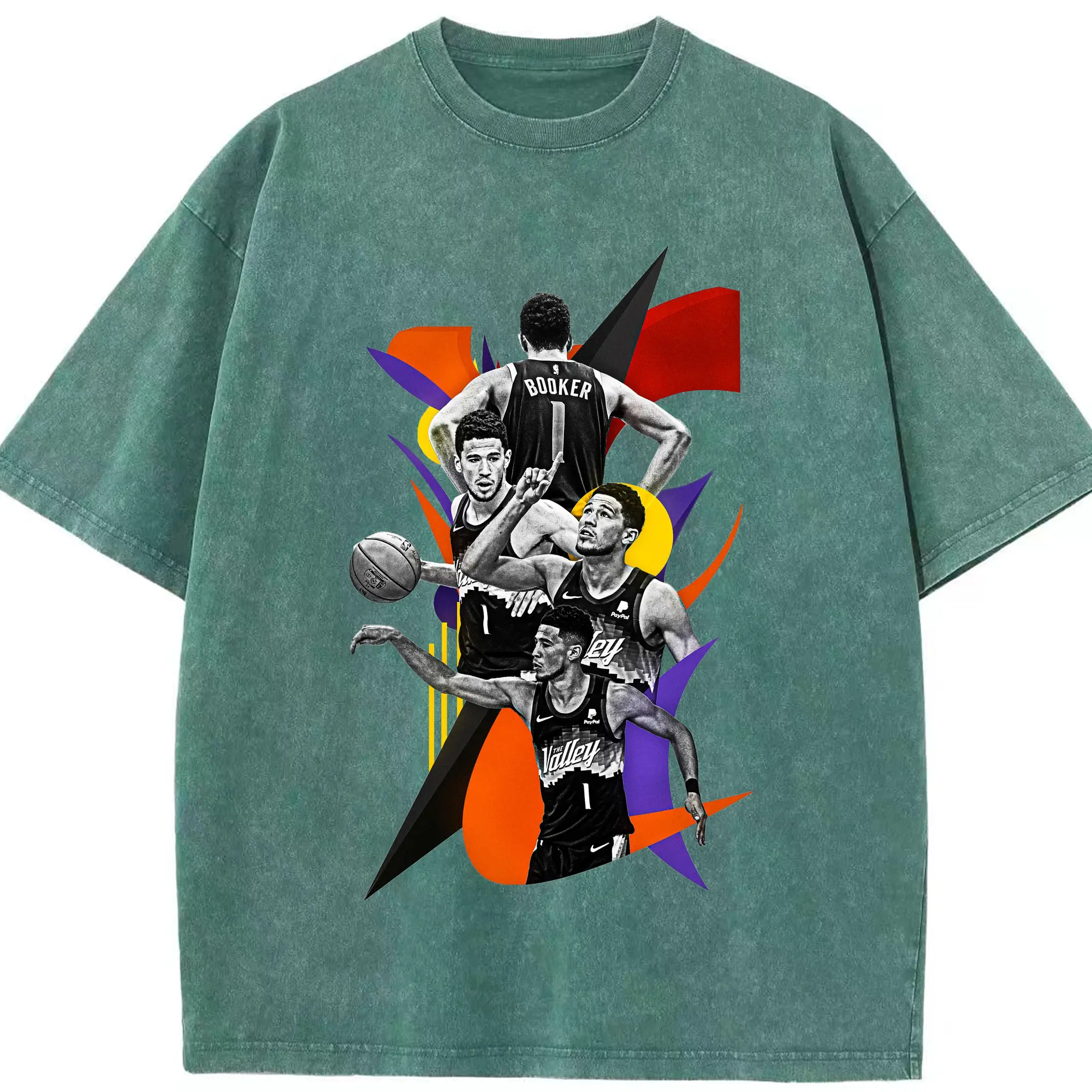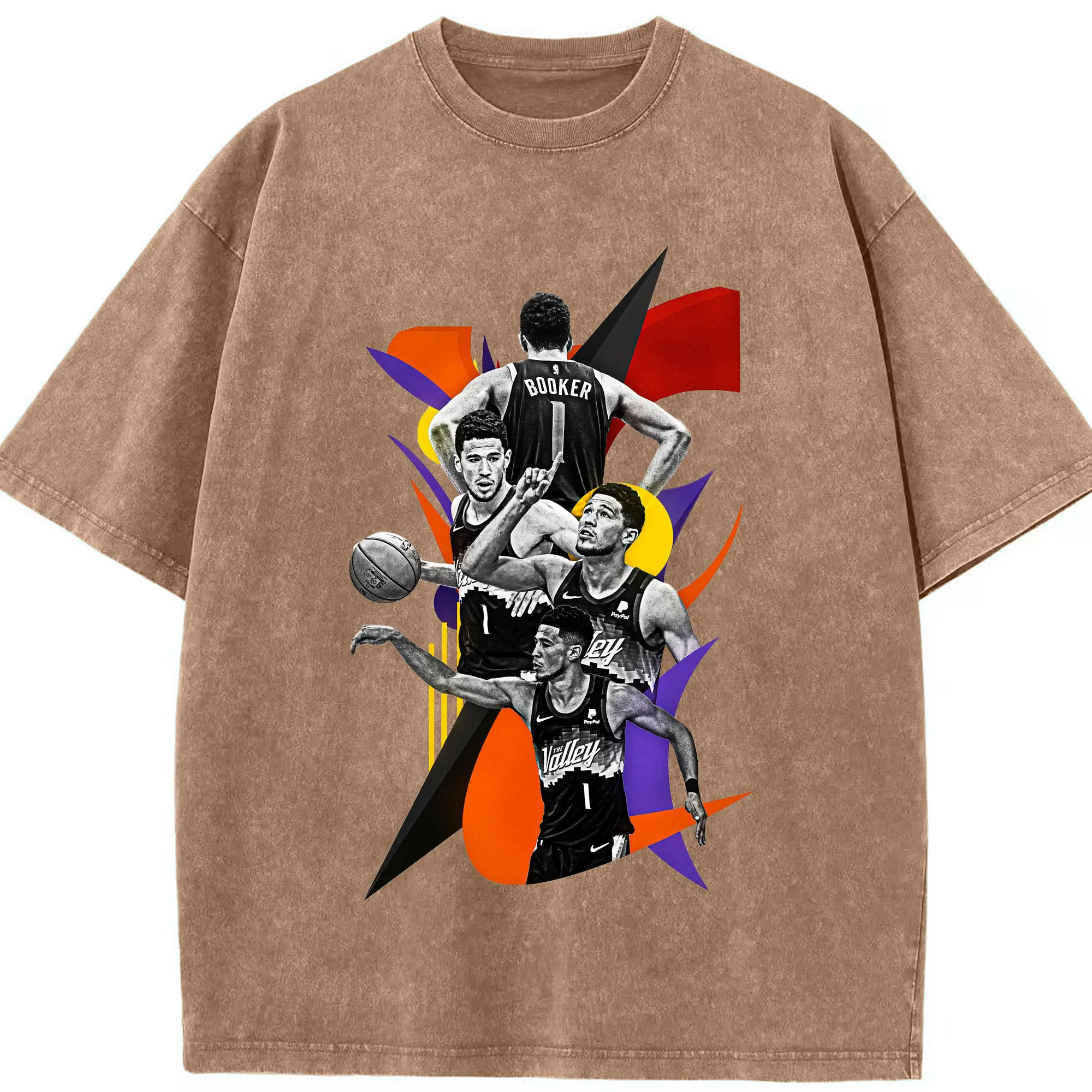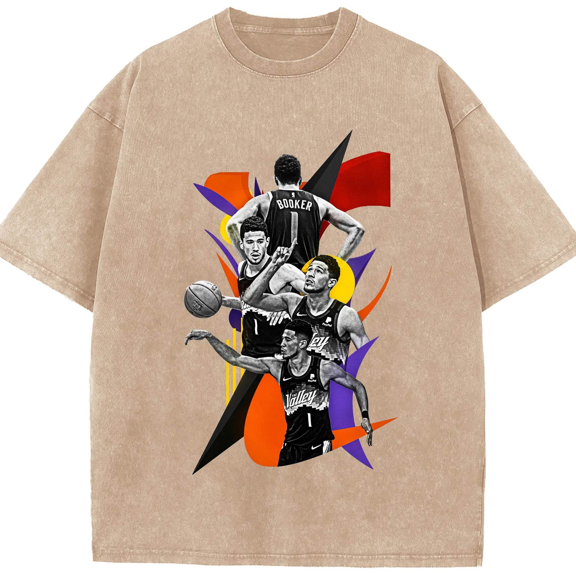 Devin Booker Collage Art Shirt - Washed Vintage Look 230g Cotton Oversized T-Shirt With Front Heat Transfer Print – Soft, Lightweight, Stylish Fit – Comfortable Casual Wear For Sports & Everyday Use