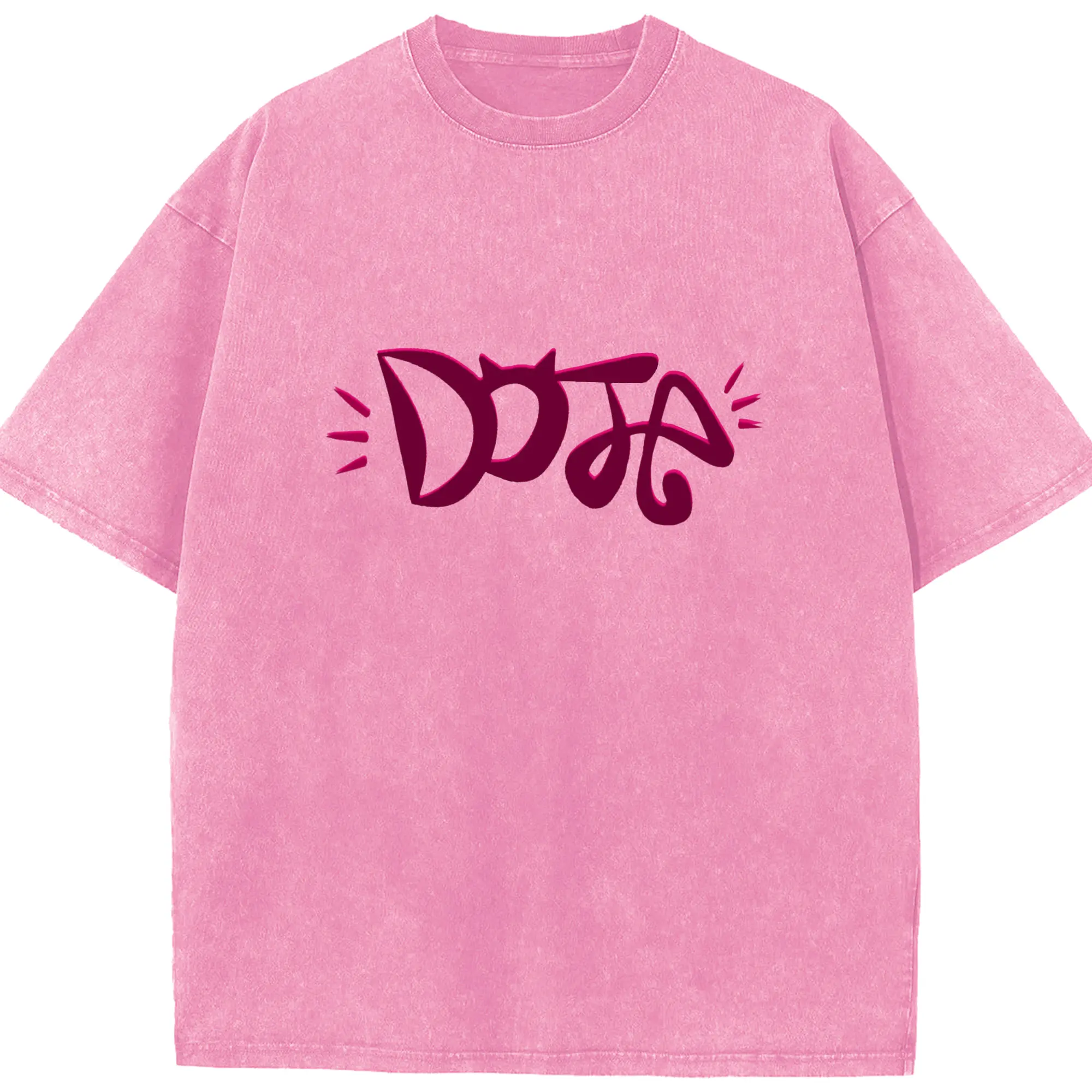 Doja Cat Pop Music Fandom Logo DIY - Washed Vintage Look 230g Cotton Oversized T-Shirt With Front Heat Transfer Print – Soft, Lightweight, Stylish Fit – Comfortable Casual Wear For Sports & Everyday Use