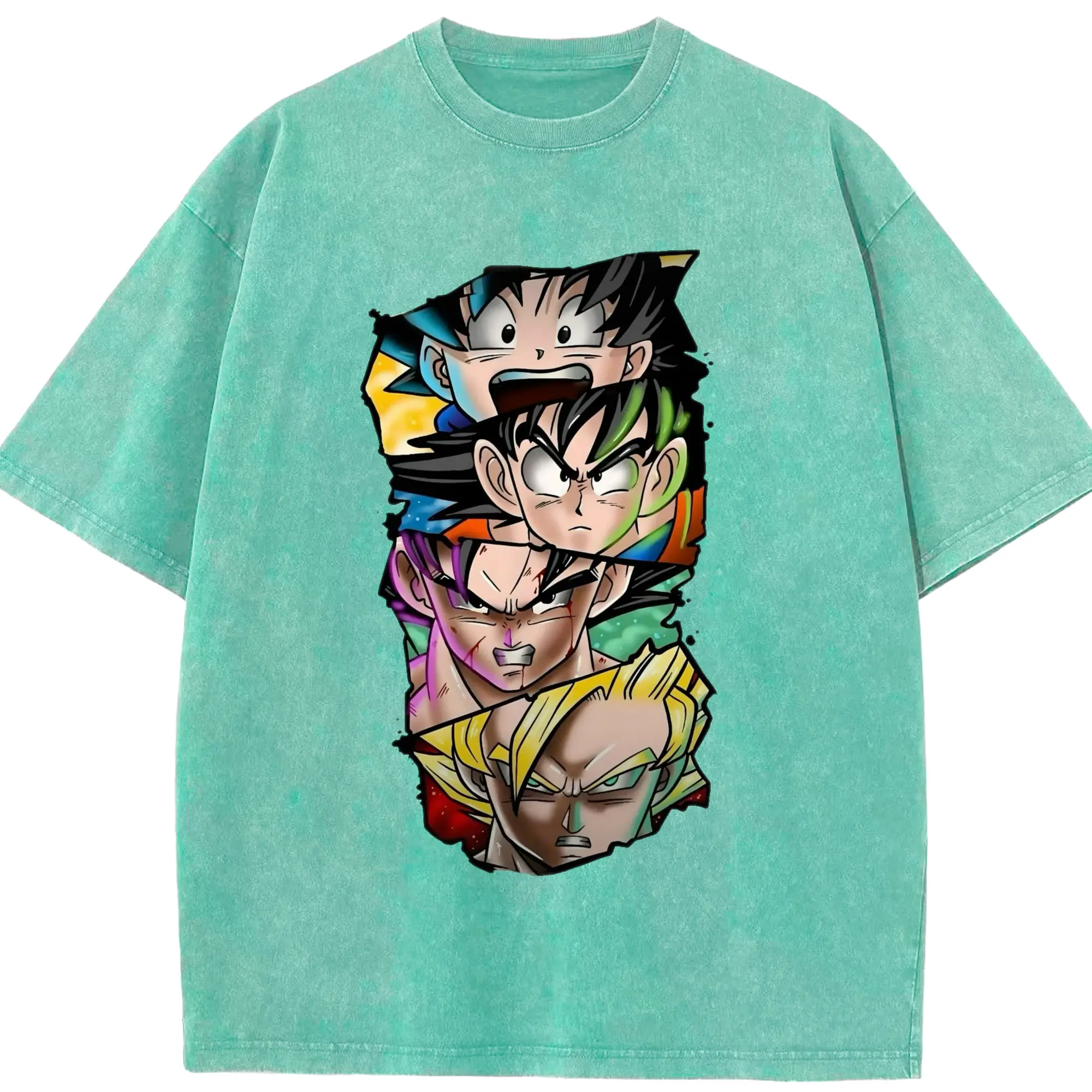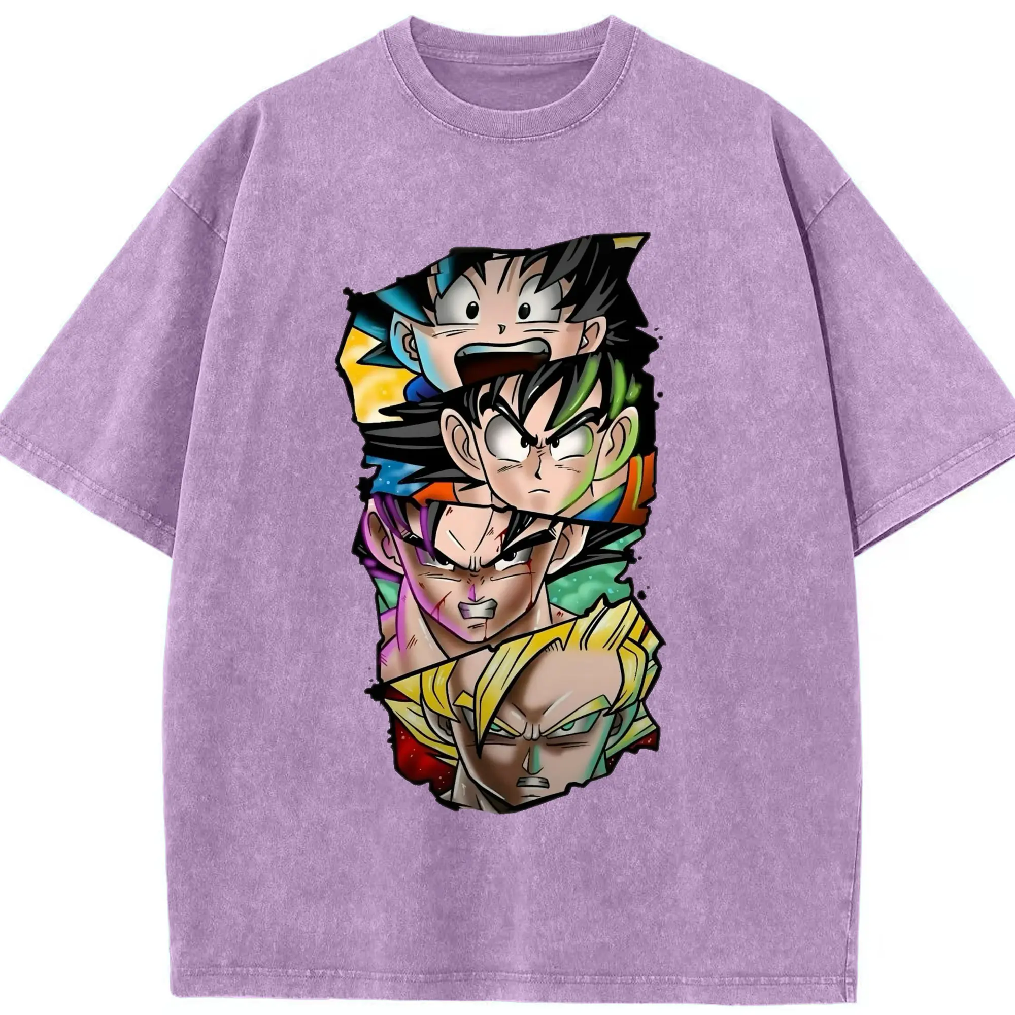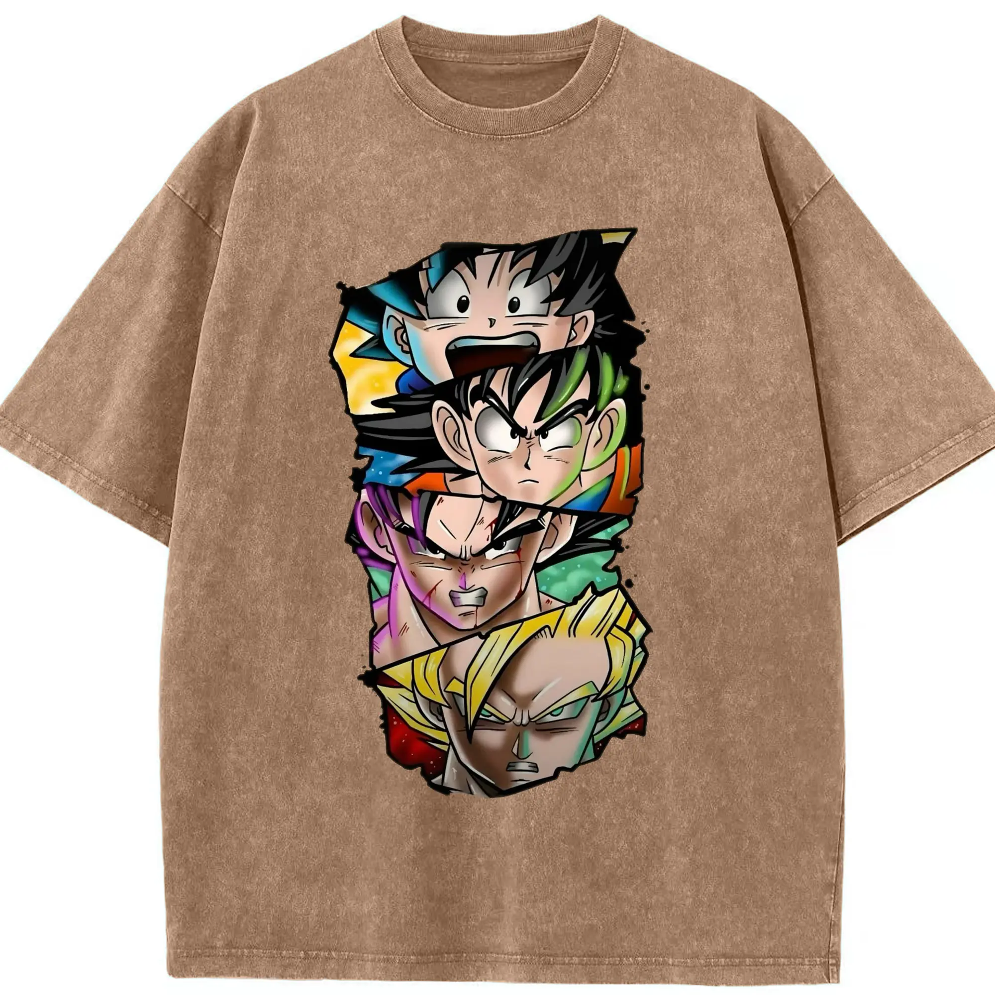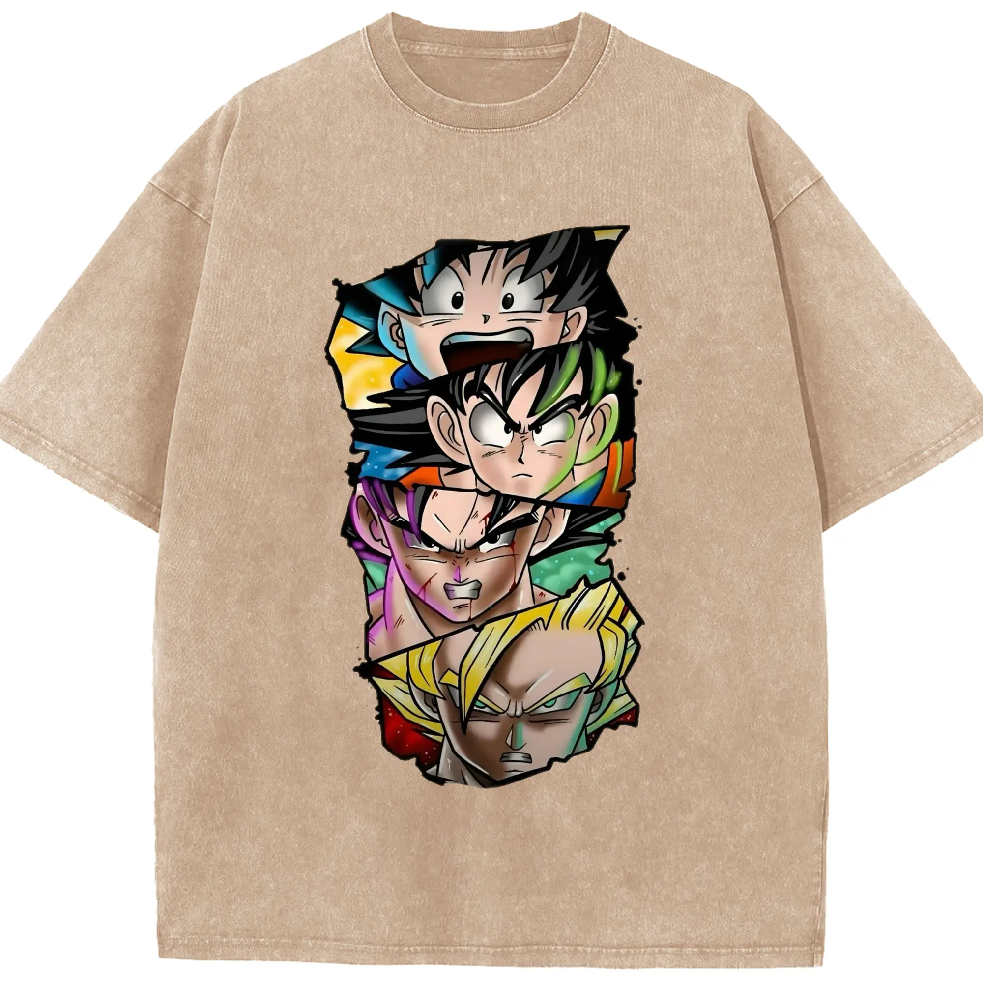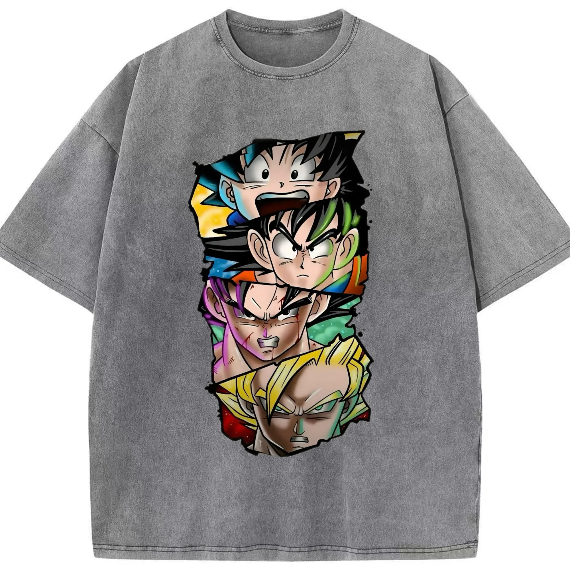 Dragon Ball Goku Multiple Forms DIY Shirt - Washed Vintage Look 230g Cotton Oversized T-Shirt With Front Heat Transfer Print – Soft, Lightweight, Stylish Fit – Comfortable Casual Wear For Sports & Everyday Use
