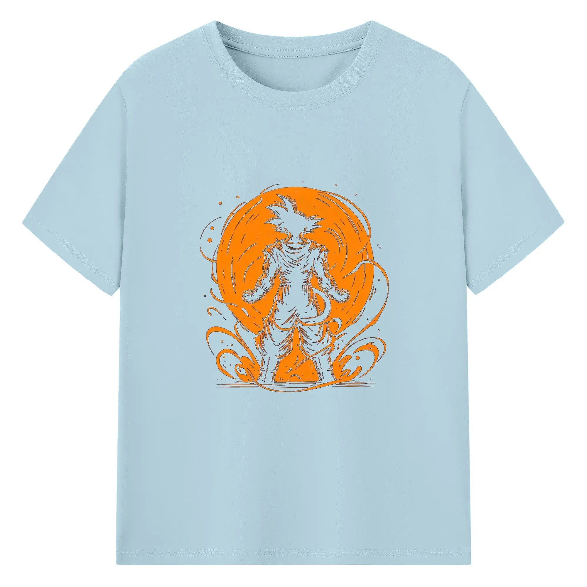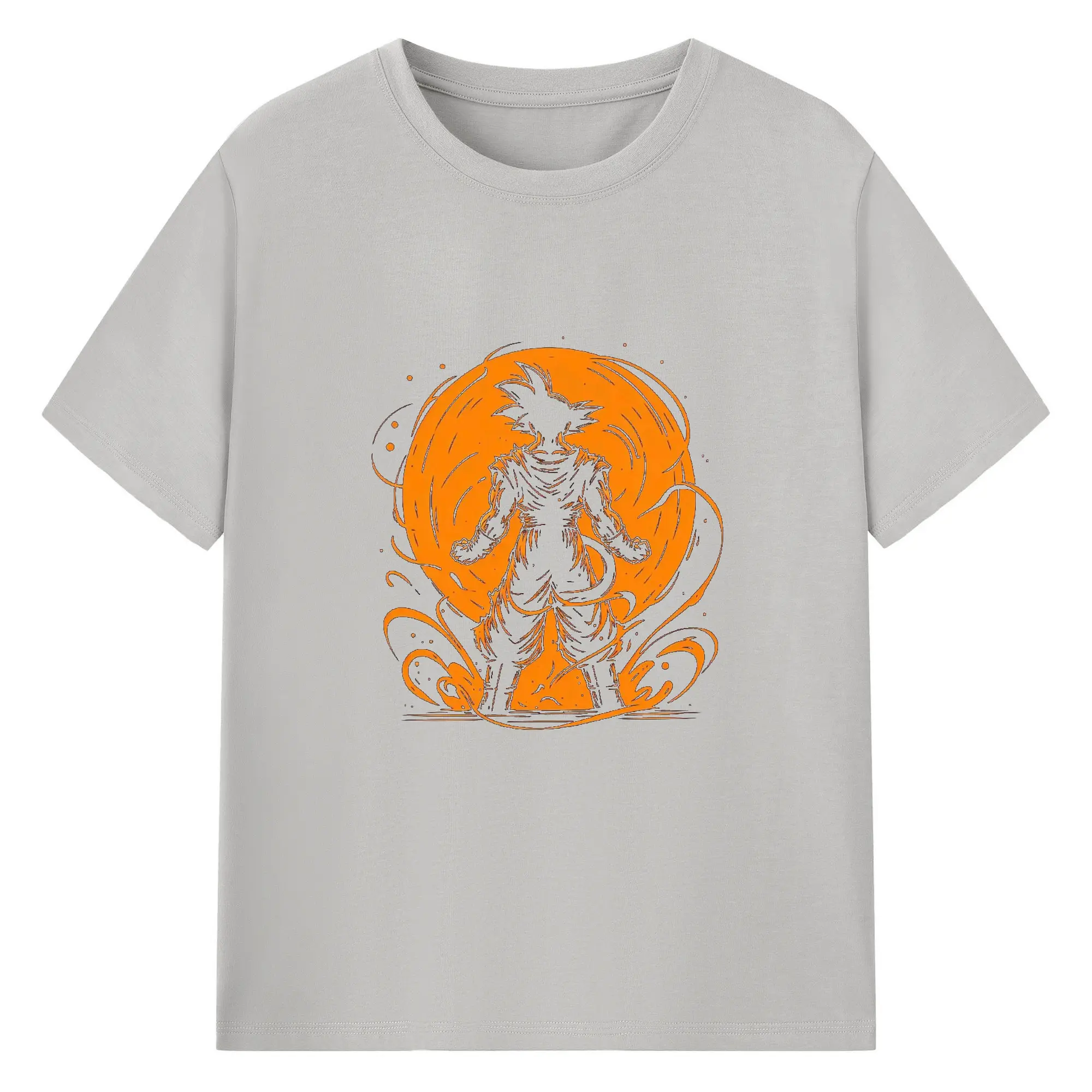 Dragon Ball Saiyan Minimalist Orange Style DIY - 180g Cotton T-Shirt With Front Heat Transfer Print – Soft, Lightweight, Fitted Design – Comfortable Casual Wear For Sports & Everyday Use