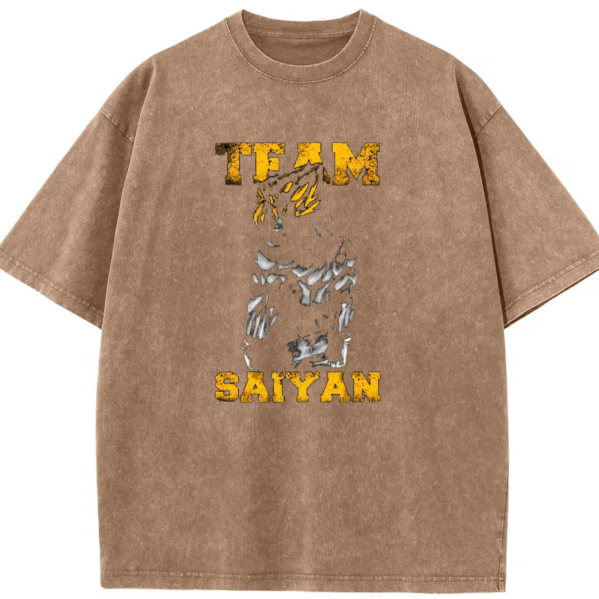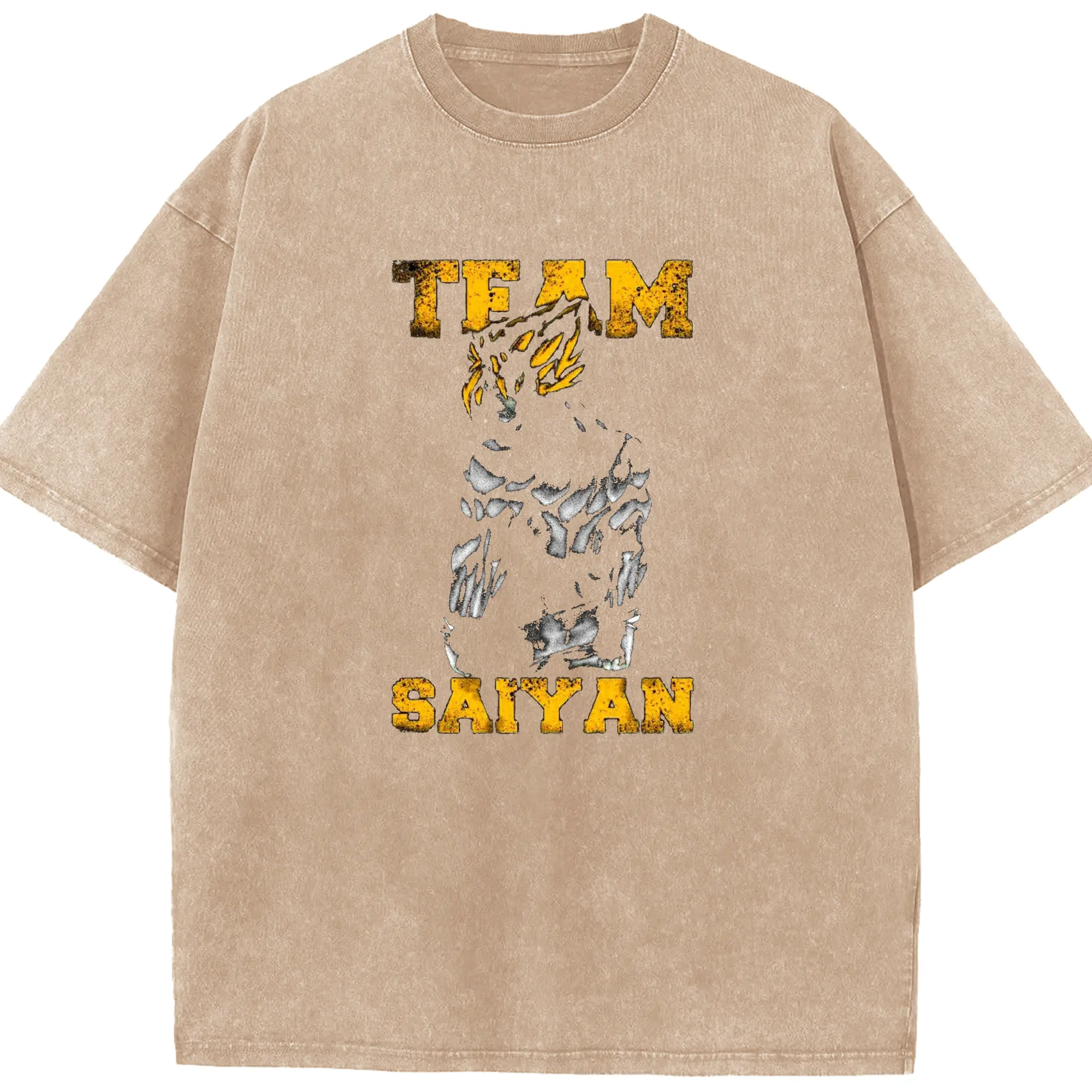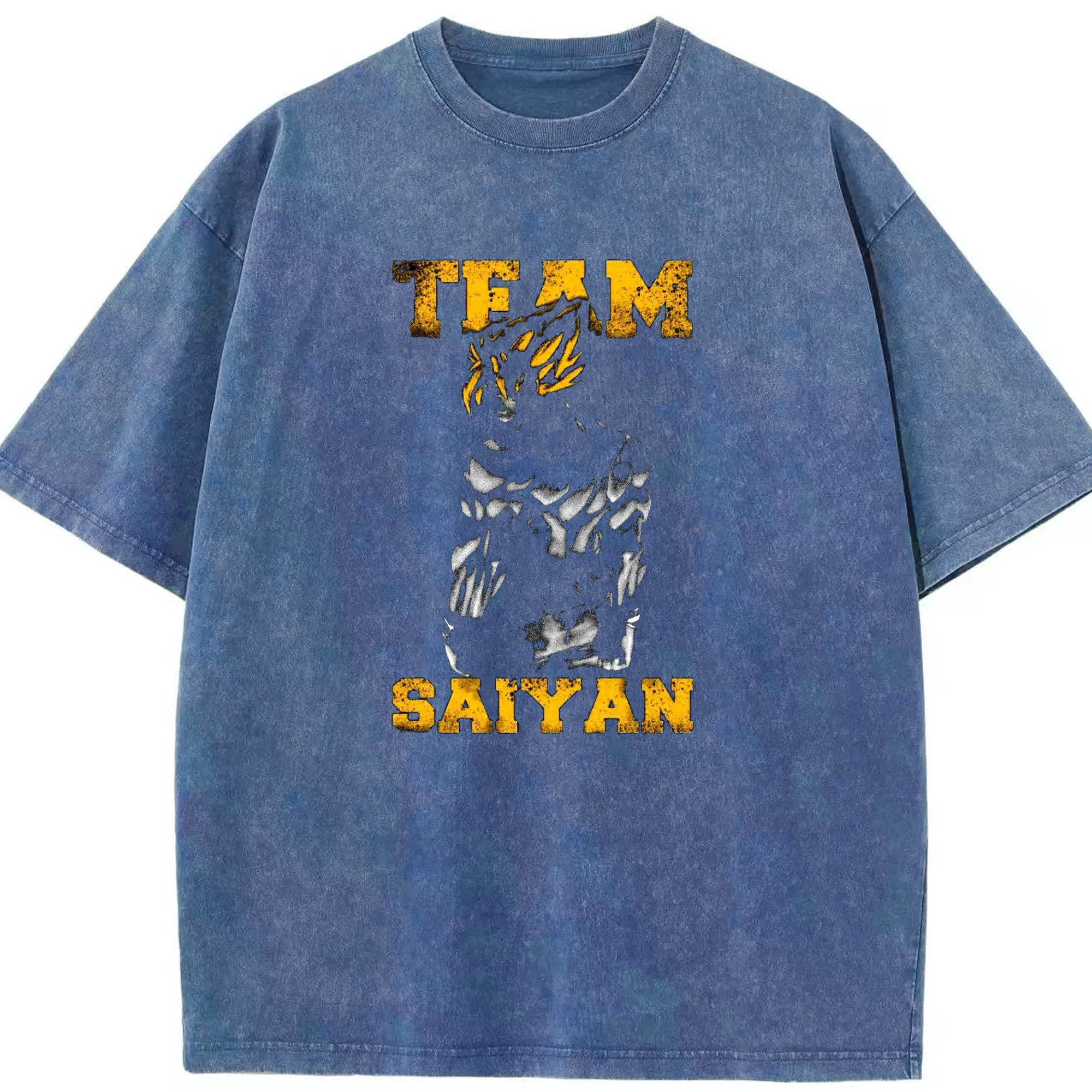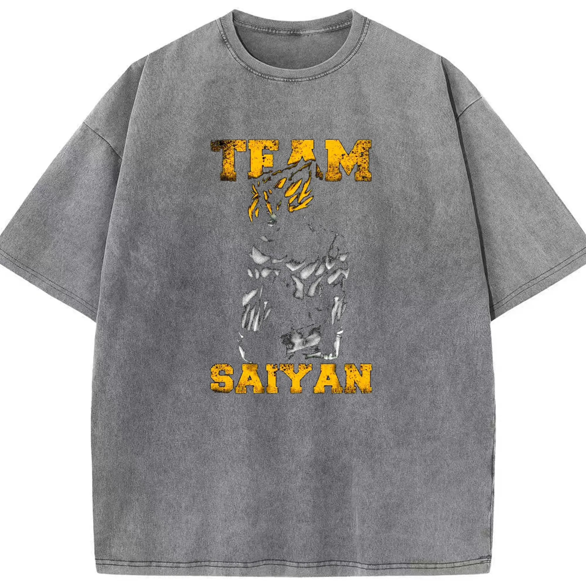 Dragon Ball Team Saiyan Vintage Style DIY Shirt - Washed Vintage Look 230g Cotton Oversized T-Shirt With Front Heat Transfer Print – Soft, Lightweight, Stylish Fit – Comfortable Casual Wear For Sports & Everyday Use