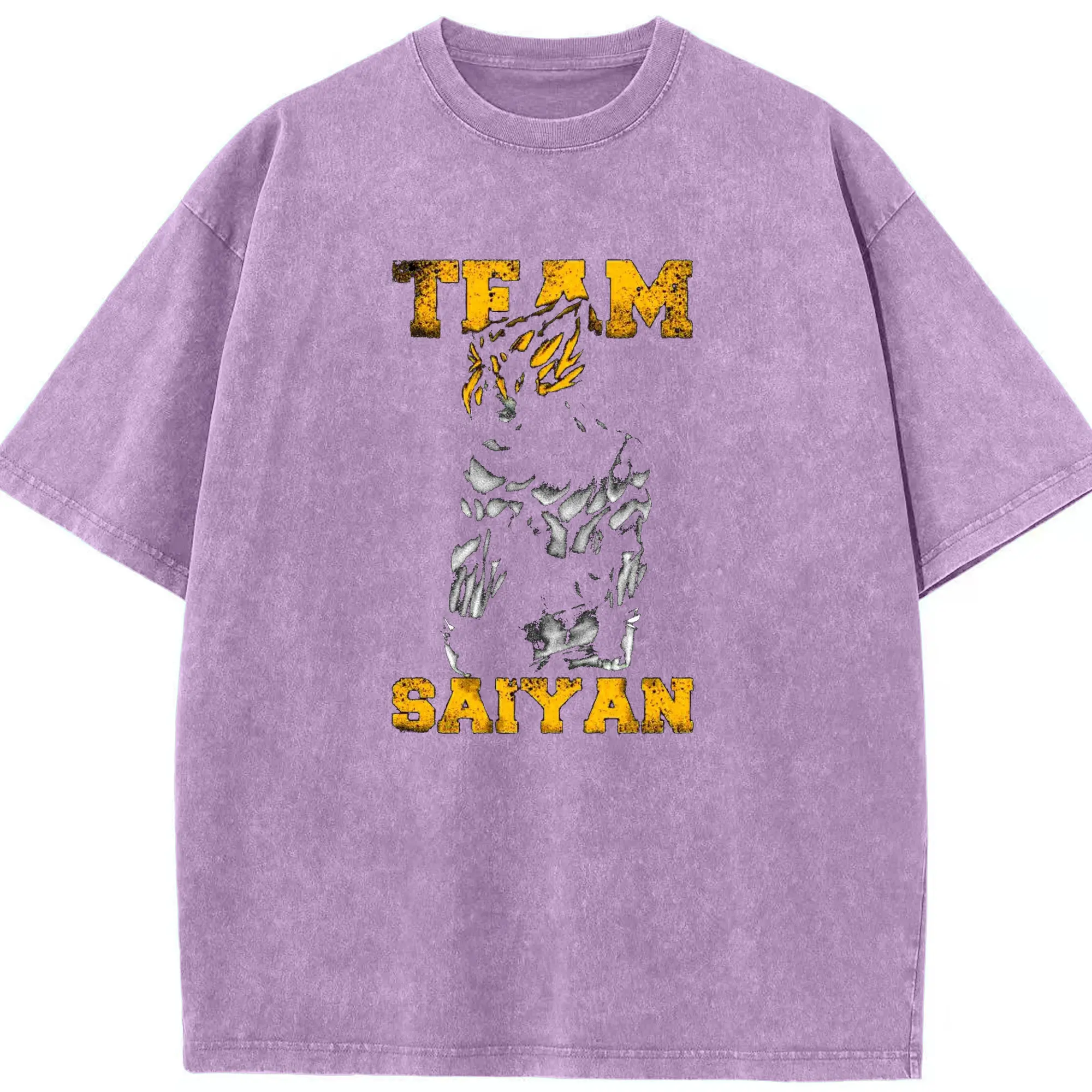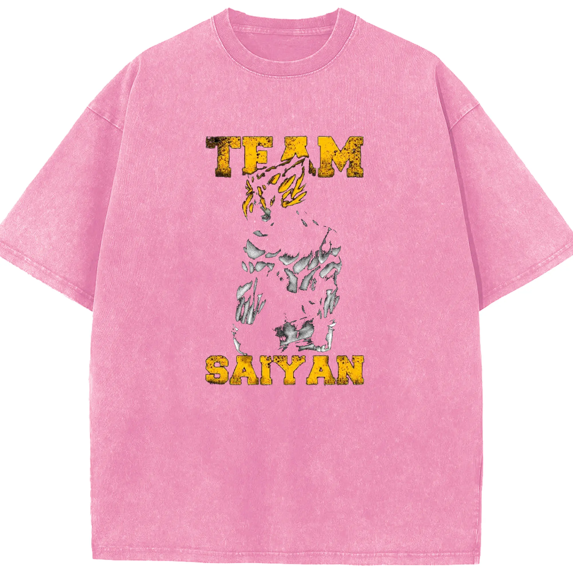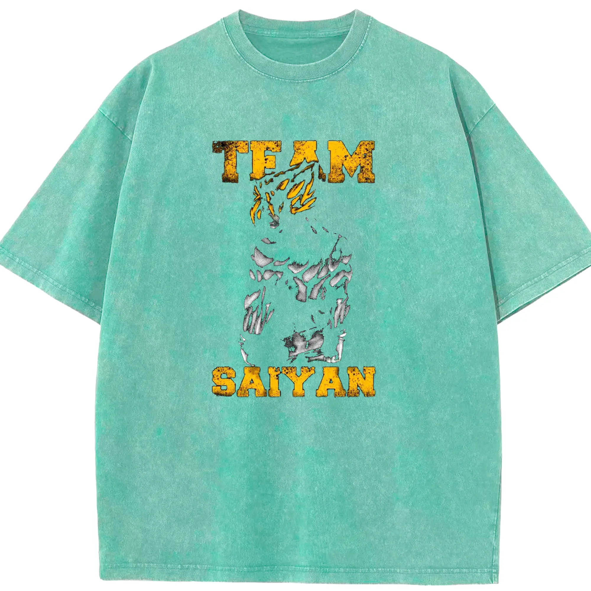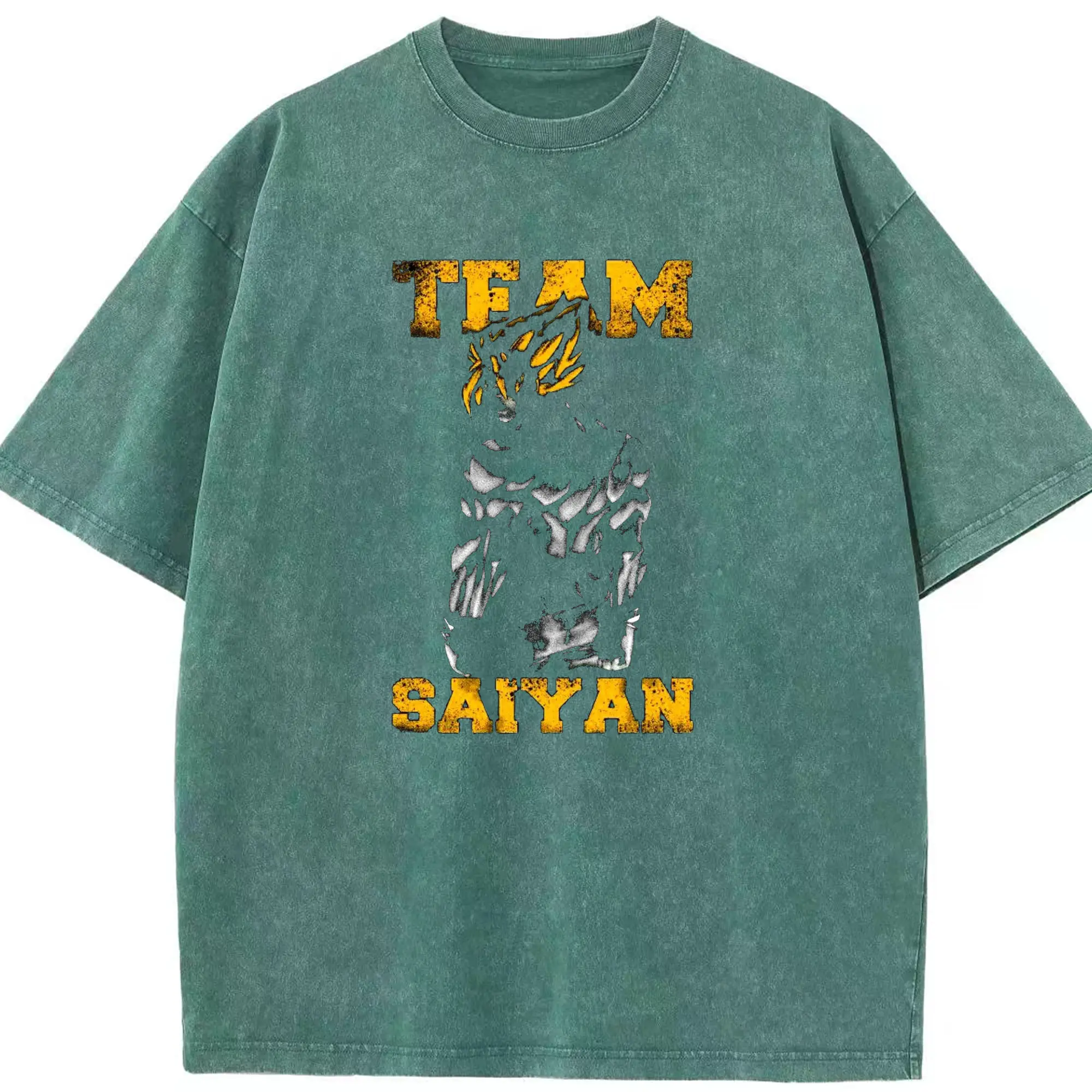 Dragon Ball Team Saiyan Vintage Style DIY Shirt - Washed Vintage Look 230g Cotton Oversized T-Shirt With Front Heat Transfer Print – Soft, Lightweight, Stylish Fit – Comfortable Casual Wear For Sports & Everyday Use