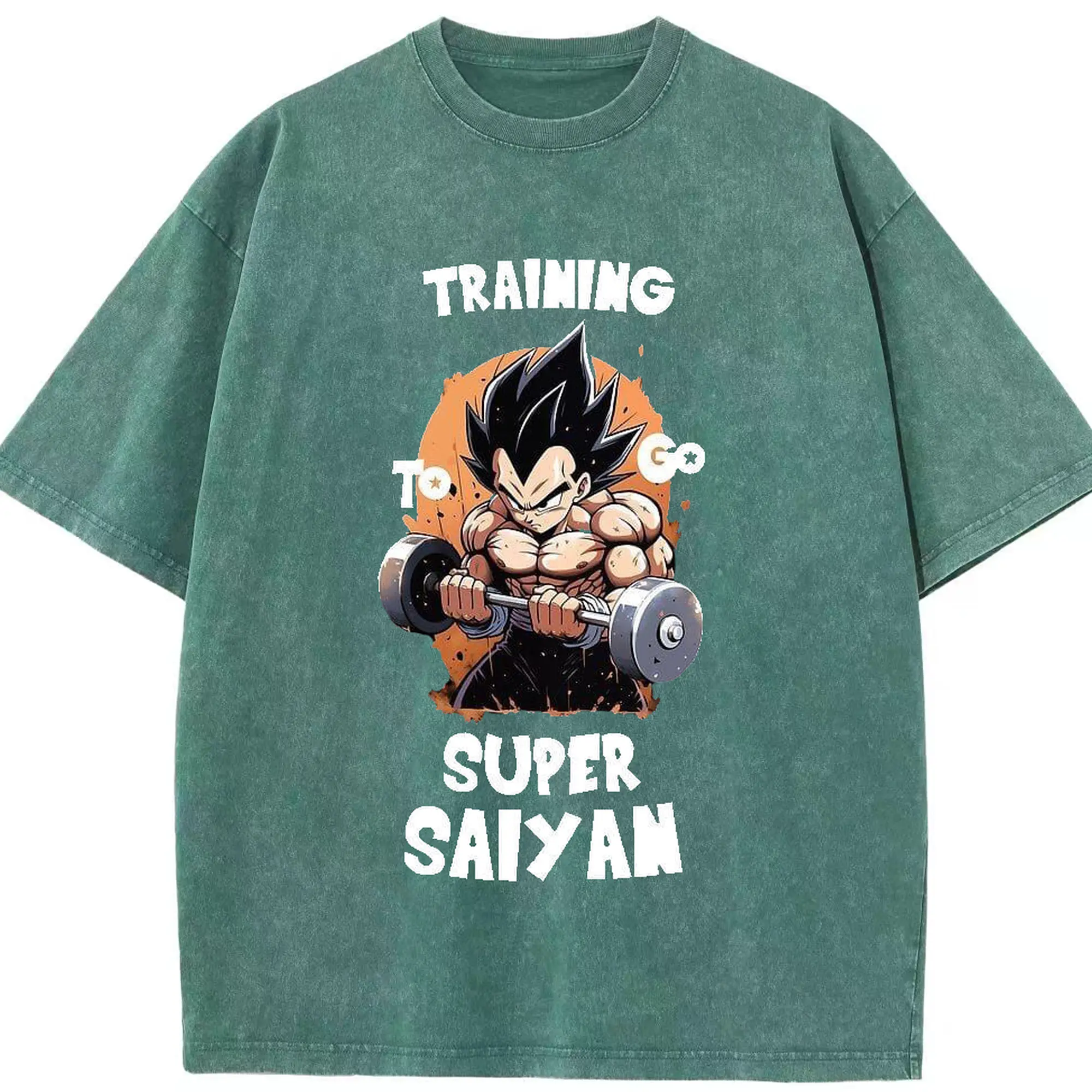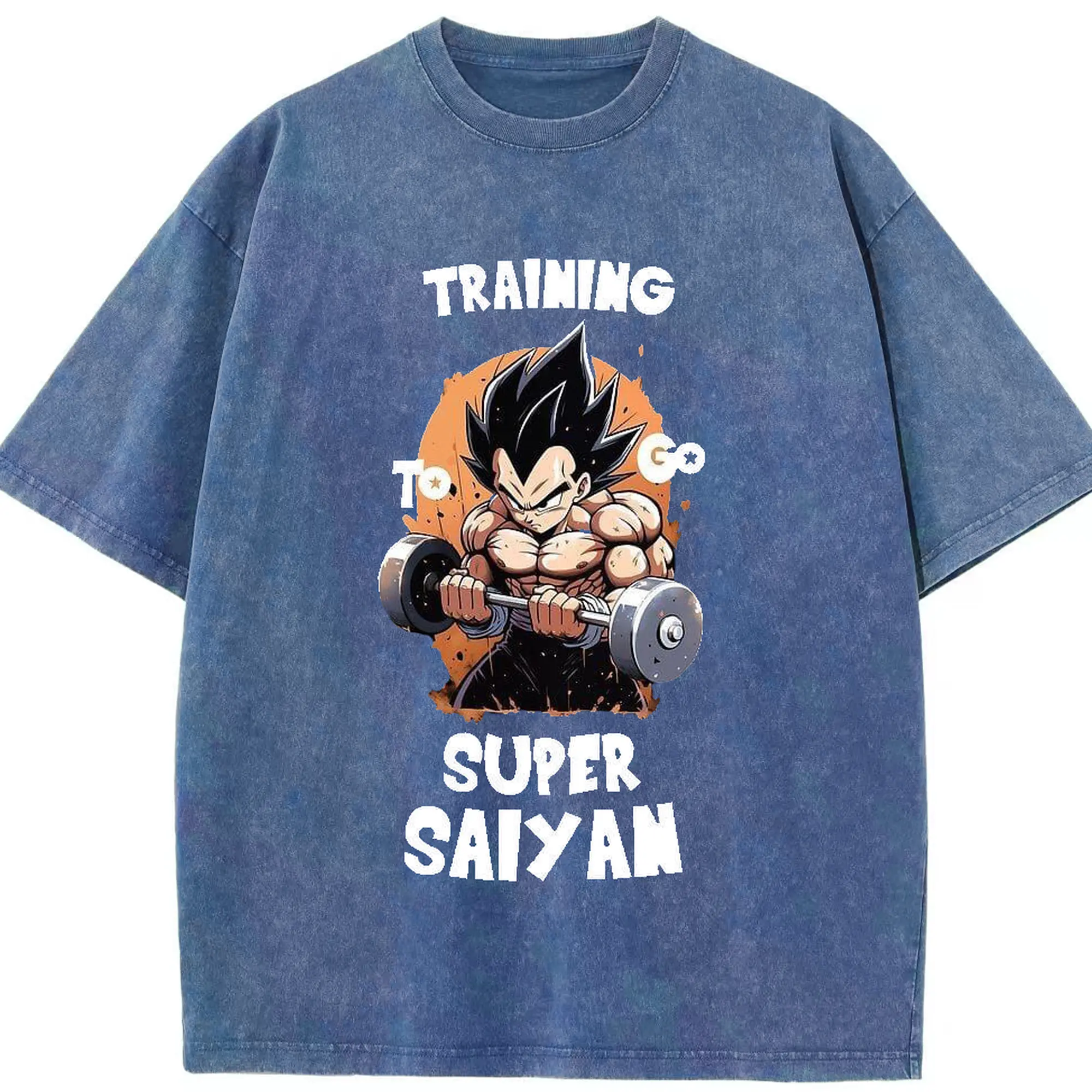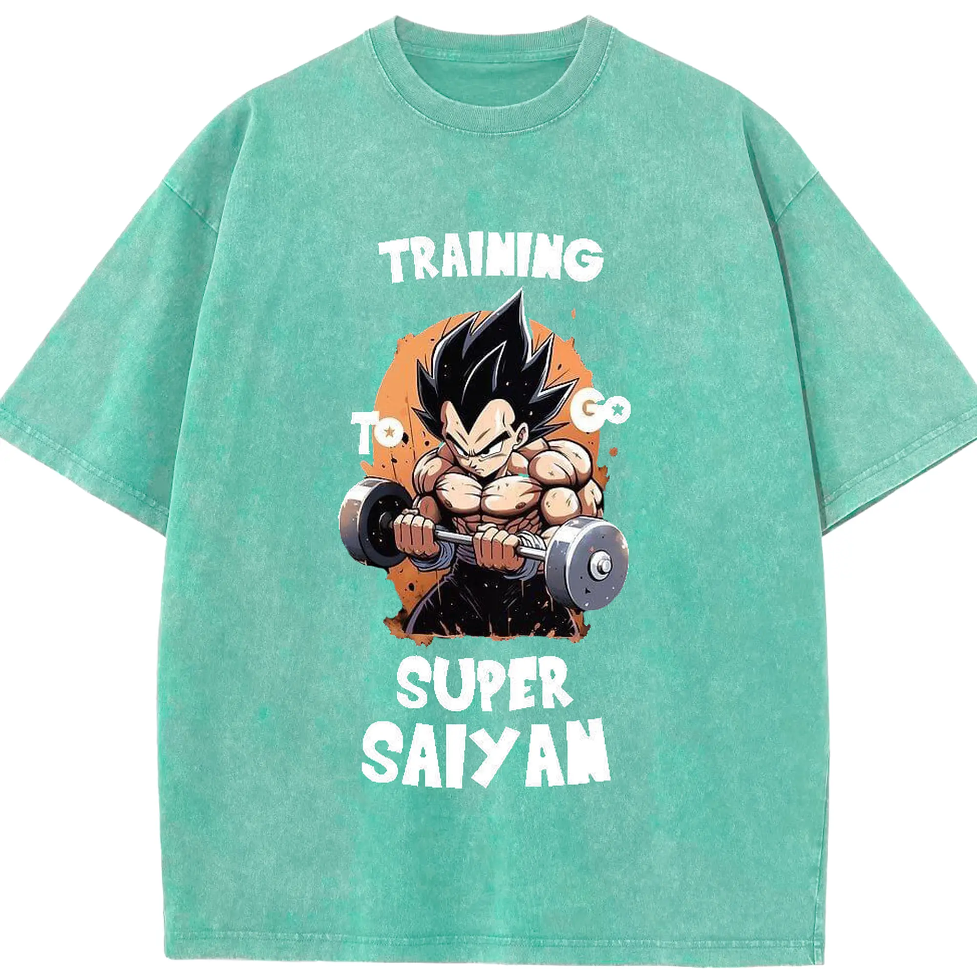 Dragon Ball Vegeta Training Super Saiyan DIY Shirt - Washed Vintage Look 230g Cotton Oversized T-Shirt With Front Heat Transfer Print – Soft, Lightweight, Stylish Fit – Comfortable Casual Wear For Sports & Everyday Use