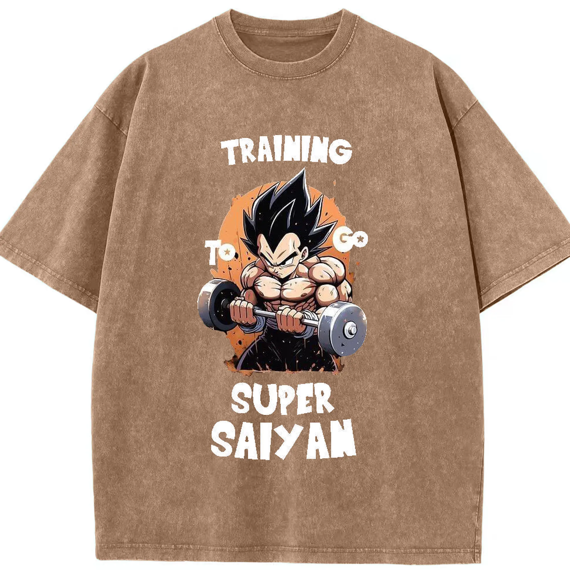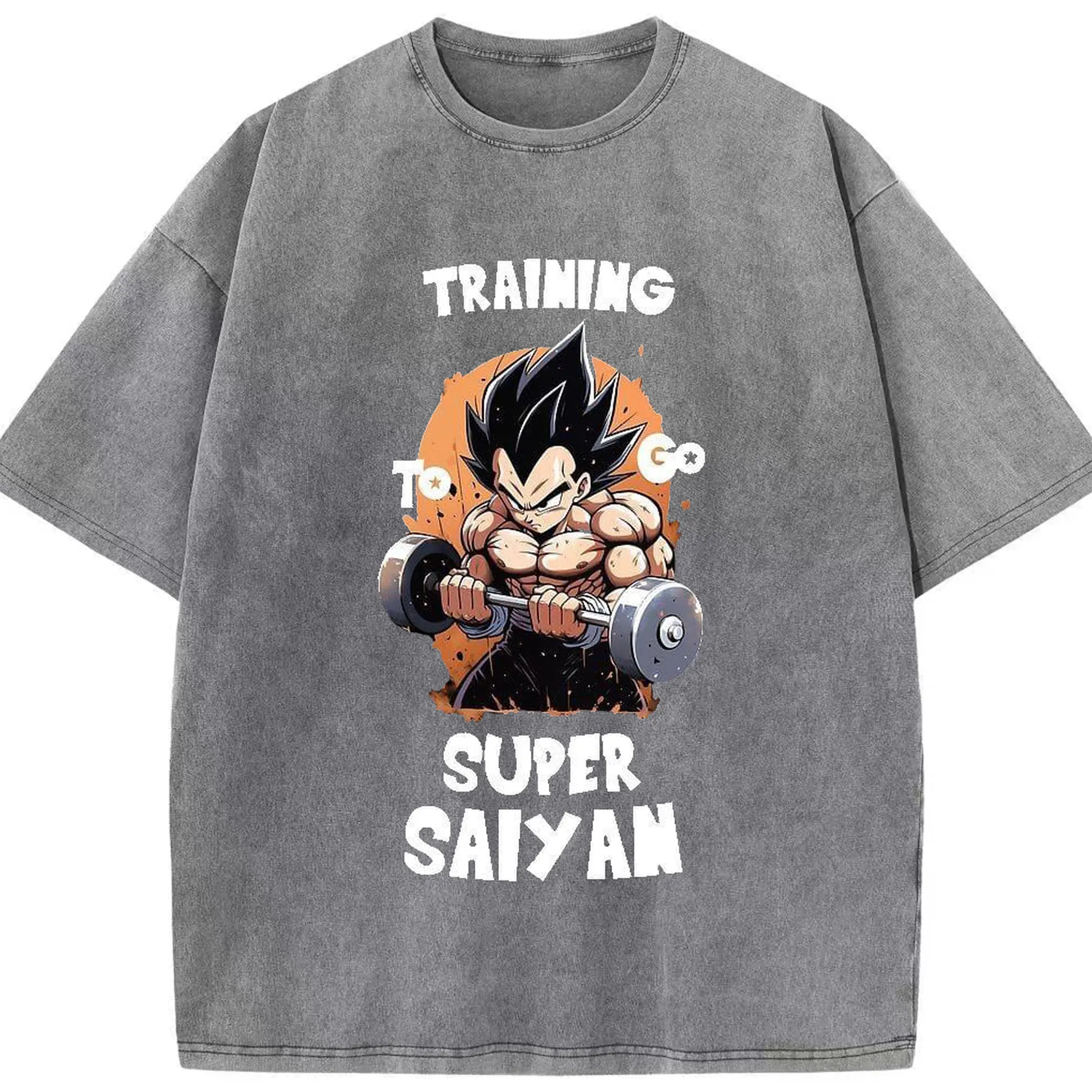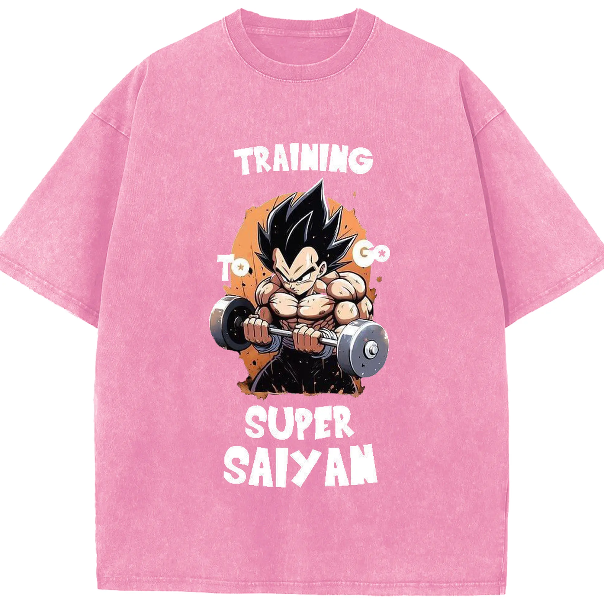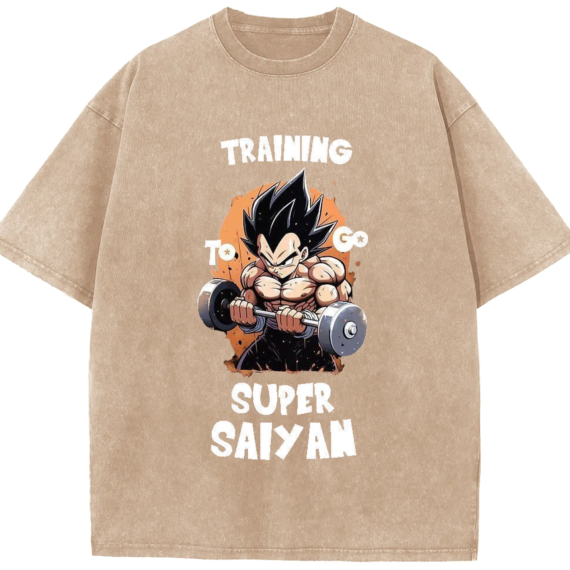 Dragon Ball Vegeta Training Super Saiyan DIY Shirt - Washed Vintage Look 230g Cotton Oversized T-Shirt With Front Heat Transfer Print – Soft, Lightweight, Stylish Fit – Comfortable Casual Wear For Sports & Everyday Use