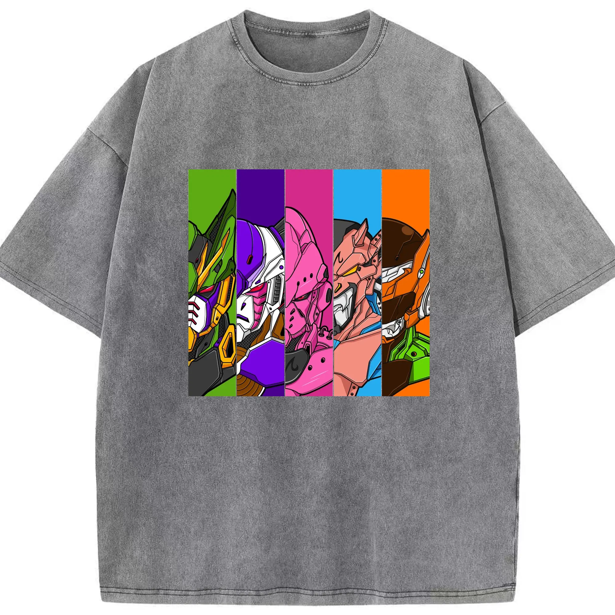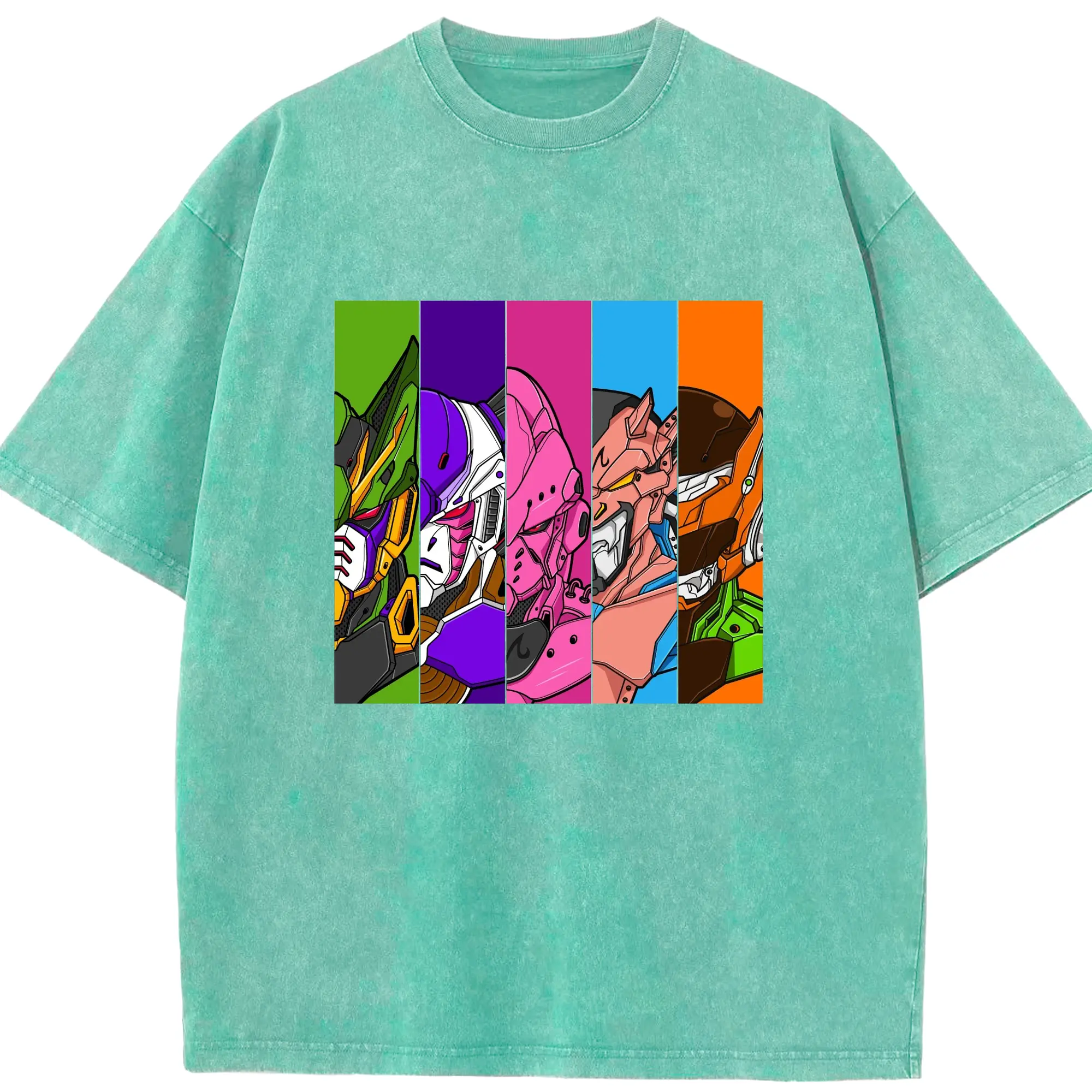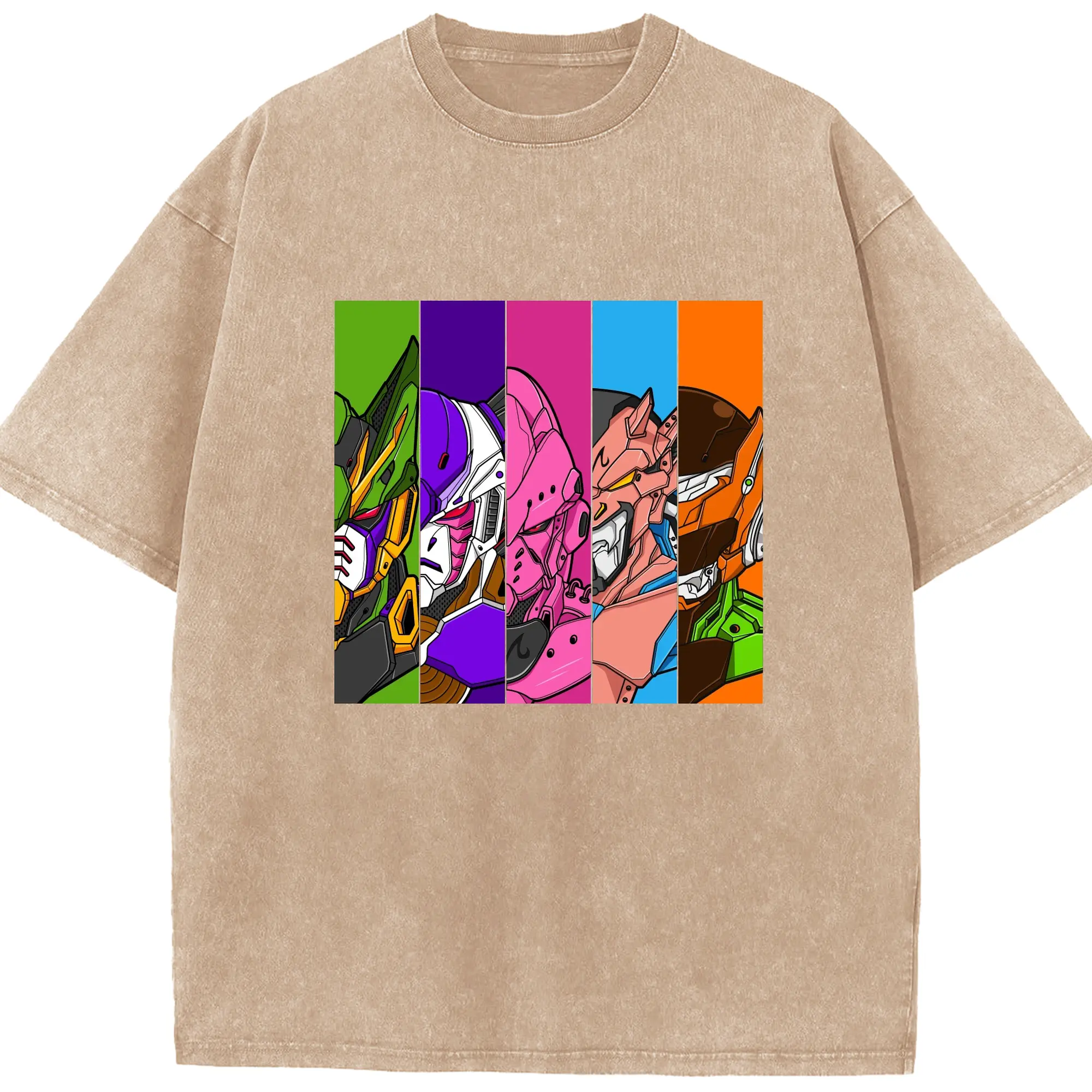 Dragon Ball x Gundam Characters DIY Shirt - Washed Vintage Look 230g Cotton Oversized T-Shirt With Front Heat Transfer Print – Soft, Lightweight, Stylish Fit – Comfortable Casual Wear For Sports & Everyday Use