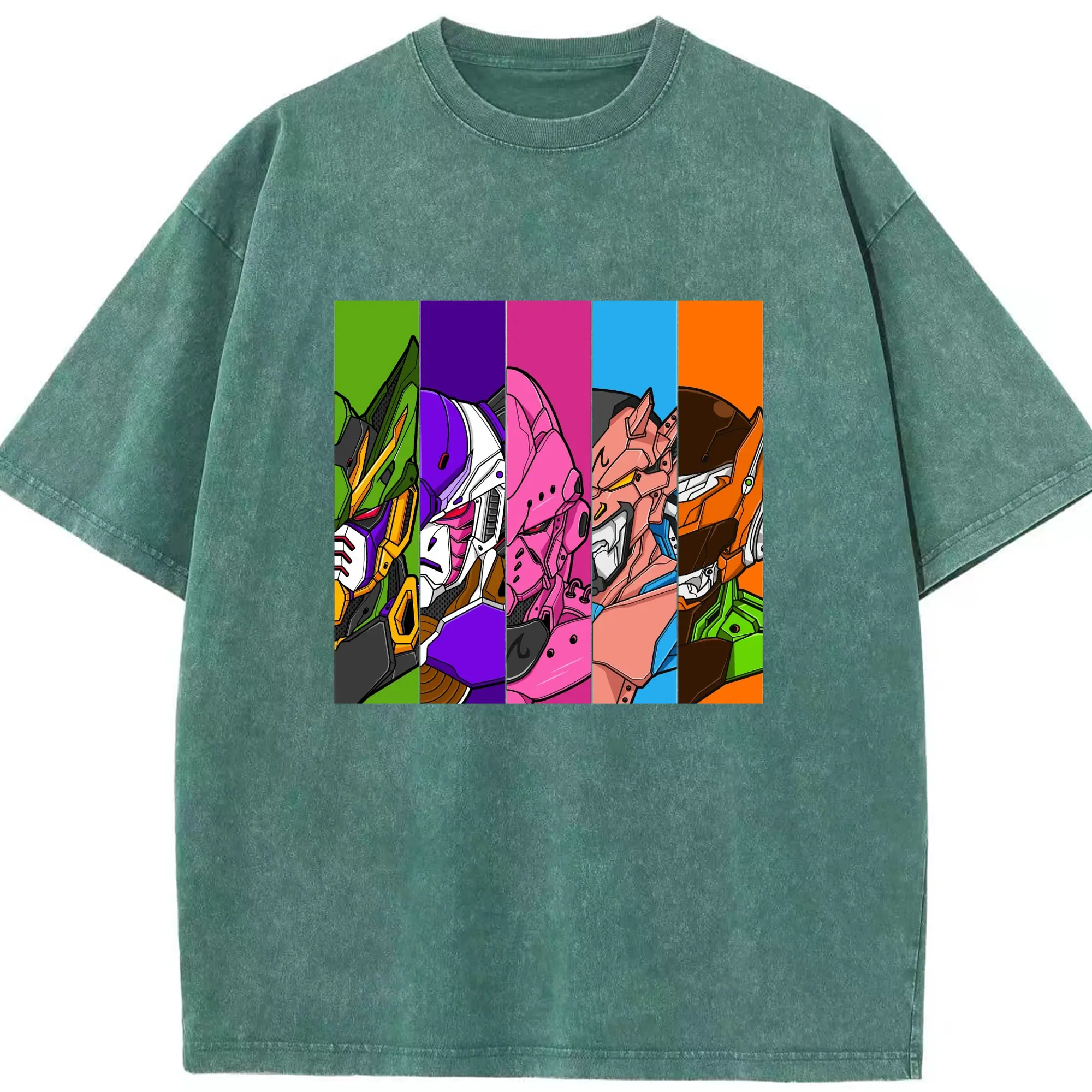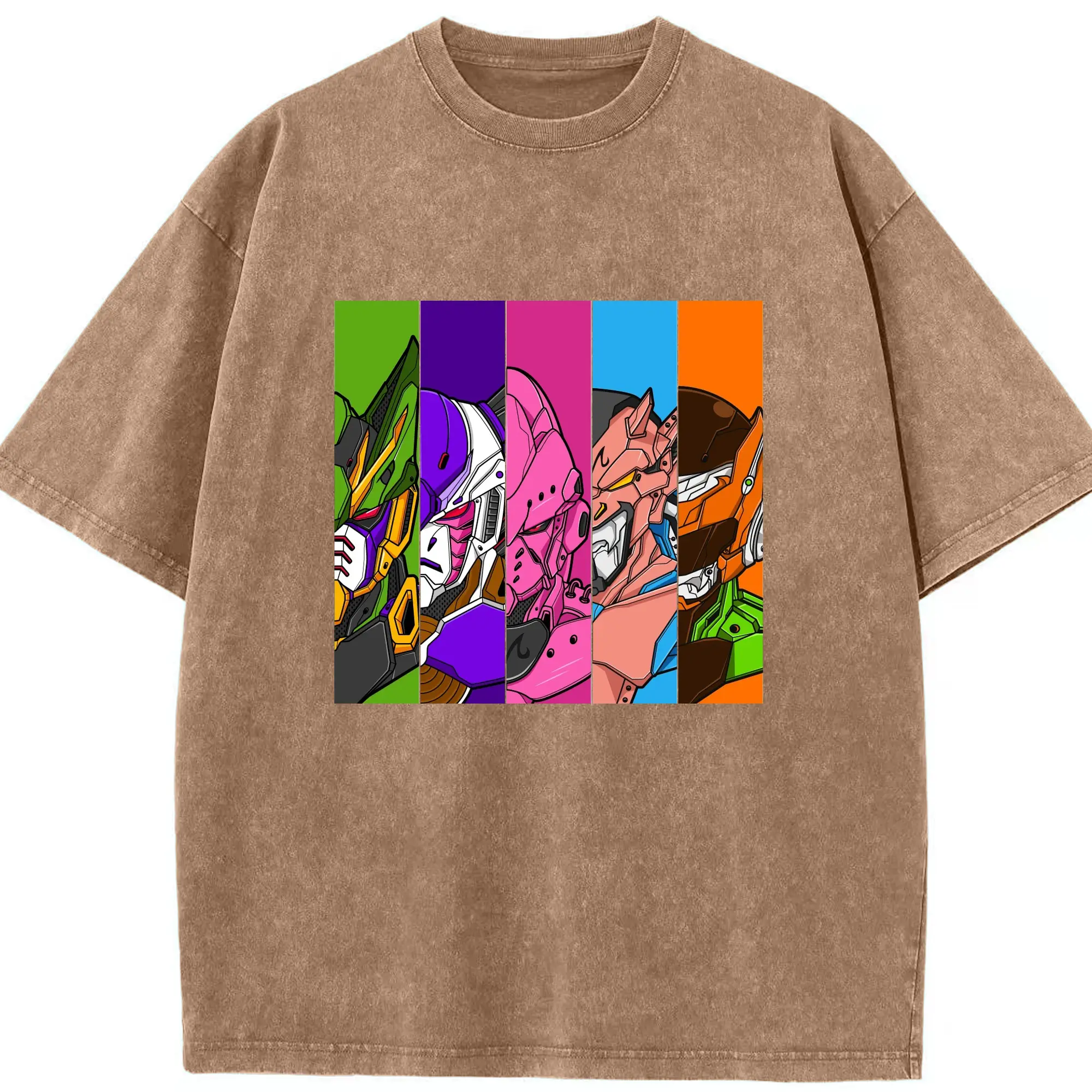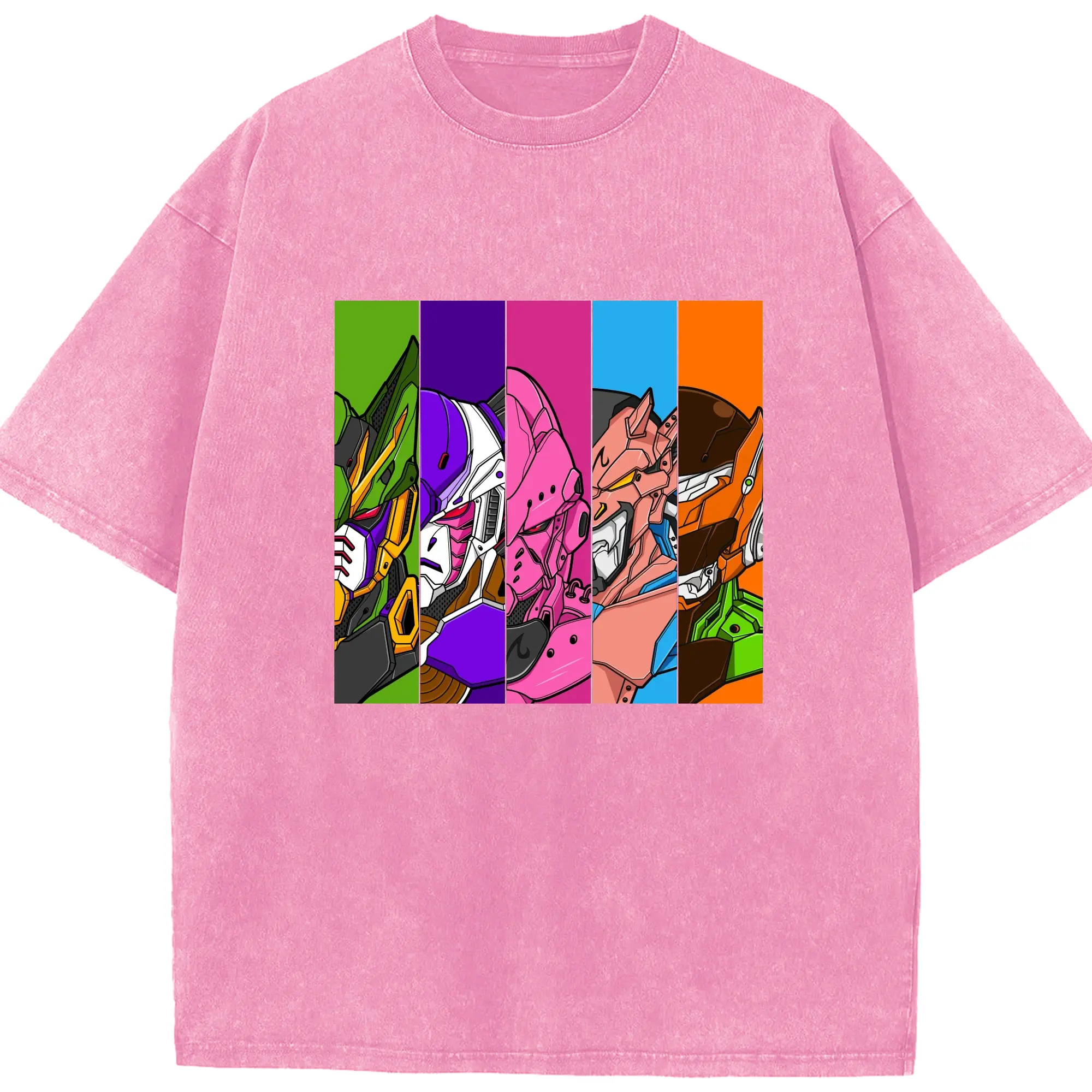 Dragon Ball x Gundam Characters DIY Shirt - Washed Vintage Look 230g Cotton Oversized T-Shirt With Front Heat Transfer Print – Soft, Lightweight, Stylish Fit – Comfortable Casual Wear For Sports & Everyday Use