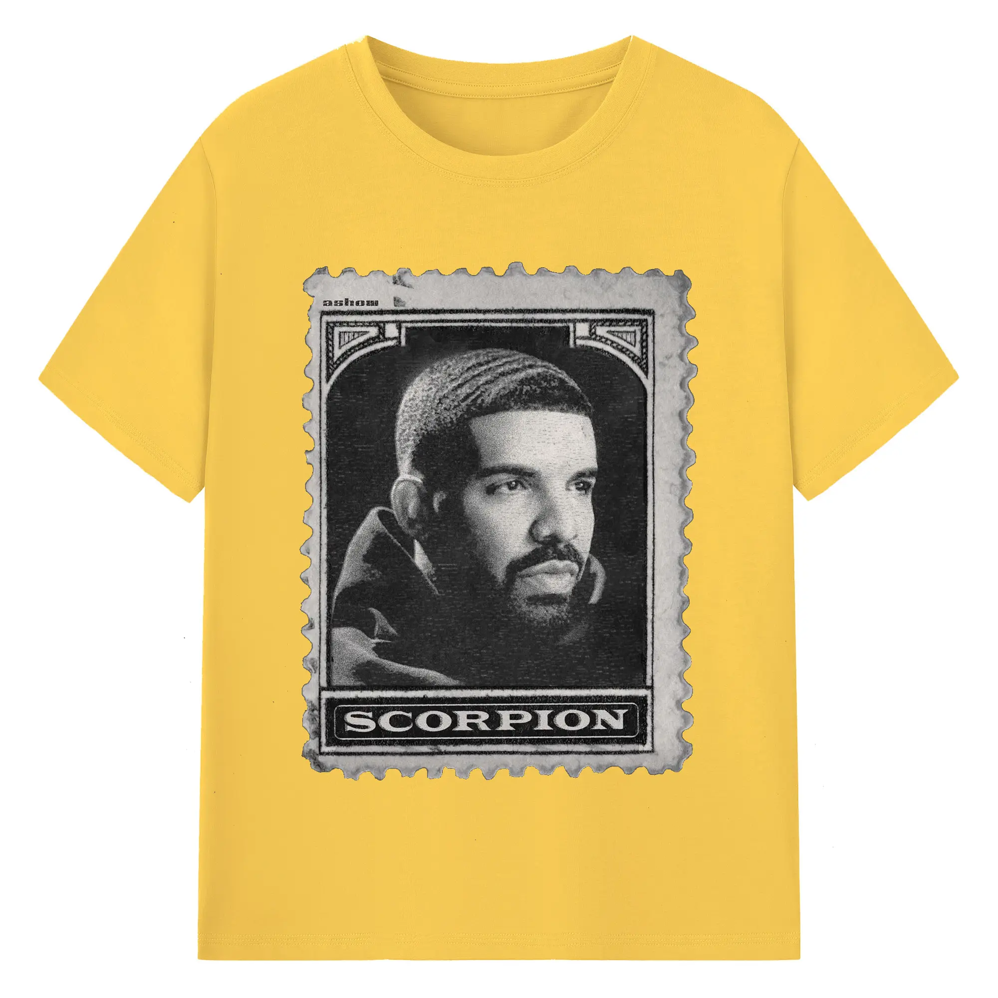 Drake Retro Stamp Scorpion DIY - 180g Cotton T-Shirt With Front Heat Transfer Print – Soft, Lightweight, Fitted Design – Comfortable Casual Wear For Sports & Everyday Use