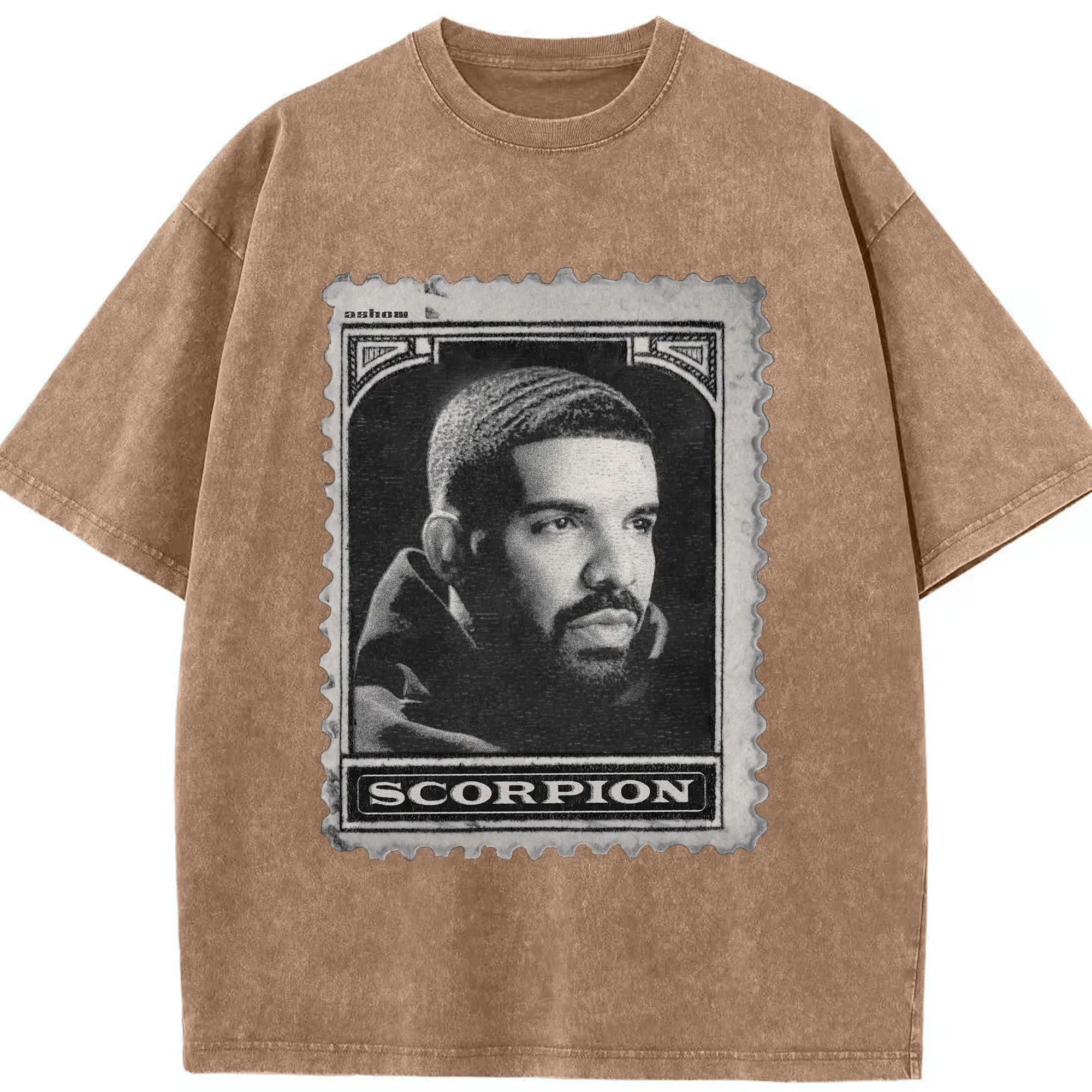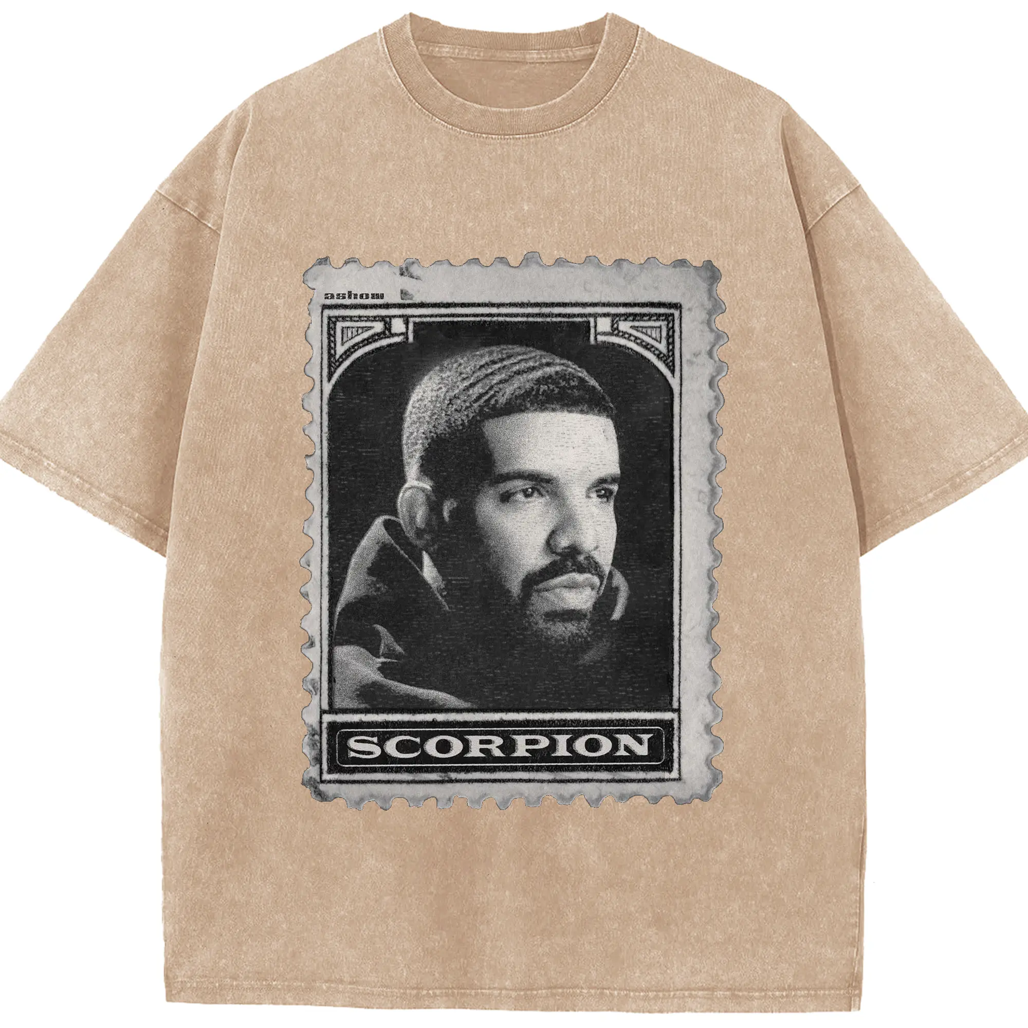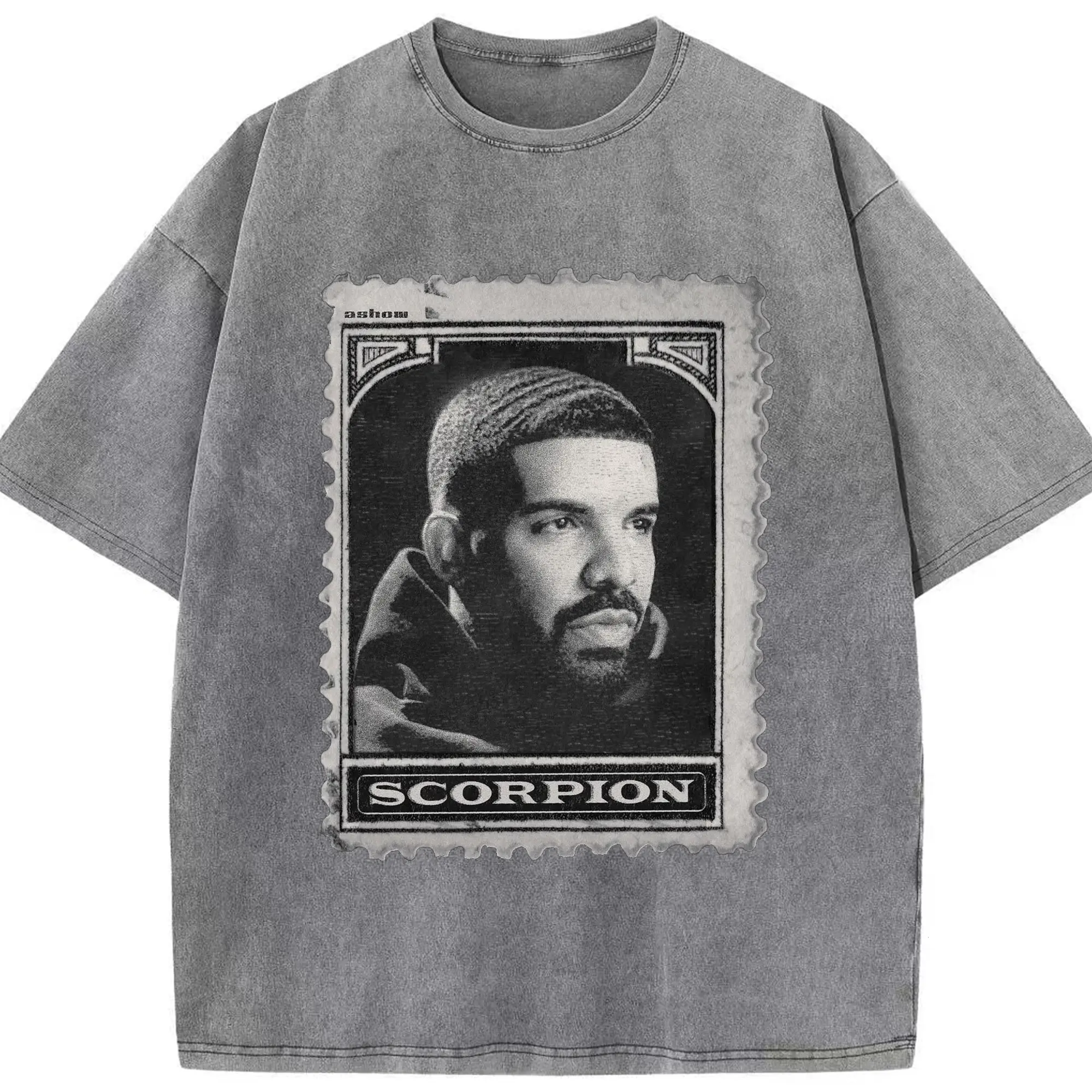 Drake Retro Stamp Scorpion DIY - Washed Vintage Look 230g Cotton Oversized T-Shirt With Front Heat Transfer Print – Soft, Lightweight, Stylish Fit – Comfortable Casual Wear For Sports & Everyday Use