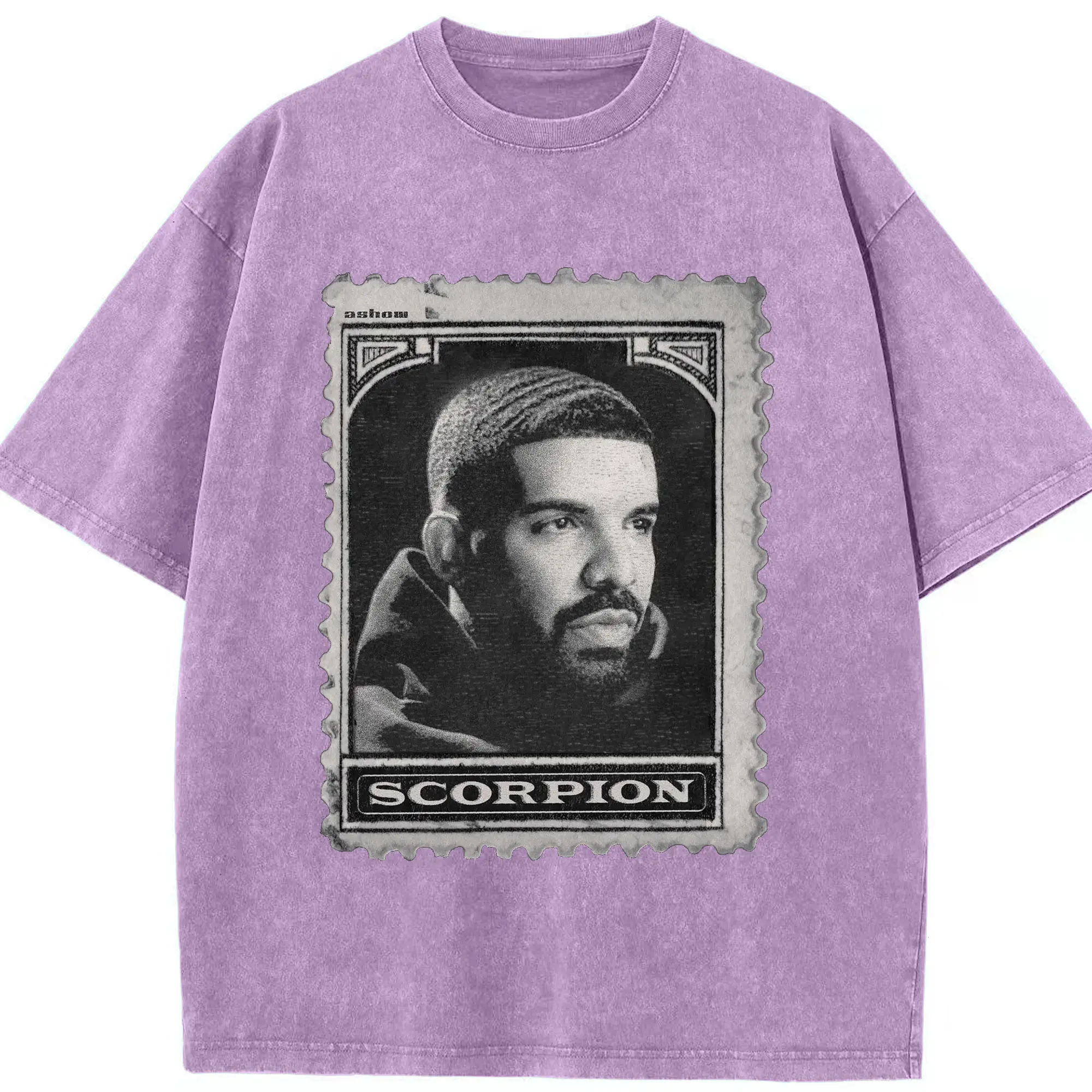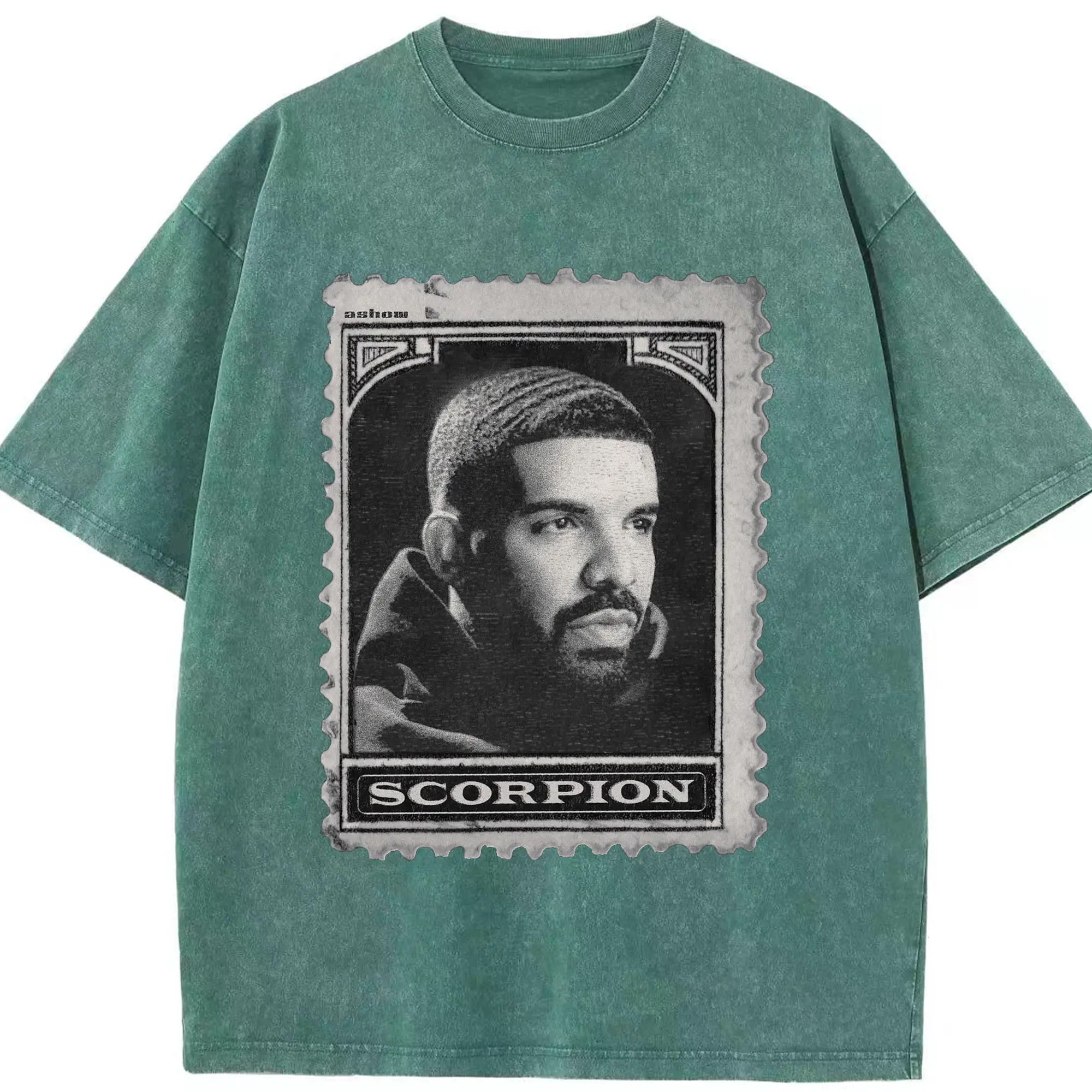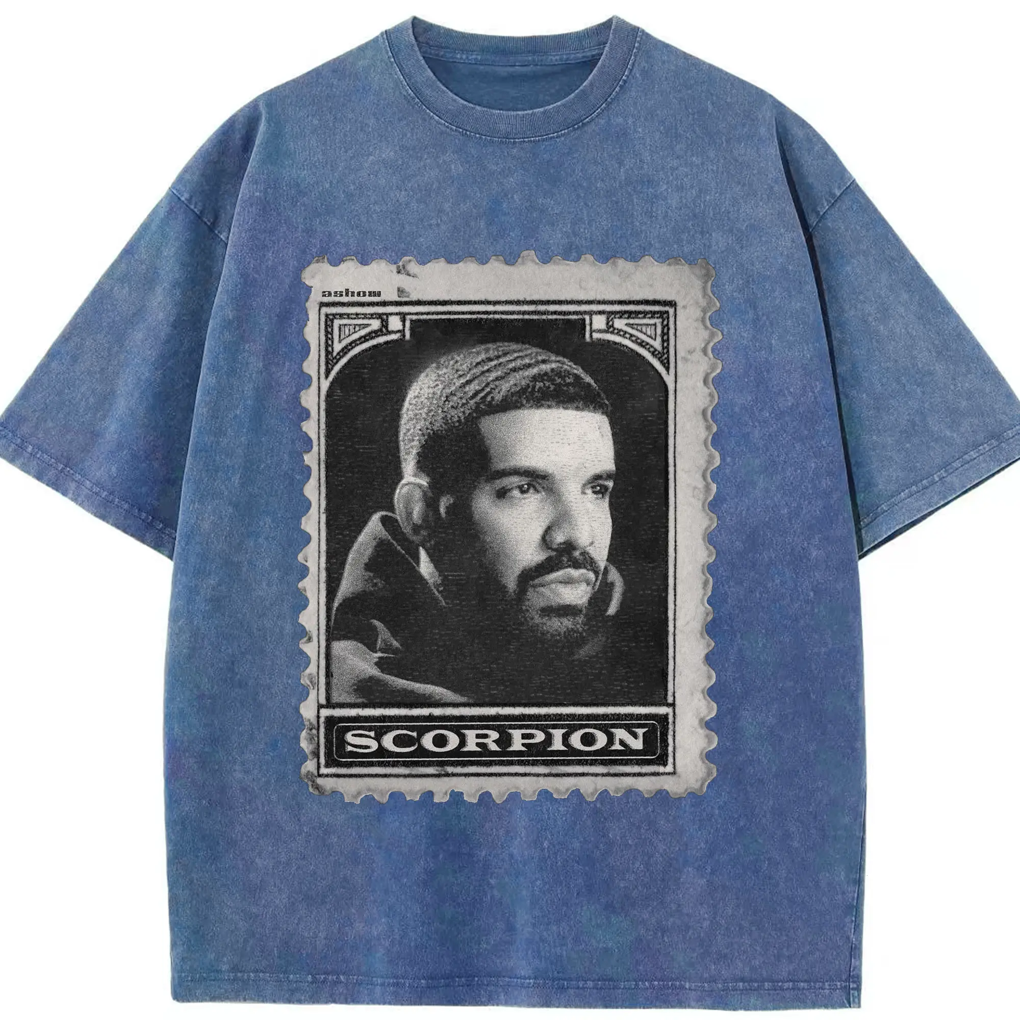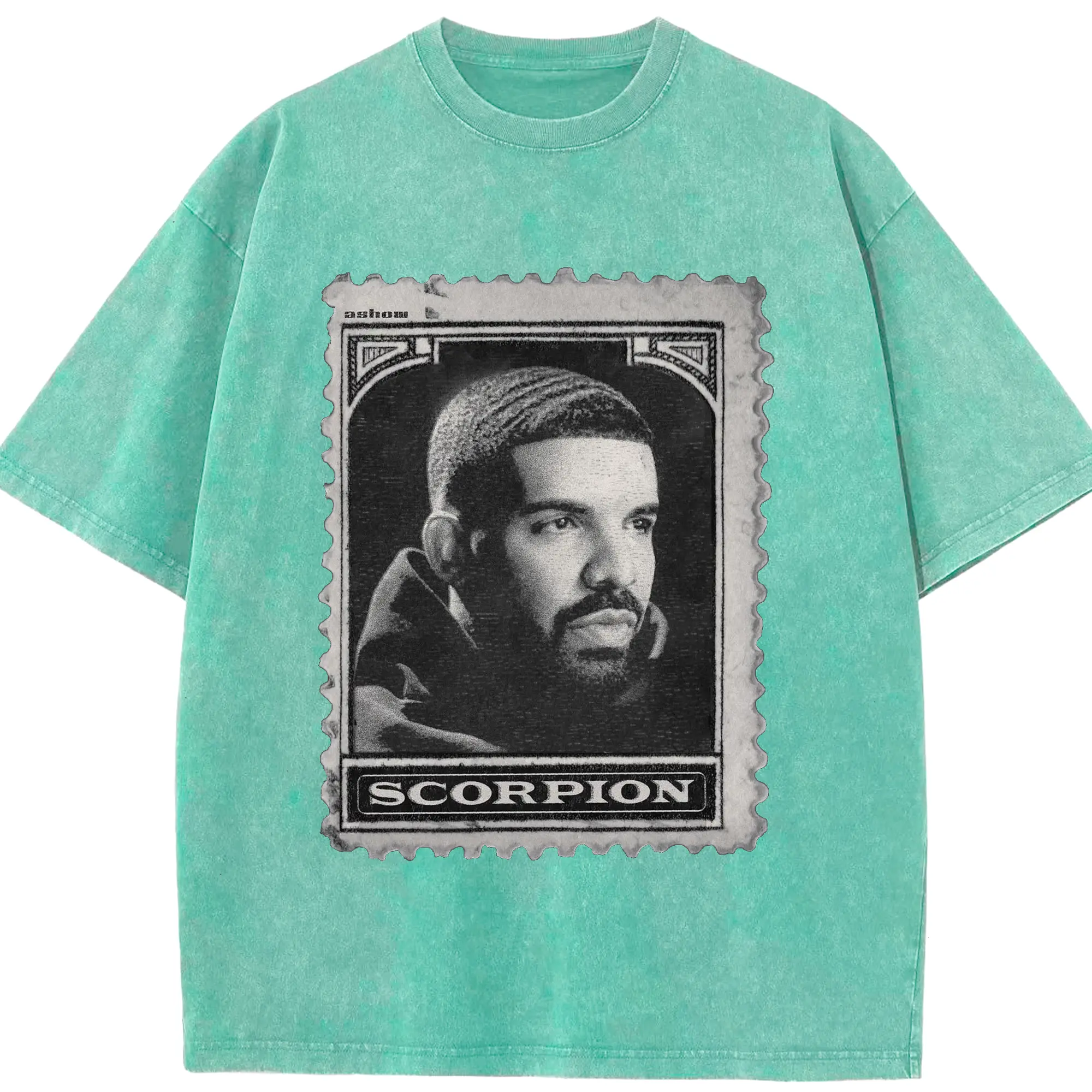 Drake Retro Stamp Scorpion DIY - Washed Vintage Look 230g Cotton Oversized T-Shirt With Front Heat Transfer Print – Soft, Lightweight, Stylish Fit – Comfortable Casual Wear For Sports & Everyday Use