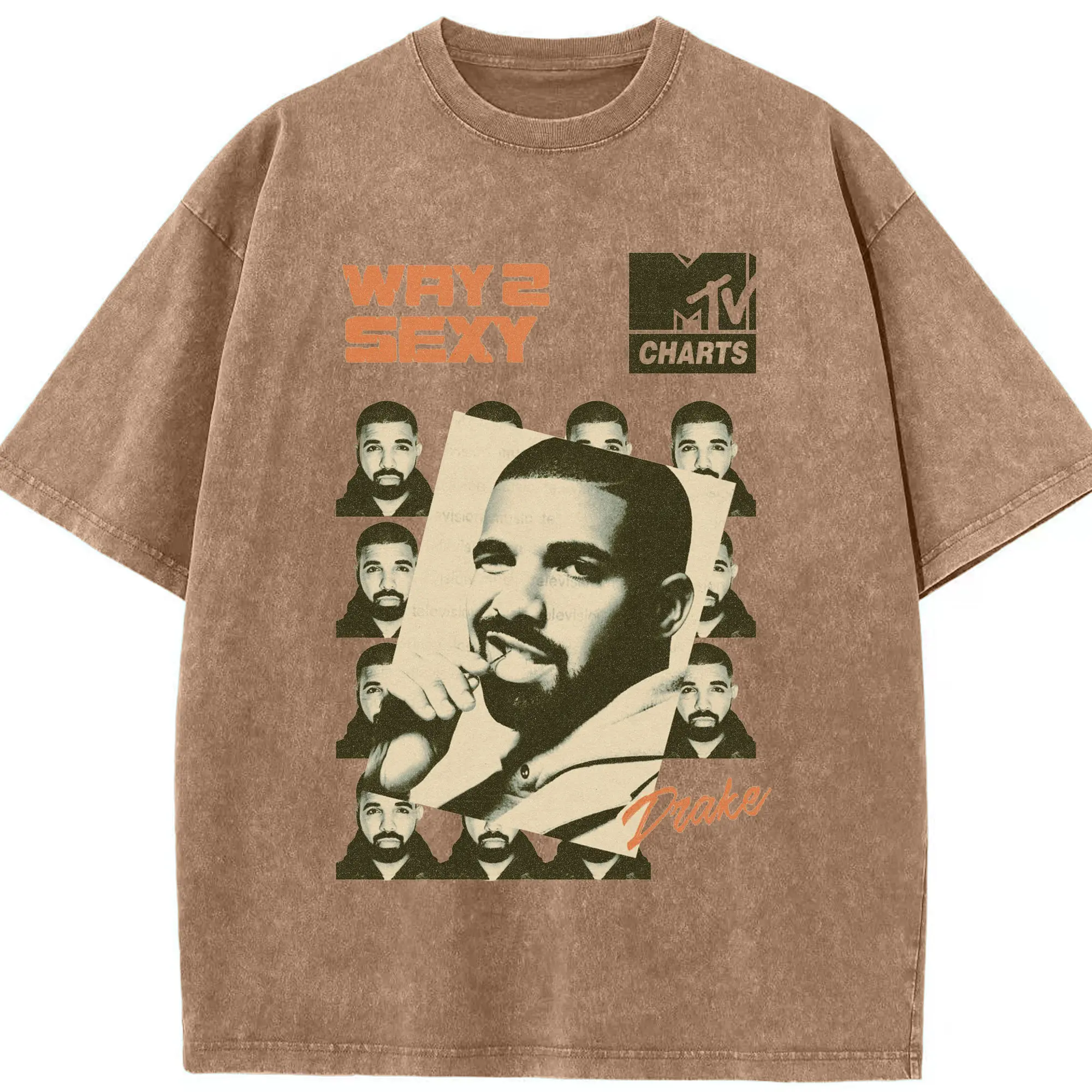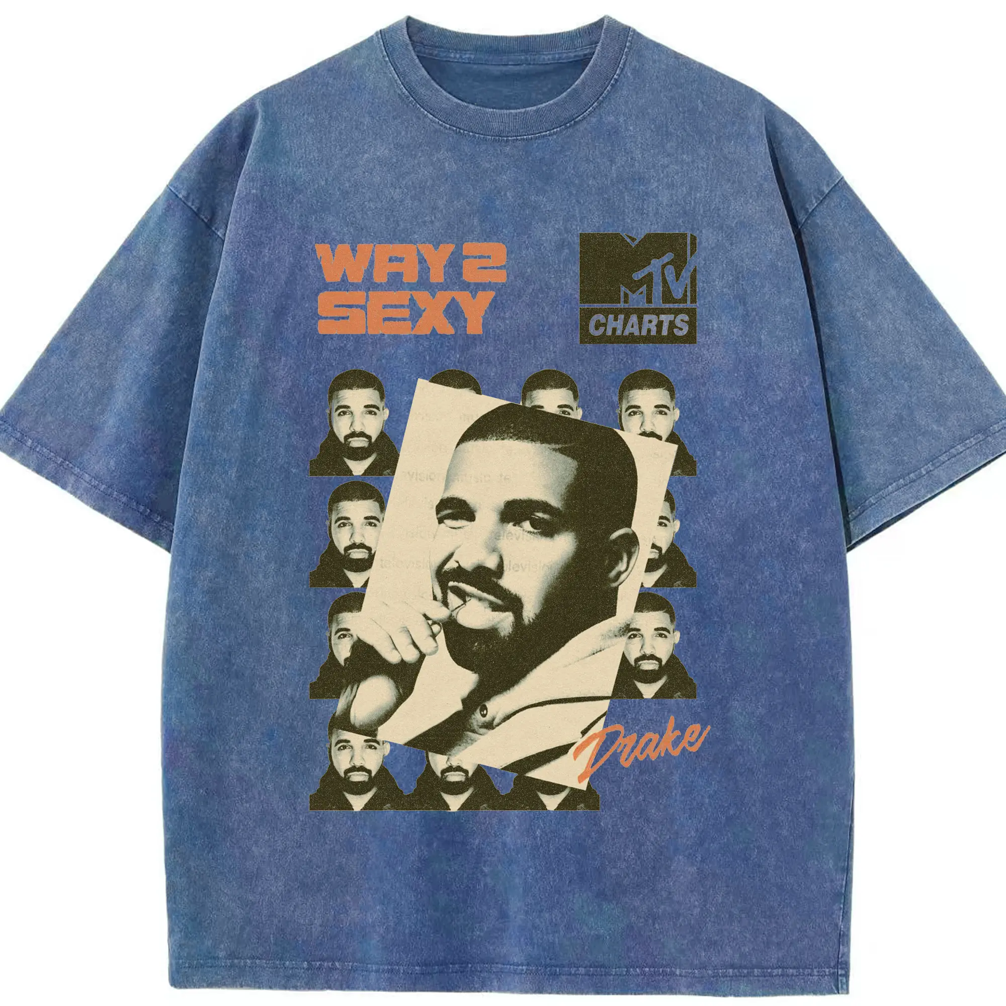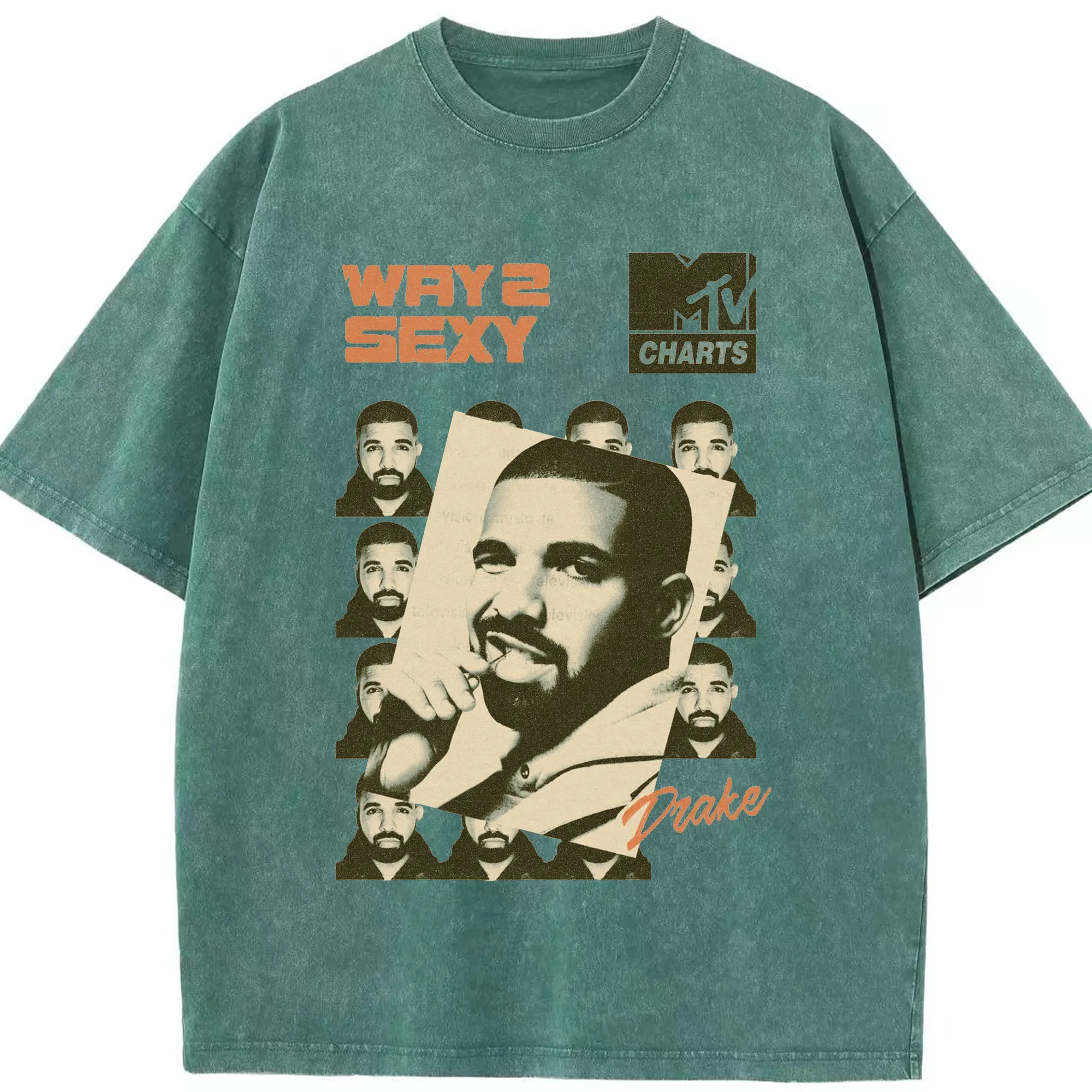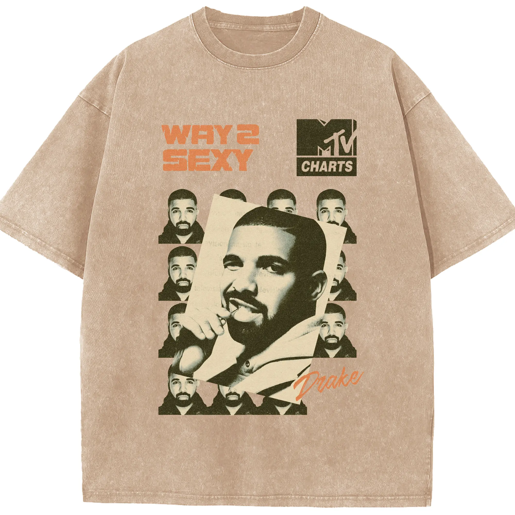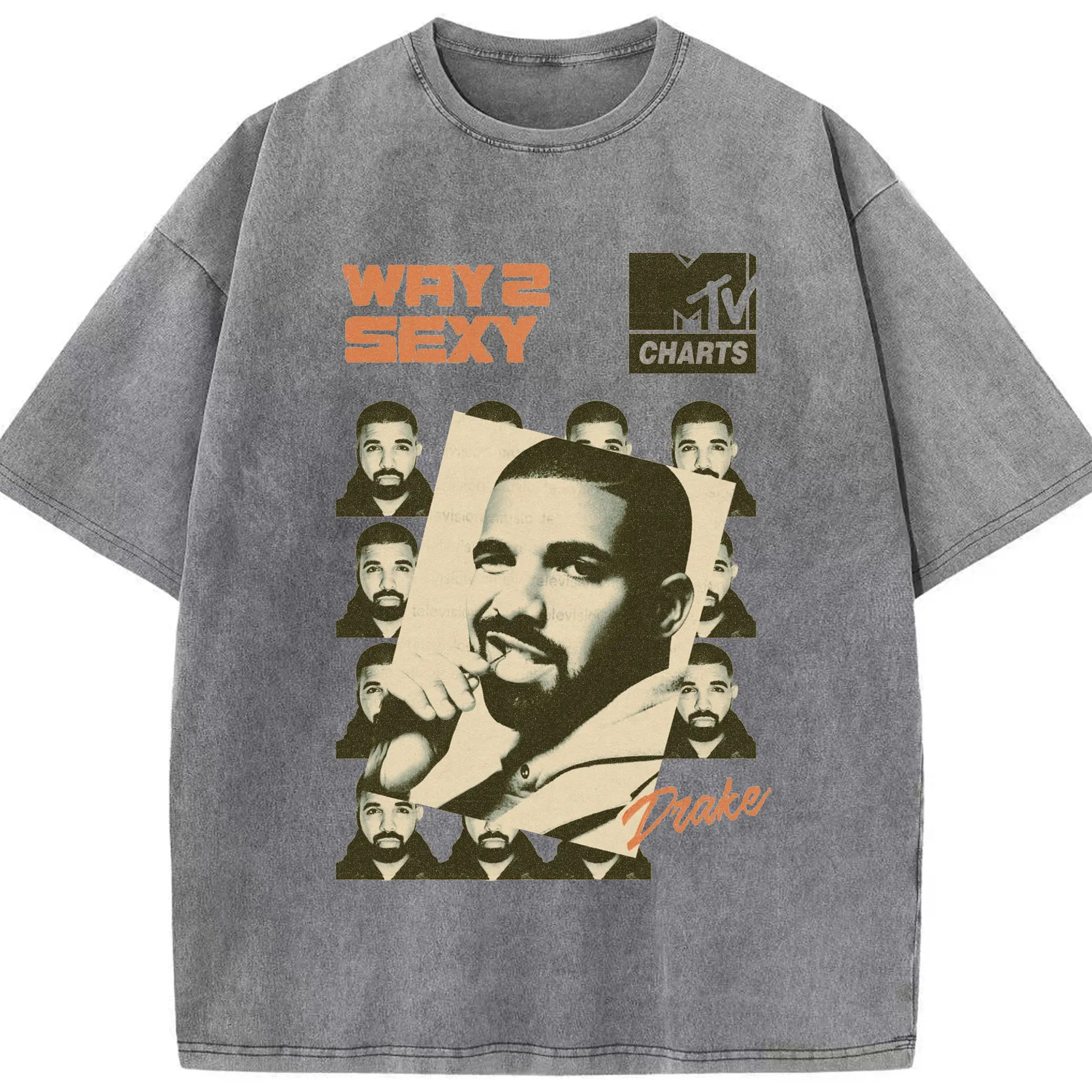 Drake Way 2 Sexy Retro Hip-Hop DIY - Washed Vintage Look 230g Cotton Oversized T-Shirt With Front Heat Transfer Print – Soft, Lightweight, Stylish Fit – Comfortable Casual Wear For Sports & Everyday Use