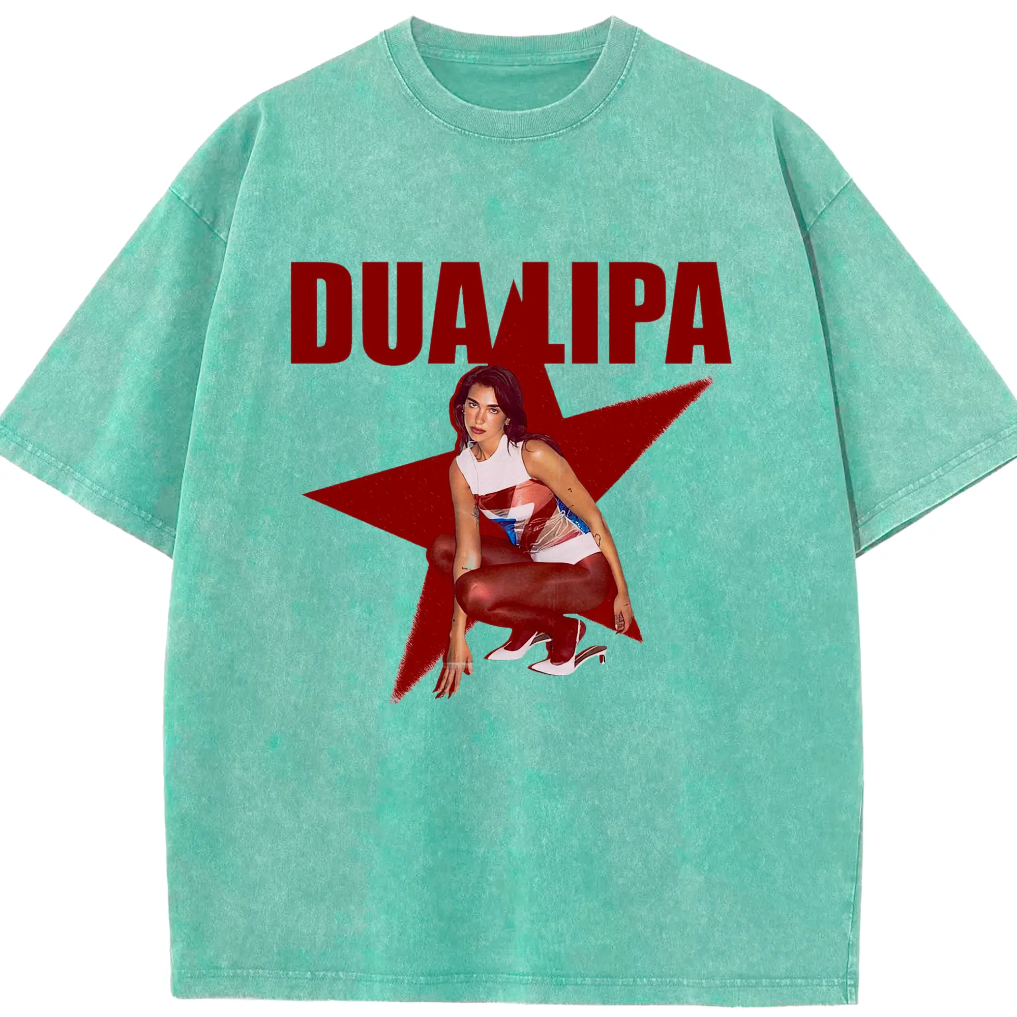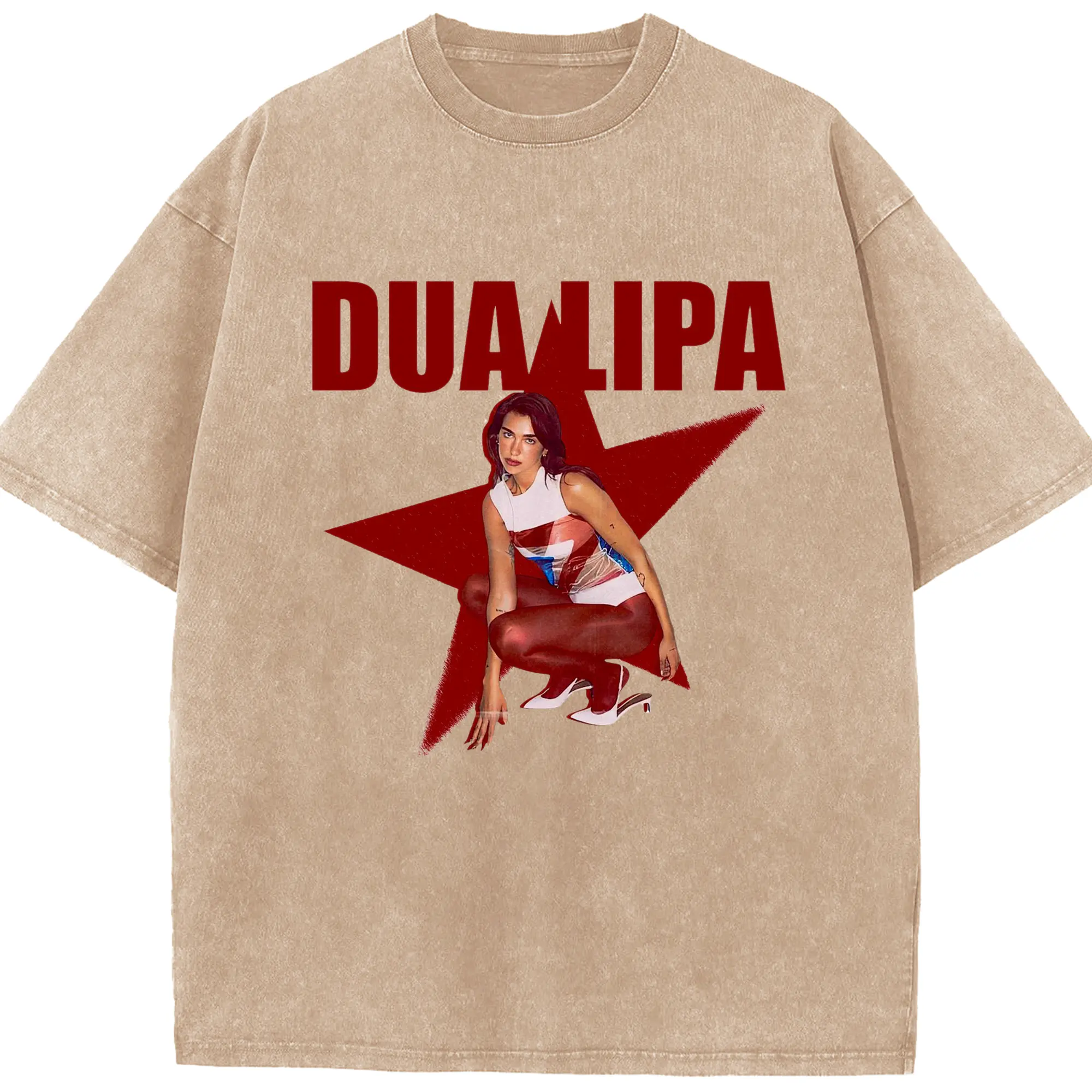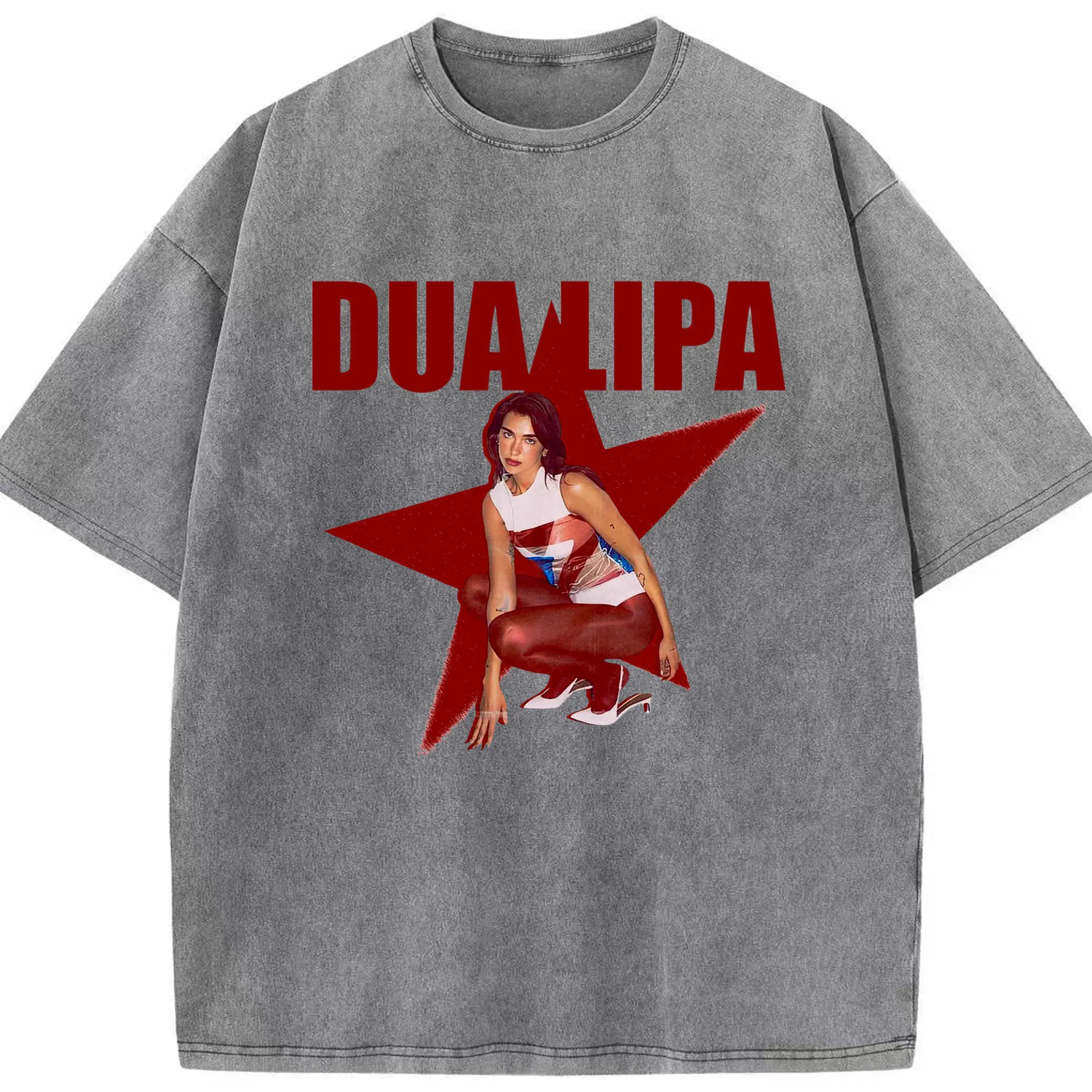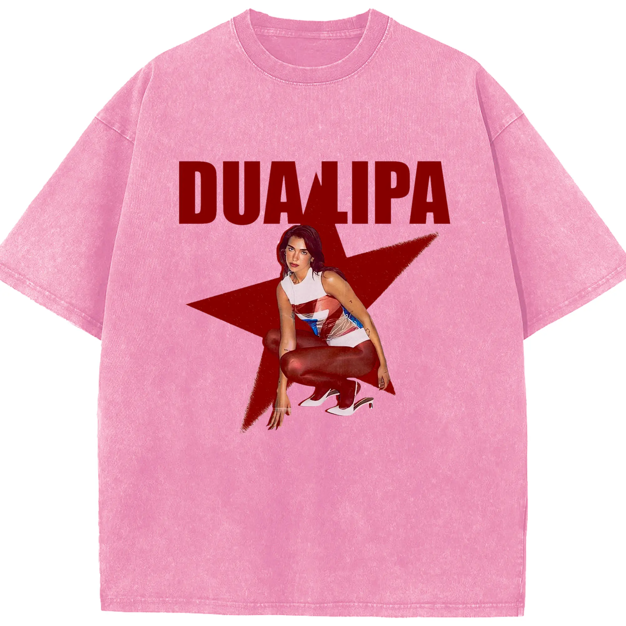 Dua Lipa Pop Music Star DIY - Washed Vintage Look 230g Cotton Oversized T-Shirt With Front Heat Transfer Print – Soft, Lightweight, Stylish Fit – Comfortable Casual Wear For Sports & Everyday Use