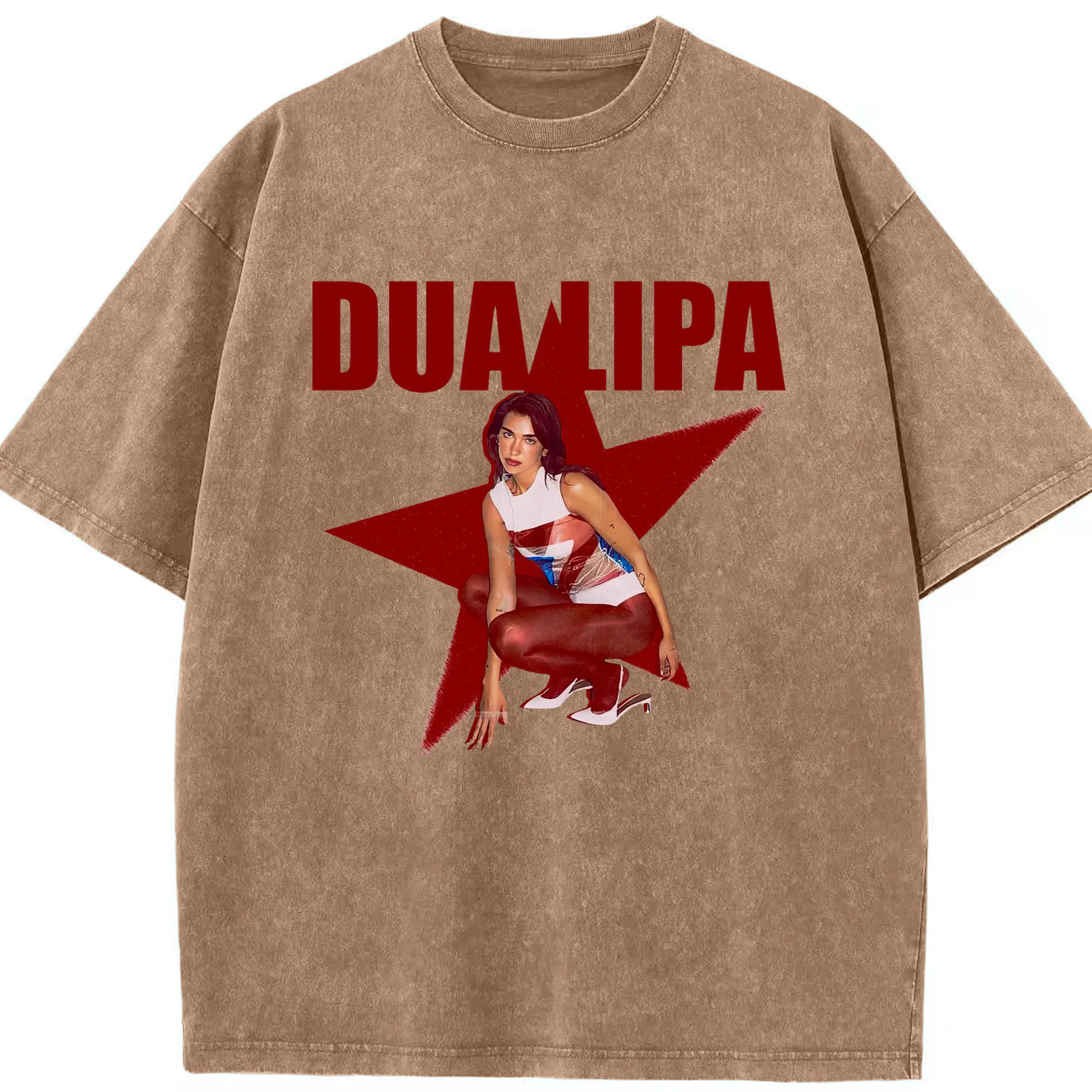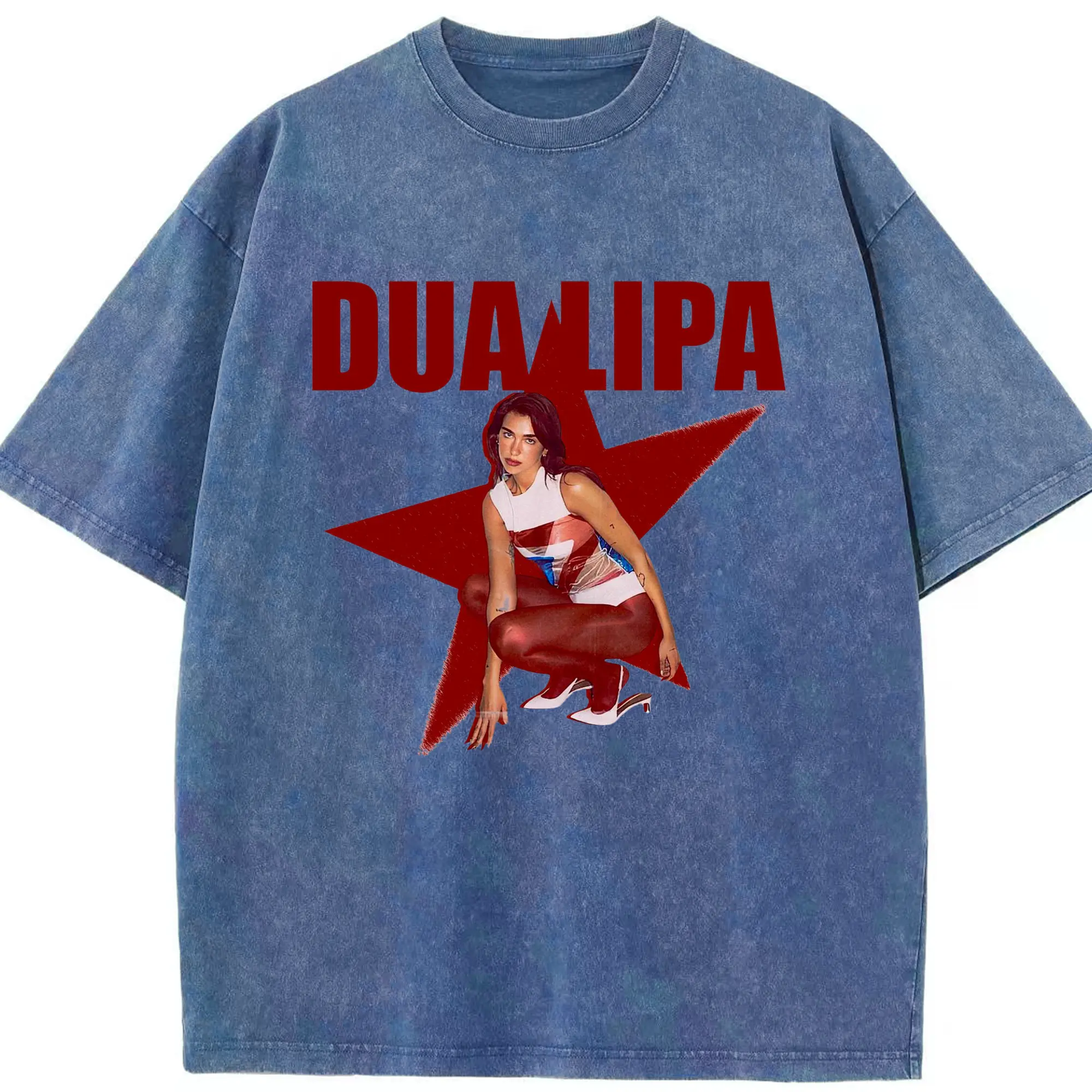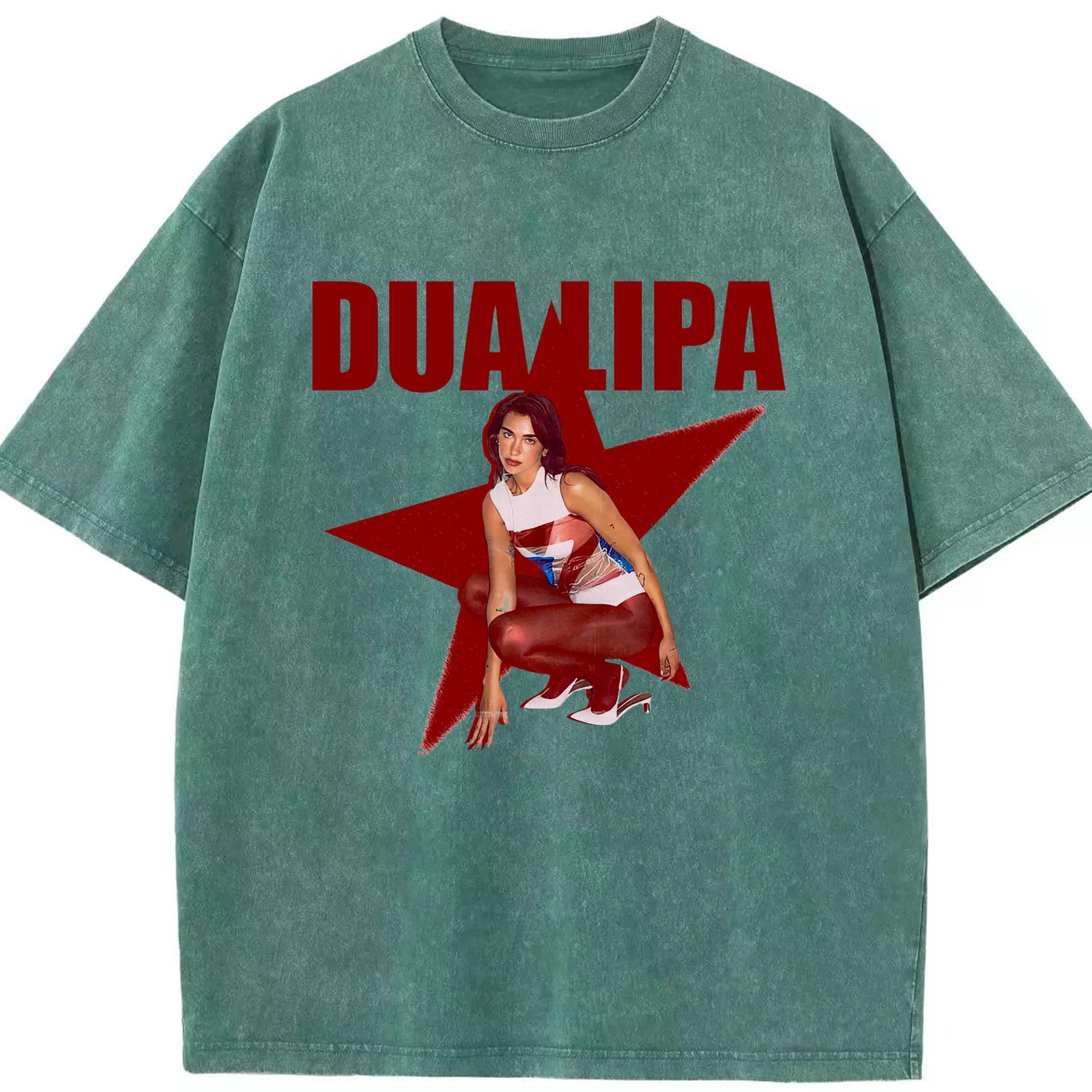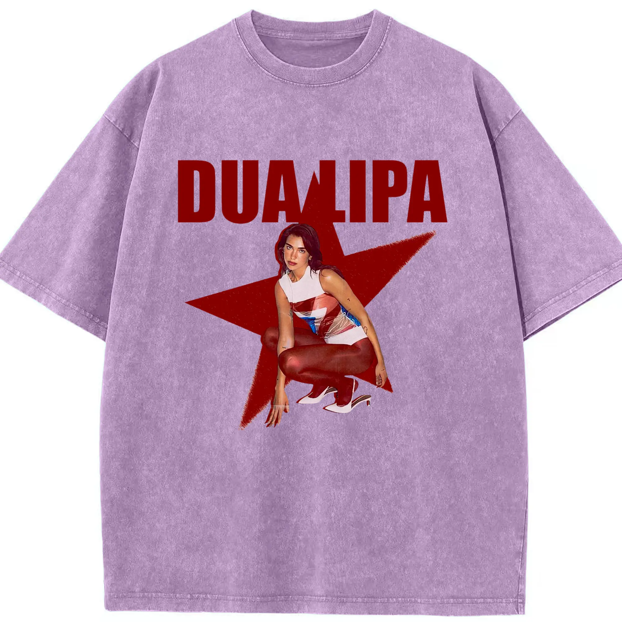 Dua Lipa Pop Music Star DIY - Washed Vintage Look 230g Cotton Oversized T-Shirt With Front Heat Transfer Print – Soft, Lightweight, Stylish Fit – Comfortable Casual Wear For Sports & Everyday Use