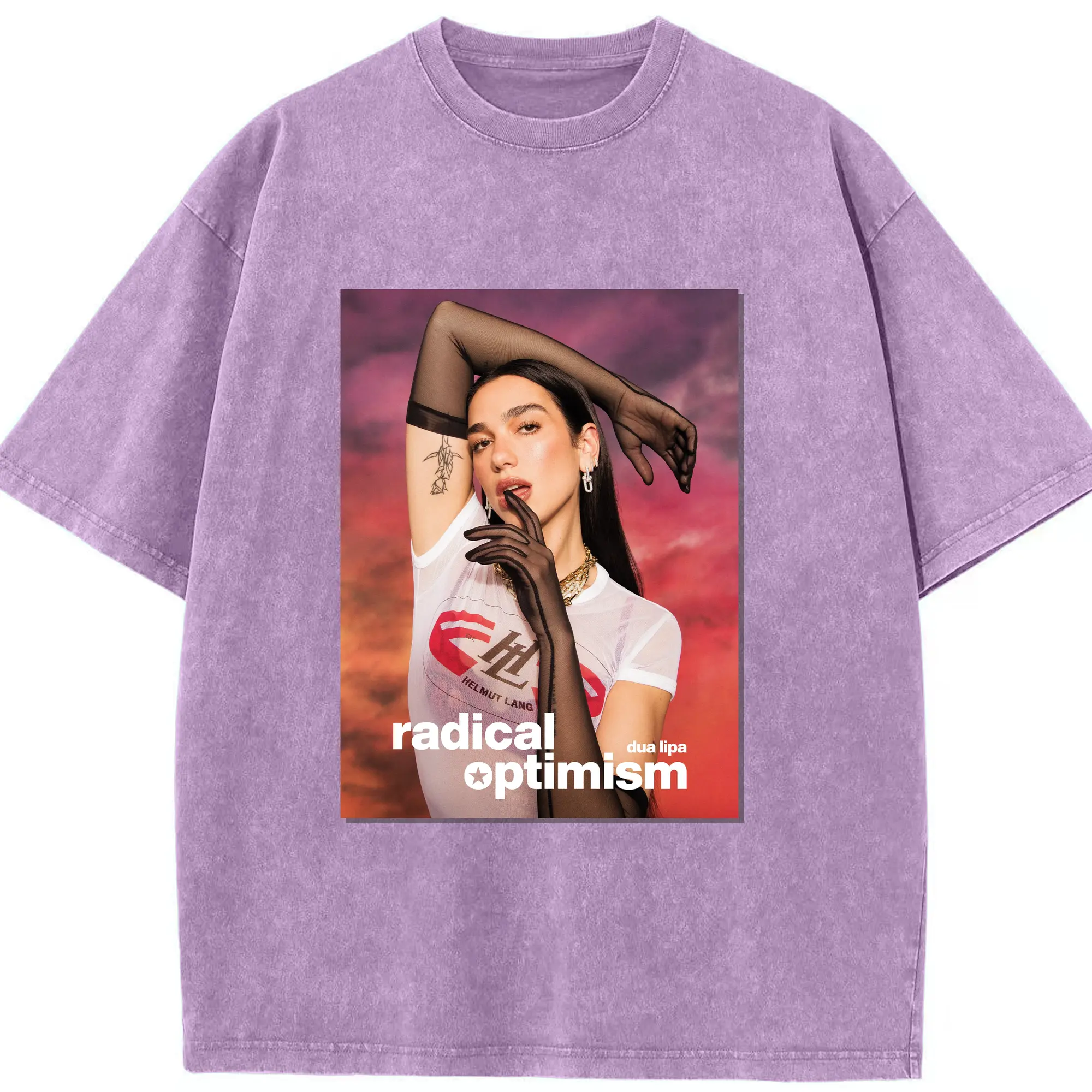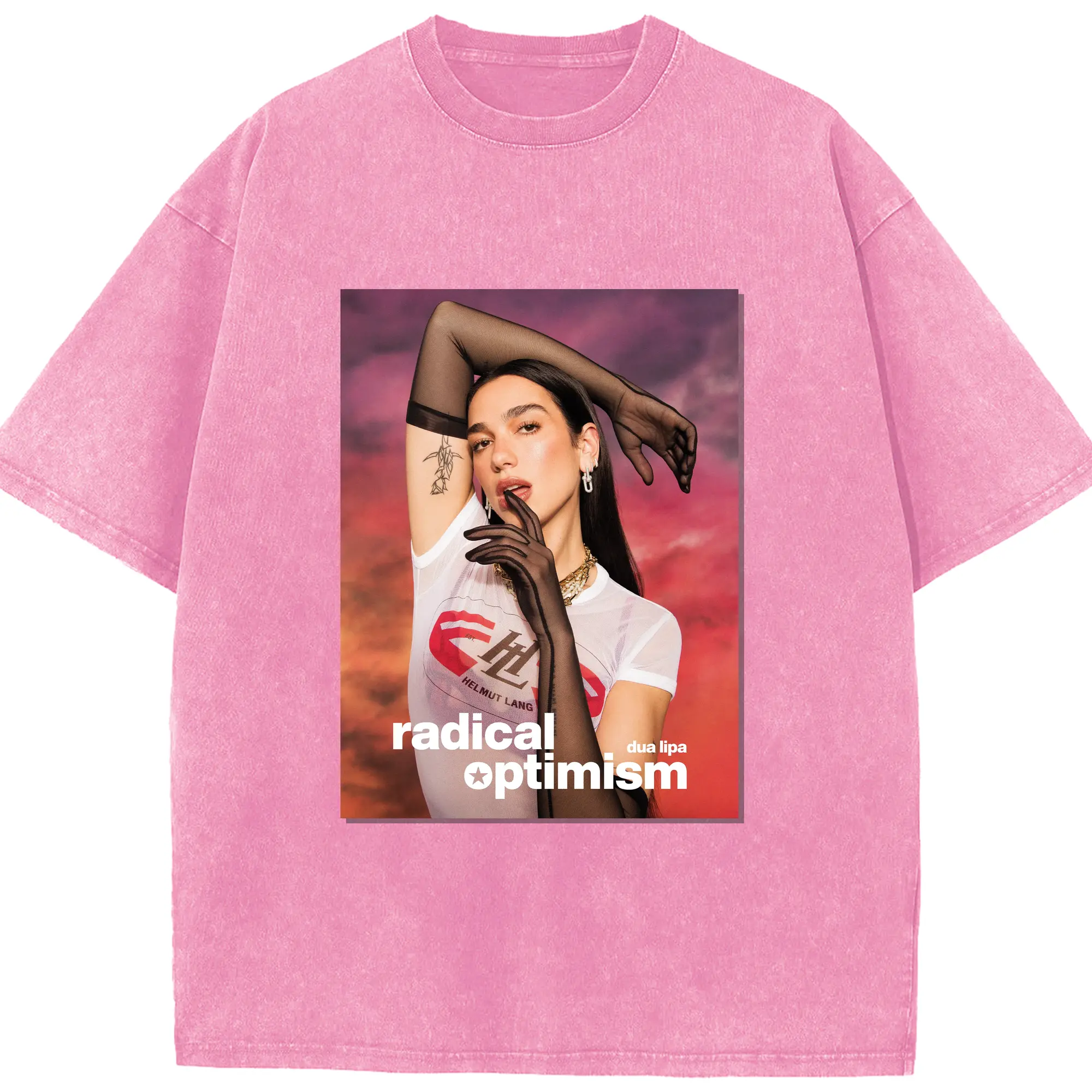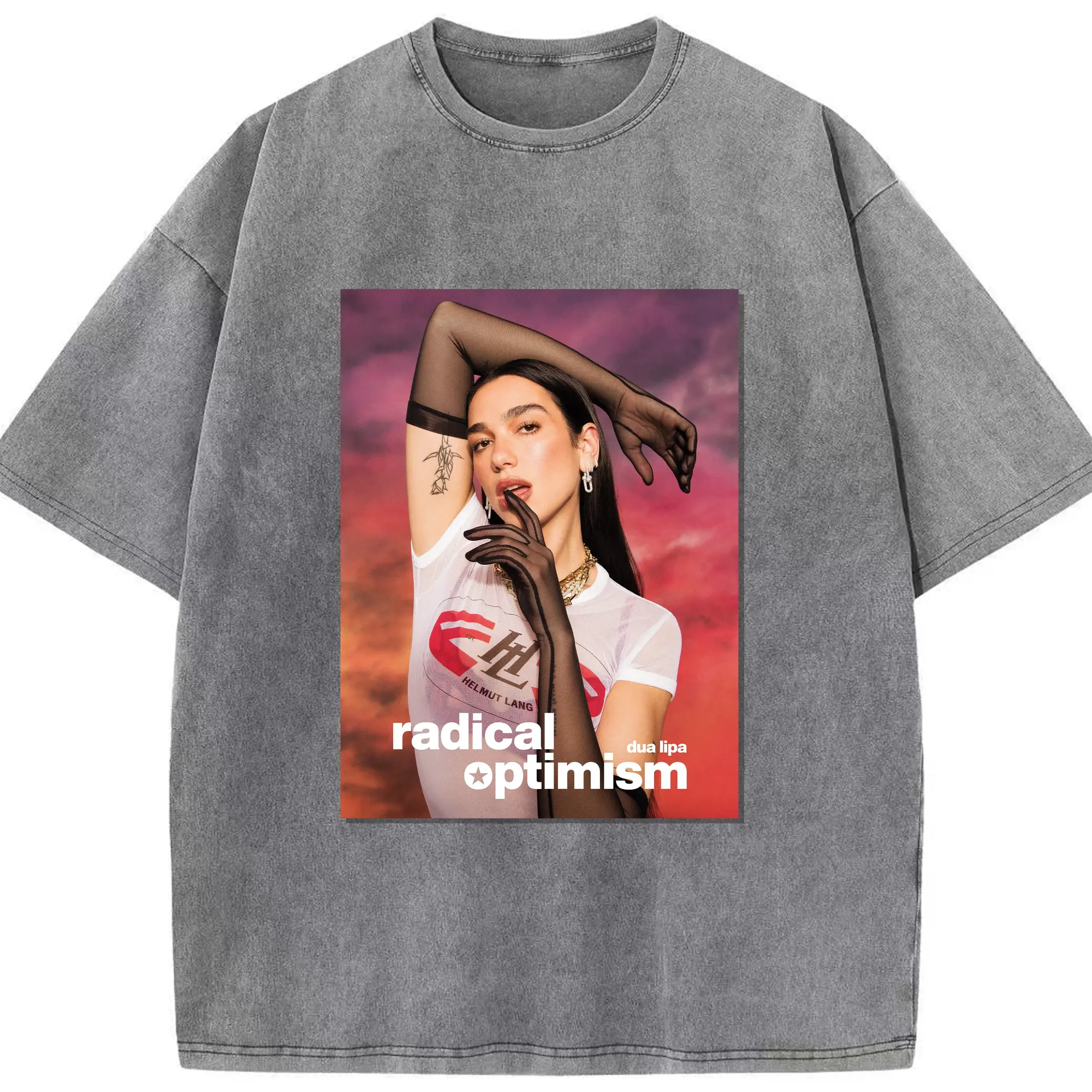 “Dua Lipa Radical Optimism” Music Fashion DIY Shirt - Washed Vintage Look 230g Cotton Oversized T-Shirt With Front Heat Transfer Print – Soft, Lightweight, Stylish Fit – Comfortable Casual Wear For Sports & Everyday Use