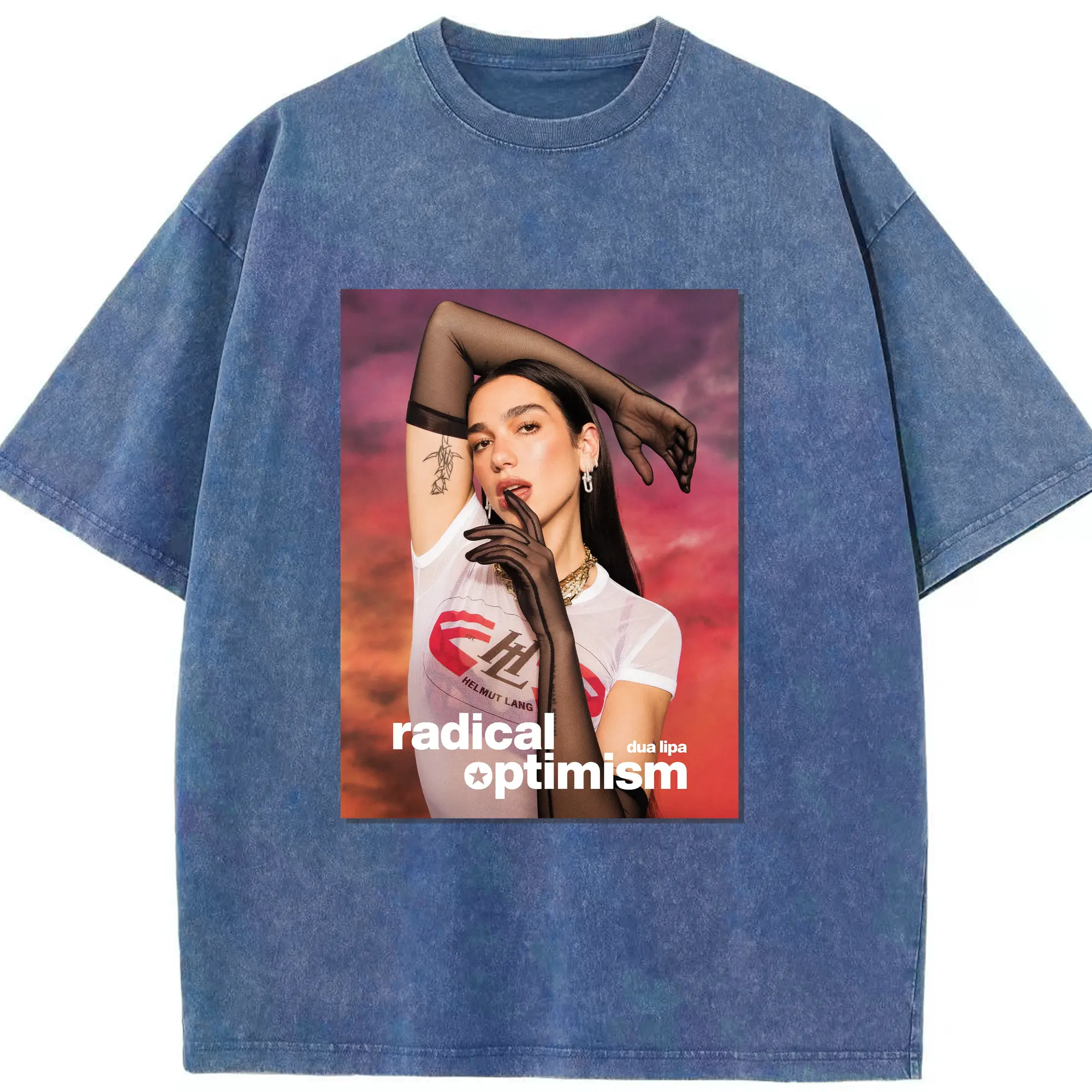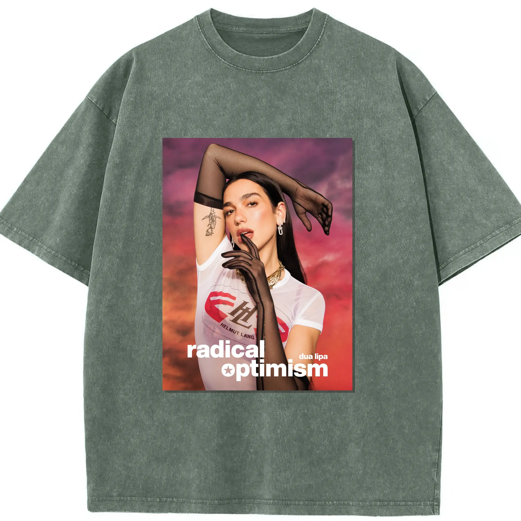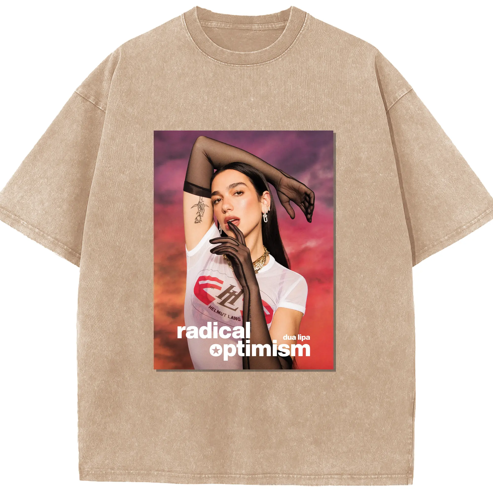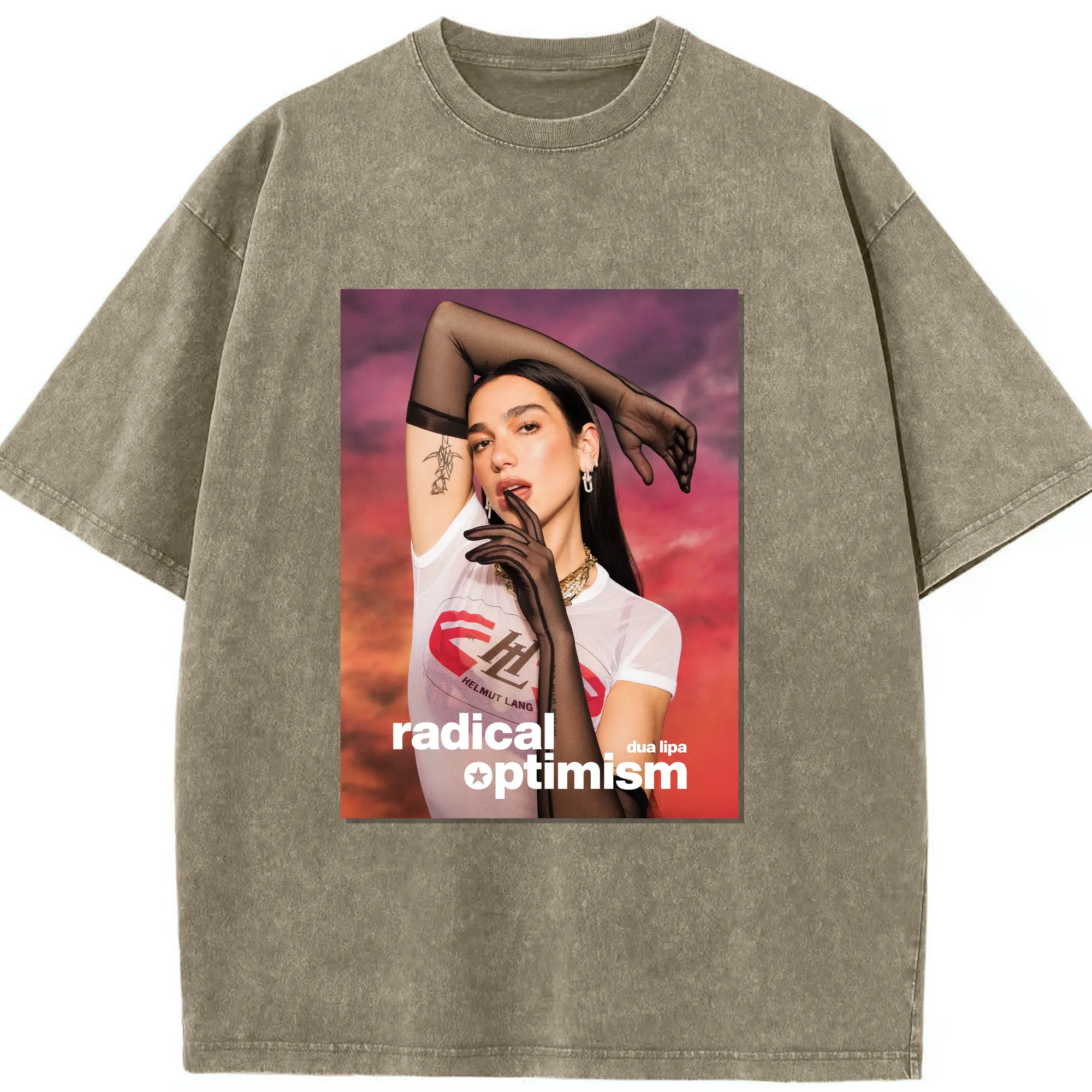 “Dua Lipa Radical Optimism” Music Fashion DIY Shirt - Washed Vintage Look 230g Cotton Oversized T-Shirt With Front Heat Transfer Print – Soft, Lightweight, Stylish Fit – Comfortable Casual Wear For Sports & Everyday Use
