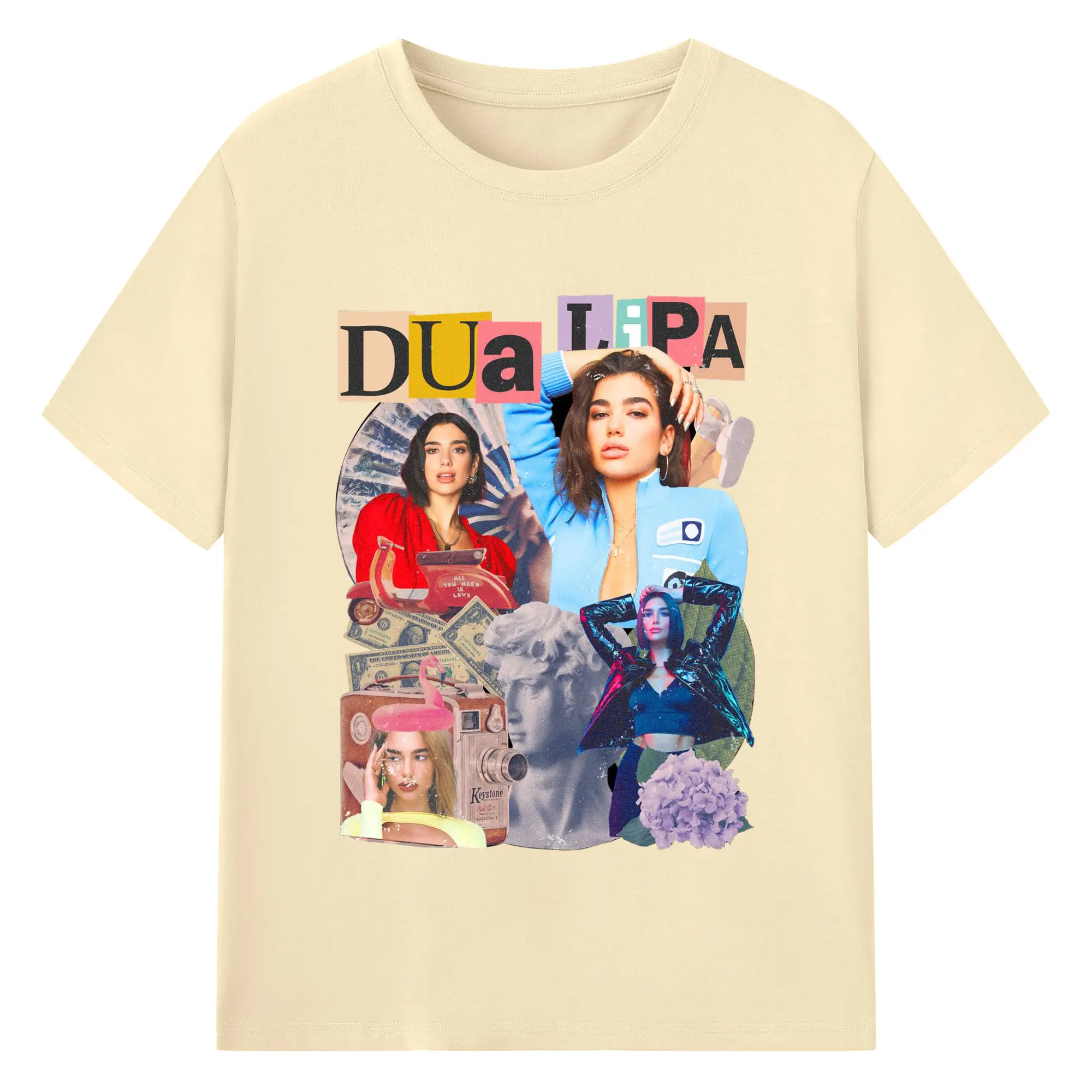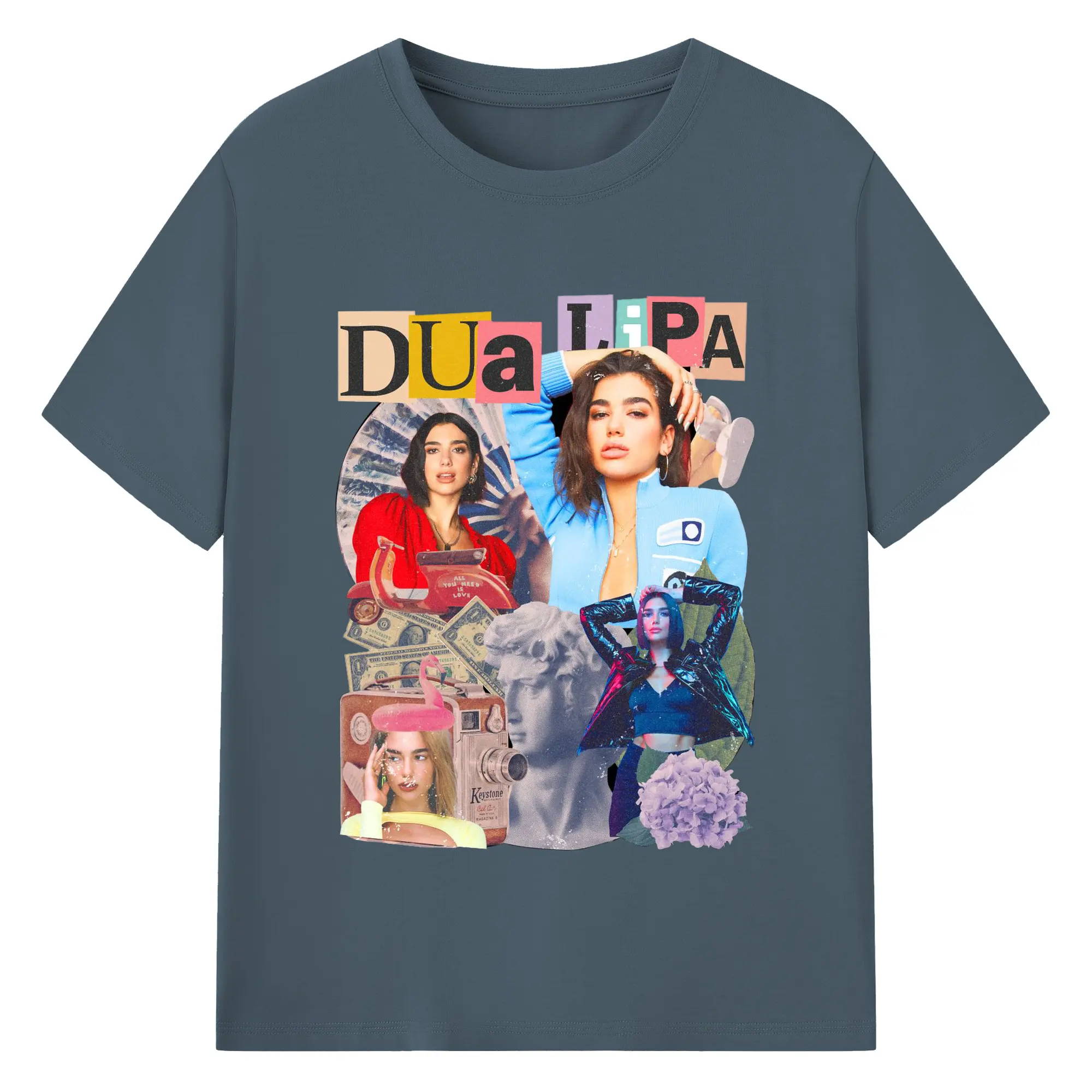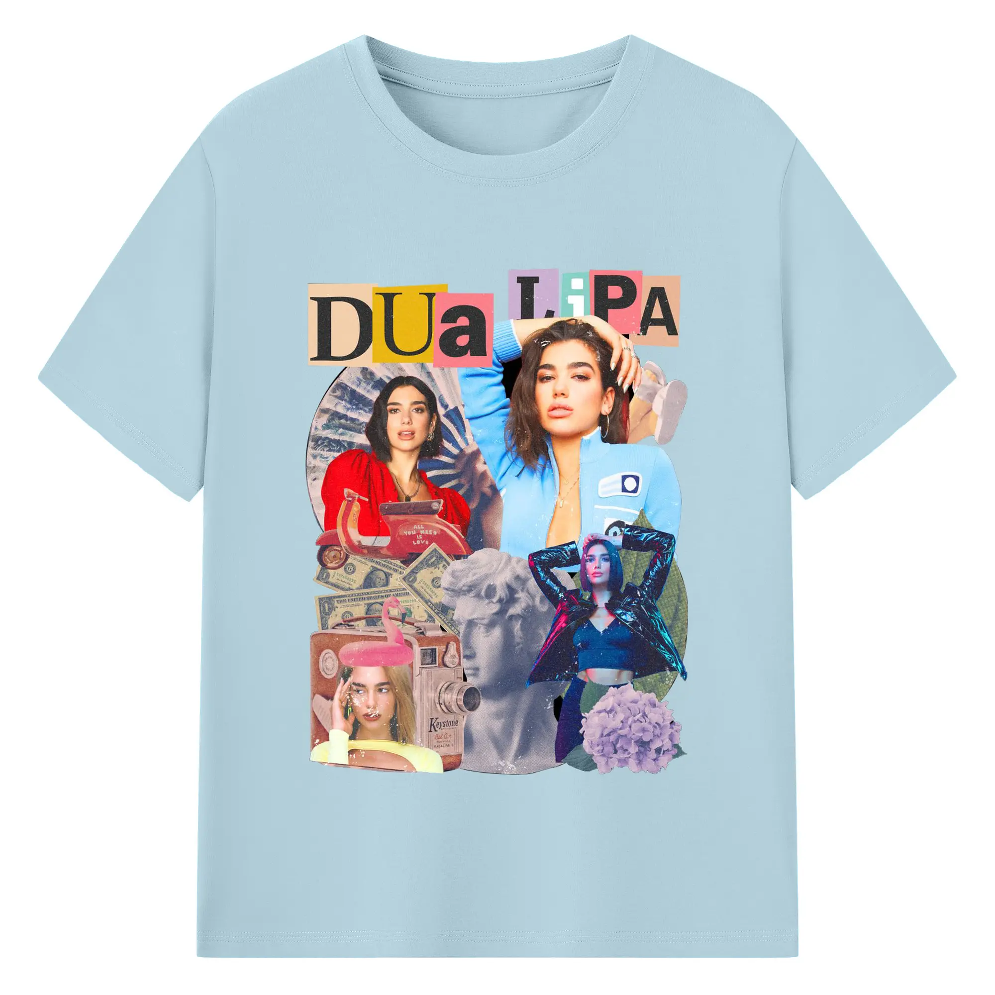 Dua Lipa Vintage Collage Pop Music DIY - 180g Cotton T-Shirt With Front Heat Transfer Print – Soft, Lightweight, Fitted Design – Comfortable Casual Wear For Sports & Everyday Use