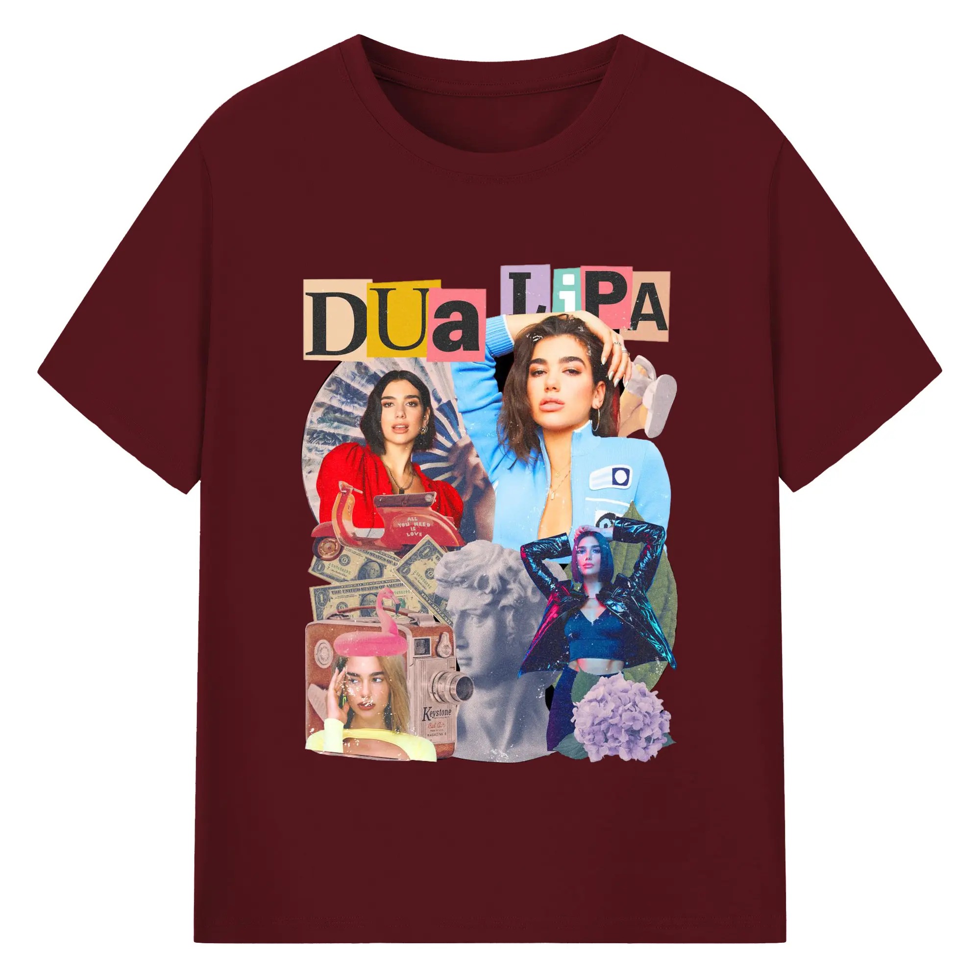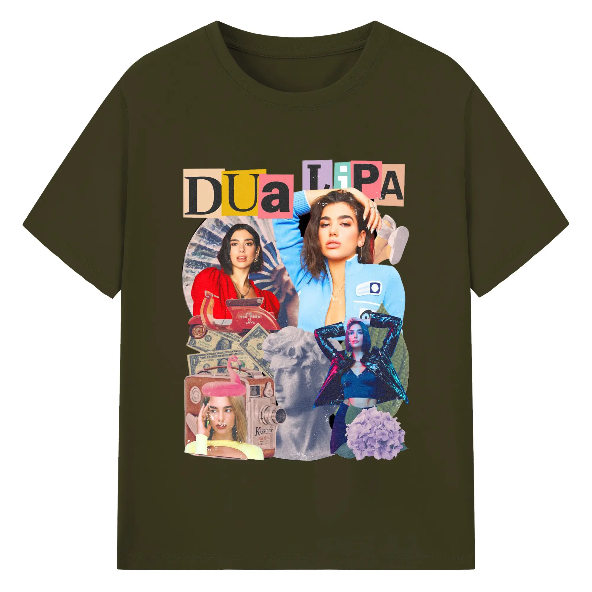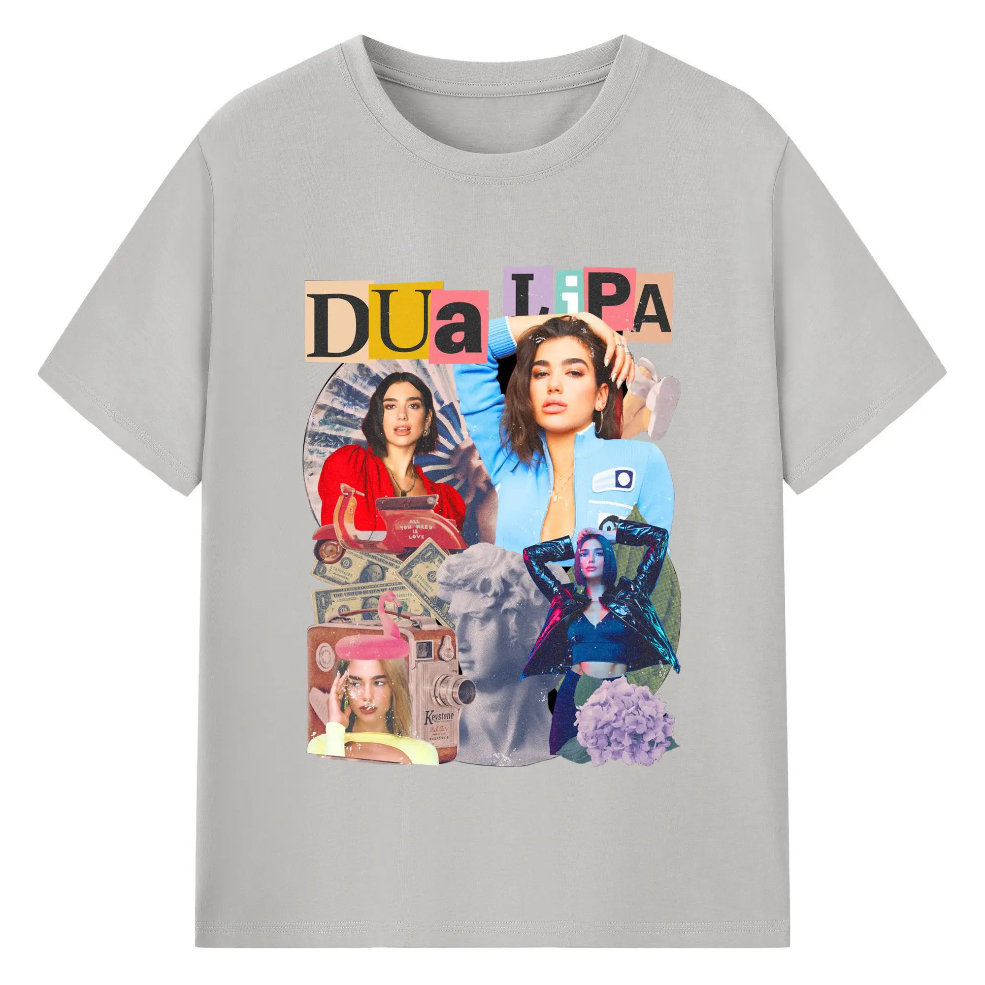 Dua Lipa Vintage Collage Pop Music DIY - 180g Cotton T-Shirt With Front Heat Transfer Print – Soft, Lightweight, Fitted Design – Comfortable Casual Wear For Sports & Everyday Use