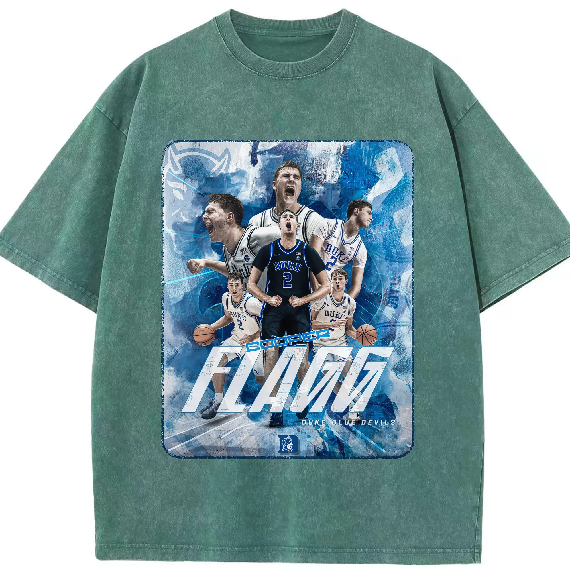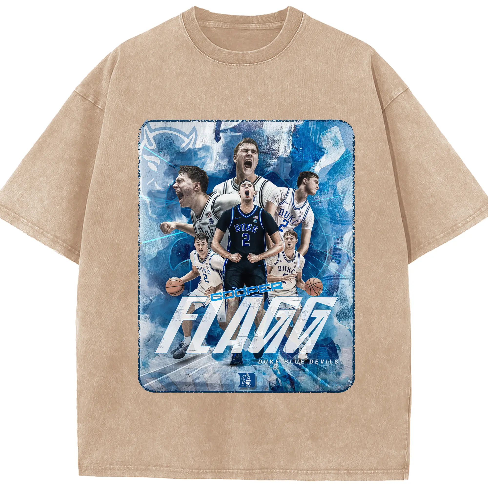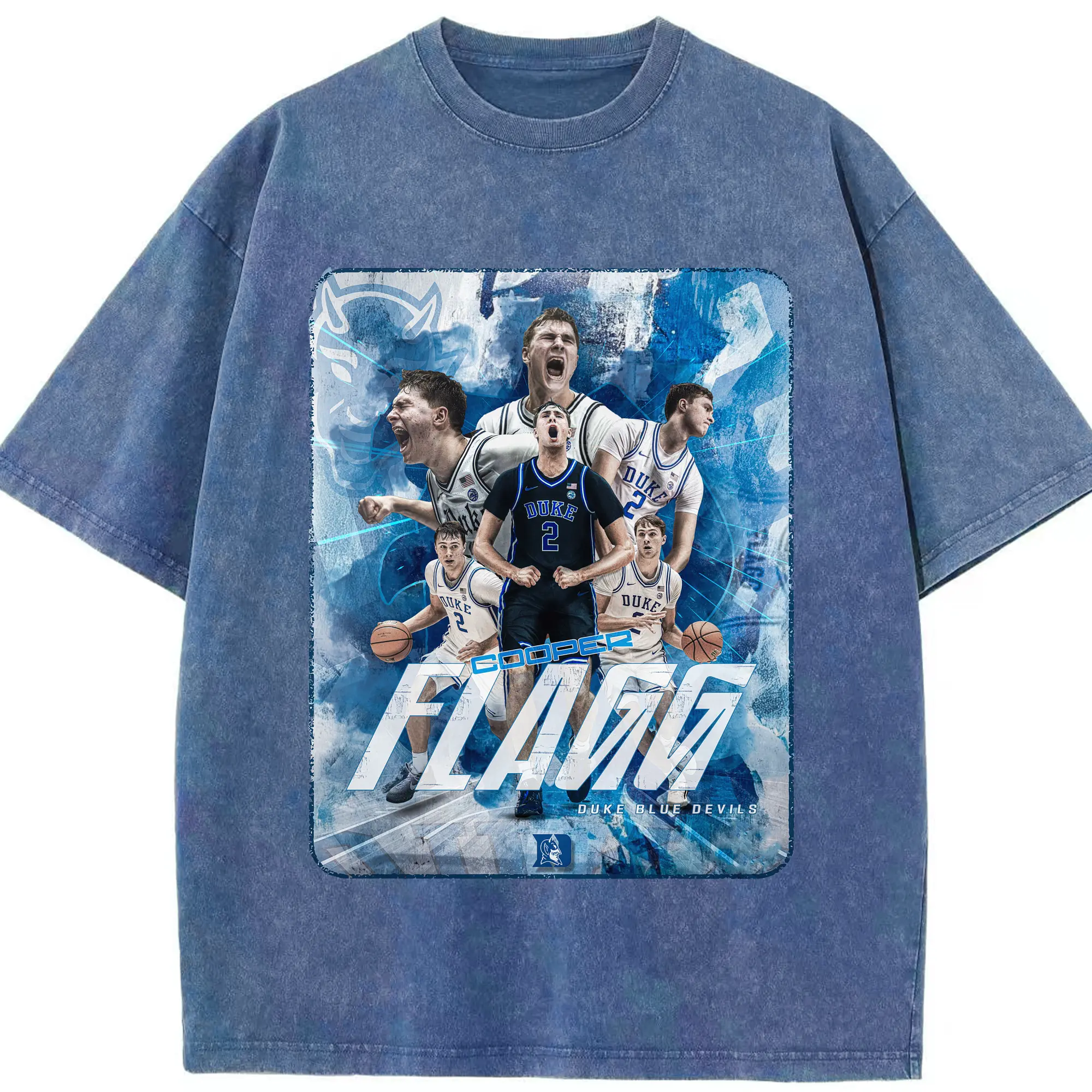 Duke Blue Devils Cooper Flagg Hoops Collage Shirt - Washed Vintage Look 230g Cotton Oversized T-Shirt With Front Heat Transfer Print – Soft, Lightweight, Stylish Fit – Comfortable Casual Wear For Sports & Everyday Use