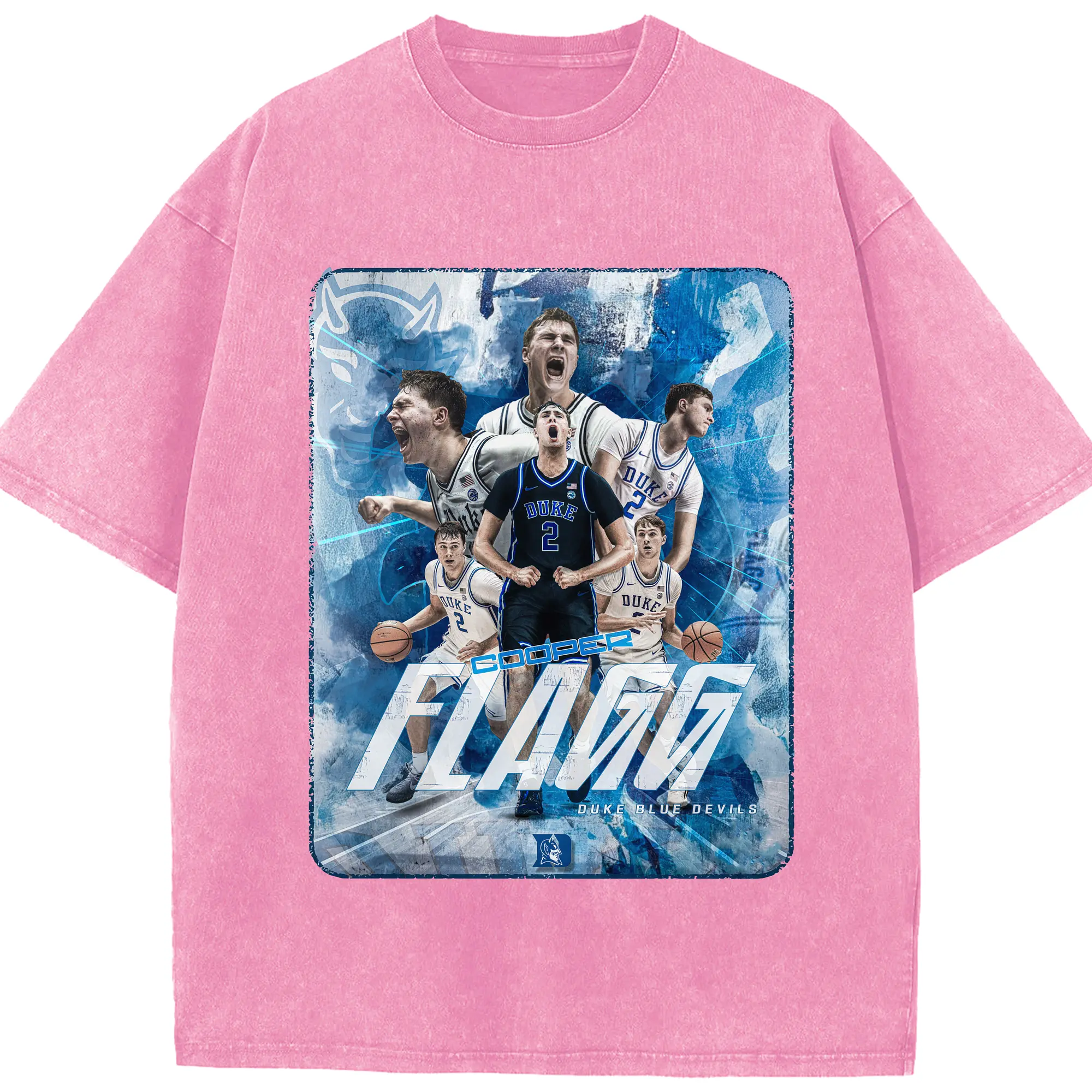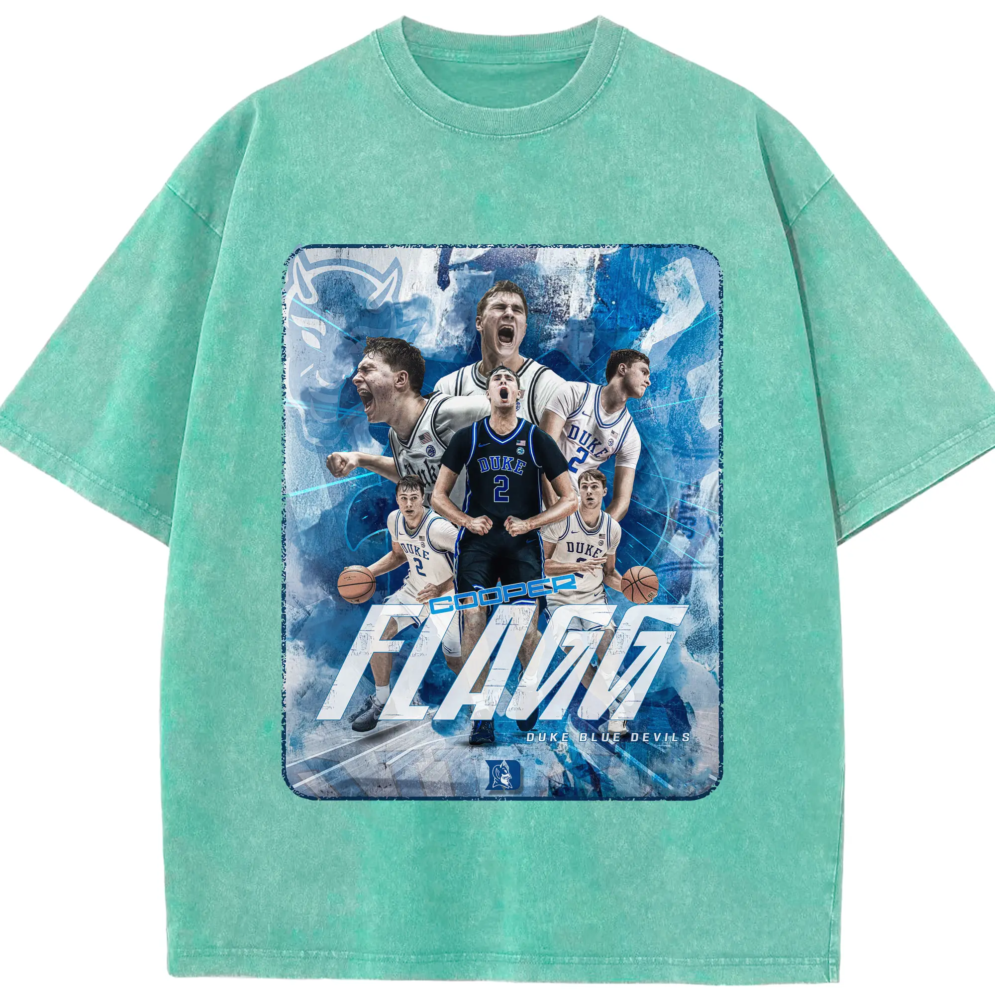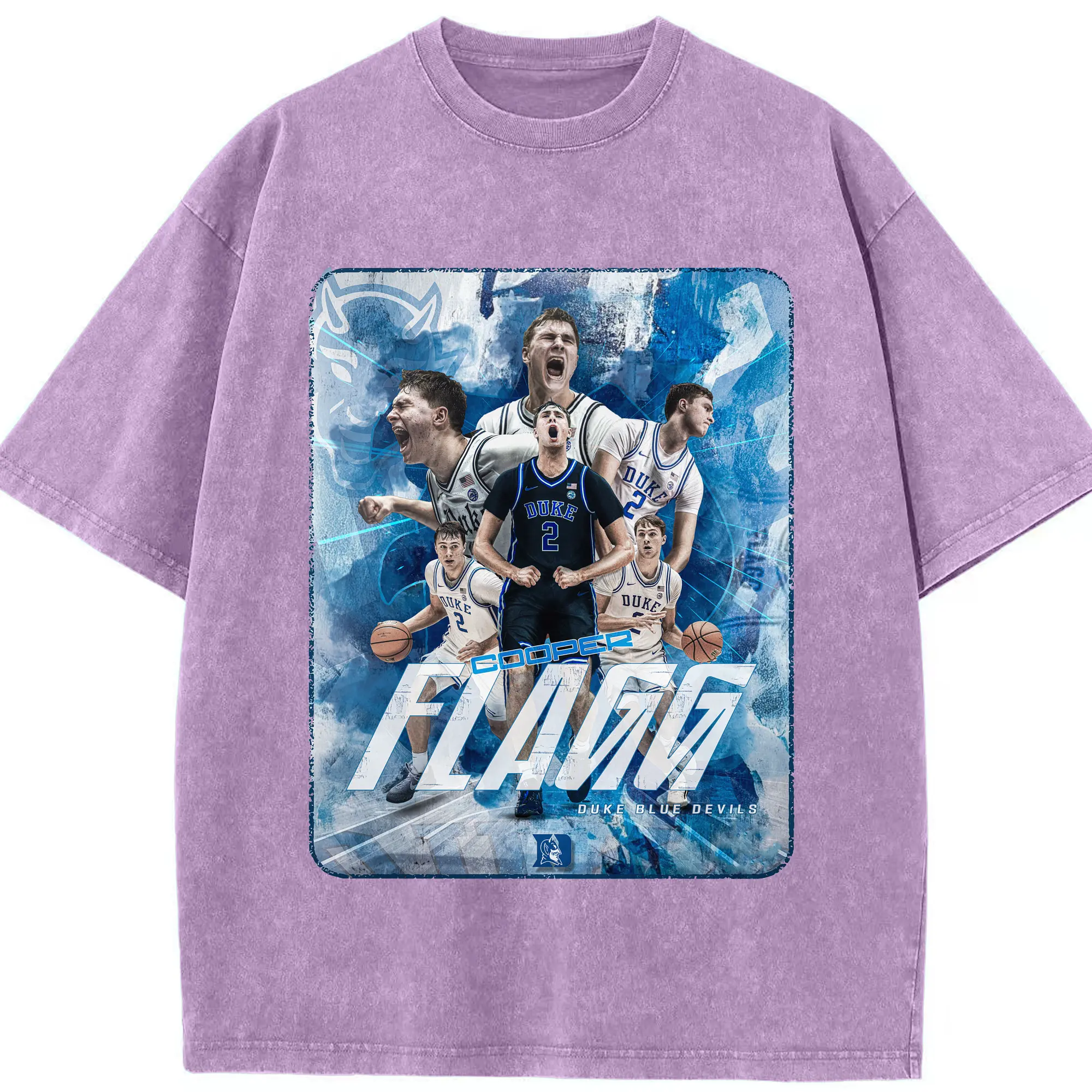 Duke Blue Devils Cooper Flagg Hoops Collage Shirt - Washed Vintage Look 230g Cotton Oversized T-Shirt With Front Heat Transfer Print – Soft, Lightweight, Stylish Fit – Comfortable Casual Wear For Sports & Everyday Use