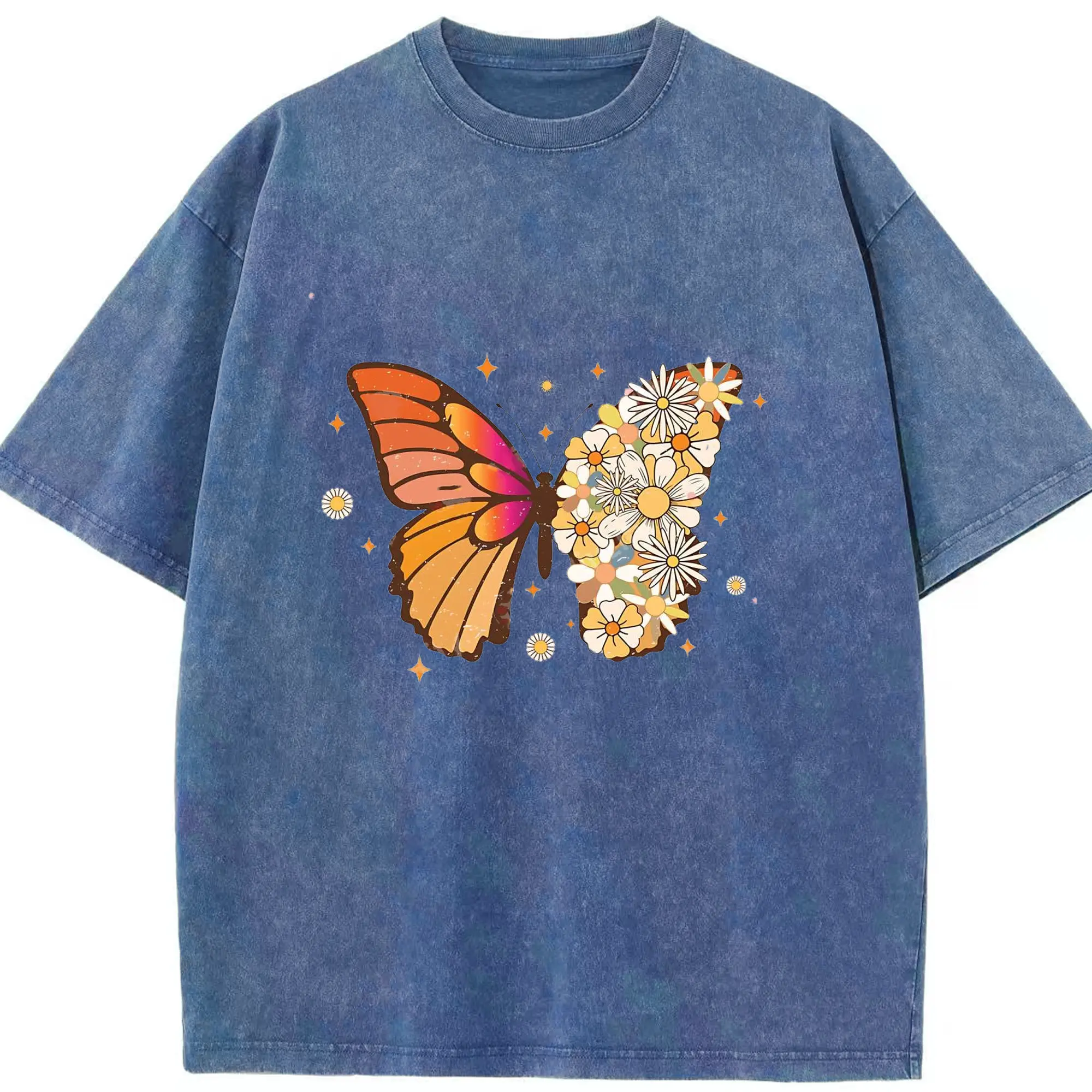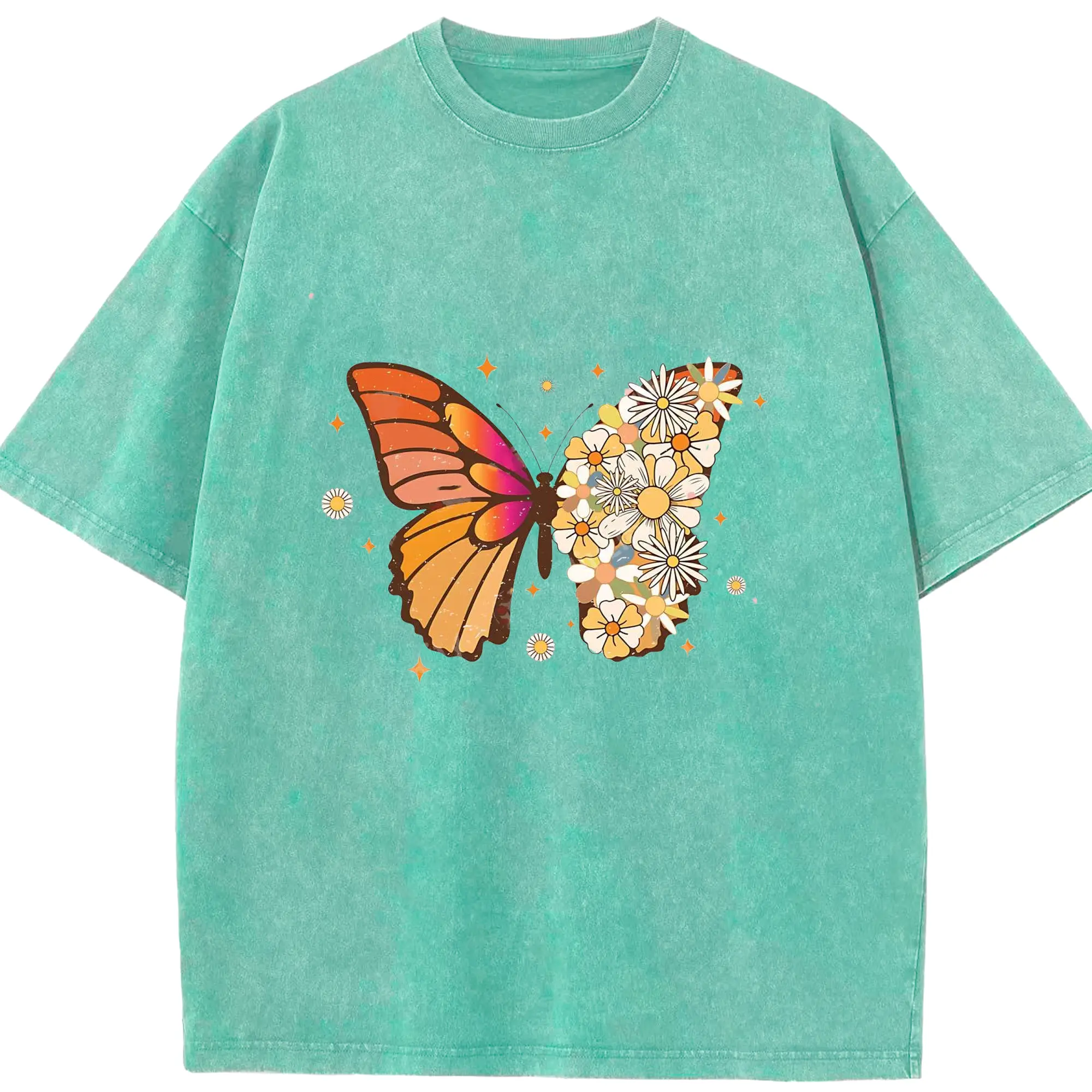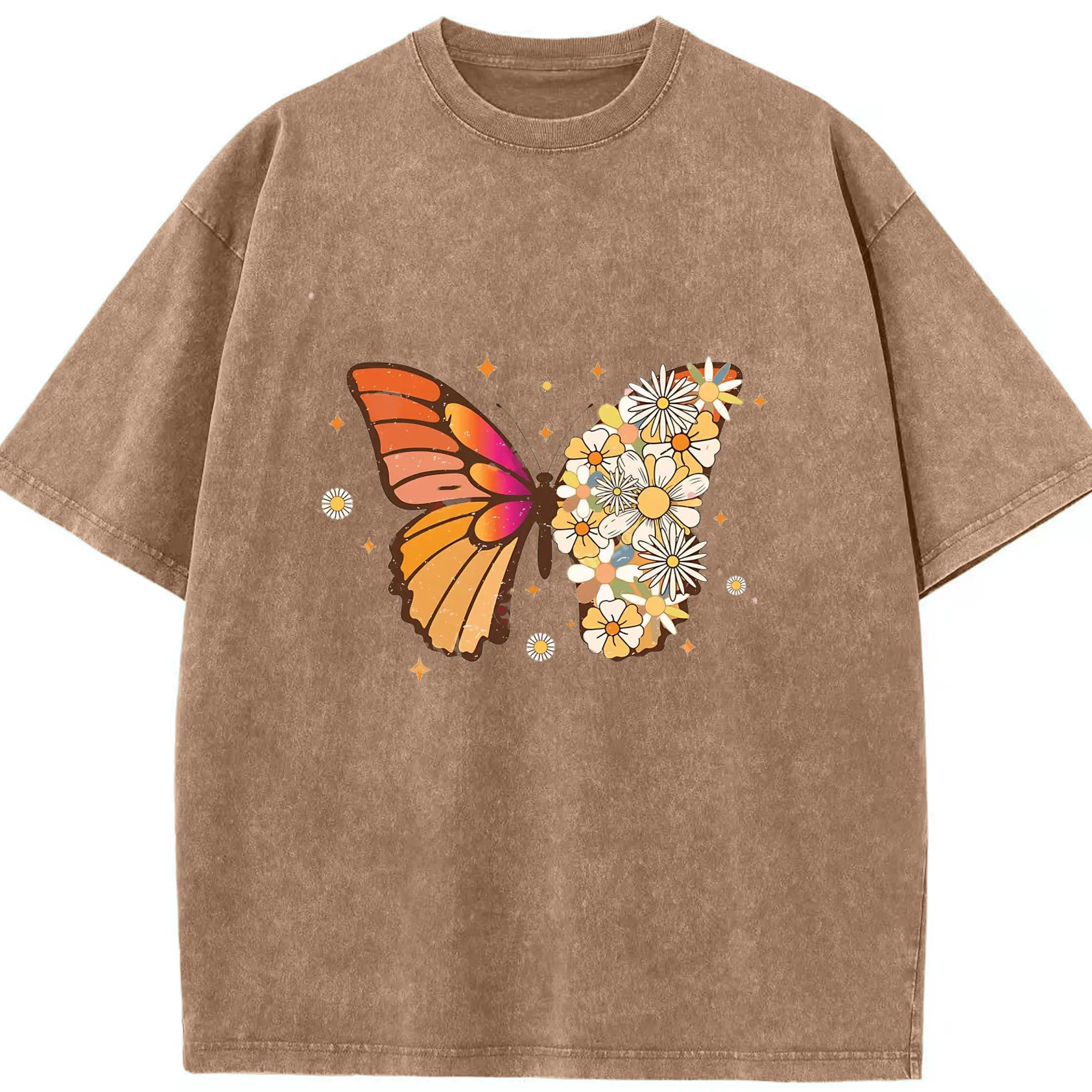 Ed Sheeran Bohemian Floral Butterfly DIY - Washed Vintage Look 230g Cotton Oversized T-Shirt With Front Heat Transfer Print – Soft, Lightweight, Stylish Fit – Comfortable Casual Wear For Sports & Everyday Use