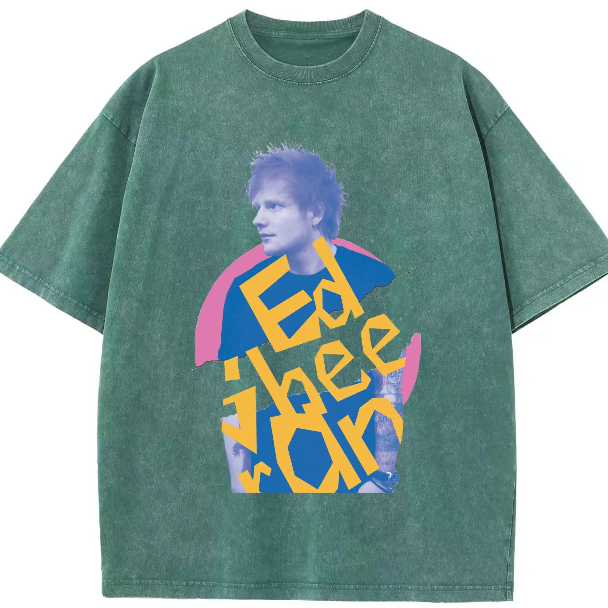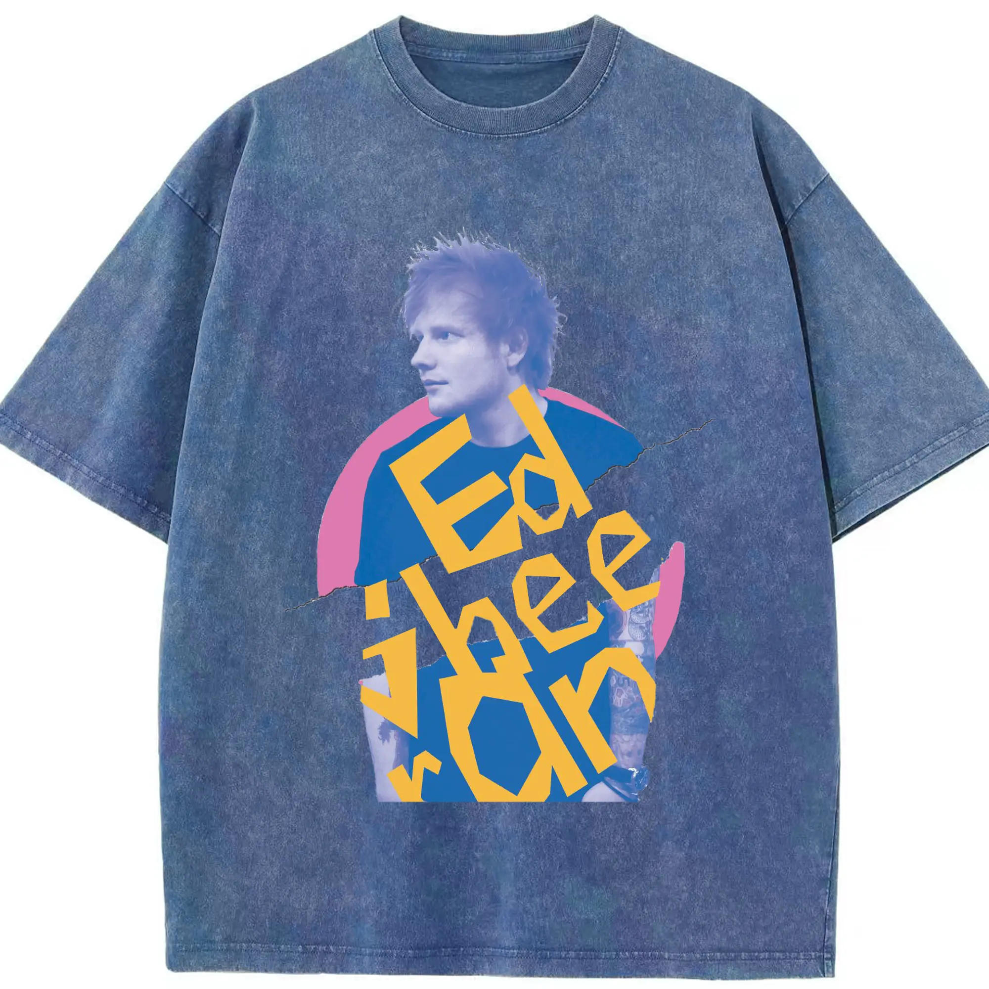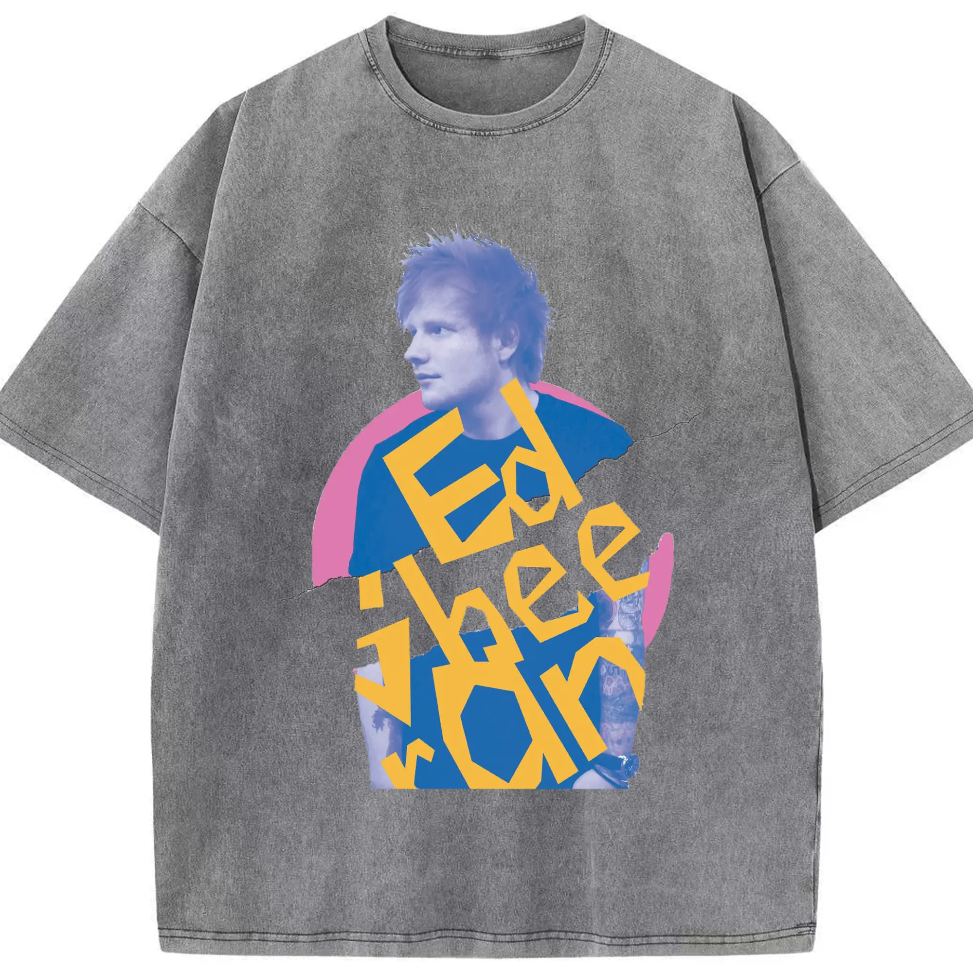 Ed Sheeran Pop Music Artistic Collage DIY - Washed Vintage Look 230g Cotton Oversized T-Shirt With Front Heat Transfer Print – Soft, Lightweight, Stylish Fit – Comfortable Casual Wear For Sports & Everyday Use