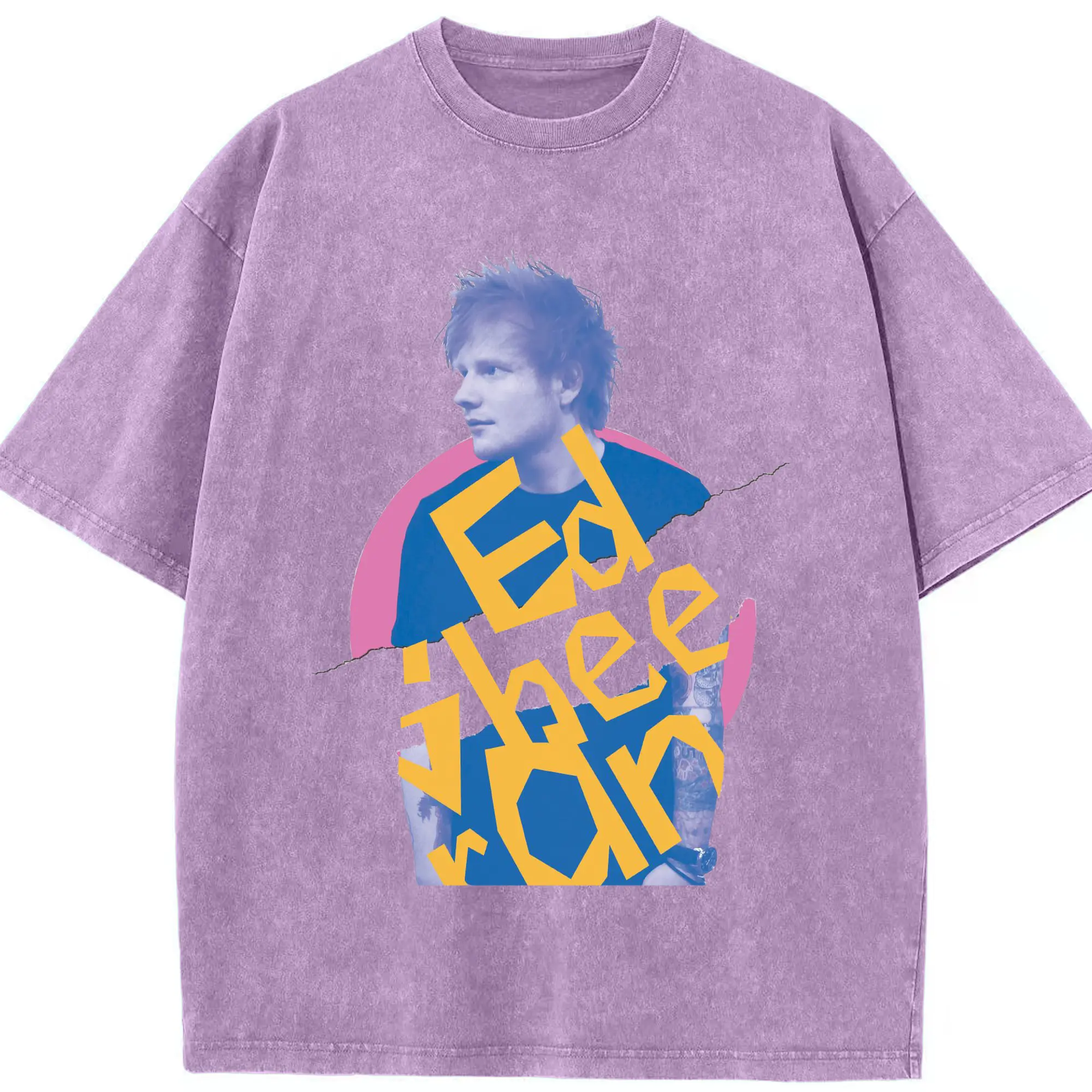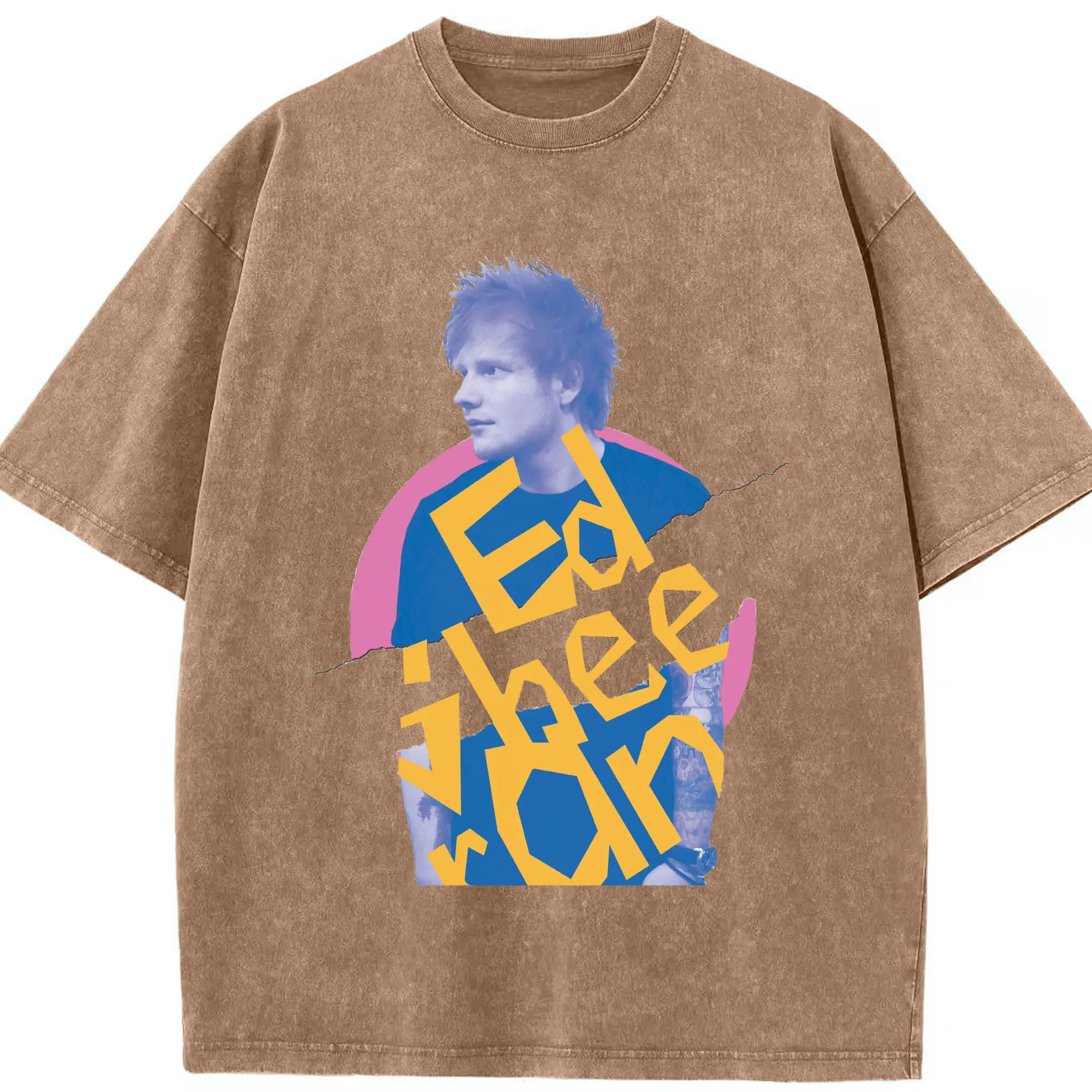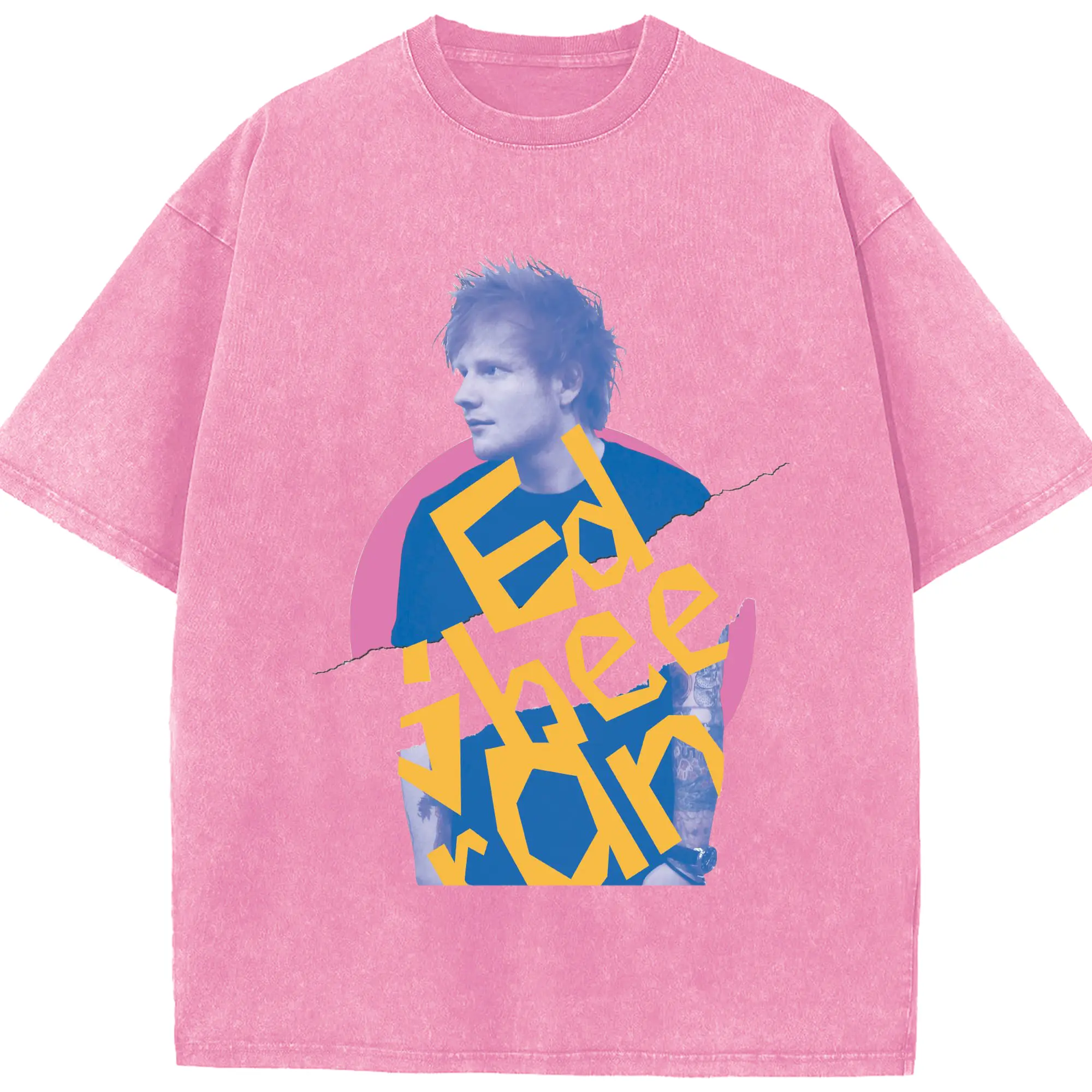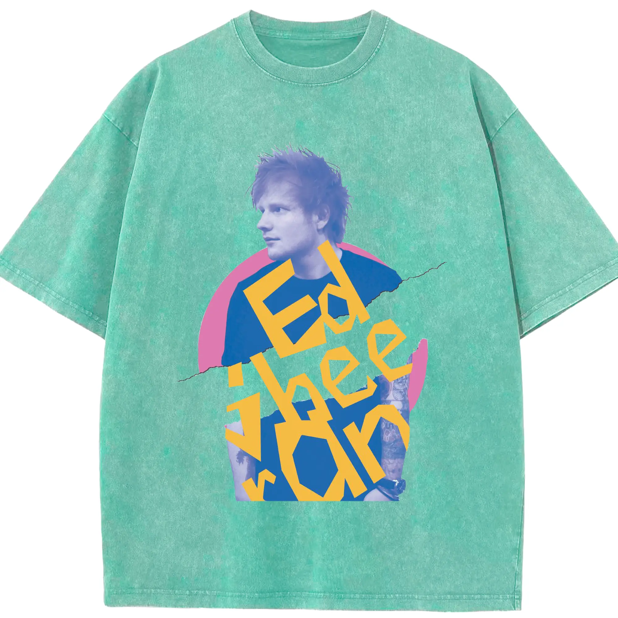 Ed Sheeran Pop Music Artistic Collage DIY - Washed Vintage Look 230g Cotton Oversized T-Shirt With Front Heat Transfer Print – Soft, Lightweight, Stylish Fit – Comfortable Casual Wear For Sports & Everyday Use