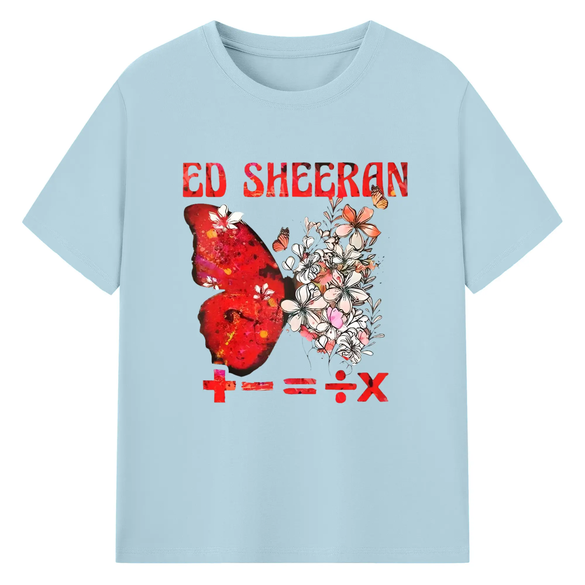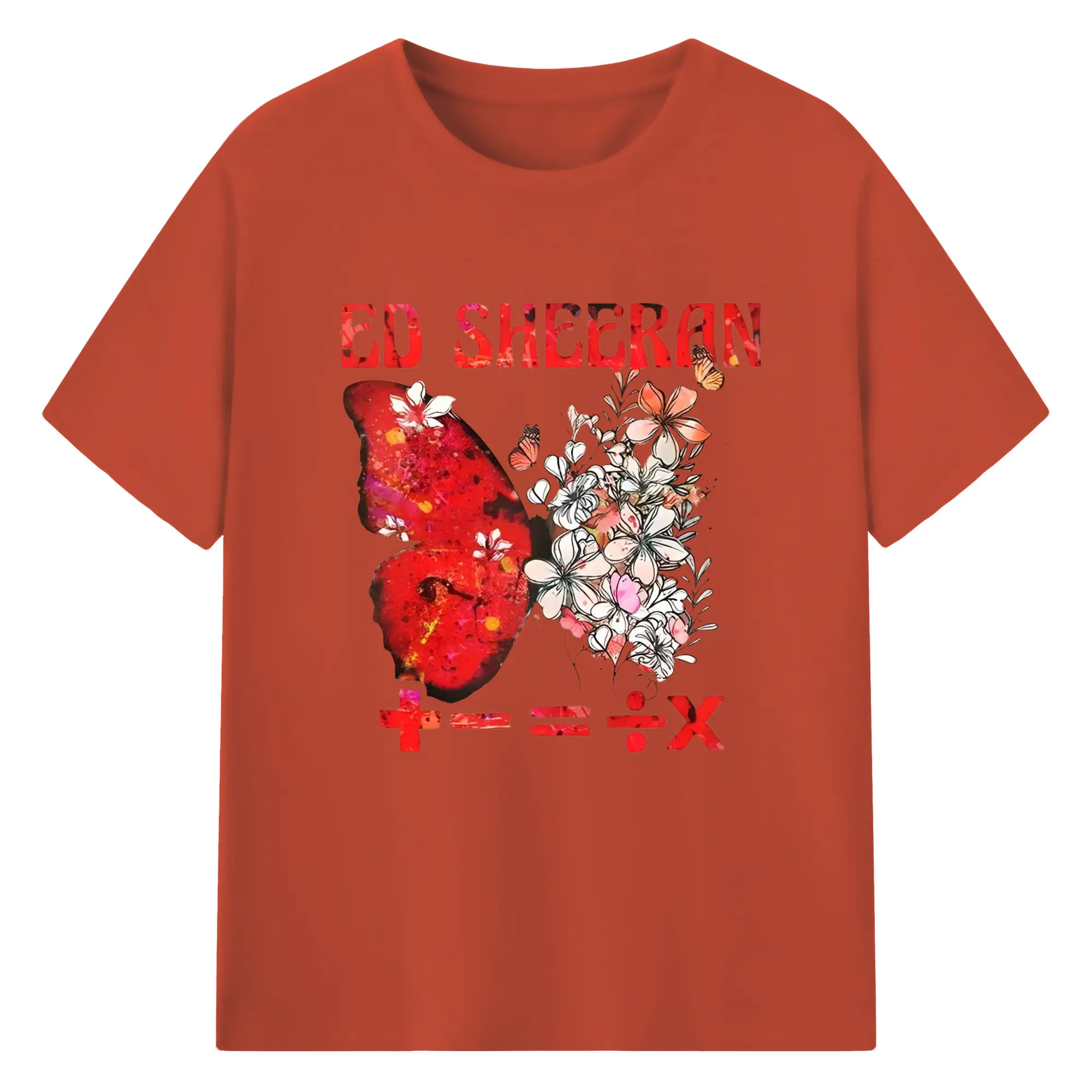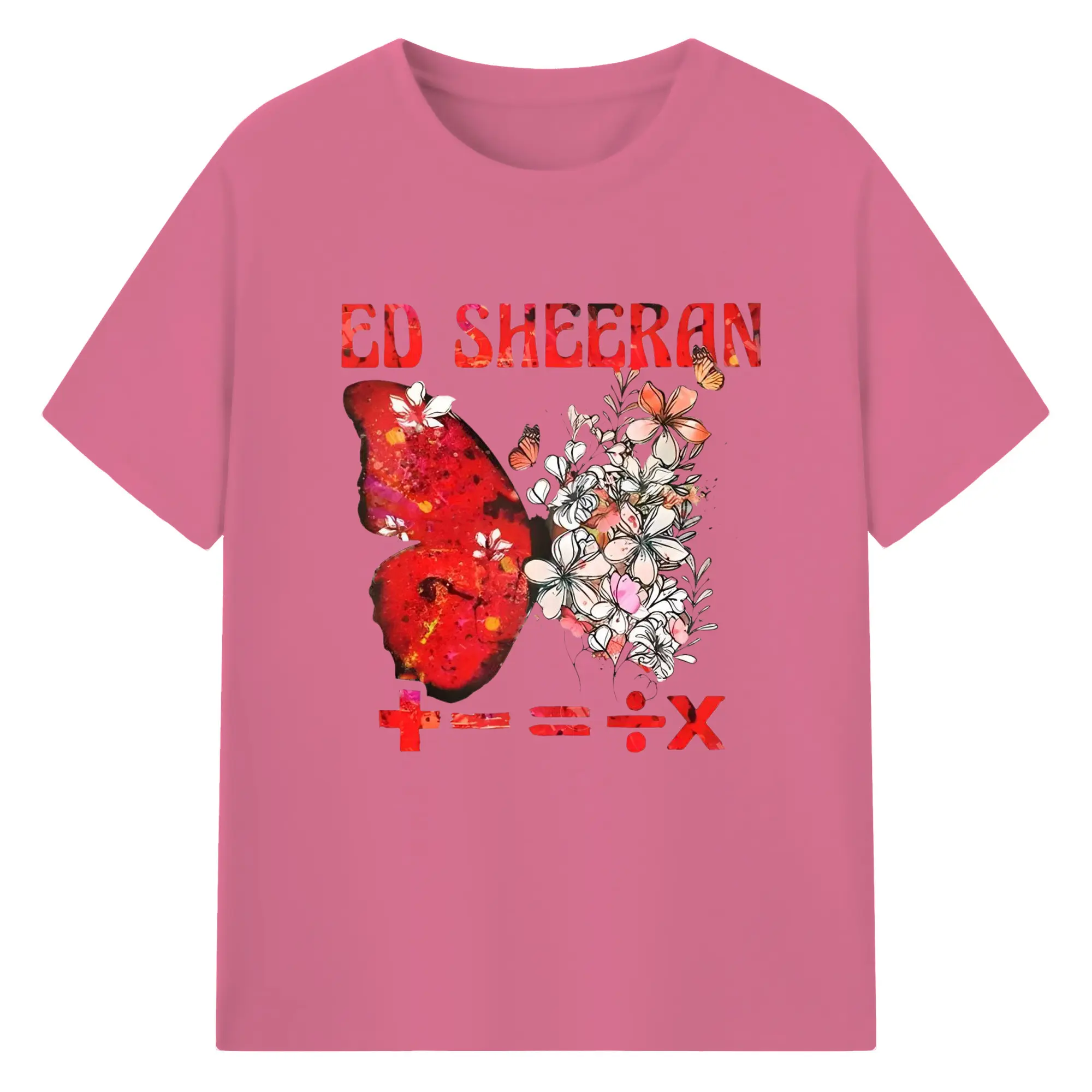 Ed Sheeran Pop Music Floral Butterfly DIY - 180g Cotton T-Shirt With Front Heat Transfer Print – Soft, Lightweight, Fitted Design – Comfortable Casual Wear For Sports & Everyday Use